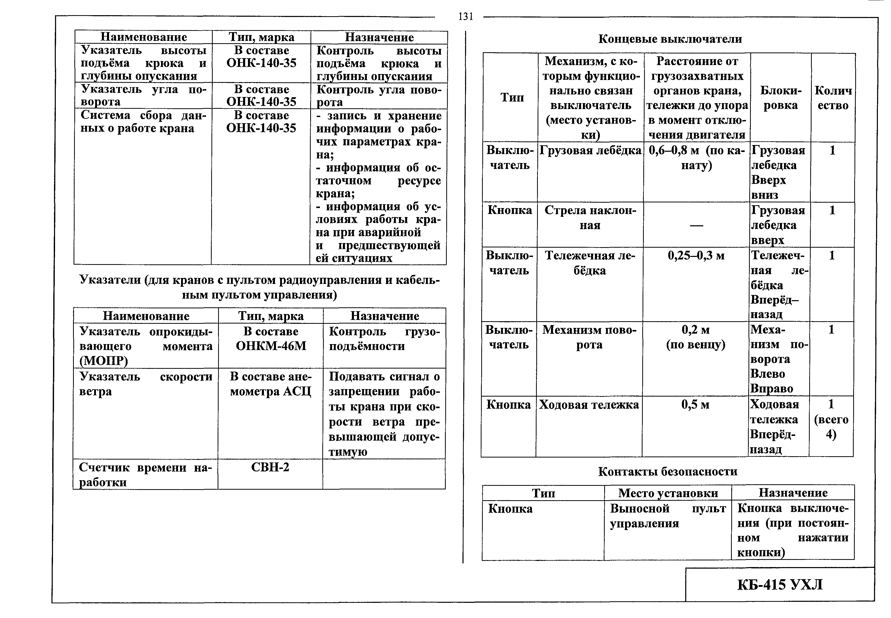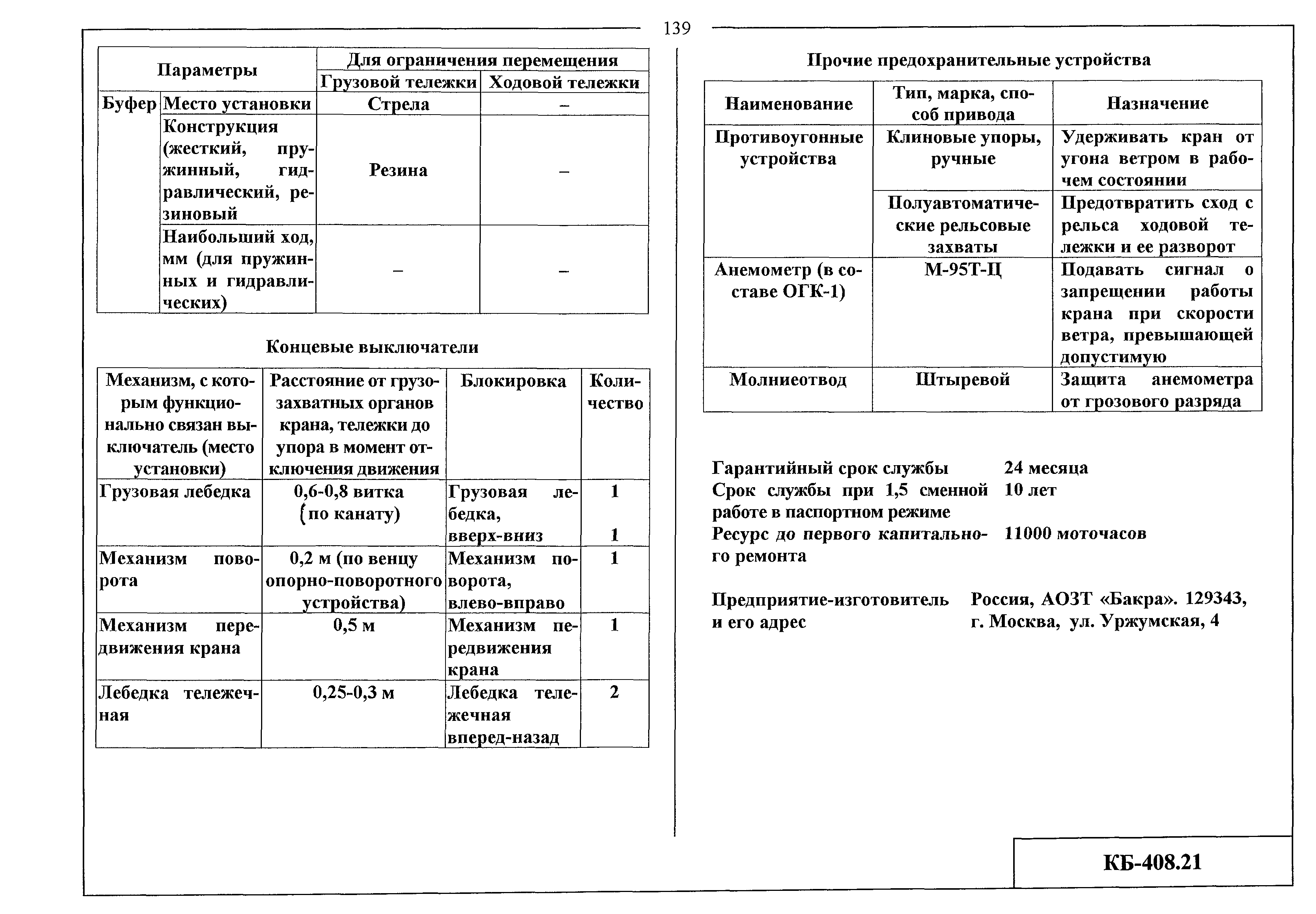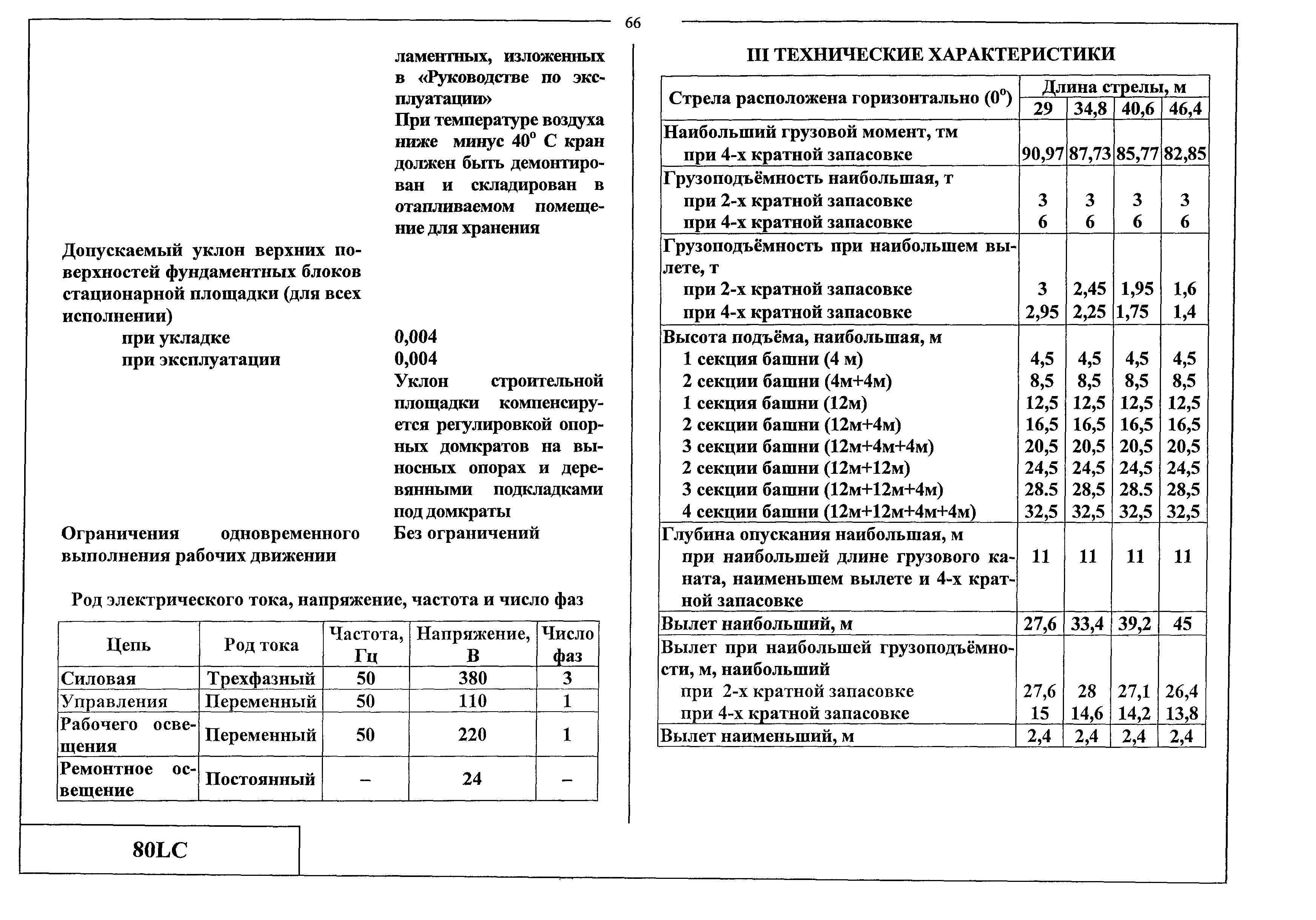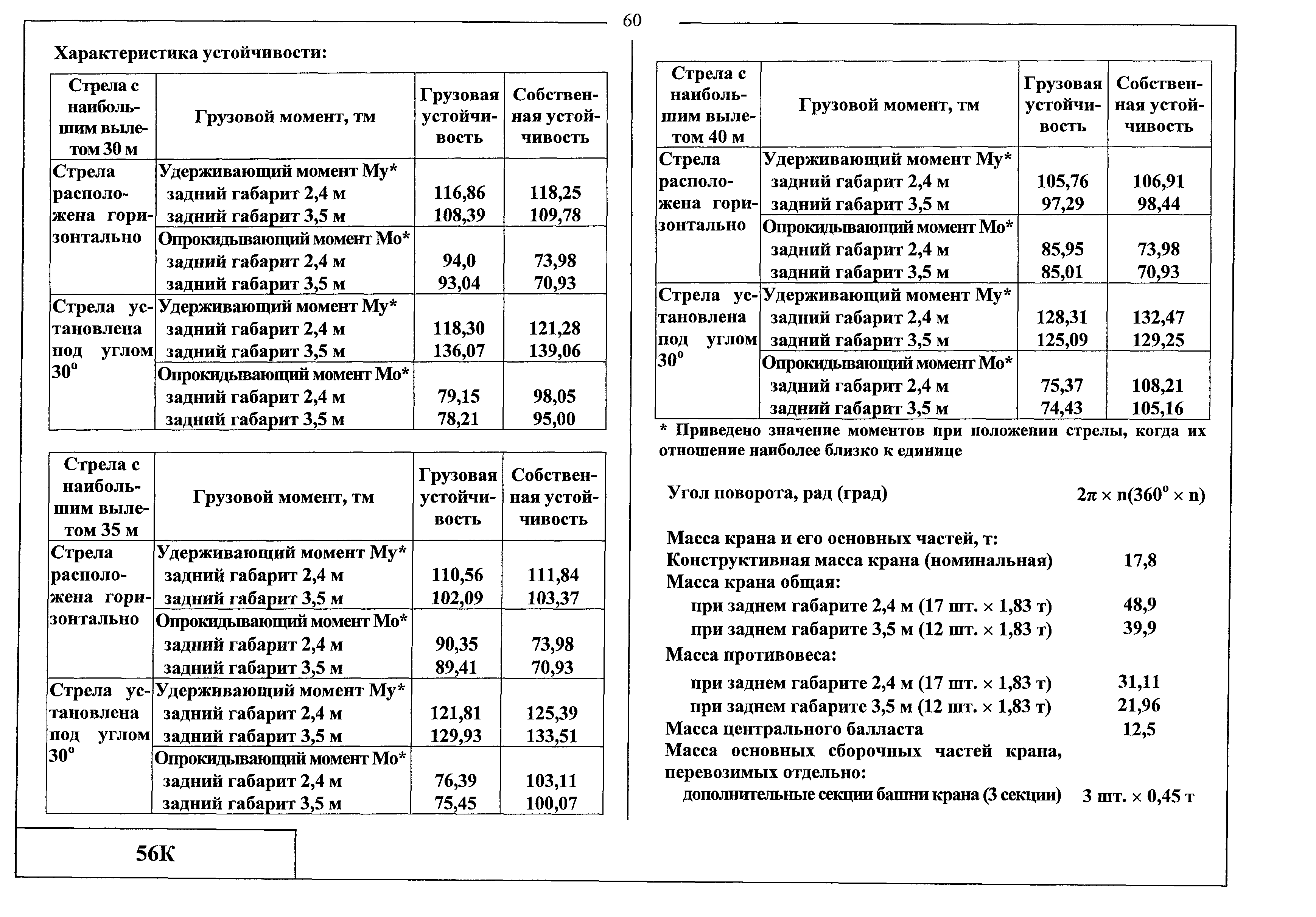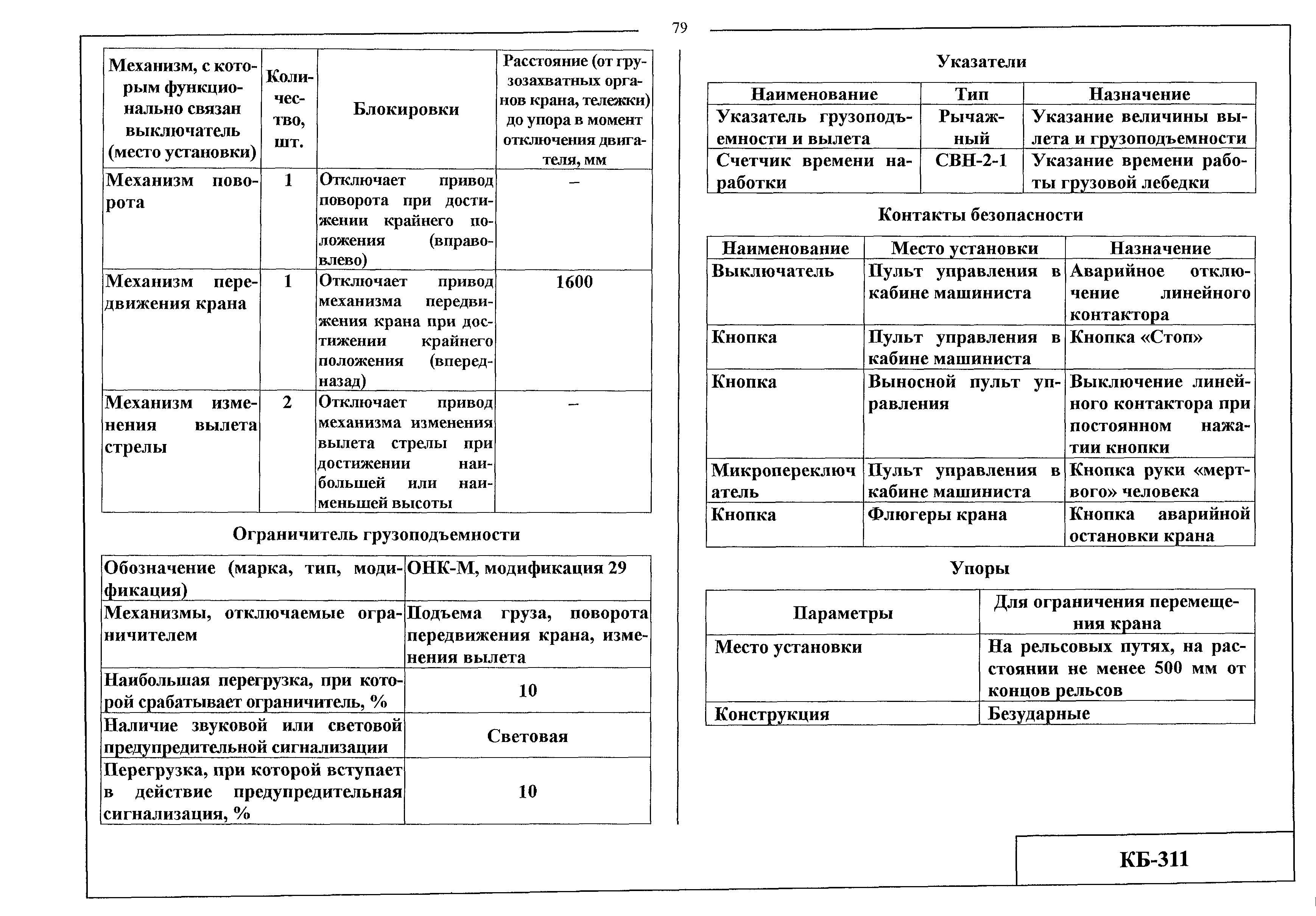 | Оглавление: | Общая часть Техническая характеристика башенных кранов Общие сведения. Основные техзнические характеристики башенных кранов 1. РБК-2.20 2. РБК-3.40 3. 34К 4. 32ТТ 5. РБК-5.60 6. 56К 7. 80LC 8. КБ-311 9. КБ-473 (исполнение -00 … -04) 10. КБ-473 (исполнение -05 … -09) 11. КБ-474 (исполнение -00; -01; -02; -03; -10; -11; -12; -13; -14) 12. КБ-405.1А; КБ-405.1А-01; КБ-405.1А-02; КБ-405.2А 13. КБ-415 УХЛ 14. КБ-408.21 15. КБ-411.06 16. КБМ-401П (исполнение -00; -08; … -33; -36 … -39) 17. 180ЕС-Н10 18. КБ-504А.08 и КБ-504А.08-02 Приложение - "О системе ограничения зоны работы башенного крана в стесненных условиях" "СОЗР" |