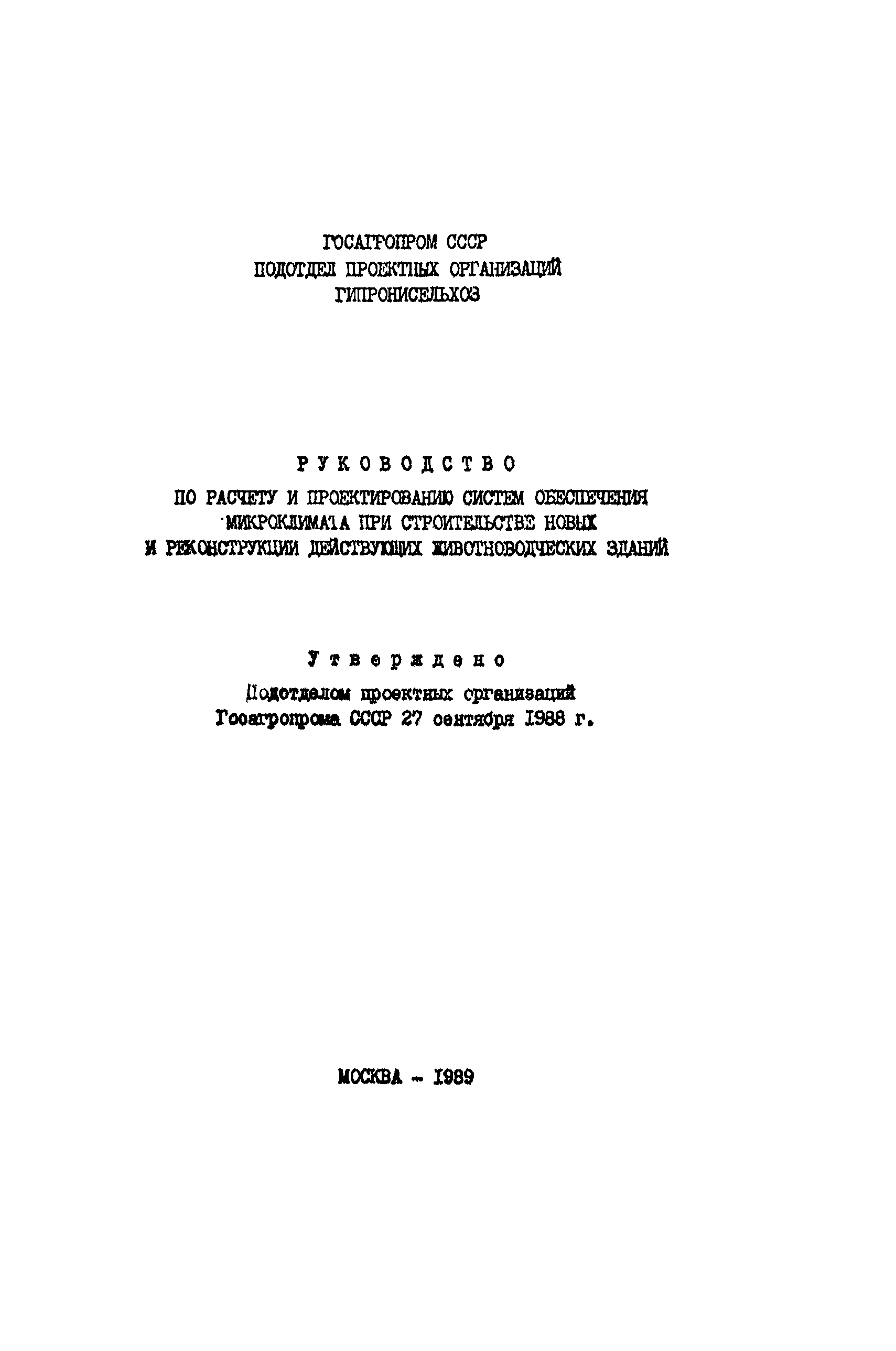 | Название рус.: | Руководство по расчету и проектированию систем обеспечения микроклимата при строительстве новых и реконструкции действующих животноводческих зданий |