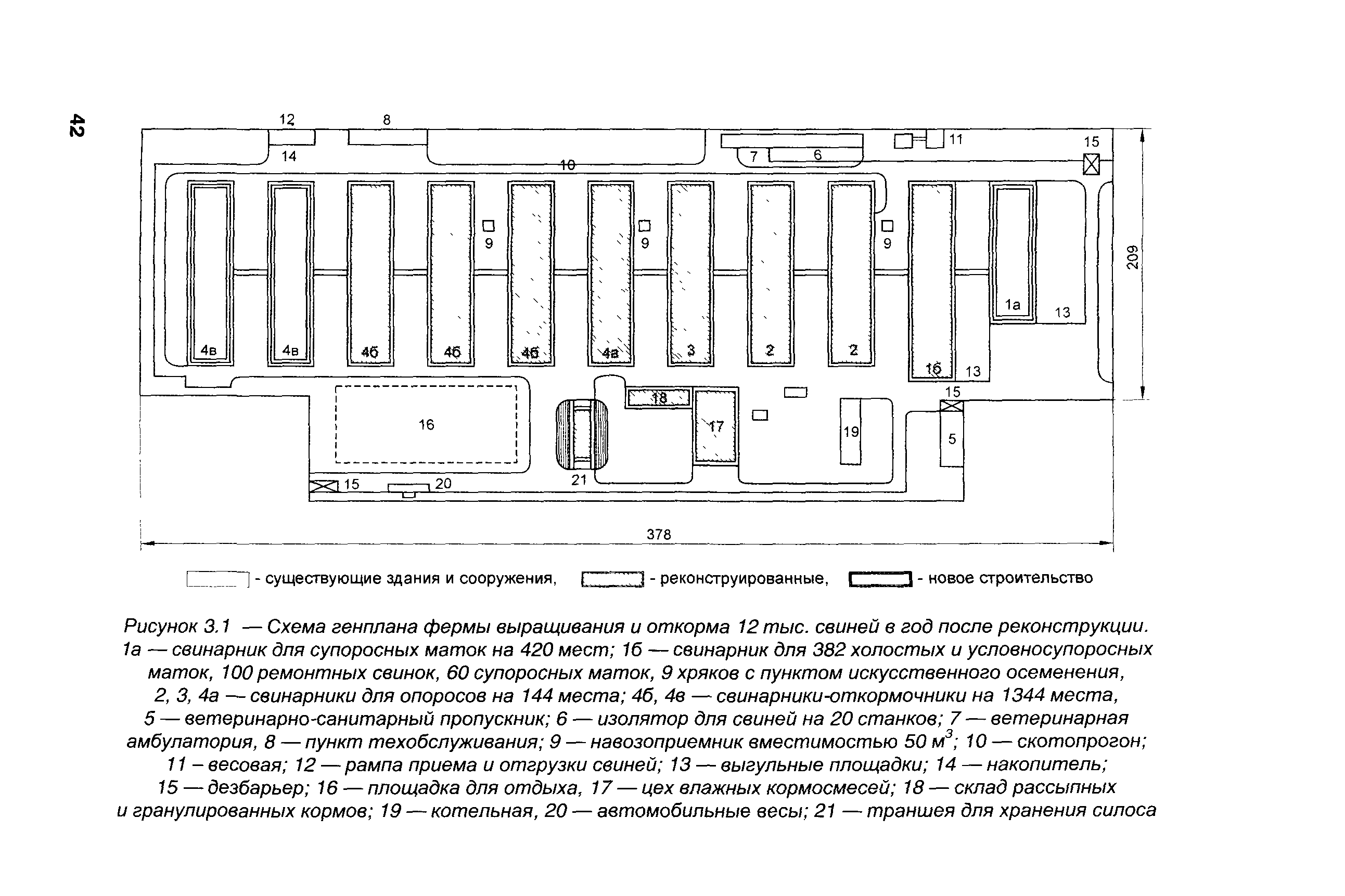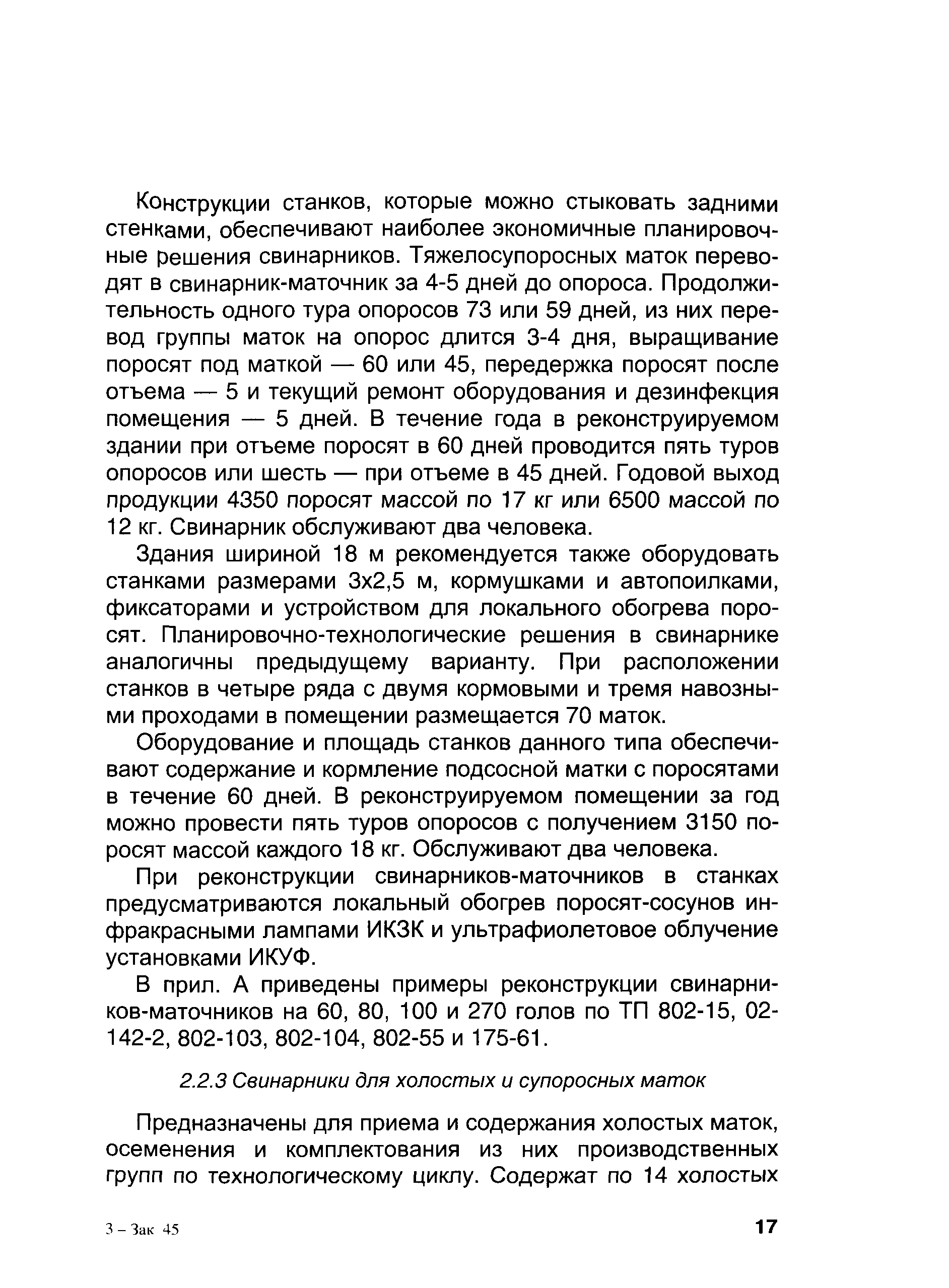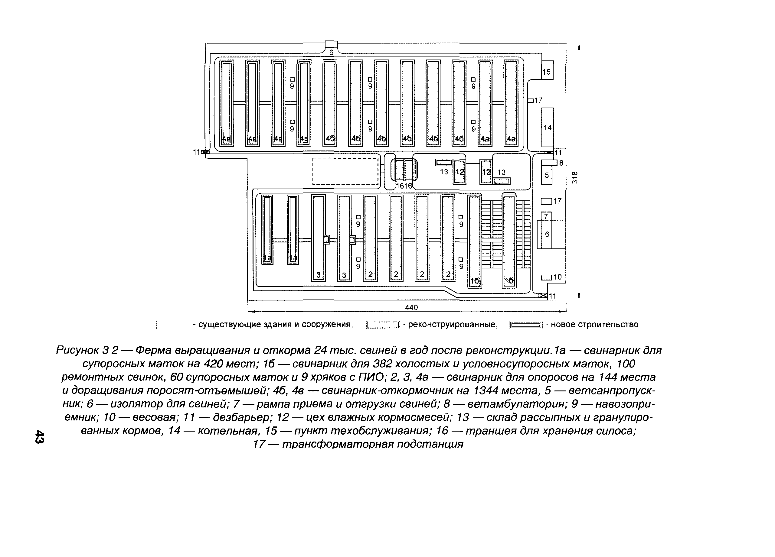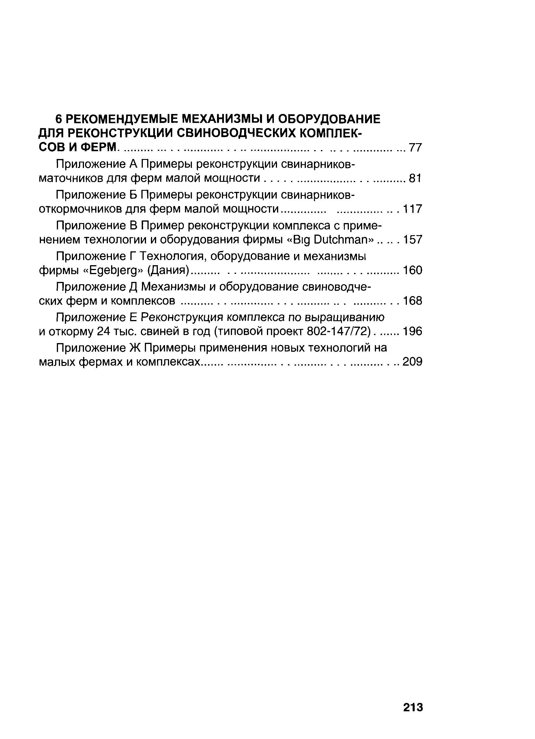 | Оглавление: | 1 Общая часть 2 Реконструкция ферм малой и средней мощности 3 Реконструкция комплексов и ферм малой и средней мощности, построенных по типовым проектам в 70-80-е годы 4 Реконструкция свиноводческих ферм и комплексов на основе новых технологий и оборудования 5 Опыт реконструкции крупных комплексов на базе зарубежных технологий содержания свиней, инженерного и технологического оборудования 6 Рекомендуемые механизмы и оборудование для реконструкции свиноводческих комплексов и ферм Приложение А. Примеры реконструкции свинарников-маточников для ферм малой мощности Приложение Б. Примеры реконструкции свинарников-откормочников для ферм малой мощности Приложение В. Пример реконструкции комплекса с применением технологии и оборудования фирмы "Big Dutchman" Приложение Г. Технология, оборудование и механизмы фирмы "Egebjerg" (Дания) Приложение Д. Механизмы и оборудование свиноводческих ферм и комплексов Приложение Е. Реконмтрукция комплекса по выращиванию и откорму 24 тыс. свиней в год (типовой проект 802-147/72) Приложение Ж. Примеры применения новых технологий на малых фермах и комплексах |