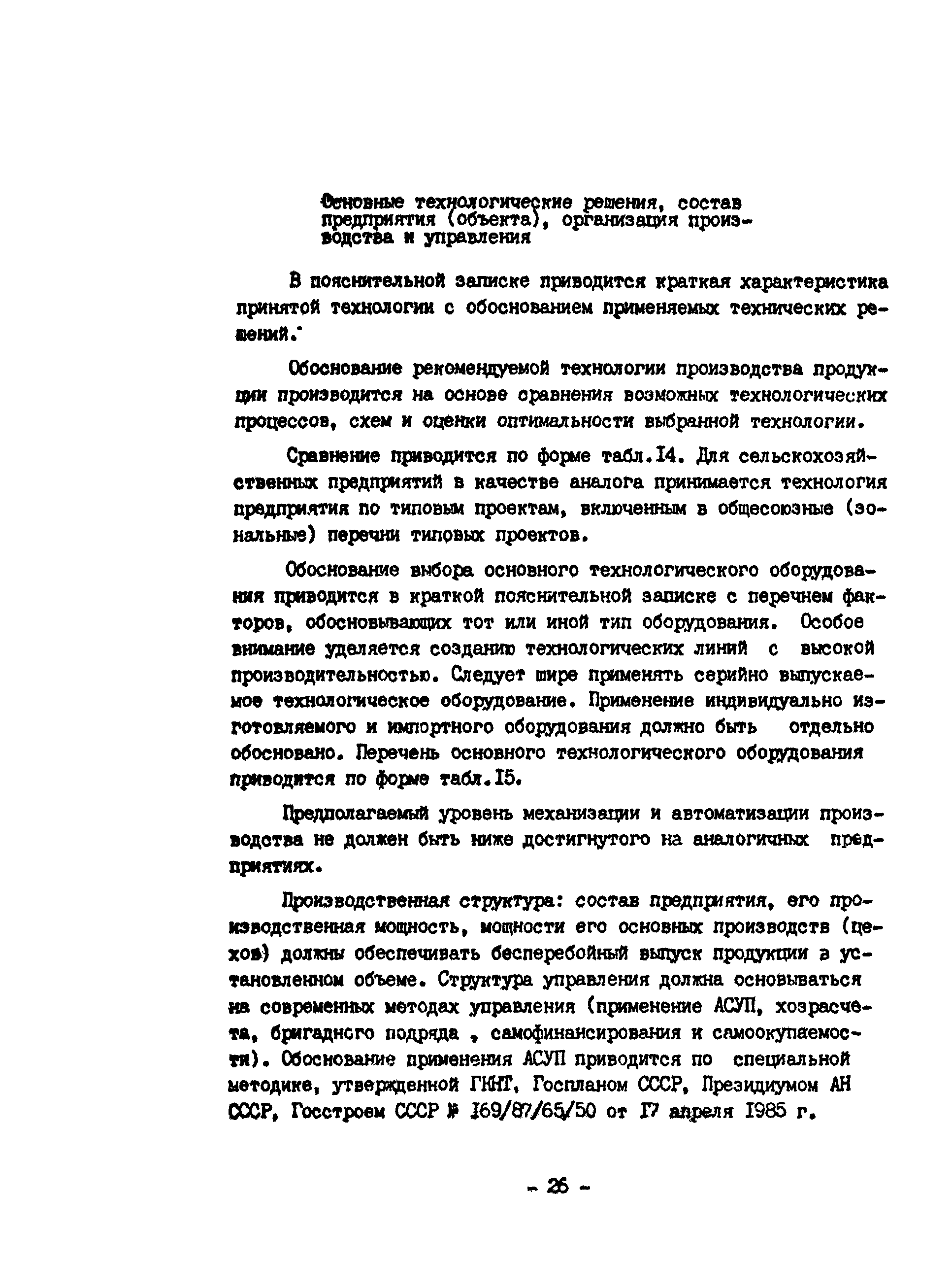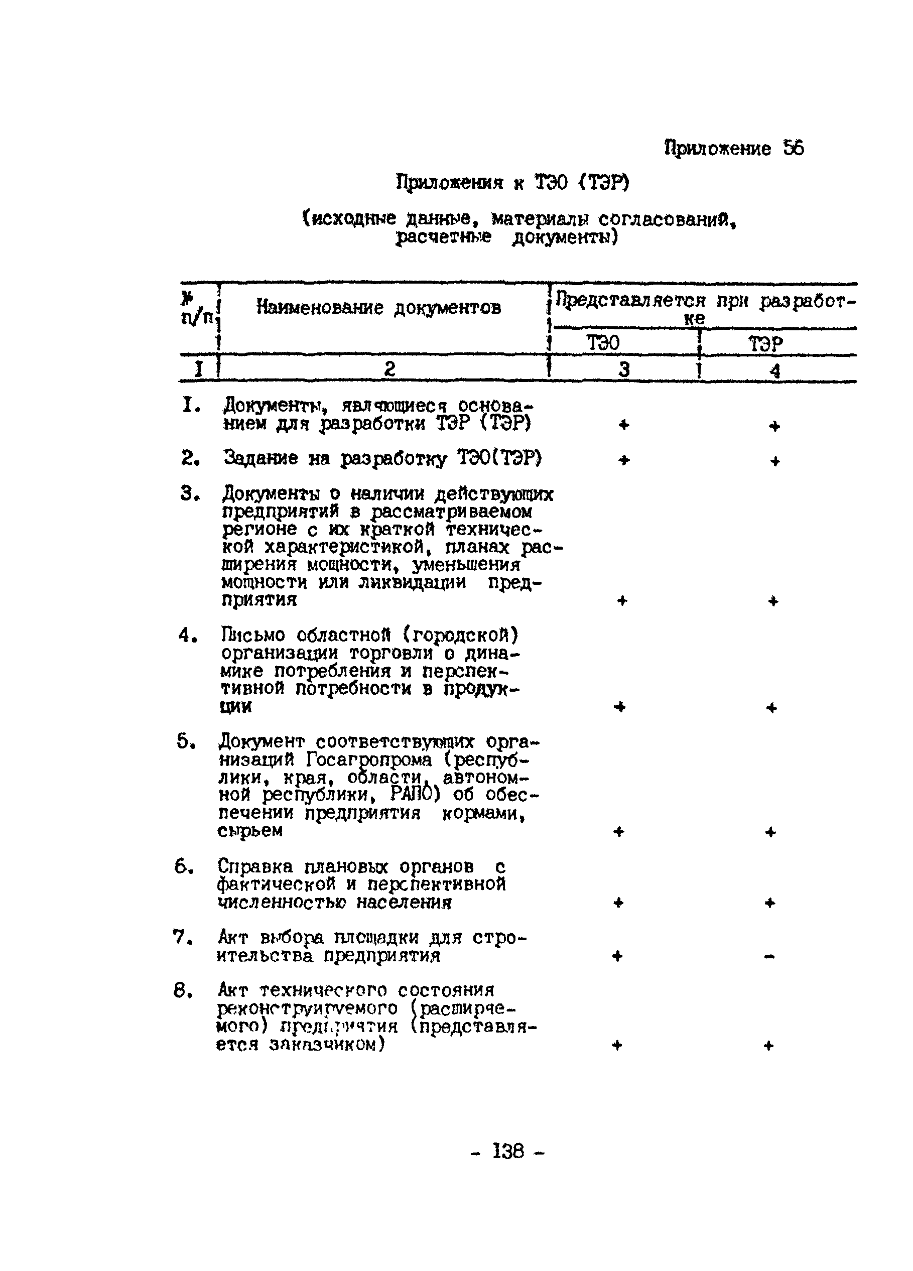 Эталон технико-экономического обоснования (ТЭО) строительства по крупным и сложным сельскохозяйственным предприятиям и сооружениям (а при необходимости и по другим объектам) и технико-экономических расчетов (ТЭР) строительства сельскохозяйственных предприятий Госагропрома СССР| Статус: | действует | | Название рус.: | Эталон технико-экономического обоснования (ТЭО) строительства по крупным и сложным сельскохозяйственным предприятиям и сооружениям (а при необходимости и по другим объектам) и технико-экономических расчетов (ТЭР) строительства сельскохозяйственных предприятий Госагропрома СССР | | Дата добавления в базу: | 01.09.2013 | | Дата актуализации: | 01.01.2021 | | Область применения: | Эталон предназначен для повышения качества разработки ТЭО и ТЭР за счет единообразия экономических расчетов, создания условий сопоставимости экономических показателей проектных решений, для правильного выбора наиболее эффективного варианта проектного решения на стадии разработки ТЭО и ТЭР. | | Оглавление: | Общие положения 1 Исходные данные и положения 2 Мощность (объем производства продукции), номенклатура продукции, специализация и кооперация предприятия 3 Обеспечение предприятий сырьем, материалами, энергией, топливом, водой и трудовыми ресурсами 4 Основные технологические решения, состав предприятия (объекта), организация производства и управления 5 Выбор района, пункта, площадки для строительства и их характеристика 6 Основные строительные решения, организация строительства 7 Охрана окружающей среды 8 Расчетная стоимость строительства 9 Экономика строительства и производства, основные технико-экономические показатели 10 Выводы и предложения Приложения | | Разработан: | ГипроНИсельхоз (Институт Гипронисельхоз )