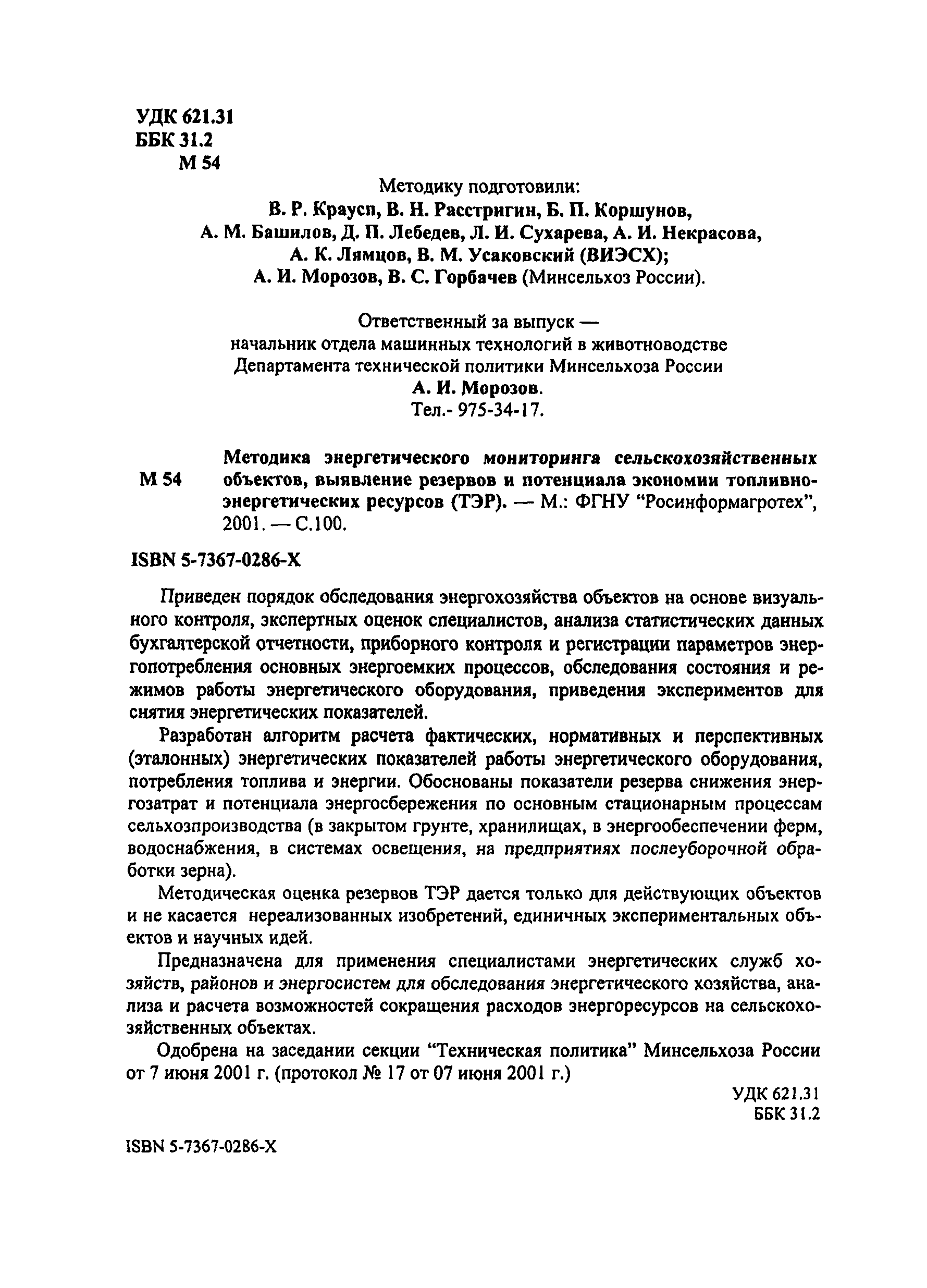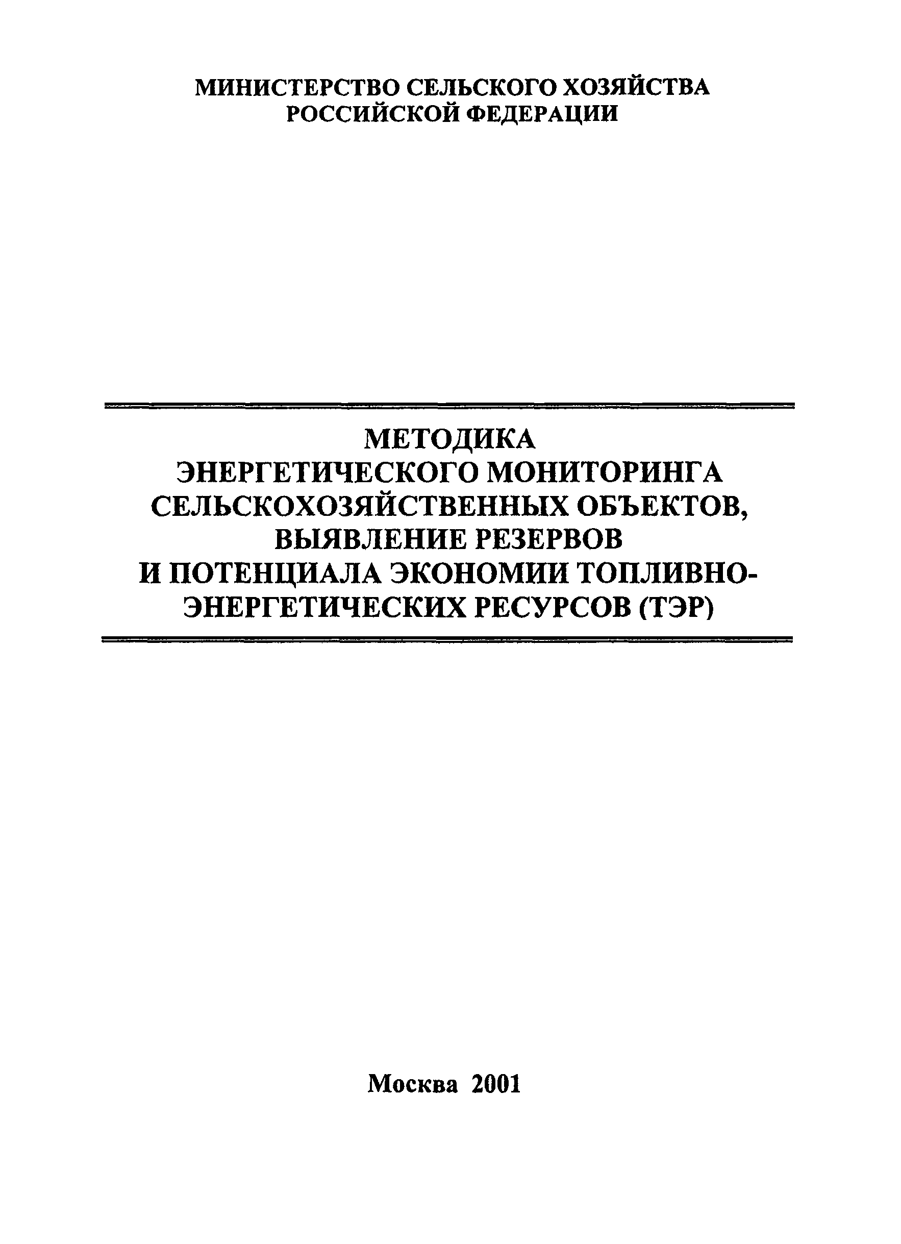Скачать Методика энергетического мониторинга сельскохозяйственных объектов, выявление резервов и потенциала экономии топливно-энергетических ресурсов (ТЭР)Дата актуализации: 01.01.2021