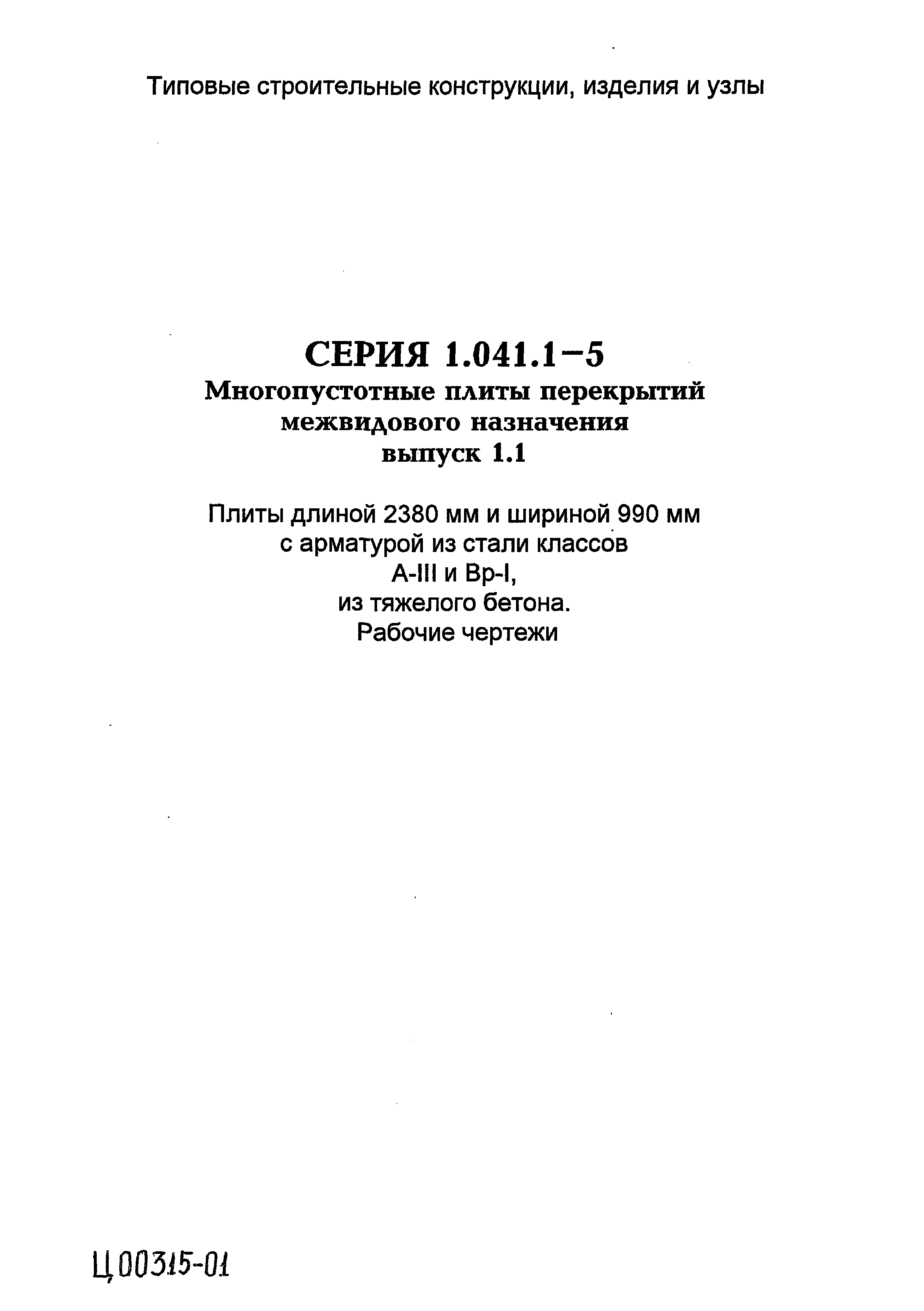 | Название рус.: | Выпуск 1.1. Плиты длиной 2380 мм и шириной 990 мм с арматурой из стали классов А-III и Вр-I, из тяжелого бетона. Рабочие чертежи |