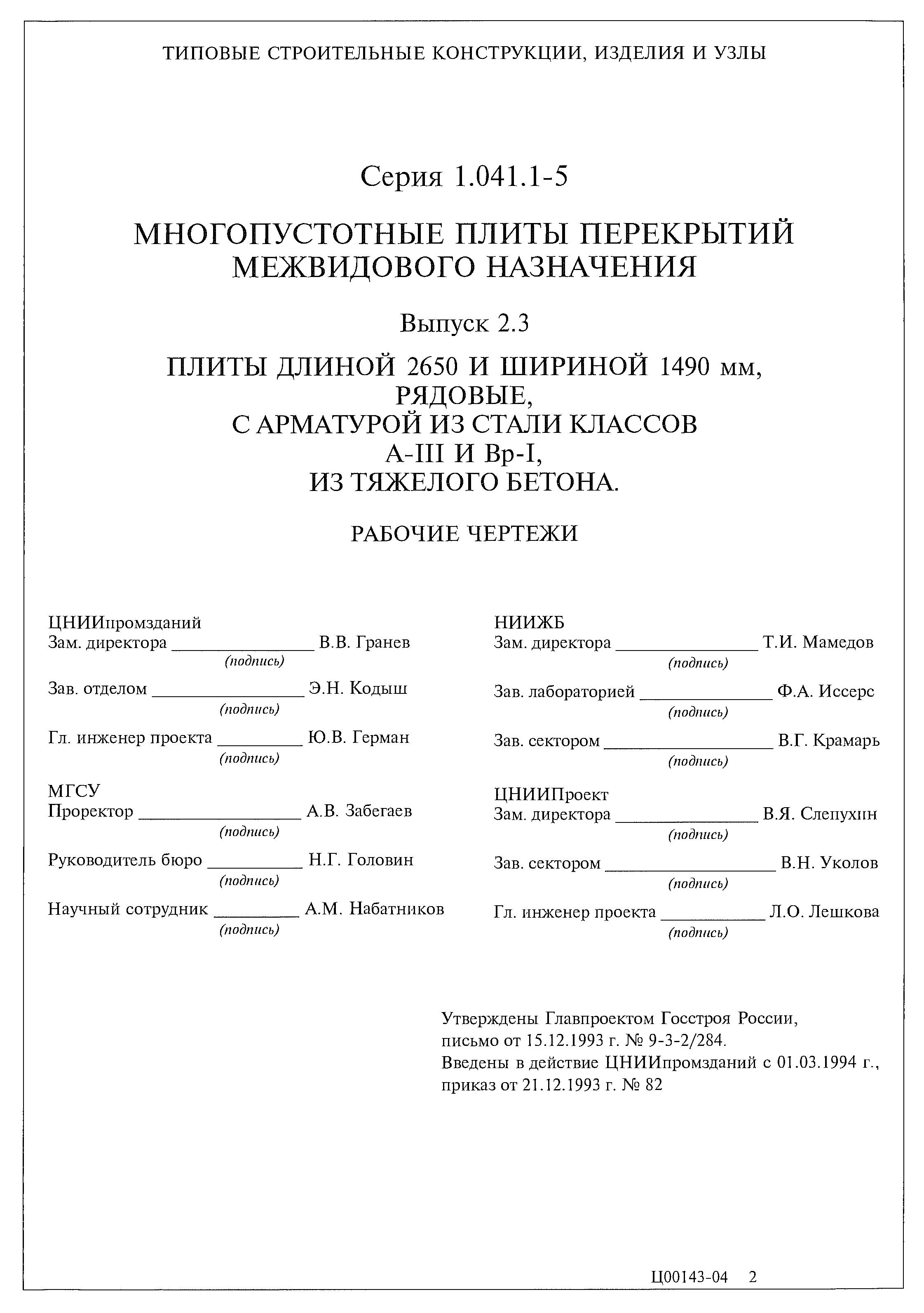 | Утверждён: | 15.12.1993 Главпроект Госстроя России (9-3-2/284) |
