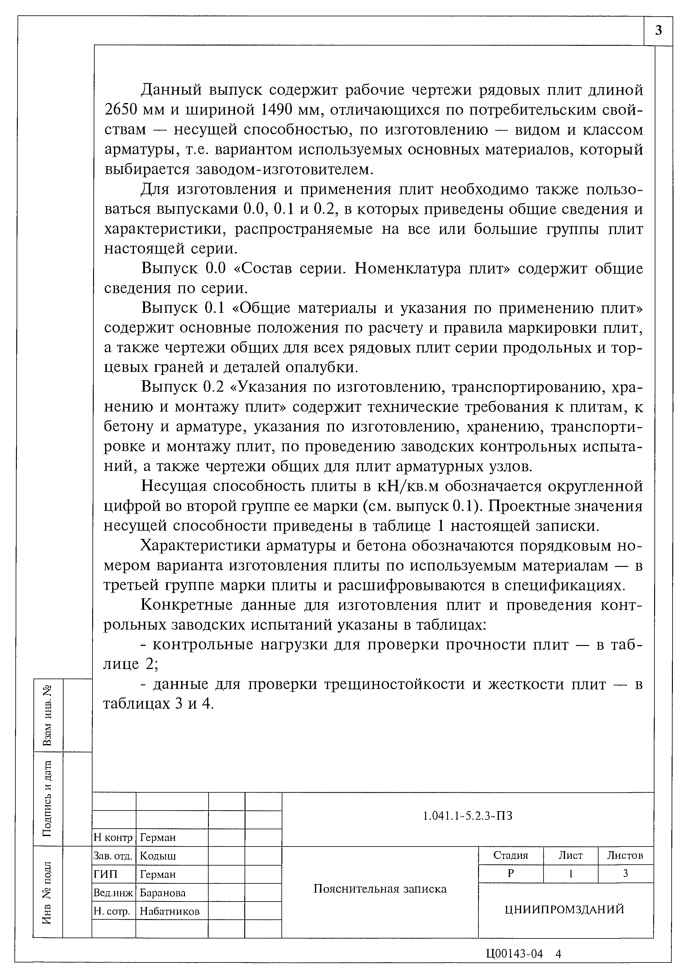 | Область применения: | Выпуск содержит рабочие чертежи рядовых плит длиной 2650 мм и шириной 1490 мм, отличающихся по потребительским свойствам - несущей способностью, по изготовлению - видом и классом арматуры, т.е. вариантом используемых основных материалов, который выбирается заводом-изготовителем. |