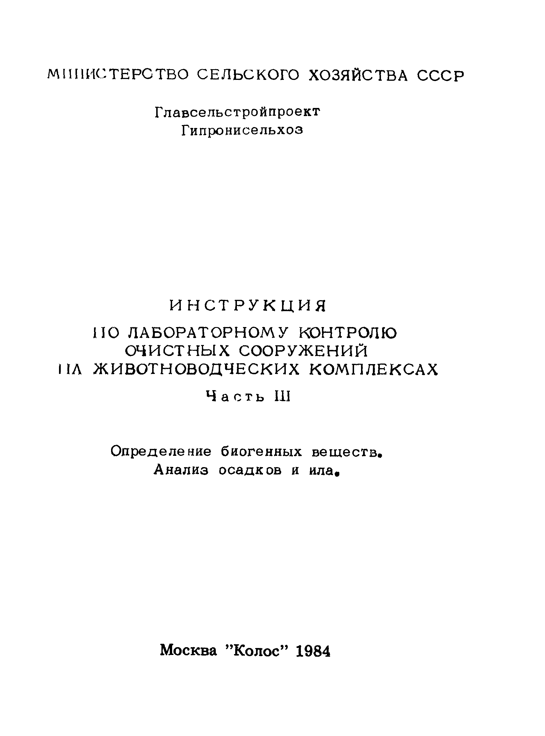 | Название рус.: | Часть III. Определение биогенных веществ. Анализ осадков и ила |
