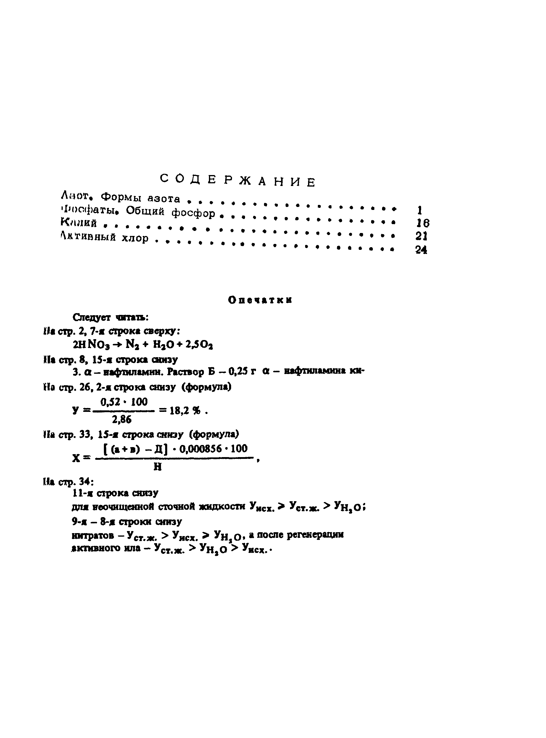 | Оглавление: | 1 Азот. Формы азота 2 Фосфаты. Общий фосфор 3 Калий 4 Активный хлор 5 Анализ осадков и активного ила Приложения |