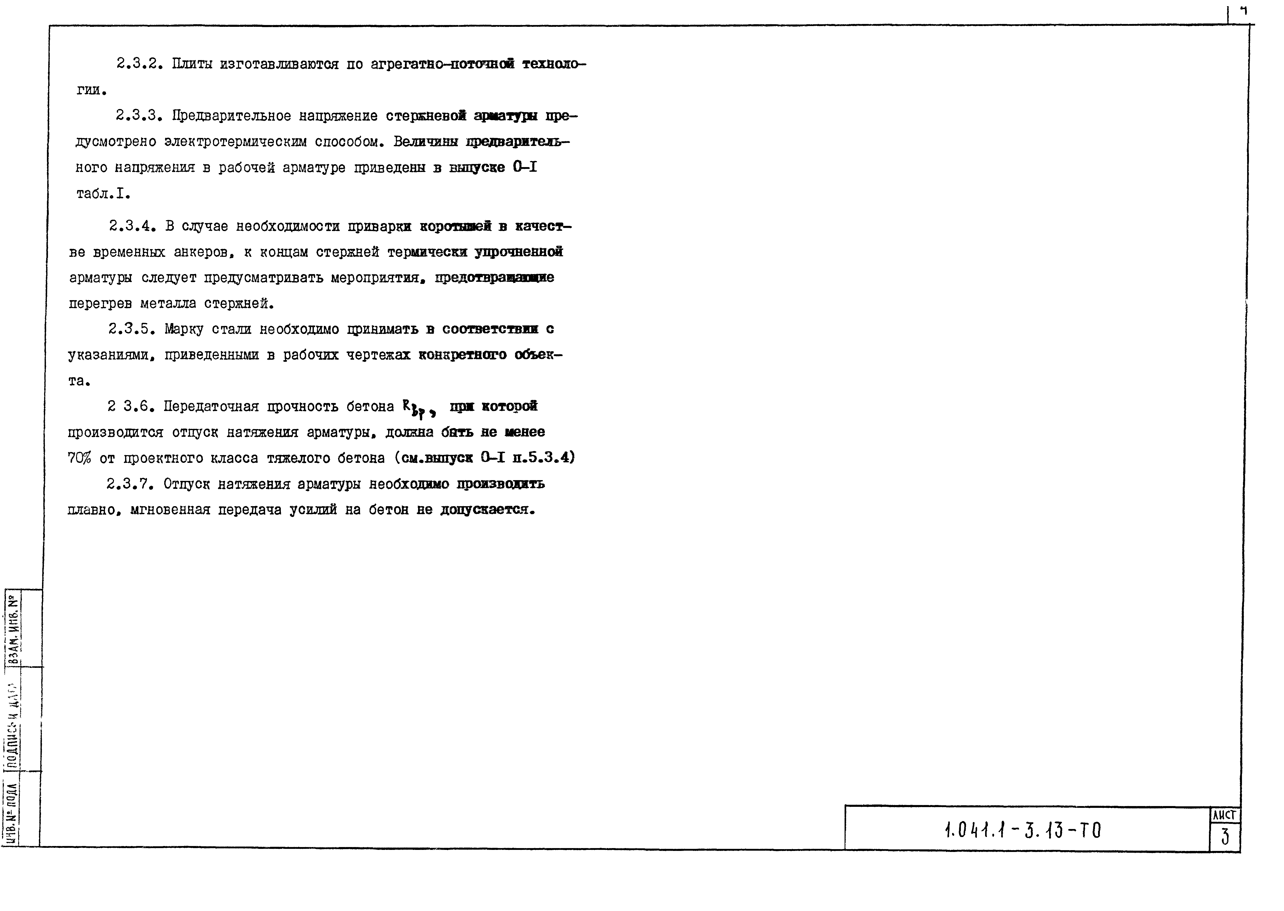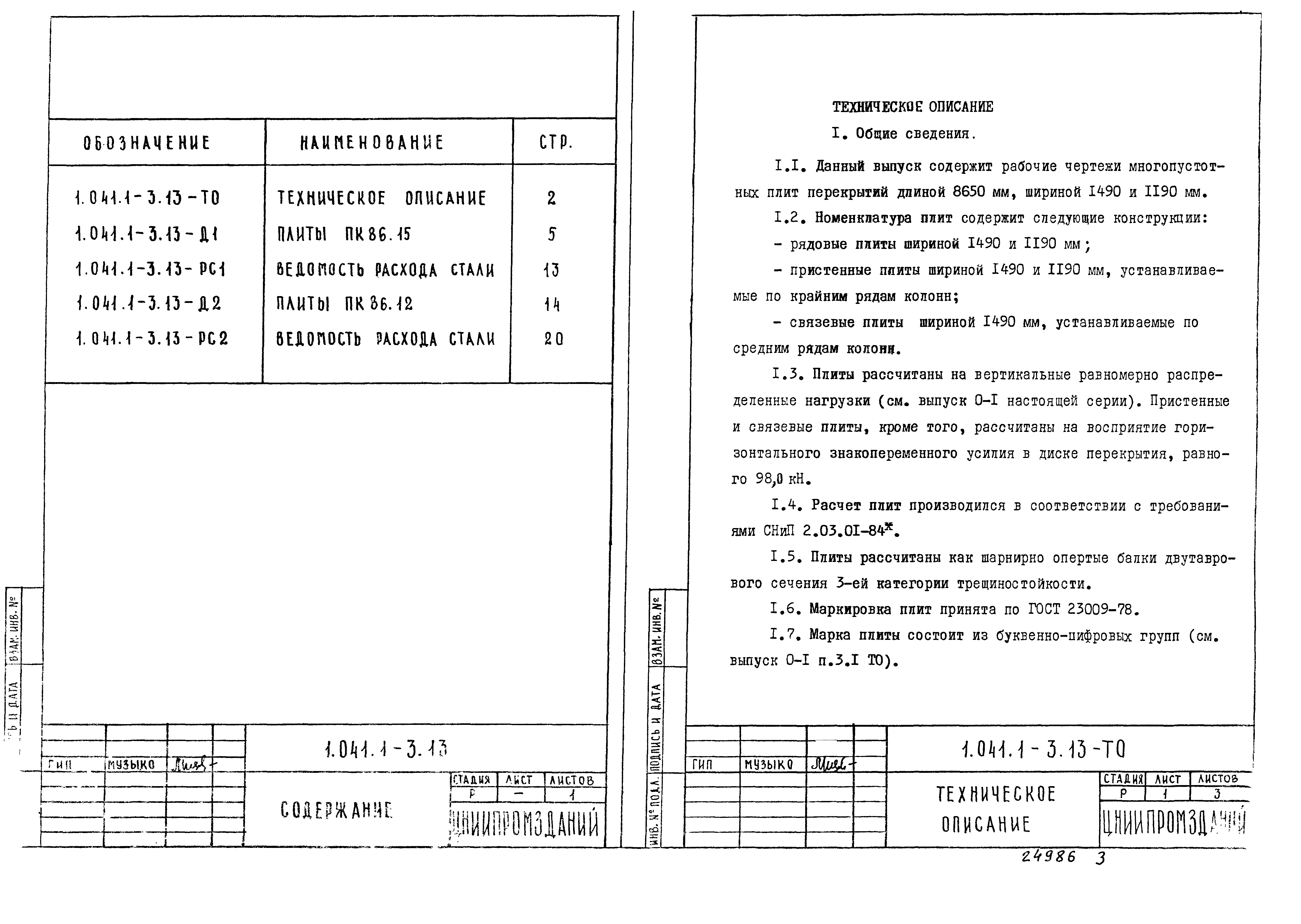 | Оглавление: | 1.041.1-3.13-ТО Техническое описание 1.041.1-3.13-Д1 Плиты ПК 86.15 1.041.1-3.13-РС1 Ведомость расхода стали 1.041.1-3.13-Д2 Плиты ПК86.12 1.041.1-3.13-РС2 Ведомость расхода стали |