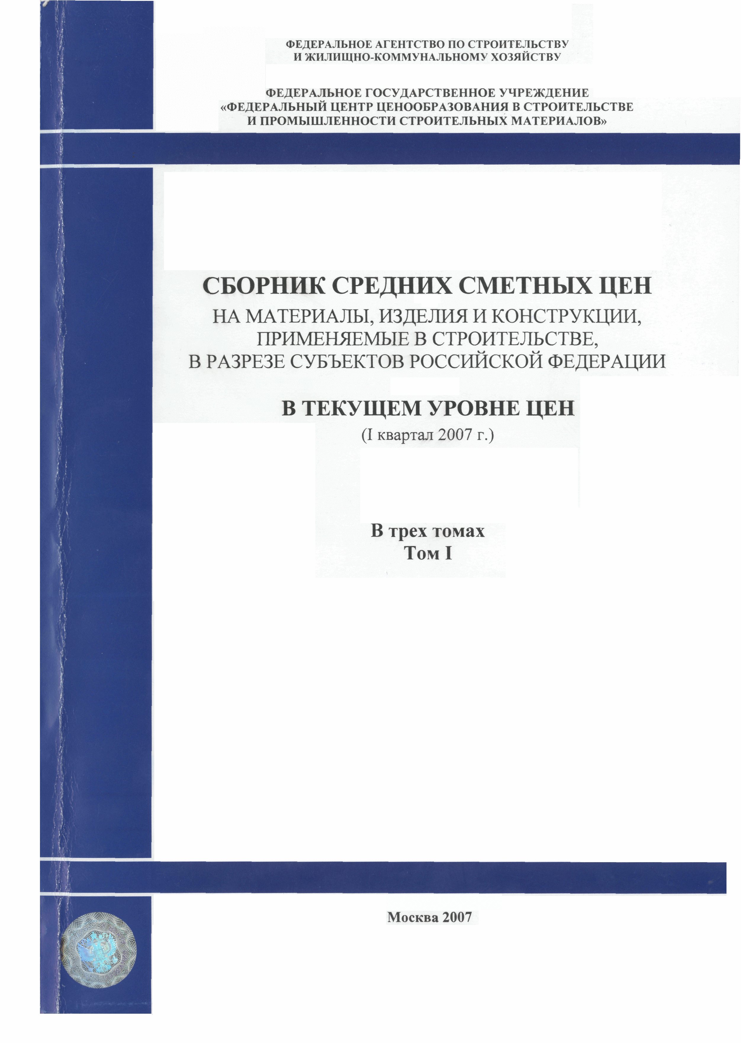Скачать Том I. Сборник средних сметных цен на материалы, изделия и конструкции, применяемые в строительстве, в разрезе субъектов Российской Федерации. В текущем уровне цен (I квартал 2007 г.)Дата актуализации: 01.01.2021