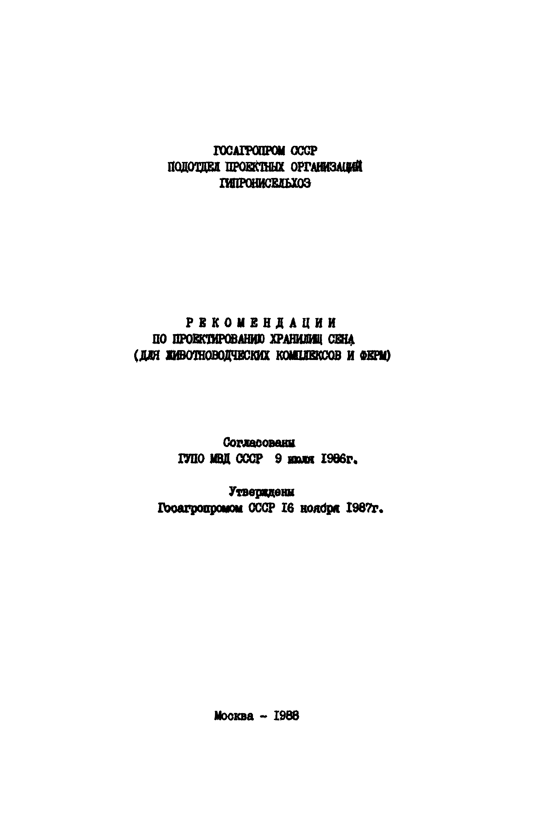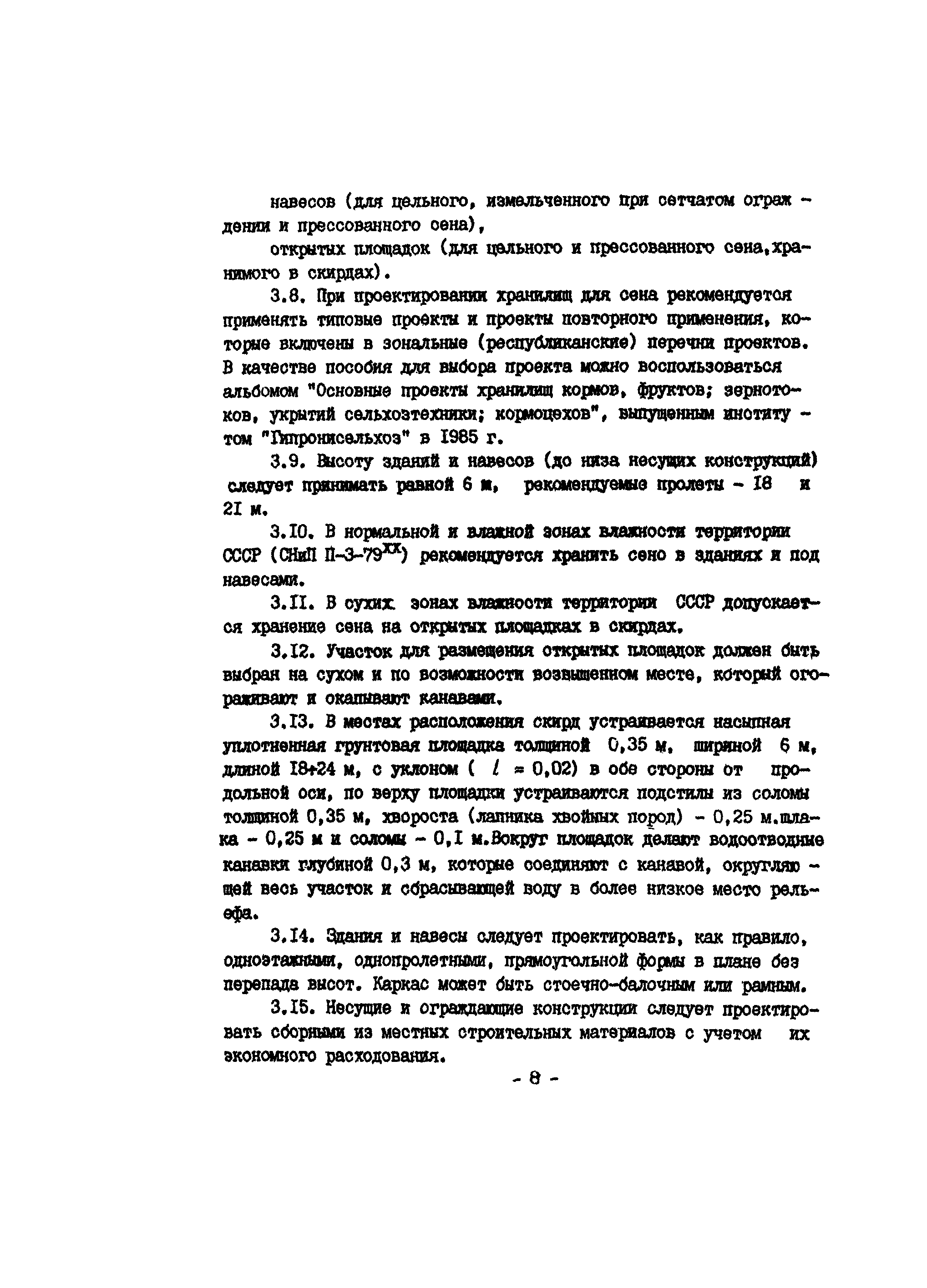 | Область применения: | Требования, предусмотренные рекомендациями, должны соблюдаться при проектировании сенохранилищ (неотапливаемых зданий, навесов и площадок) для животноводческих комплексов и ферм. |
