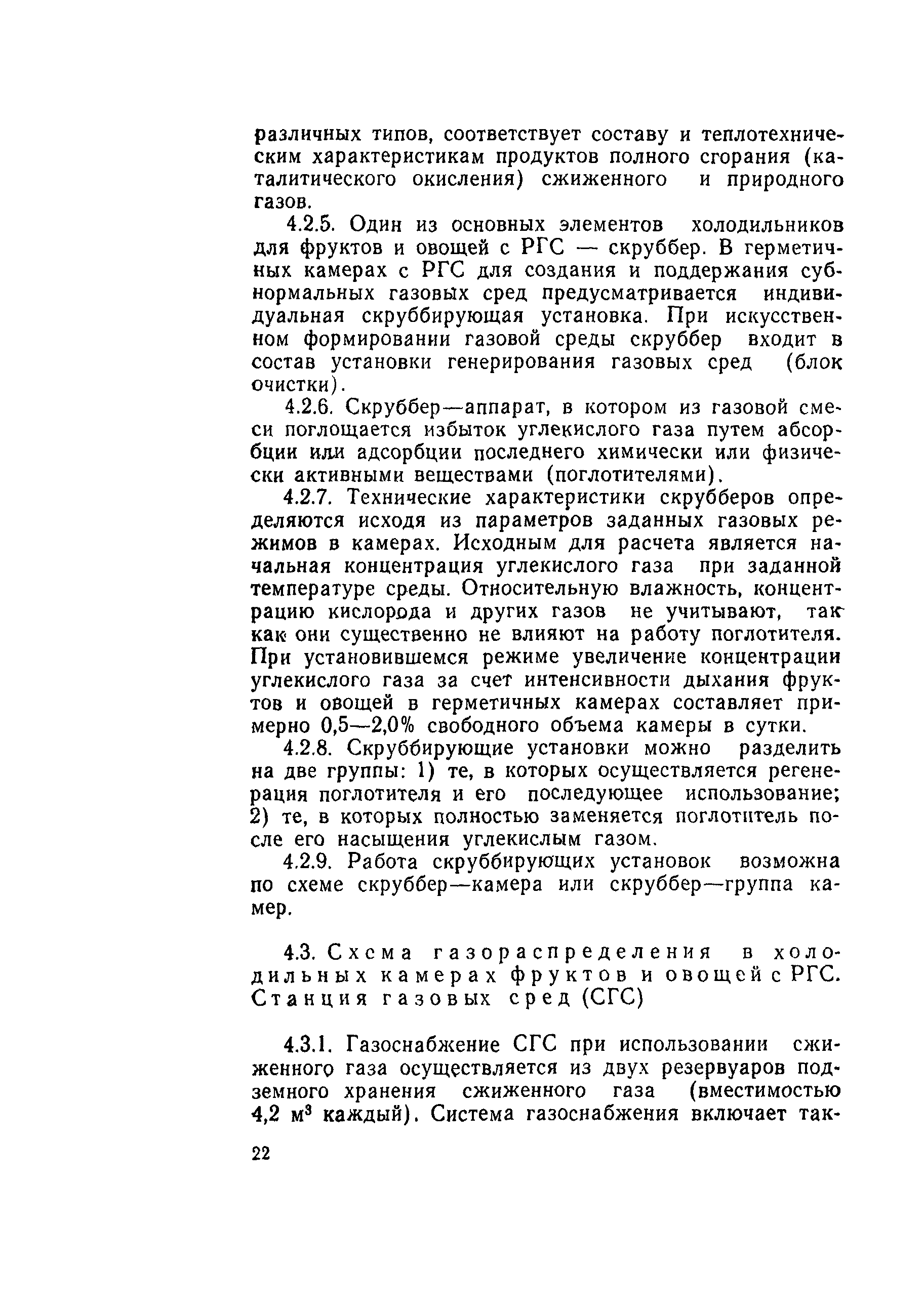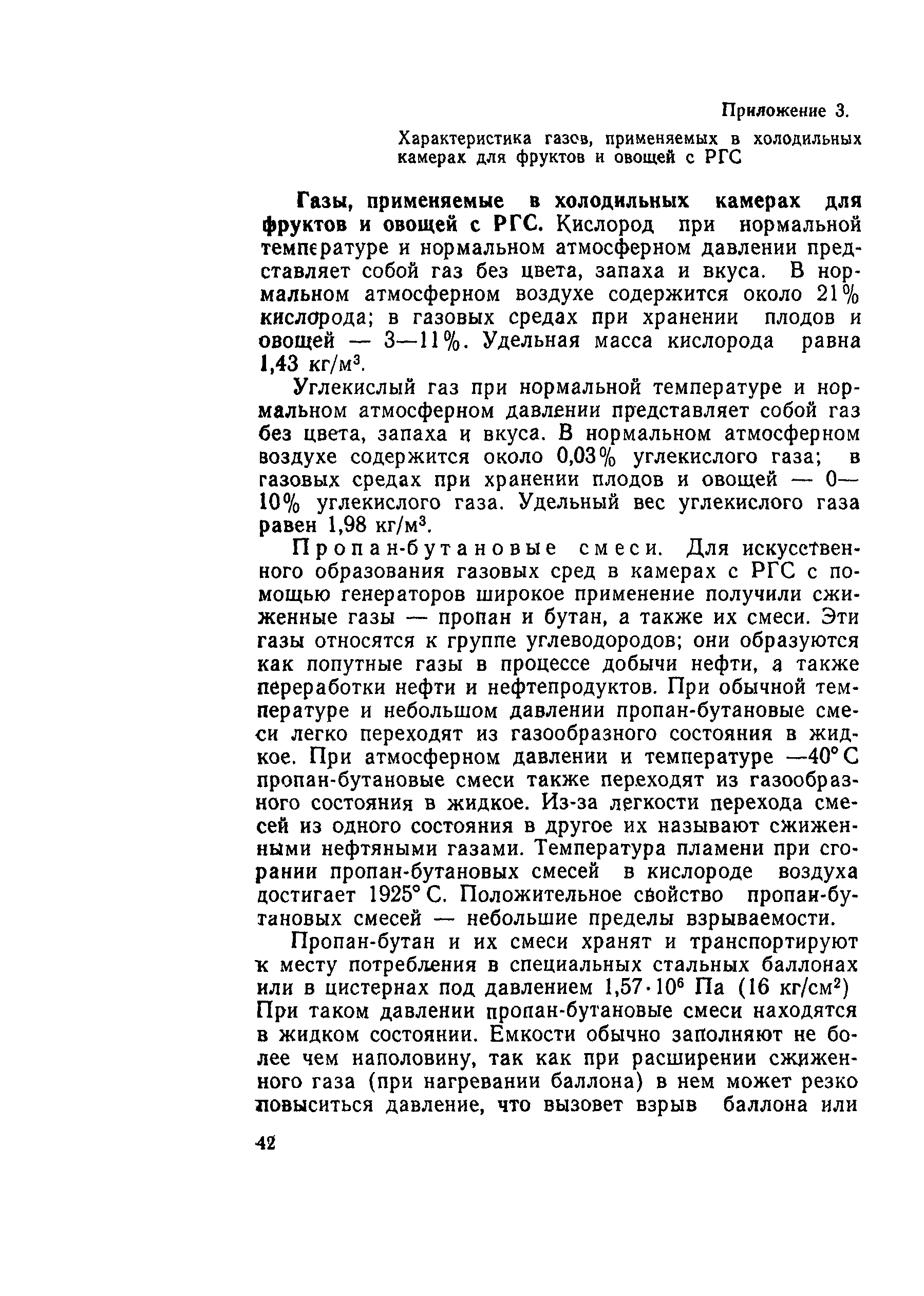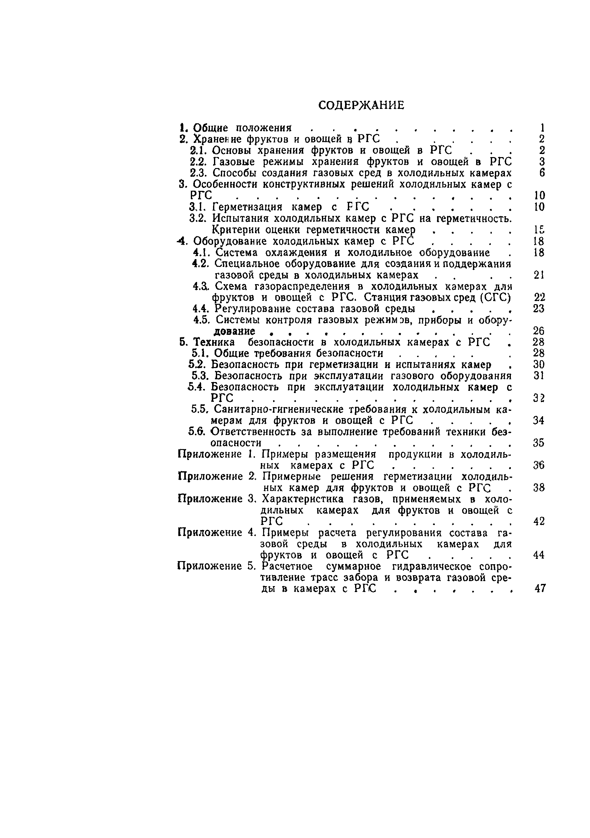 | Оглавление: | 1 Общие положения 2 Хранение фруктов и овощей в РГС 3 Особенности конструктивных решений холодильных камер с РГС 4 Оборудование холодильных камер с РГС 5 Техника безопасности в холодильных камерах с РГС Приложение 1. Примеры размещения продукции в холодильных камерах с РГС Приложение 2. Примерные решения герметизации холодильных камер для фруктов и овощей с рГС Приложение 3. Характеристика газов, применяемых в холодильных камерах для фруктов и овощей с РГС Приложение 4. Примеры расчета регулирования состава газовой среды в холодильных камерах для фруктов и овощей с РГС Приложение 5. Расчетное суммарное гидравлическое сопротивление трасс забора и возврата газовой среды в камерах с РГС |