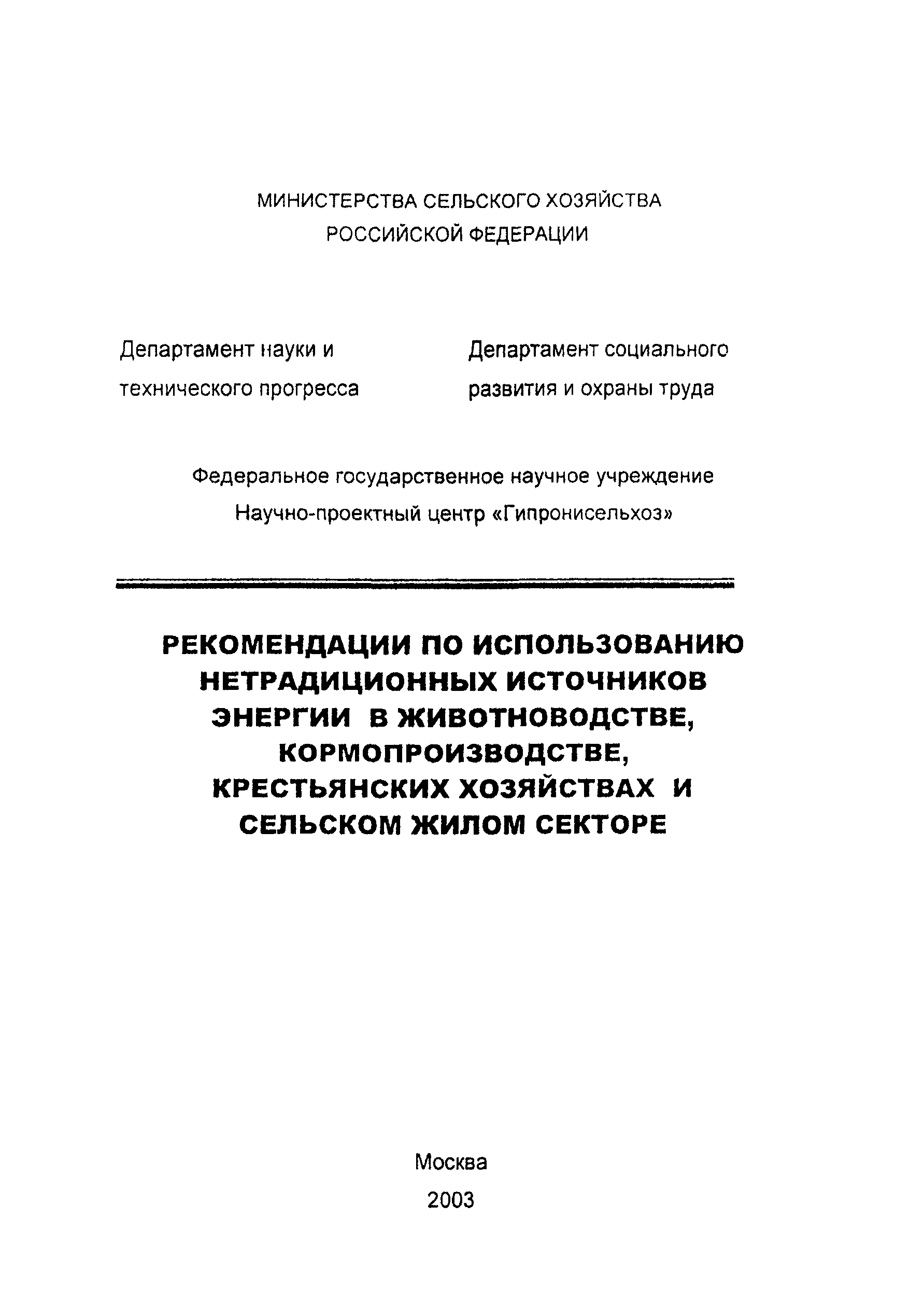 | Название рус.: | Рекомендации по использованию нетрадиционных источников энергии в животноводстве, кормопроизводстве, крестьянских хозяйствах и сельском жилом секторе |
