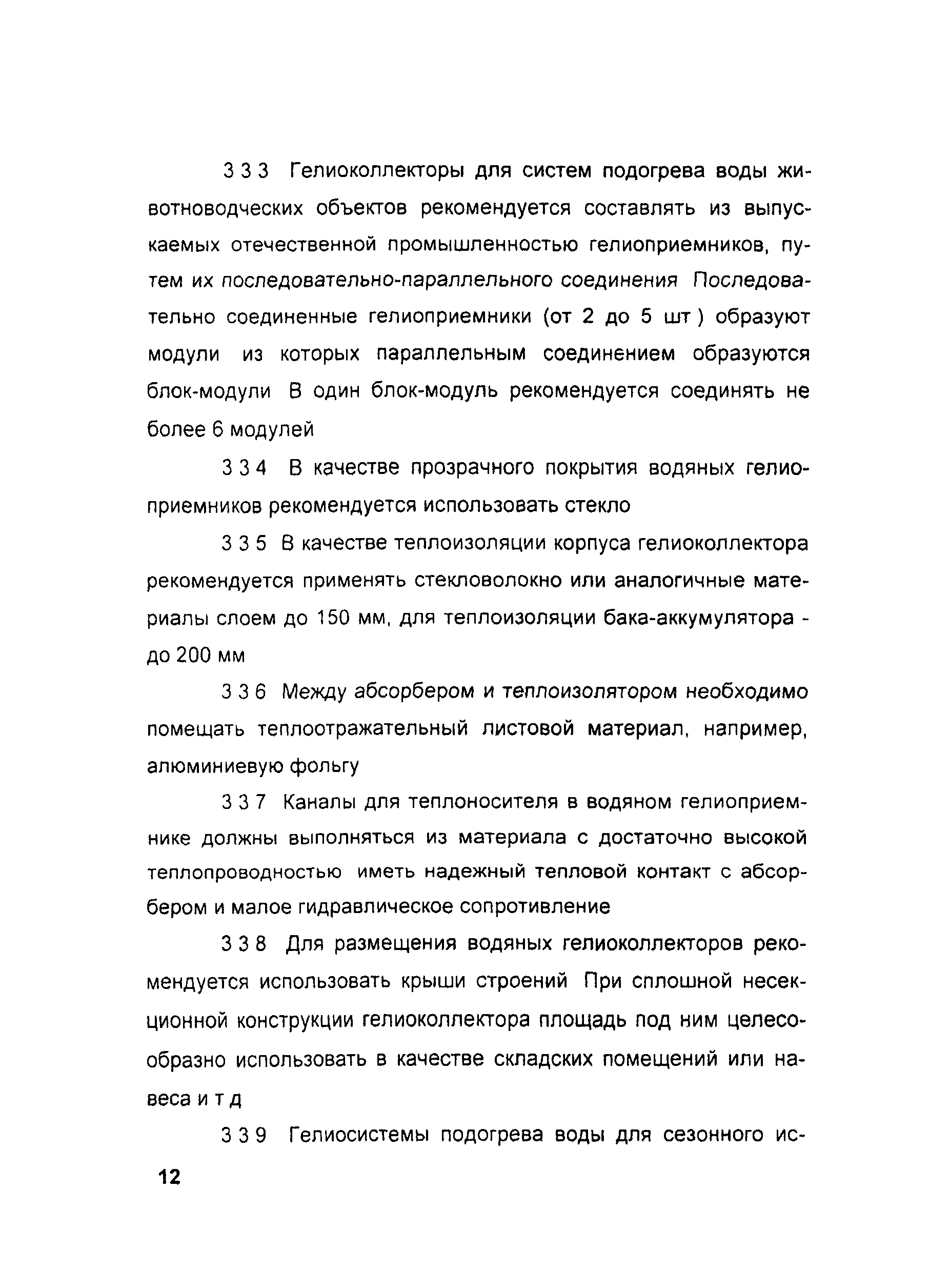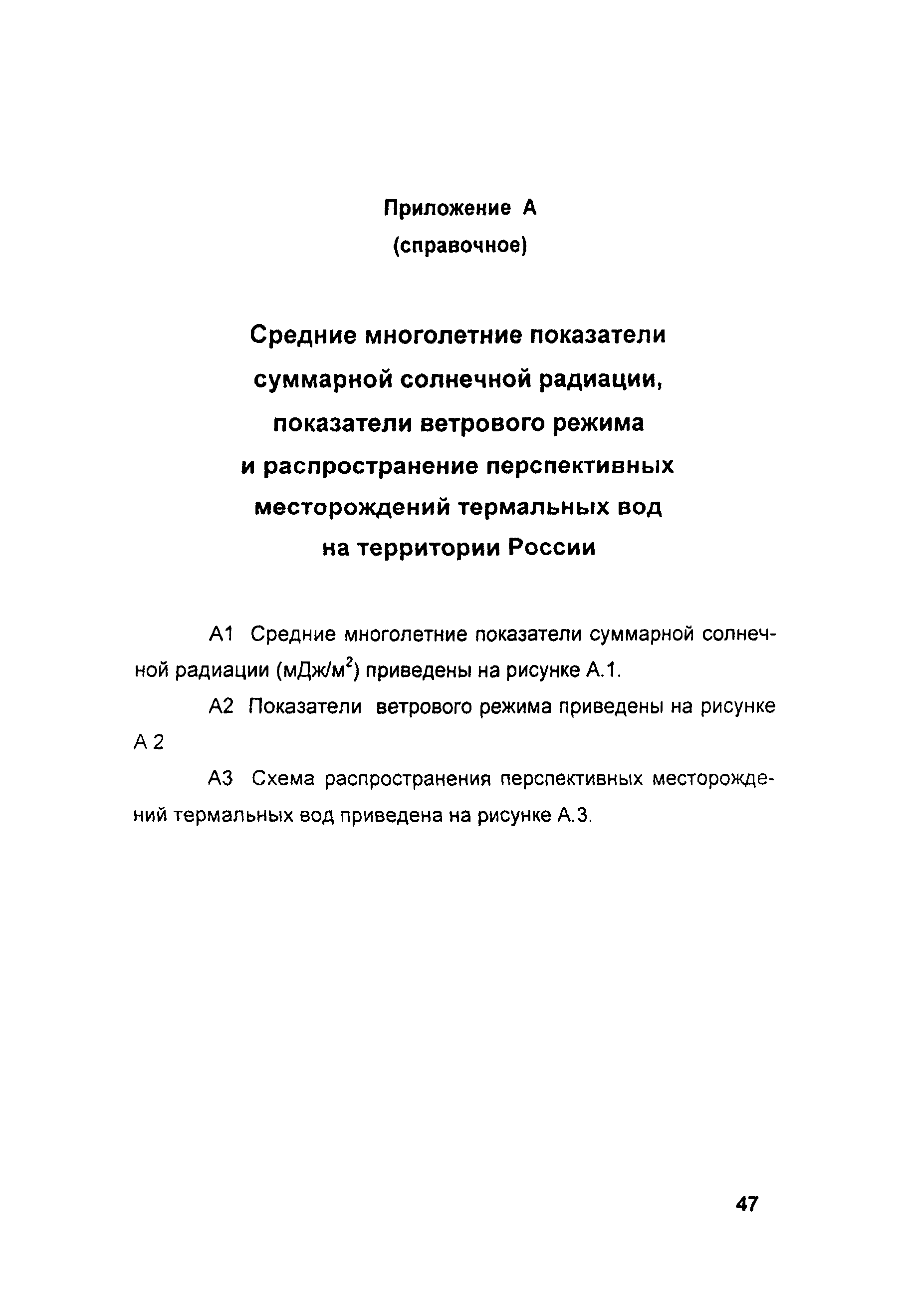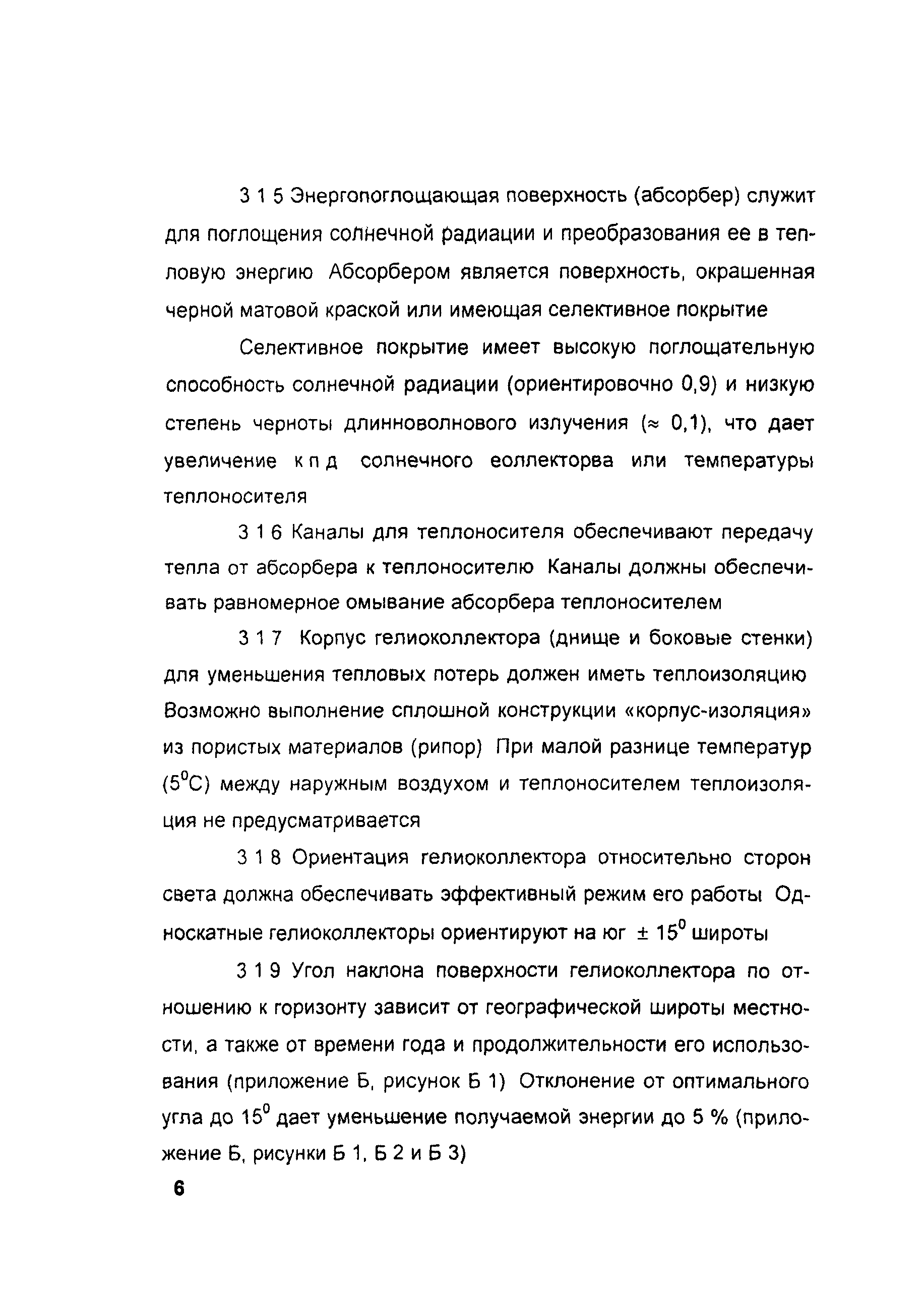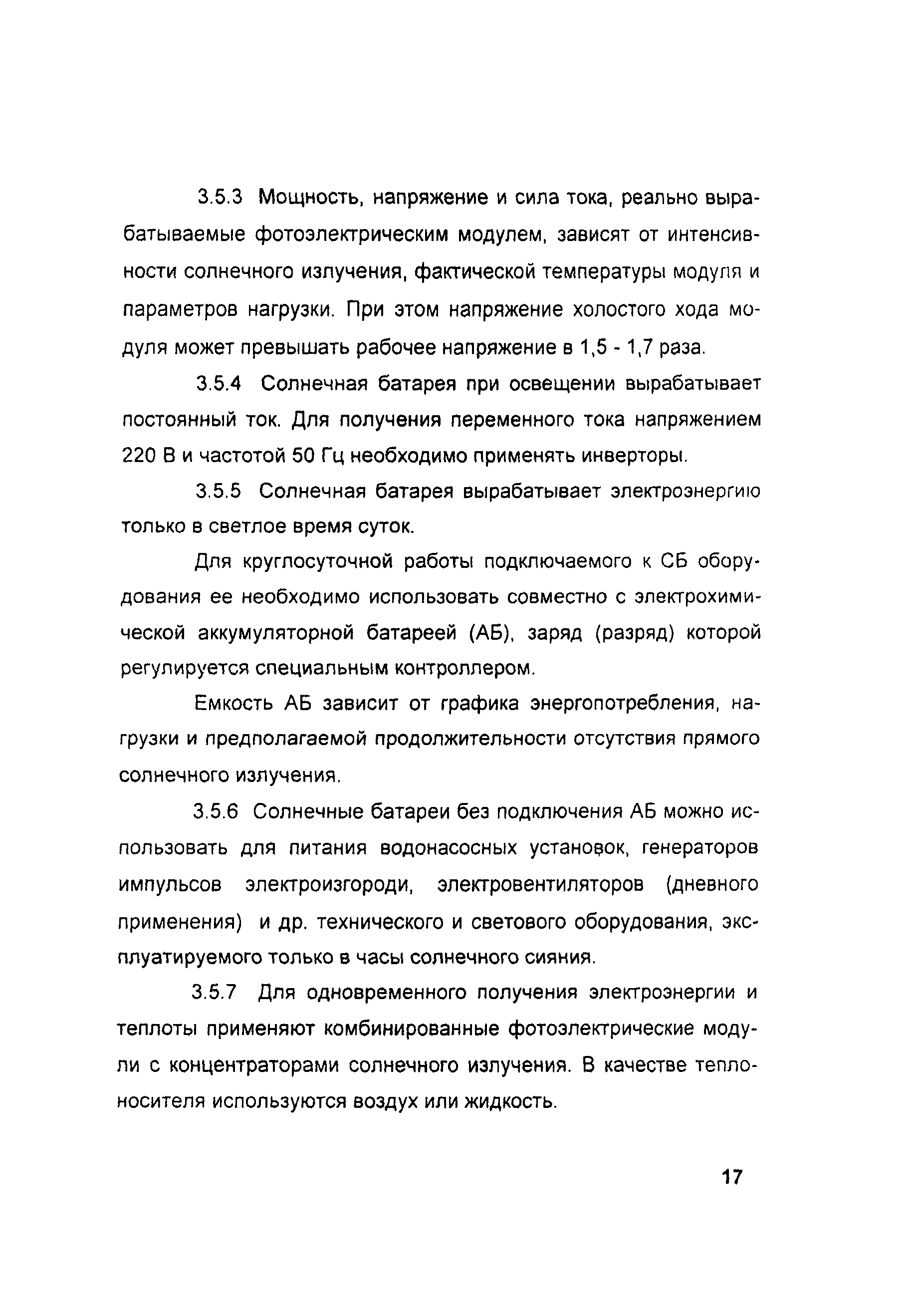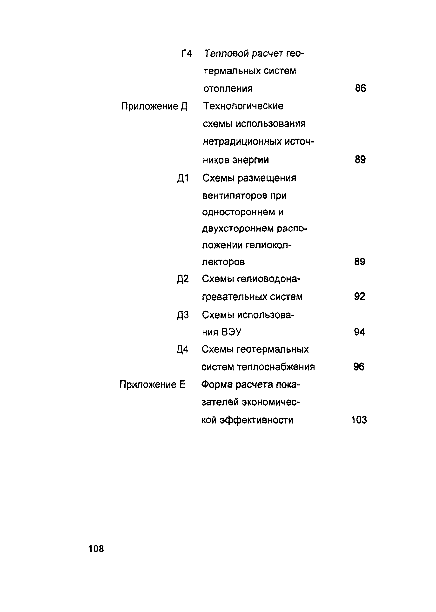 | Оглавление: | Введение 1 Общие положения 2 Нормативные ссылки 3 Рекомендации по использованию солнечной радиации 4 Рекомендации по использованию энергии ветра 5 Использование геотермальных вод 6 Рекомендации по проектированию систем утилизации вторичного тепла применительно к животноводческим зданиям 7 Экономическая эффективность использования нетрадиционных источников энергии в сельском хозяйстве Приложение А. Средние многолетние показатели суммарной солнечной радиации, показатели ветрового режима и распространение перспективных месторождений терминальных вод на территории России Приложение Б. Графики для определения оптимального угла наклона поверхности, суммарной солнечной радиации при различной ориентации и разных углов наклона гелиоколлектора Приложение В. Характеристики материалов и агрегатов, применяемых при использовании нетрадиционных источников энергии Приложение Г. Методики теплотехнического расчета Приложение Д. Технологические схемы использования нетрадиционных источников энергии Приложение Е. Форма расчета показателей экономической эффективности |