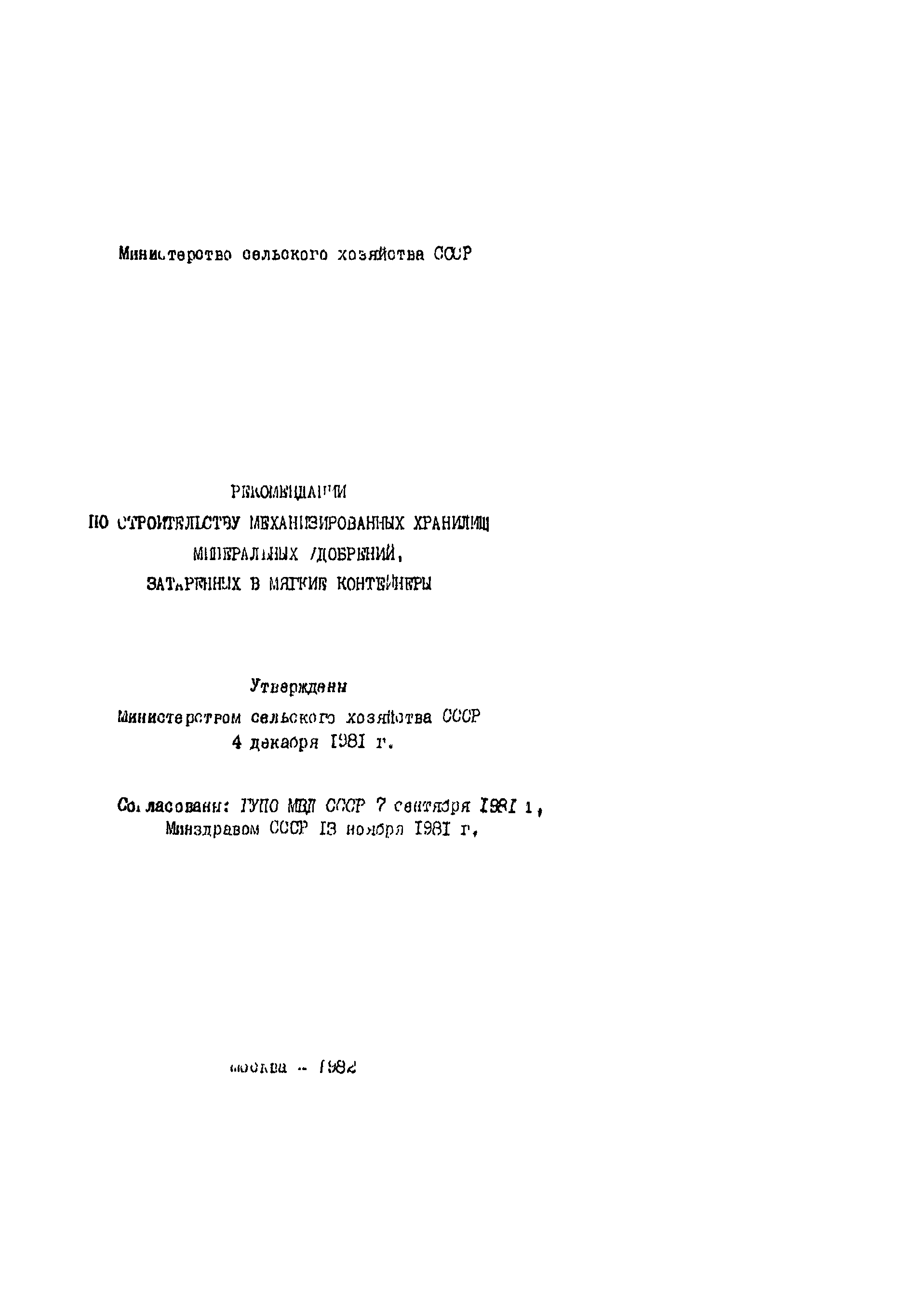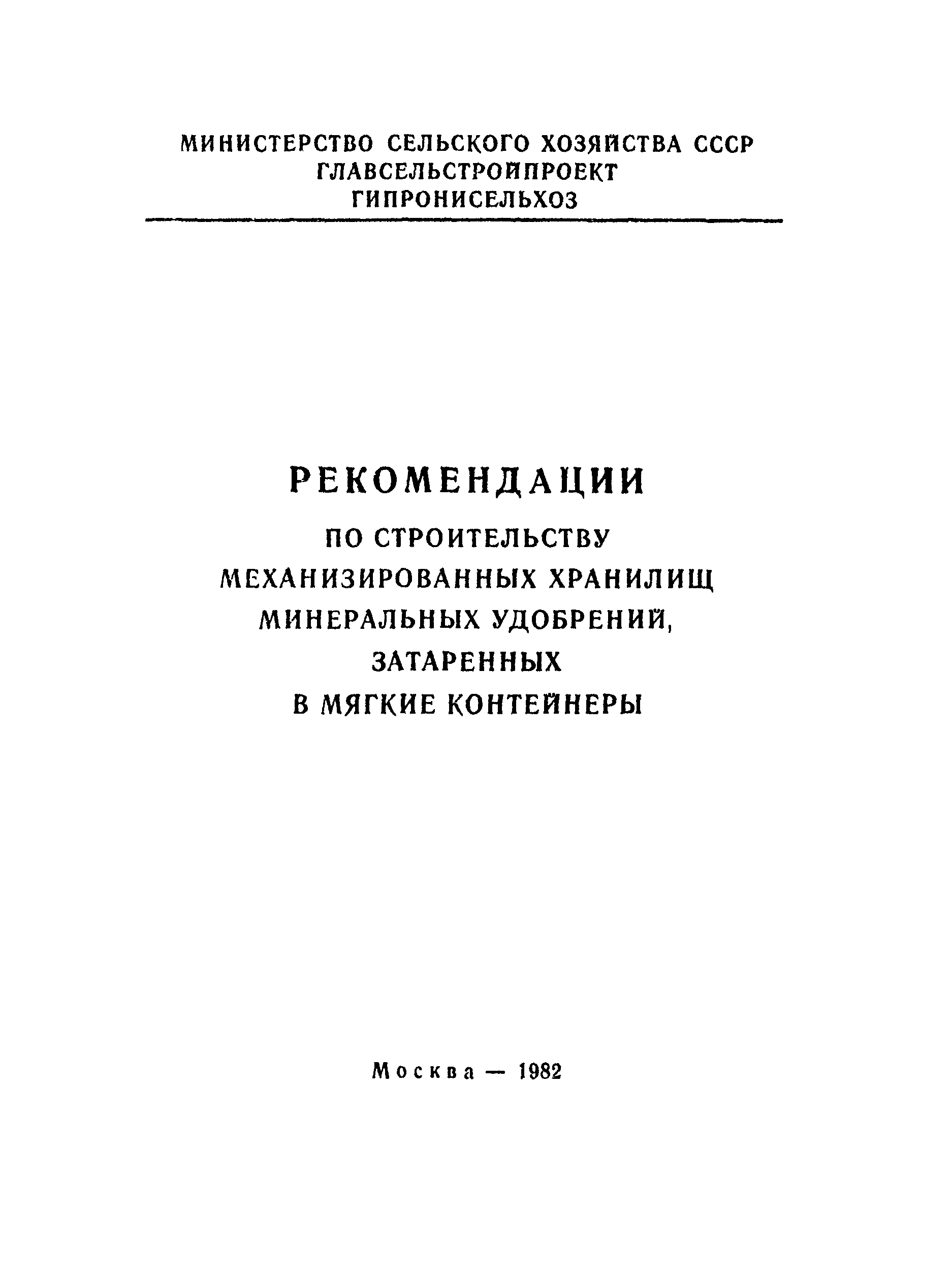 | Название рус.: | Рекомендации по строительству механизированных хранилищ минеральных удобрений, затаренных в мягкие контейнеры |