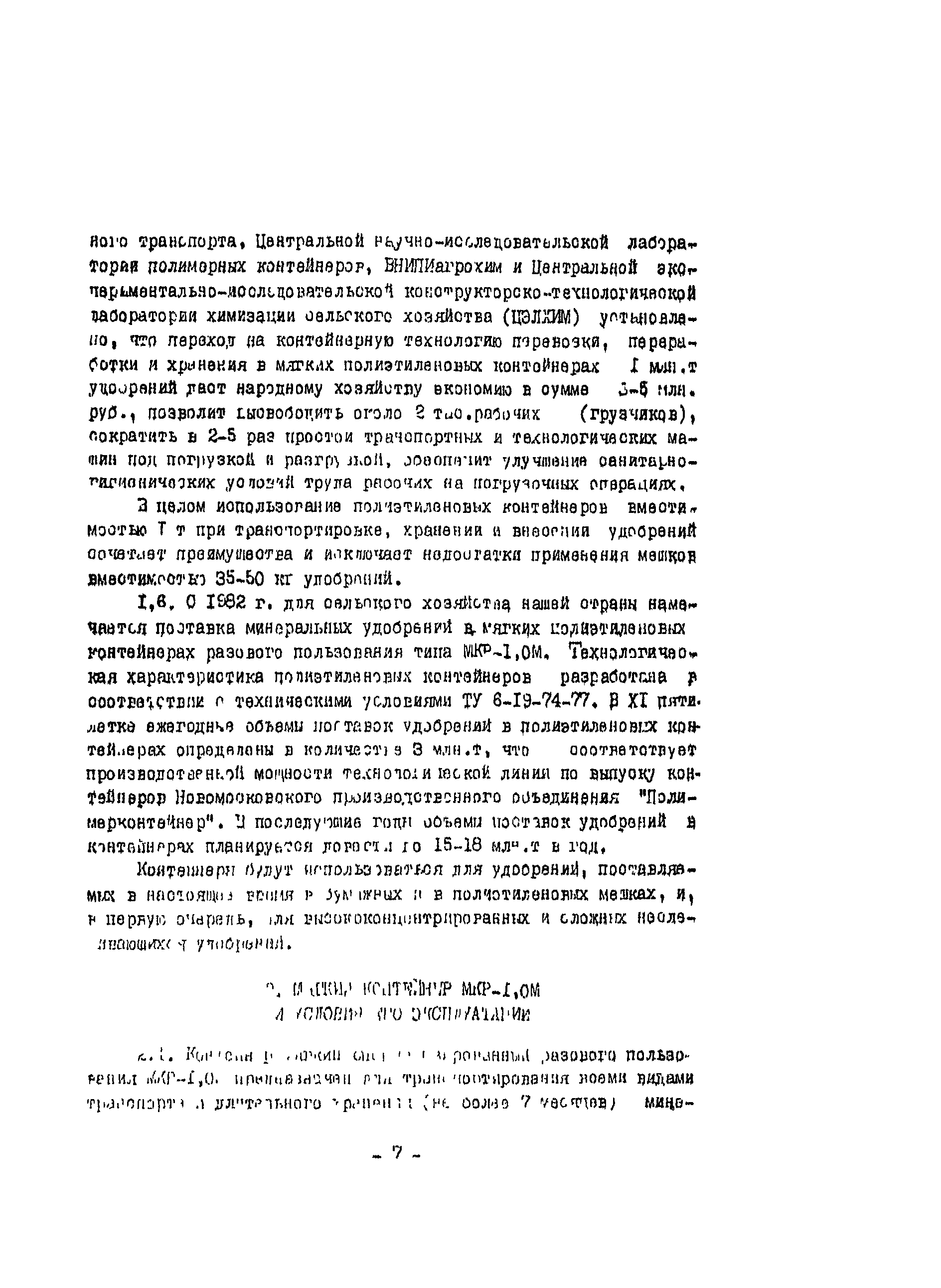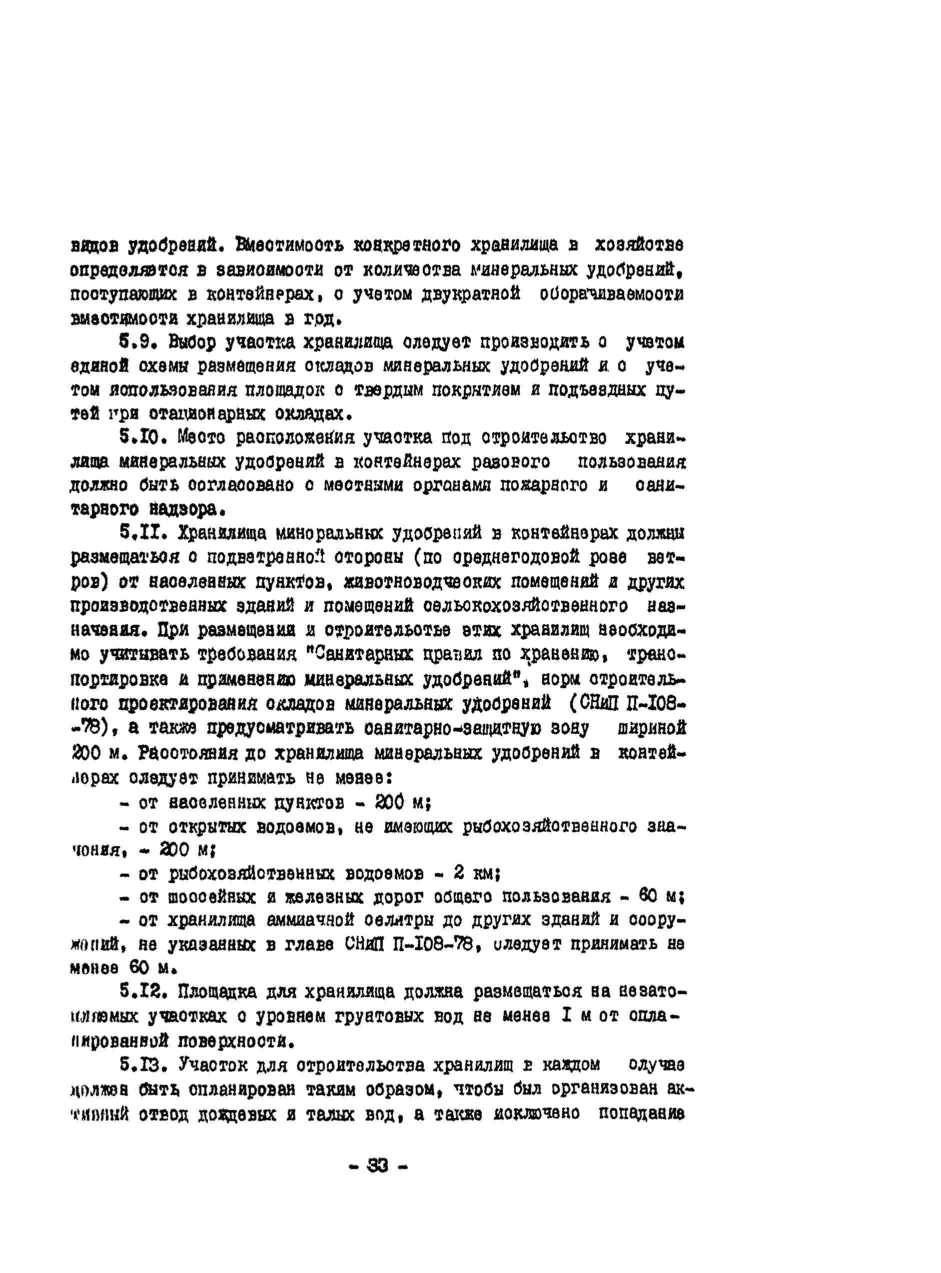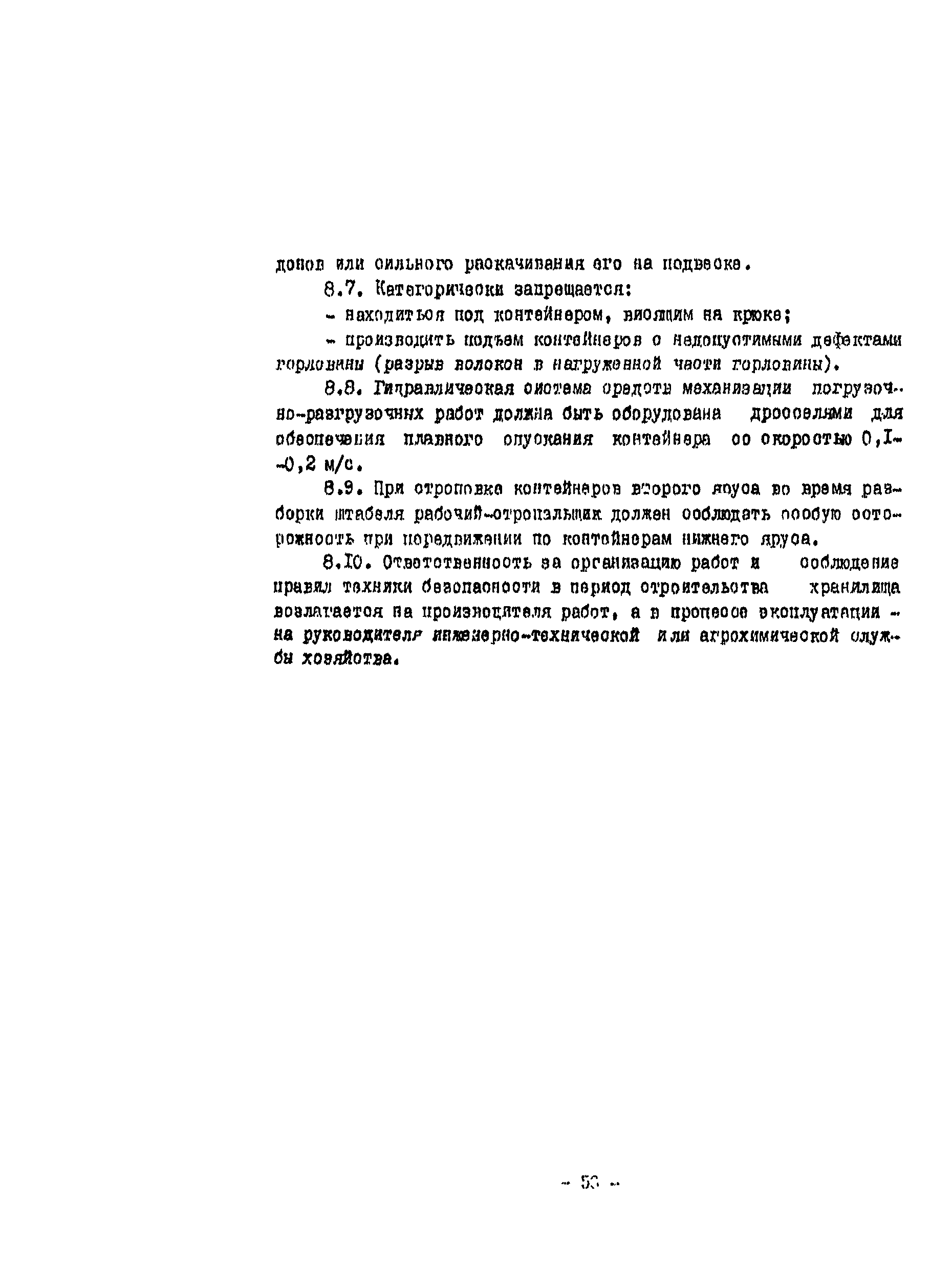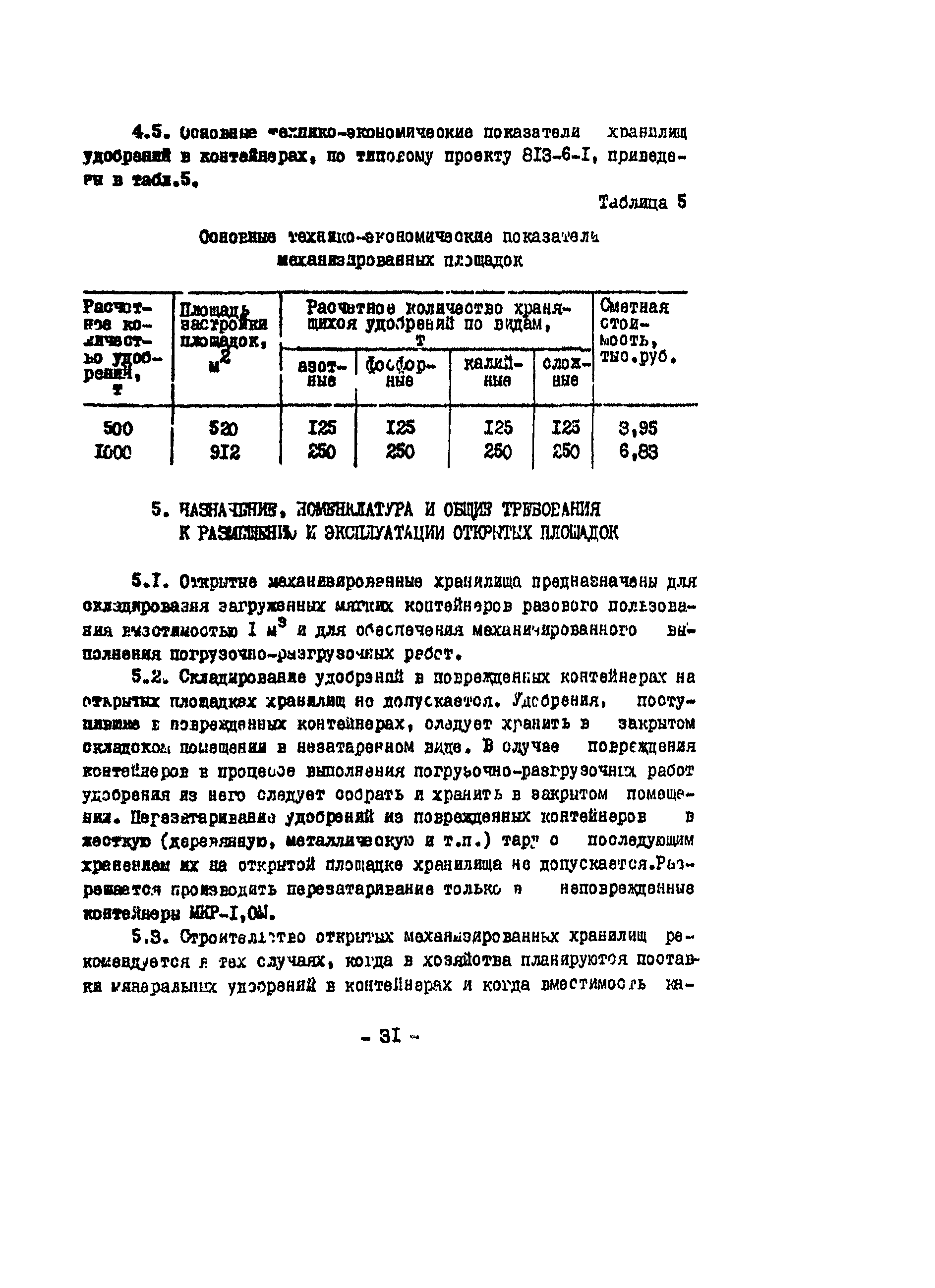 | Оглавление: | 1 Применение мягких контейнеров для транспортировки и хранения минеральных удобрений 2 Мягкий контейнер МКР-1,0М и условия его эксплуатации 3 Организация приема и хранения удобрений в контейнерах на прирельсовых базах 4 Типовые решения хранилищ удобрений в контейнерах 5 Назначение, номенклатура и общие требования к размещению и эксплуатации открытых площадок 6 Технология и организация работ с мягкими контейнерами на открытых площадках 7 Организация и технология строительства хранилищ 8 Мероприятия по охране труда и технике безопасности при строительстве и эксплуатации хранилищ |