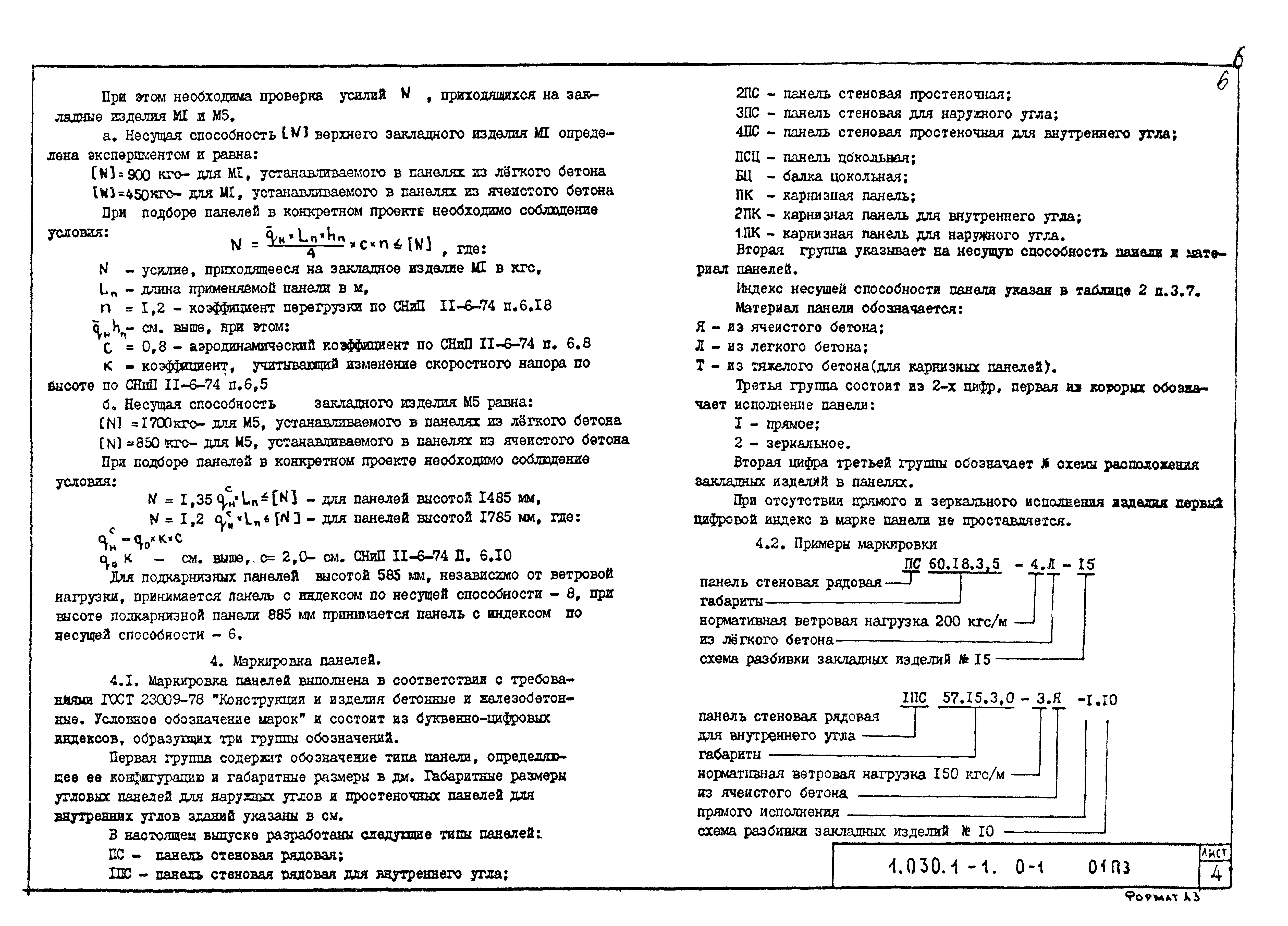 | Оглавление: | 1.030.1-1.0-1 01ПЗ Указания по применению изделий 1.030.1-1.0-1 02ПЗ Указания по расчету панелей 1.030.1-1.0-1 03ПЗ Дополнительные рекомендации по применению изделий в районах с сейсмичностью 7, 8 и 9 баллов 1.030.1-1.0-1 01 Схемы расположения закладных изделий в панелях марок ПС 30… 1.030.1-1.0-1 02 Спецификация закладных изделий на панели марок ПС 30… 1.030.1-1.0-1 03 Схемы расположения закладных изделий в панелях марок ПС 60… 1.030.1-1.0-1 04 Спецификация закладных изделий на панели марок ПС 60… 1.030.1-1.0-1 05 Схемы расположения закладных изделий в панелях марок ПС 72… 1.030.1-1.0-1 06 Спецификация закладных изделий на панели марок ПС 72… 1.030.1-1.0-1 07 Схемы расположения закладных изделий в панелях марок ПС 90… 1.030.1-1.0-1 08 Спецификация закладных изделий на панели марок ПС 90… 1.030.1-1.0-1 09 Схемы расположения закладных изделий в панелях марок 1ПС 27…, 1ПС 27,5… 1.030.1-1.0-1 10 Спецификация закладных изделий на панели марок 1ПС 27…, 1ПС 27,5… 1.030.1-1.0-1 11 Схемы расположения закладных изделий в панелях марок 1ПС 57…, 1ПС 57,5… 1.030.1-1.0-1 12 Спецификация закладных изделий на панели марок 1ПС 57…, 1ПС 57,5… 1.030.1-1.0-1 13 Схемы расположения закладных изделий в простеночных панелях марок 2ПС…, 4ПС… и в панелях для наружных углов зданий марок 3ПС… 1.030.1-1.0-1 14 Спецификация закладных изделий на панели марок 2ПС…, 3ПС …, 4ПС… 1.030.1-1.0-1 15 Узлы 1.030.1-1.0-1 16 Пример схемы расположения панелей самонесущих стен здания с шагом колонн 6,0 м 1.030.1-1.0-1 17 Пример схемы расположения панелей навесных стен здания с шагом колонн 6,0 м 1.030.1-1.0-1 18 Пример схемы расположения панелей навесных стен здания с шагом колонн 7,2 м 1.030.1-1.0-1 19 Пример схемы расположения панелей самонесущих стен здания с шагом колонн 9,0 м 1.030.1-1.0-1 20 Примеры схем расположения карнизных и подкарнизных панелей самонесущих стен 1.030.1-1.0-1 21 Примеры схем расположения карнизных и подкарнизных панелей навесных стен 1.030.1-1.0-1 22 Схемы расположения узлов крепления самонесущих стен 1.030.1-1.0-1 23 Схемы расположения узлов крепления навесных стен 1.030.1-1.0-1 24 Схемы расположения узлов крепления подкарнизных и карнизных панелей к колоннам 1.030.1-1.0-1 25 Решение нулевого цикла в зданиях с полами по грунту 1.030.1-1.0-1 26 Примеры схем расположения панелей нулевого цикла. Маркировка узлов 1.030.1-1.0-1 27 Схемы расположения узлов крепления навесных стен здания с карнизом для сейсмических районов 1.030.1-1.0-1 28 Схемы расположения узлов крепления навесных стен здания с парапетом для сейсмических районов 1.030.1-1.0-1 29 Пример крепления верха стеновых панелей в уровне стыка колонн |