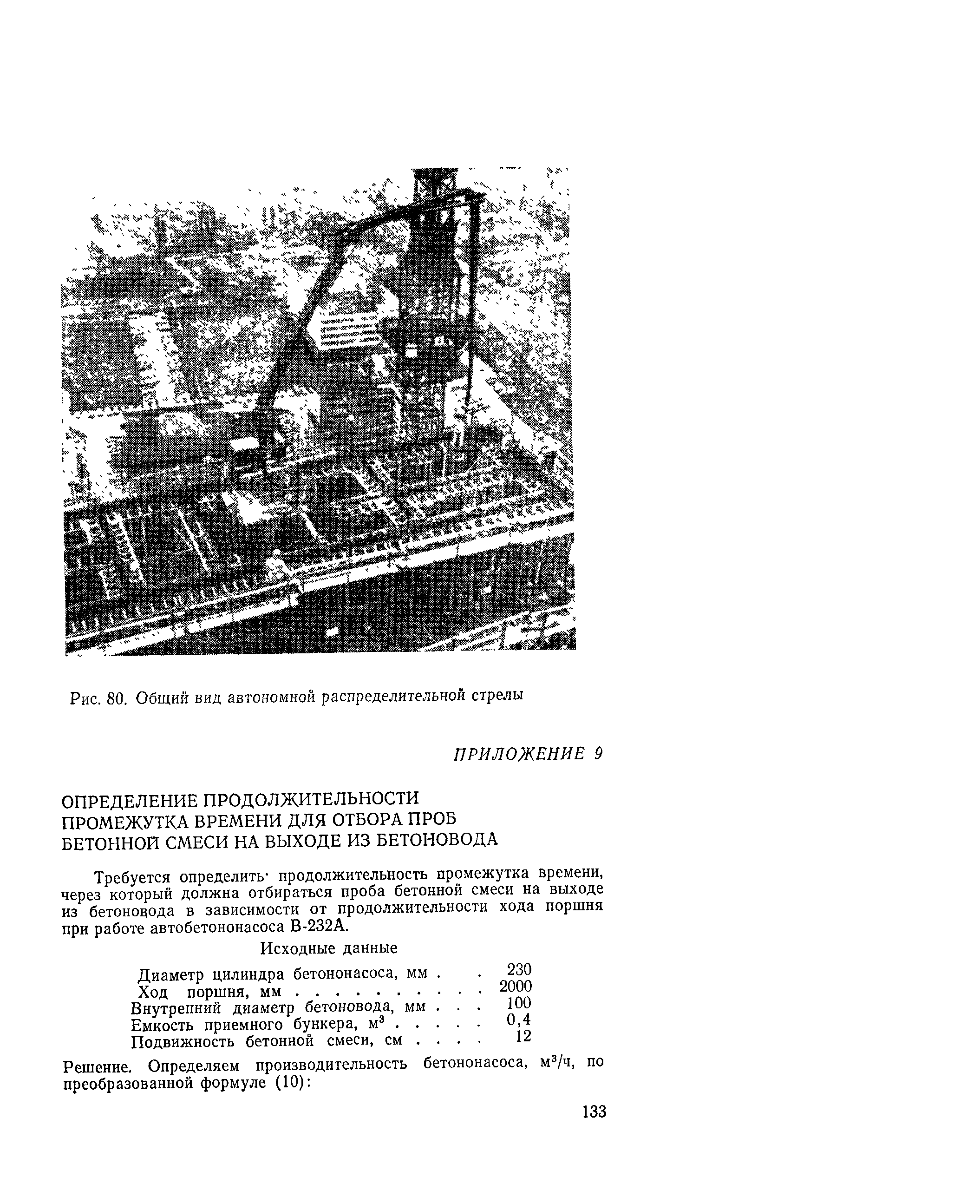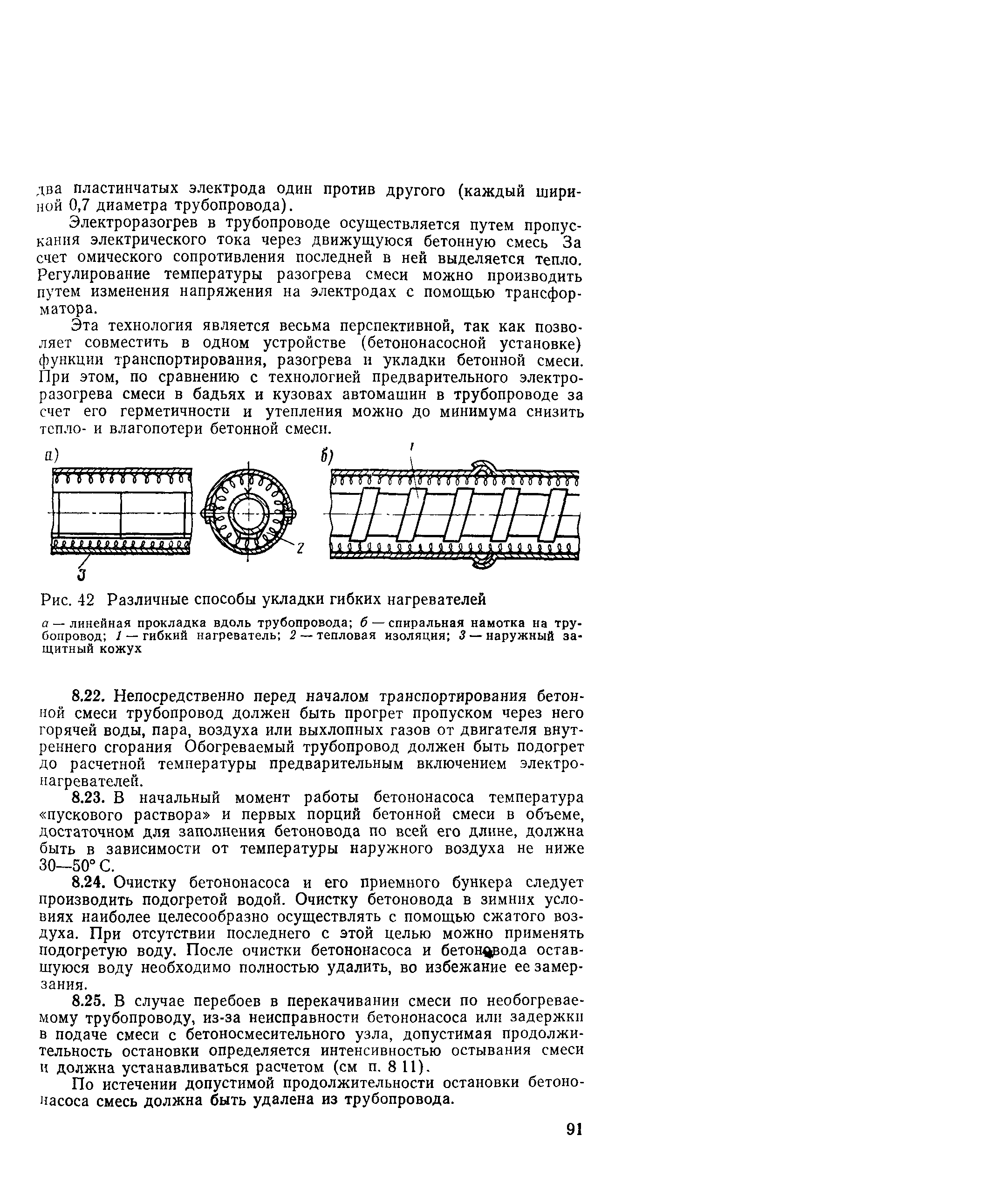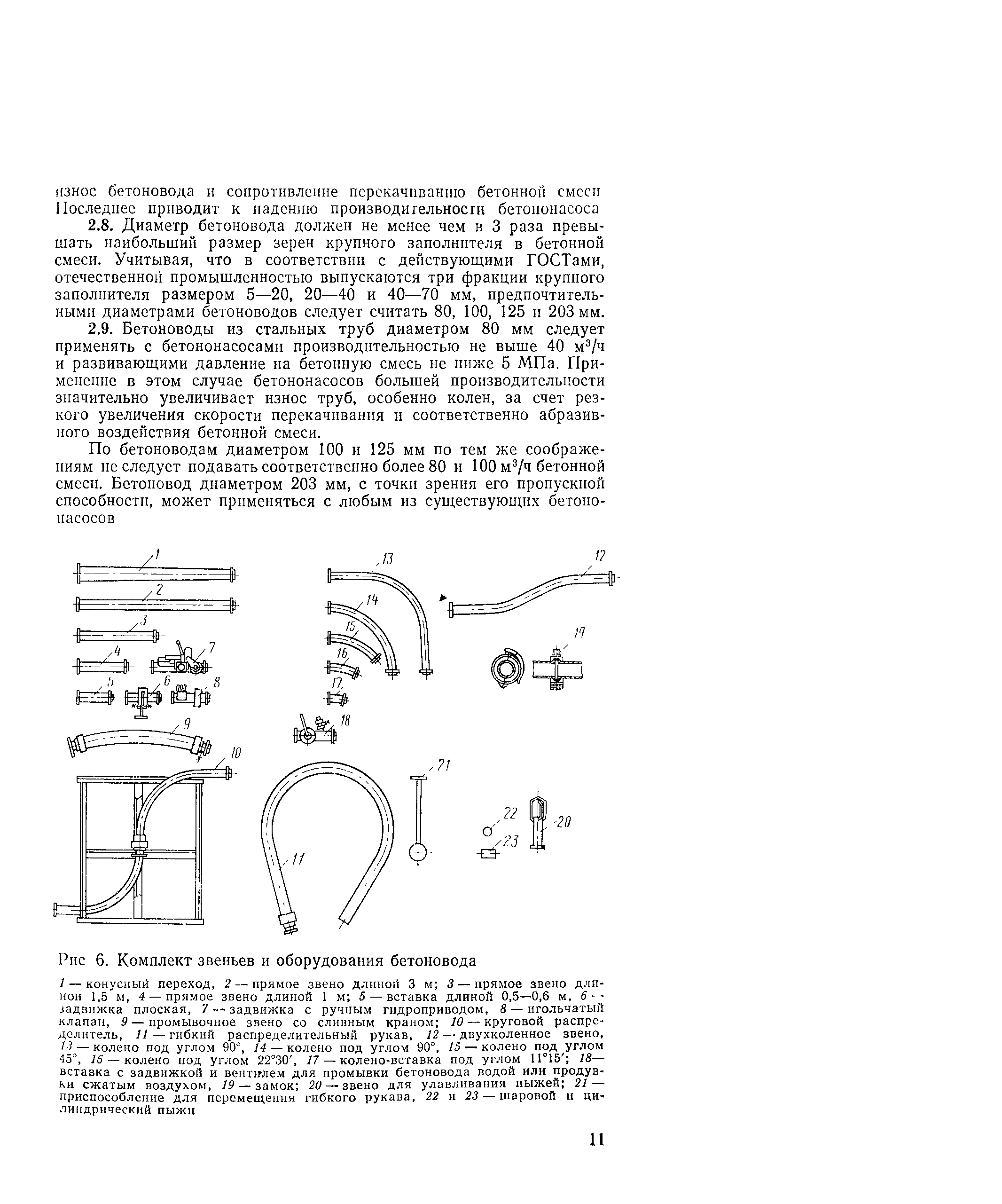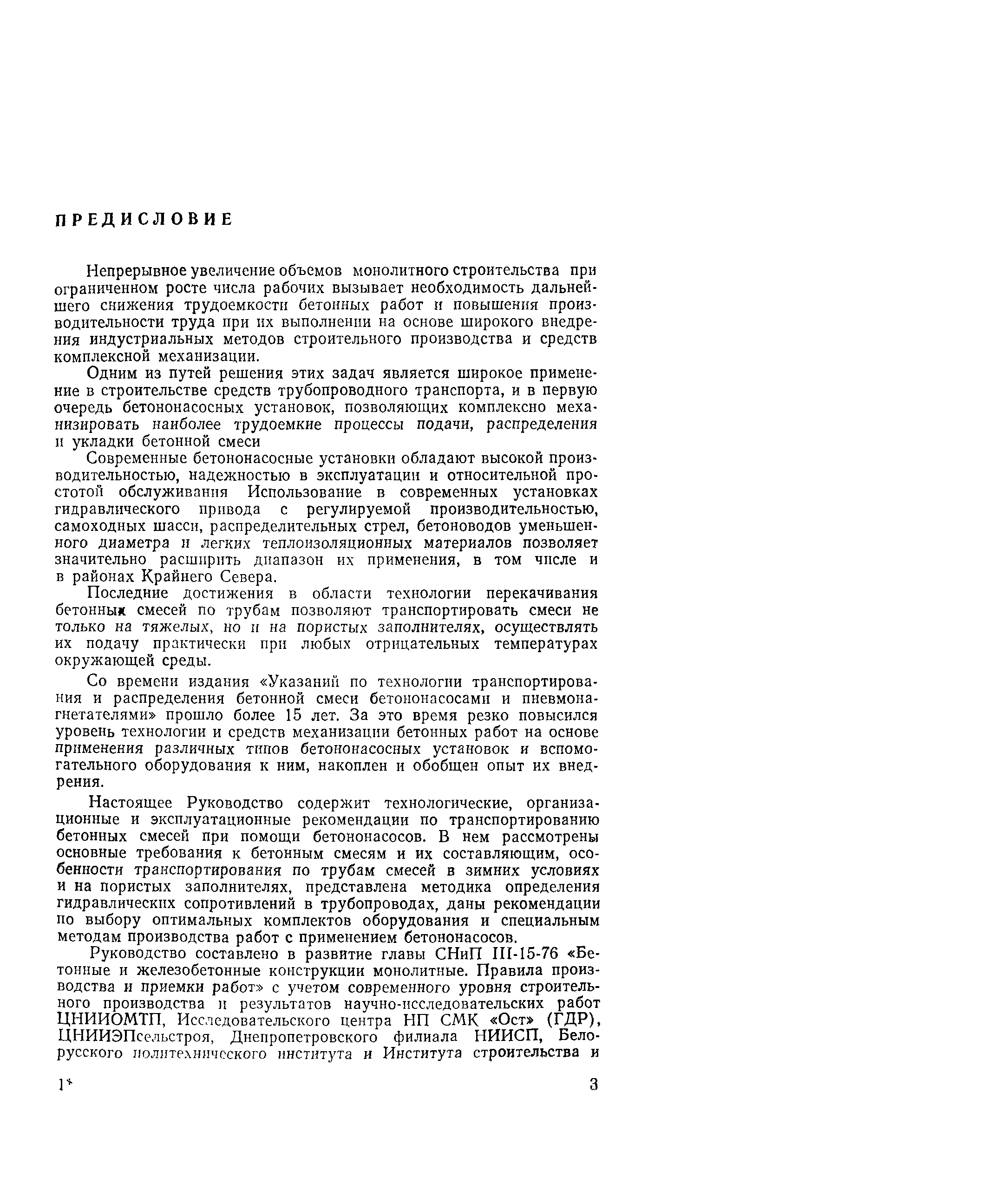 | Оглавление: | Предисловие 1 Общие положения 2 Оборудование для транспортирования бетонных смесей по трубам 3 Требования к бетонным смесям и их составляющим 4 Гидравлические сопротивления в трубопроводе и их влияние на производительность бетононасосов 5 Особенности транспортирования по трубам бетонных смесей на пористых заполнителях 6 Организация и производство работ при укладке бетонных смесей 7 Эксплуатация бетононасосных установок 8 Особенности применения бетононасосов в зимних условиях Приложения: 1 Устройство и принцип работы бетононасоса СБ-95А 2 Устройство бетоновода к бетононасосу СБ-95А 3 Техническая характеристика бетононасосов советского и зарубежного производства, применяемых в отечественном строительстве 4 Техническая характеристика и общие виды опытных образцов распределительных стрел 5 Определение удобоперекачиваемости бетонной смеси 6 Устройство и принцип работы перегрузочного бункера 7 Графики для определения показателей, влияющих на производительность бетононасосов и стоимость их эксплуатации 8 Принципиальные схемы и общие виды по применению бетононасосов 9 Определение продолжительности промежутка времени для отбора проб бетонной смеси на выходе из бетоновода 10 Определение экономической эффективности применения автобетононасосов 11 Определение температуры бетонной смеси в трубопроводах |