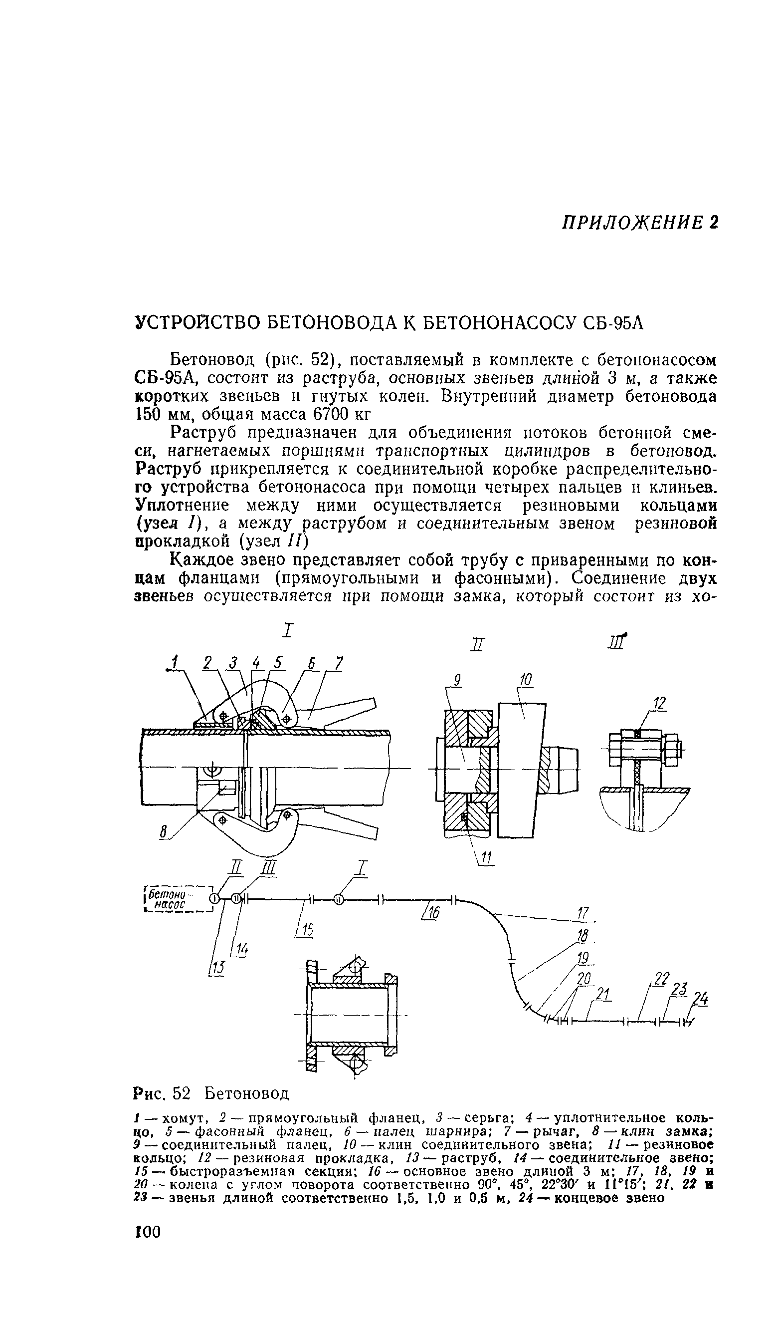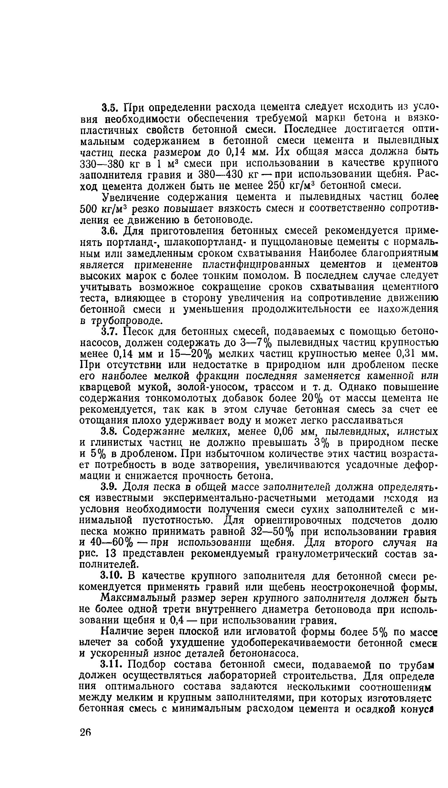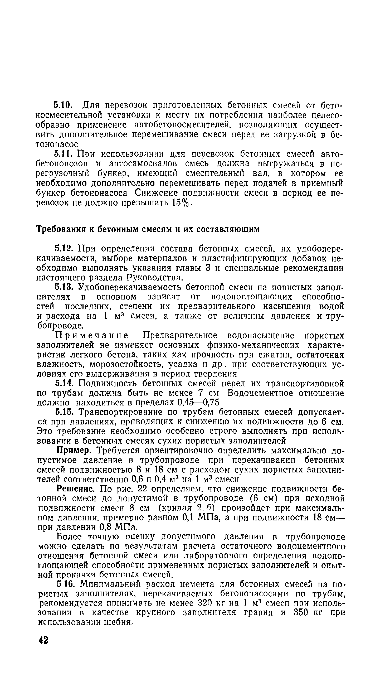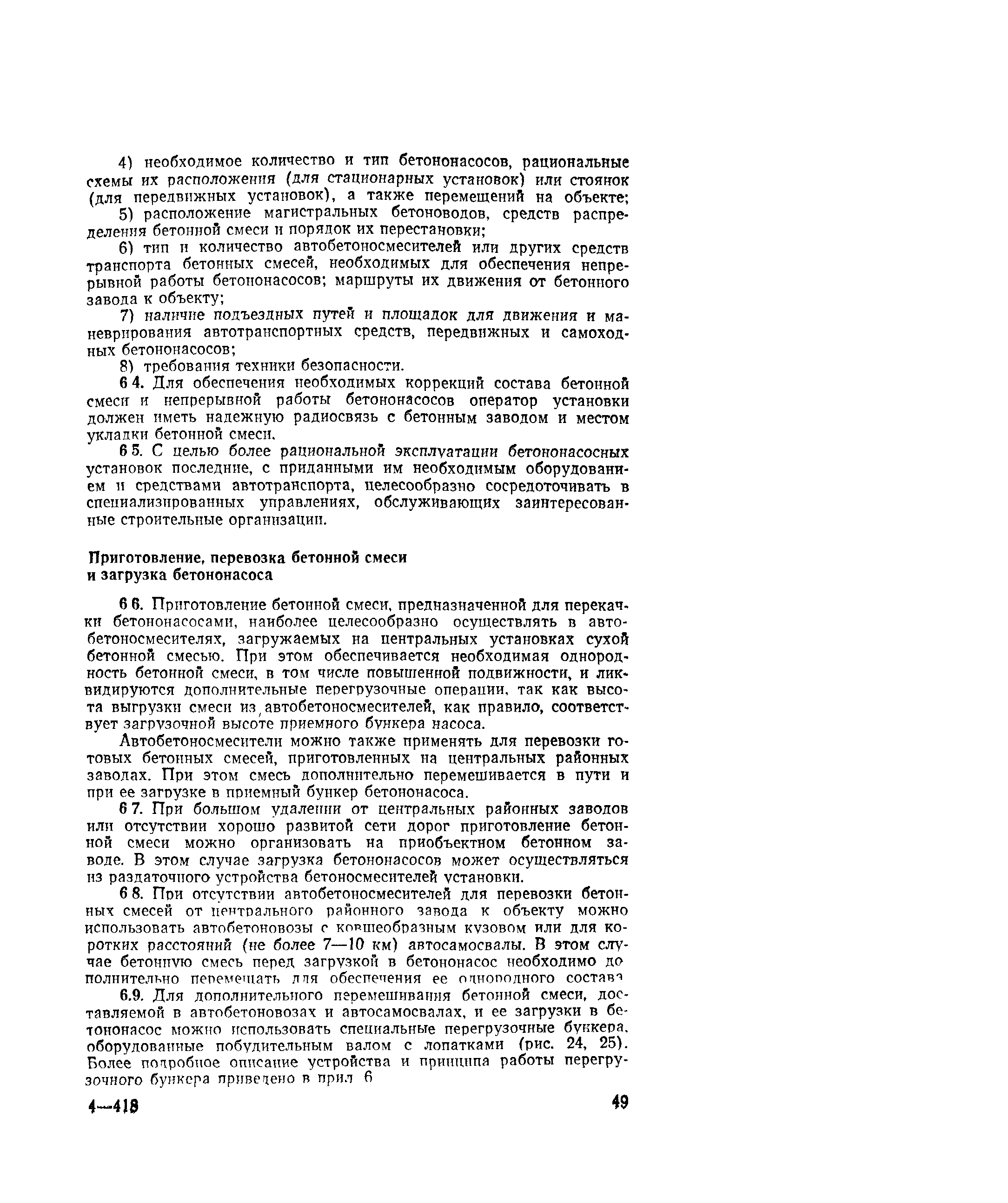 | Оглавление: | Предисловие 1 Общие положения 2 Оборудование для транспортирования бетонных смесей по трубам 3 Требования к бетонным смесям и их составляющим 4 Гидравлические сопротивления в трубопроводе и их влияние на производительность бетононасосов 5 Особенности транспортирования по трубам бетонных смесей на пористых заполнителях 6 Организация и производство работ при укладке бетонных смесей 7 Эксплуатация бетононасосных установок 8 Особенности применения бетононасосов в зимних условиях Приложения: 1 Устройство и принцип работы бетононасоса СБ-95А 2 Устройство бетоновода к бетононасосу СБ-95А 3 Техническая характеристика бетононасосов советского и зарубежного производства, применяемых в отечественном строительстве 4 Техническая характеристика и общие виды опытных образцов распределительных стрел 5 Определение удобоперекачиваемости бетонной смеси 6 Устройство и принцип работы перегрузочного бункера 7 Графики для определения показателей, влияющих на производительность бетононасосов и стоимость их эксплуатации 8 Принципиальные схемы и общие виды по применению бетононасосов 9 Определение продолжительности промежутка времени для отбора проб бетонной смеси на выходе из бетоновода 10 Определение экономической эффективности применения автобетононасосов 11 Определение температуры бетонной смеси в трубопроводах |