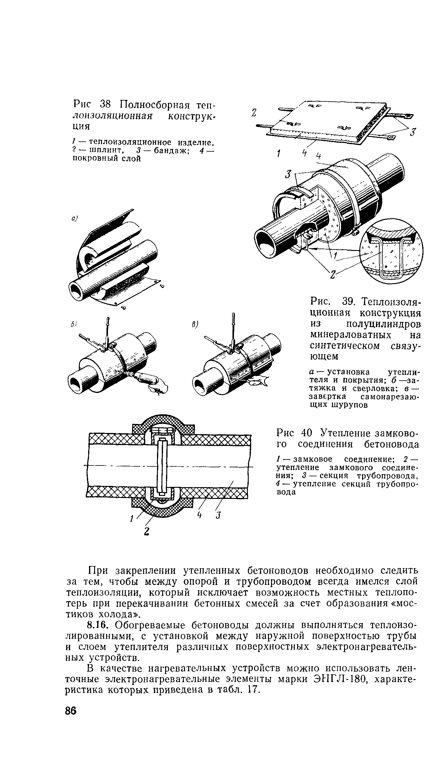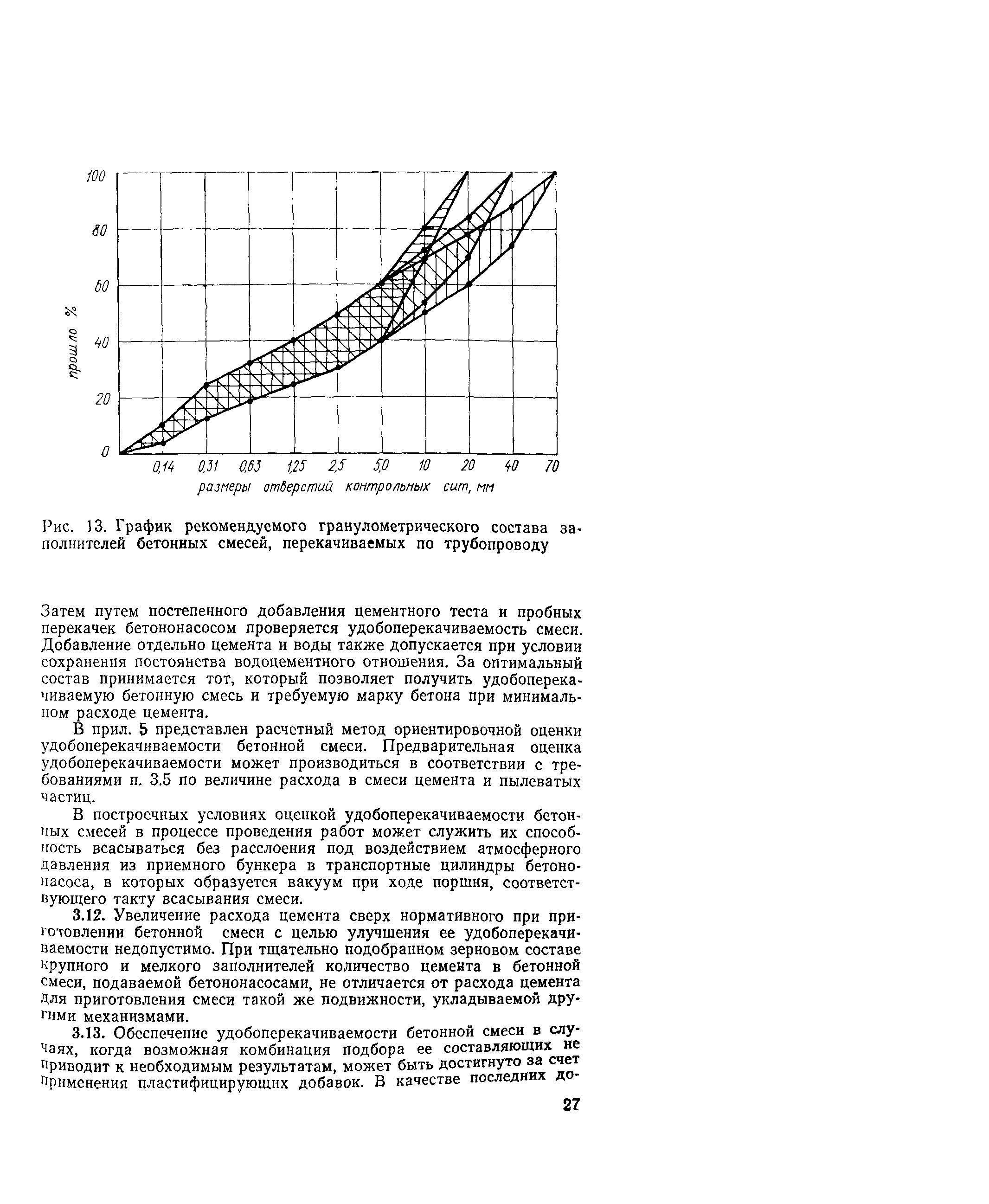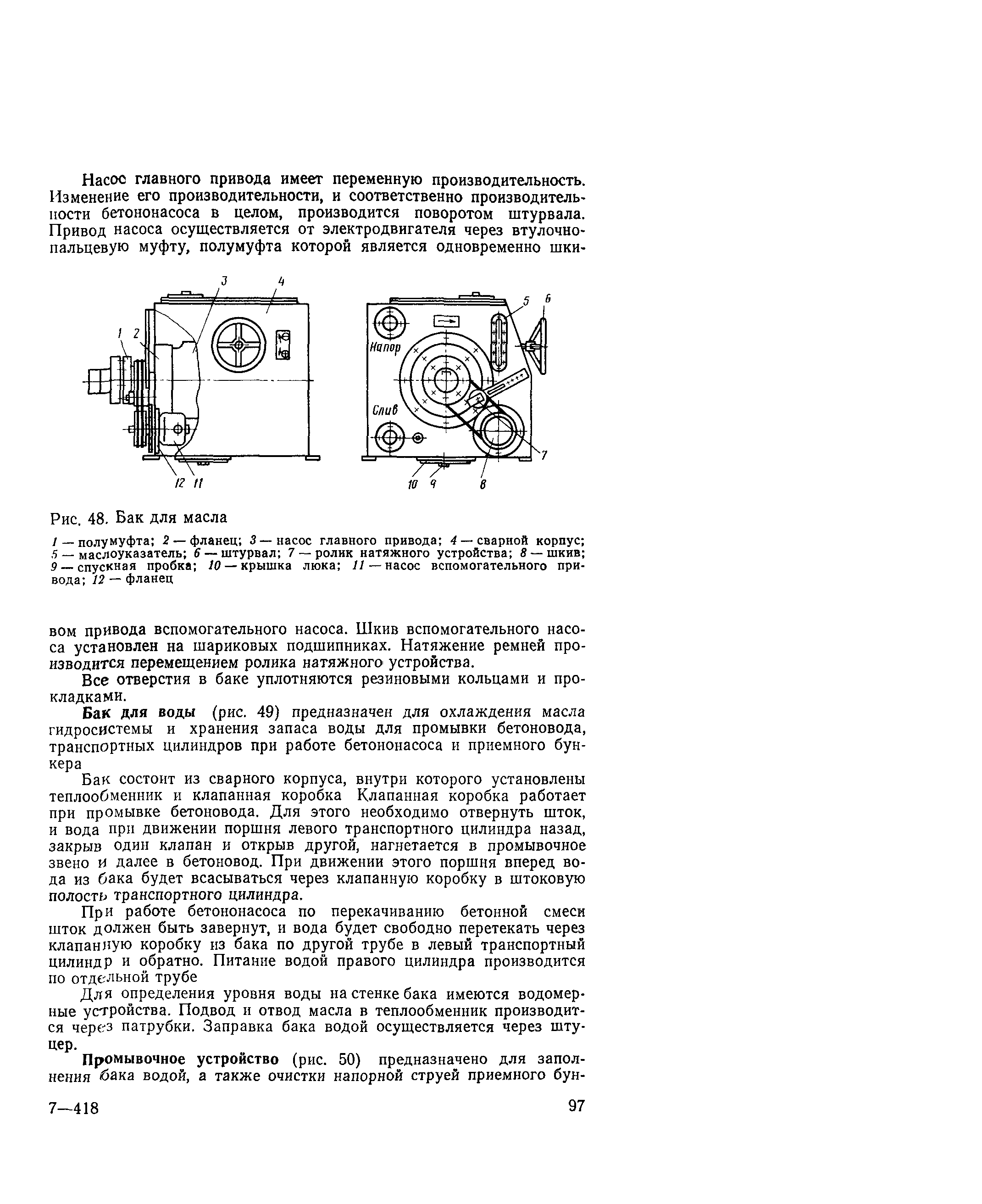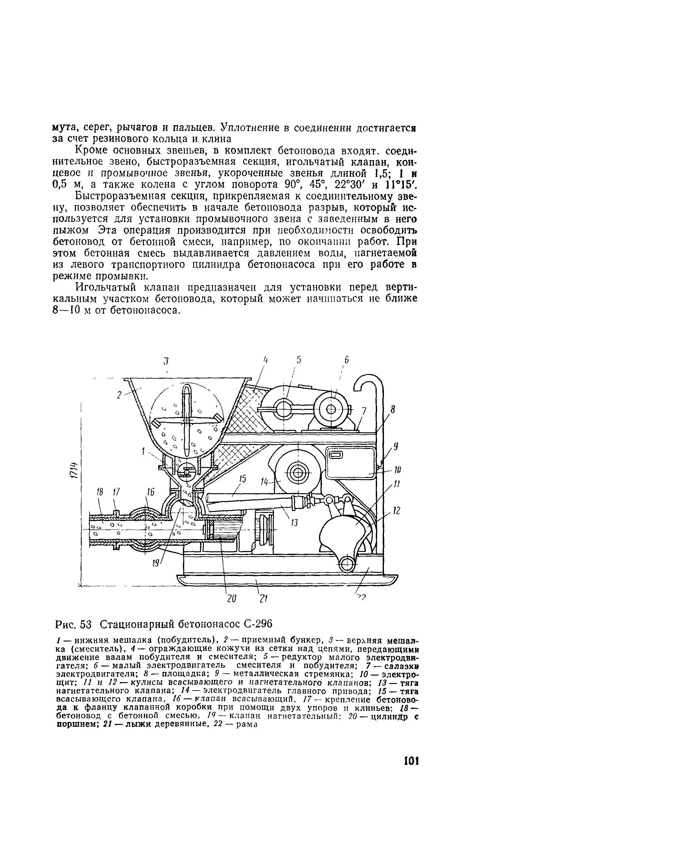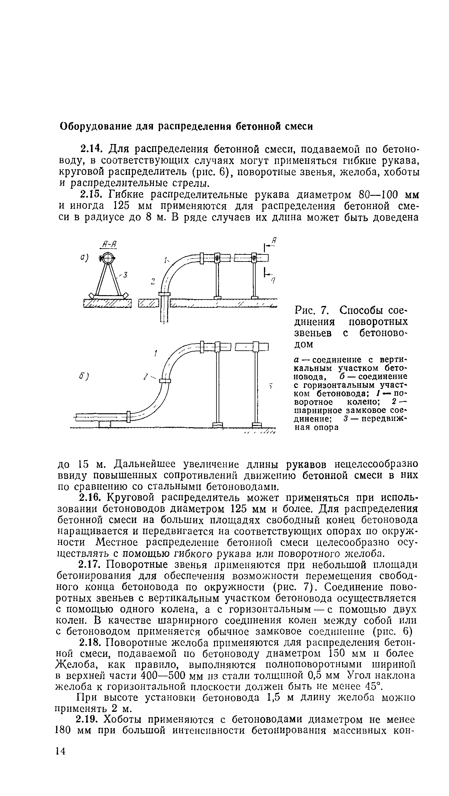 | Оглавление: | Предисловие 1 Общие положения 2 Оборудование для транспортирования бетонных смесей по трубам 3 Требования к бетонным смесям и их составляющим 4 Гидравлические сопротивления в трубопроводе и их влияние на производительность бетононасосов 5 Особенности транспортирования по трубам бетонных смесей на пористых заполнителях 6 Организация и производство работ при укладке бетонных смесей 7 Эксплуатация бетононасосных установок 8 Особенности применения бетононасосов в зимних условиях Приложения: 1 Устройство и принцип работы бетононасоса СБ-95А 2 Устройство бетоновода к бетононасосу СБ-95А 3 Техническая характеристика бетононасосов советского и зарубежного производства, применяемых в отечественном строительстве 4 Техническая характеристика и общие виды опытных образцов распределительных стрел 5 Определение удобоперекачиваемости бетонной смеси 6 Устройство и принцип работы перегрузочного бункера 7 Графики для определения показателей, влияющих на производительность бетононасосов и стоимость их эксплуатации 8 Принципиальные схемы и общие виды по применению бетононасосов 9 Определение продолжительности промежутка времени для отбора проб бетонной смеси на выходе из бетоновода 10 Определение экономической эффективности применения автобетононасосов 11 Определение температуры бетонной смеси в трубопроводах |
