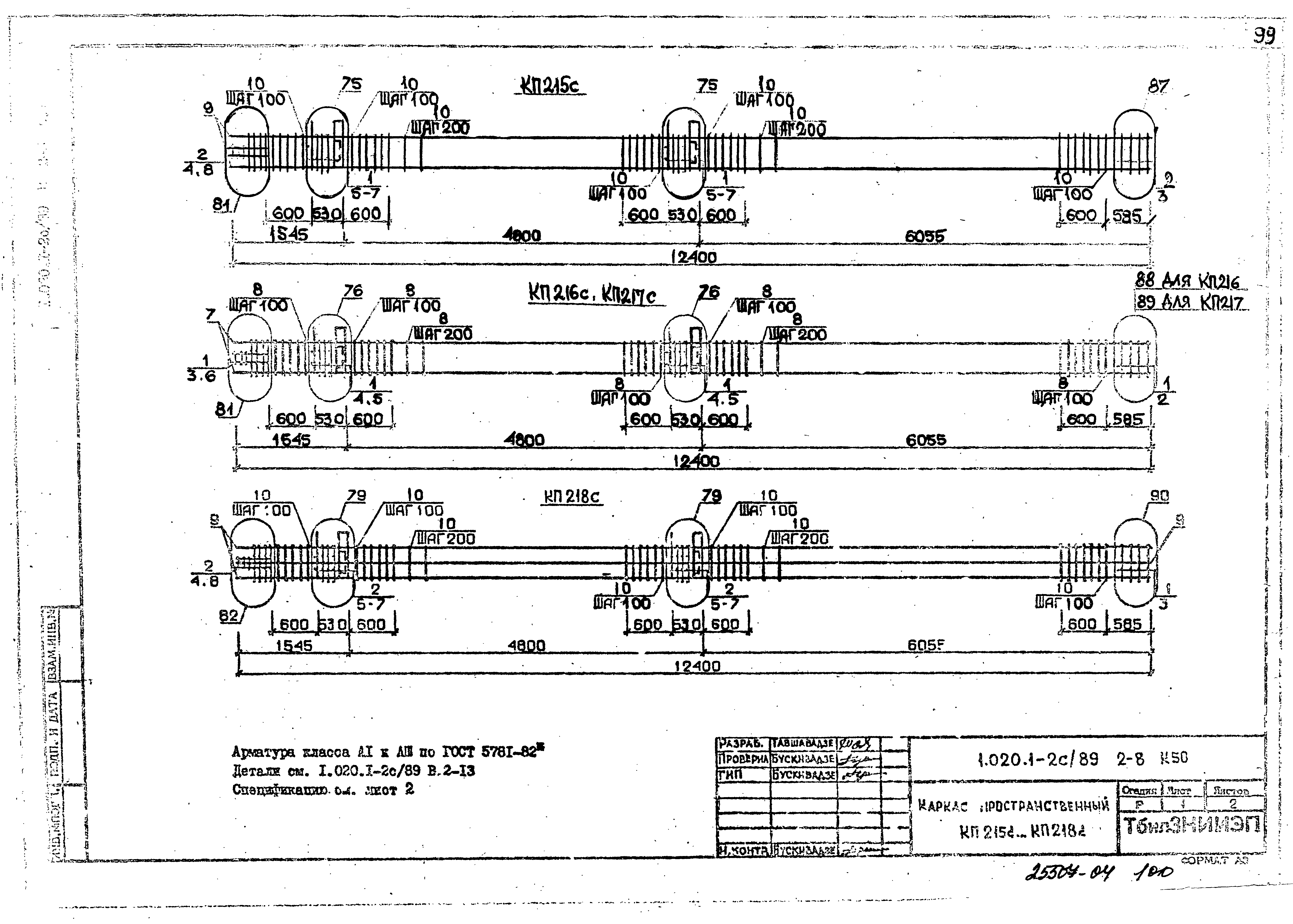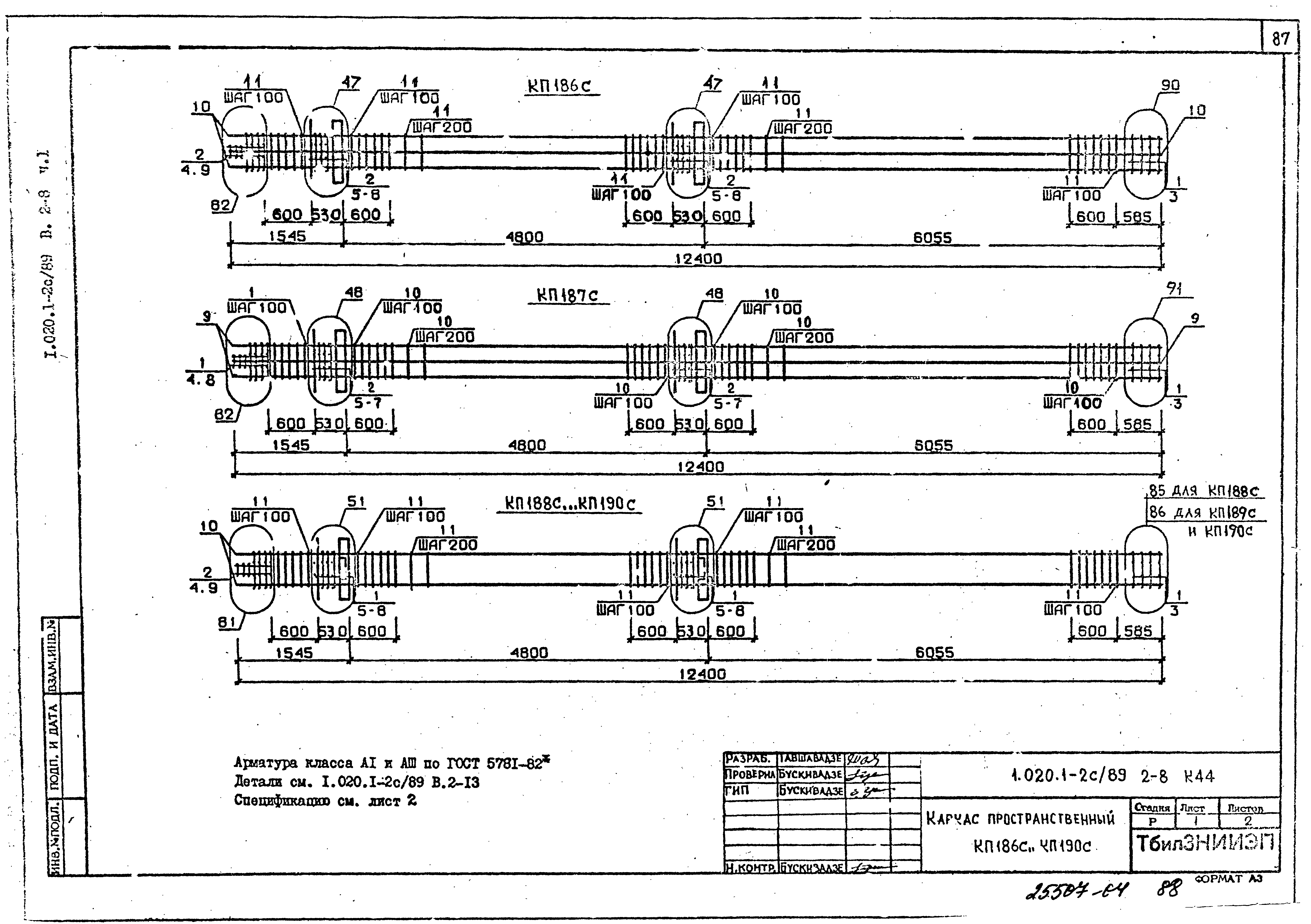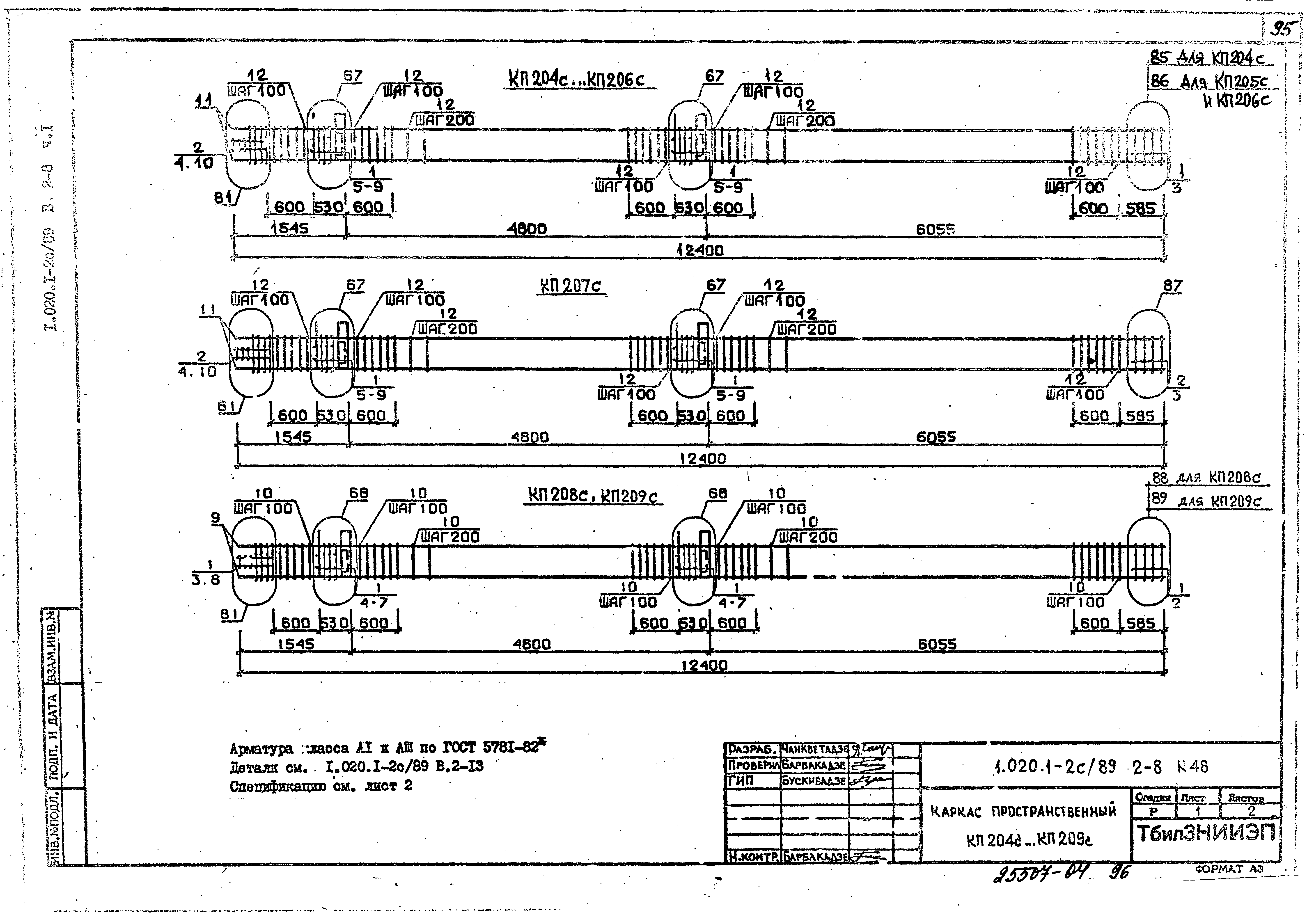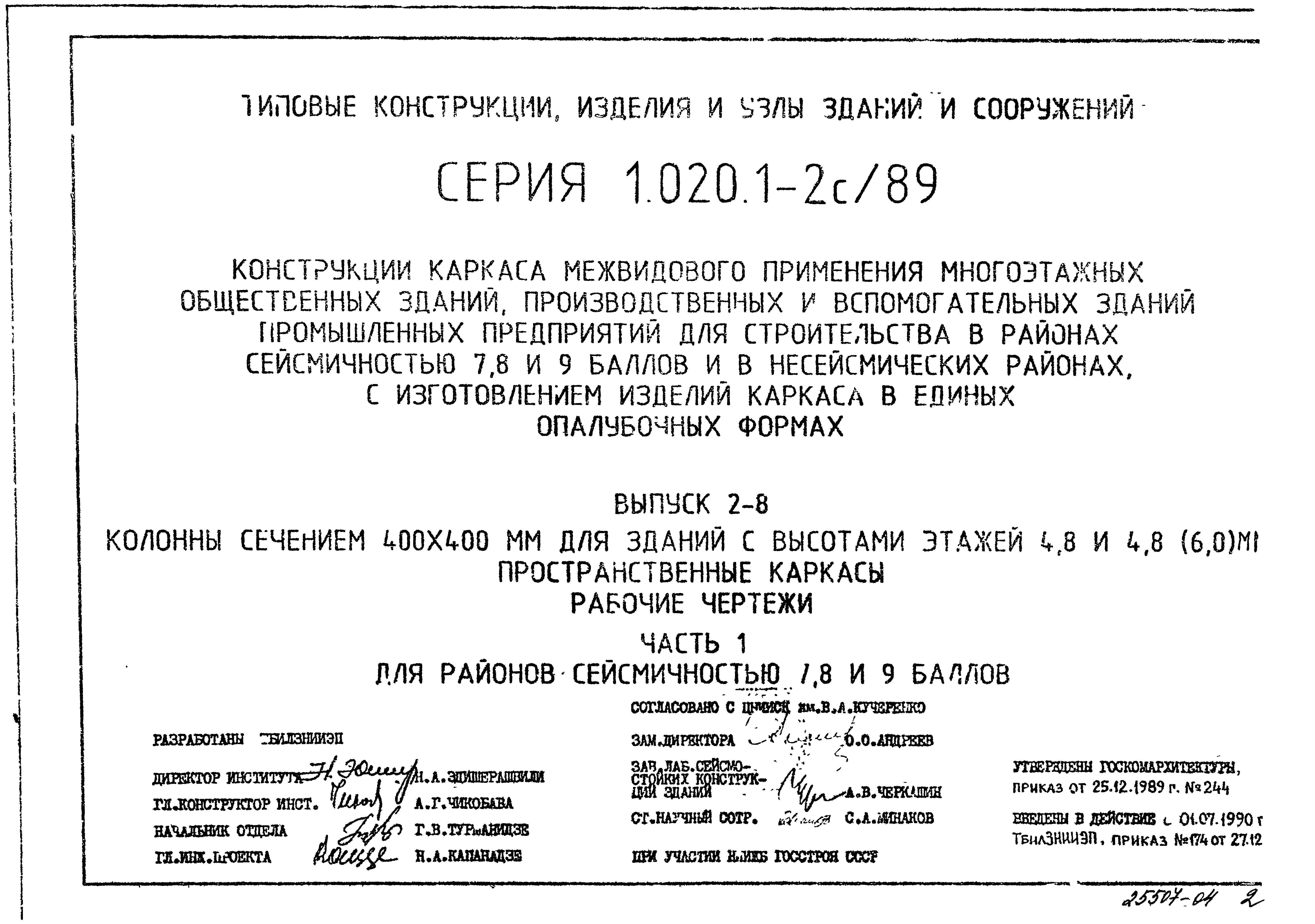 Скачать Серия 1.020.1-2с/89 Выпуск 2-8. Часть 1. Колонны сечением 400х400 мм для зданий с высотами этажей 4,8 и 4,8 (6,0) м. Пространственные каркасы. Рабочие чертежи для районов сейсмичностью 7, 8, 9 балловДата актуализации: 01.01.2021 Серия 1.020.1-2с/89