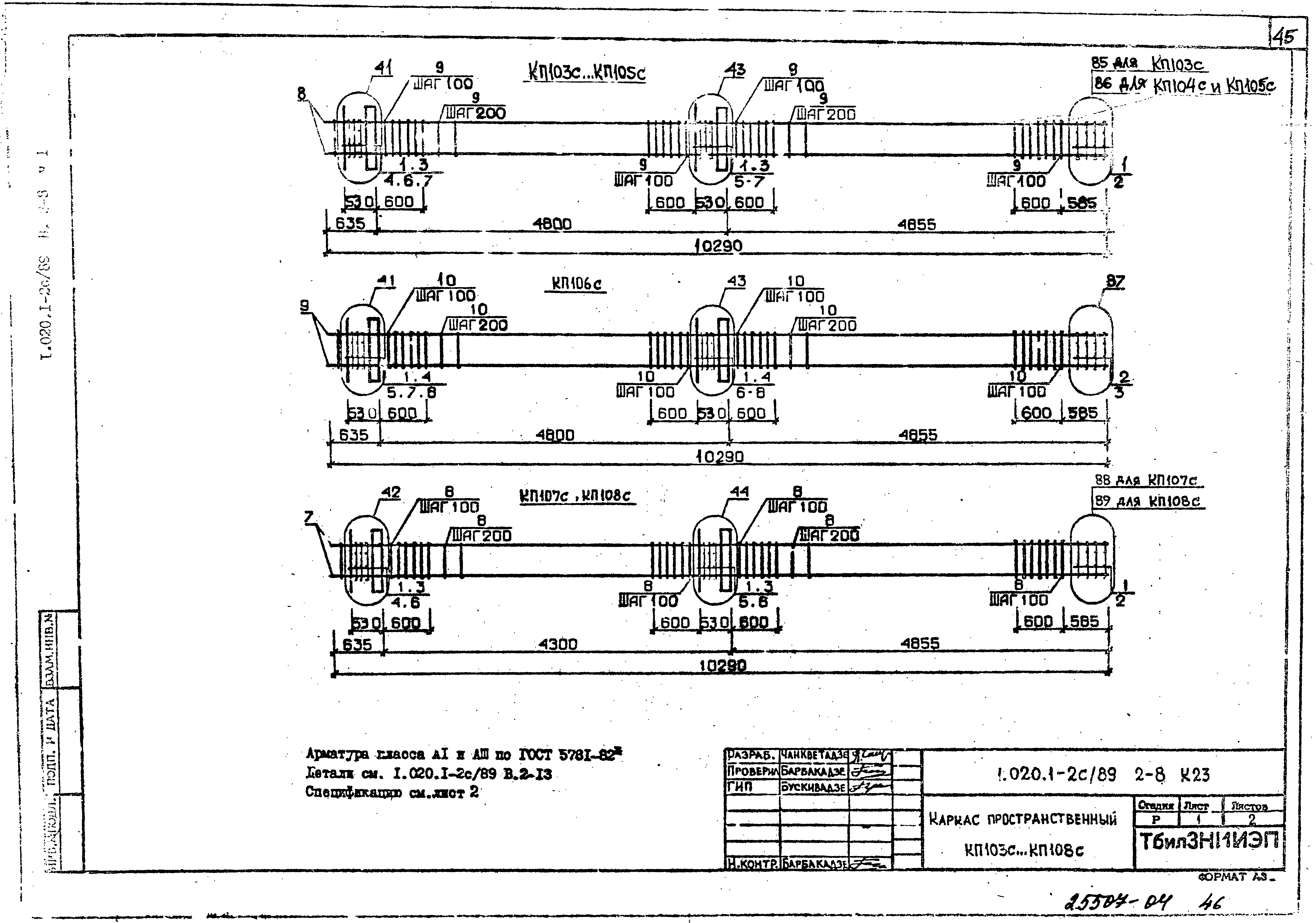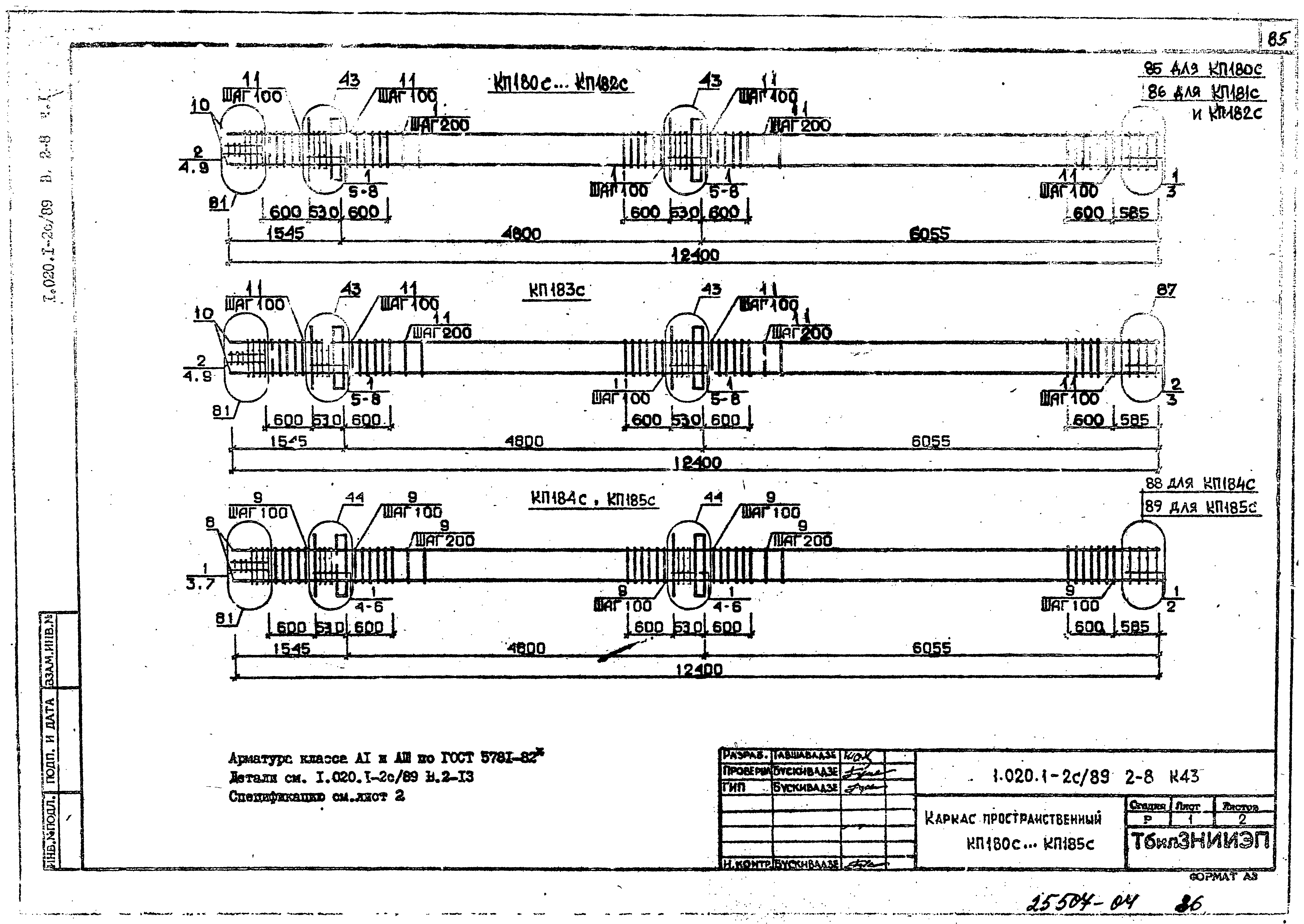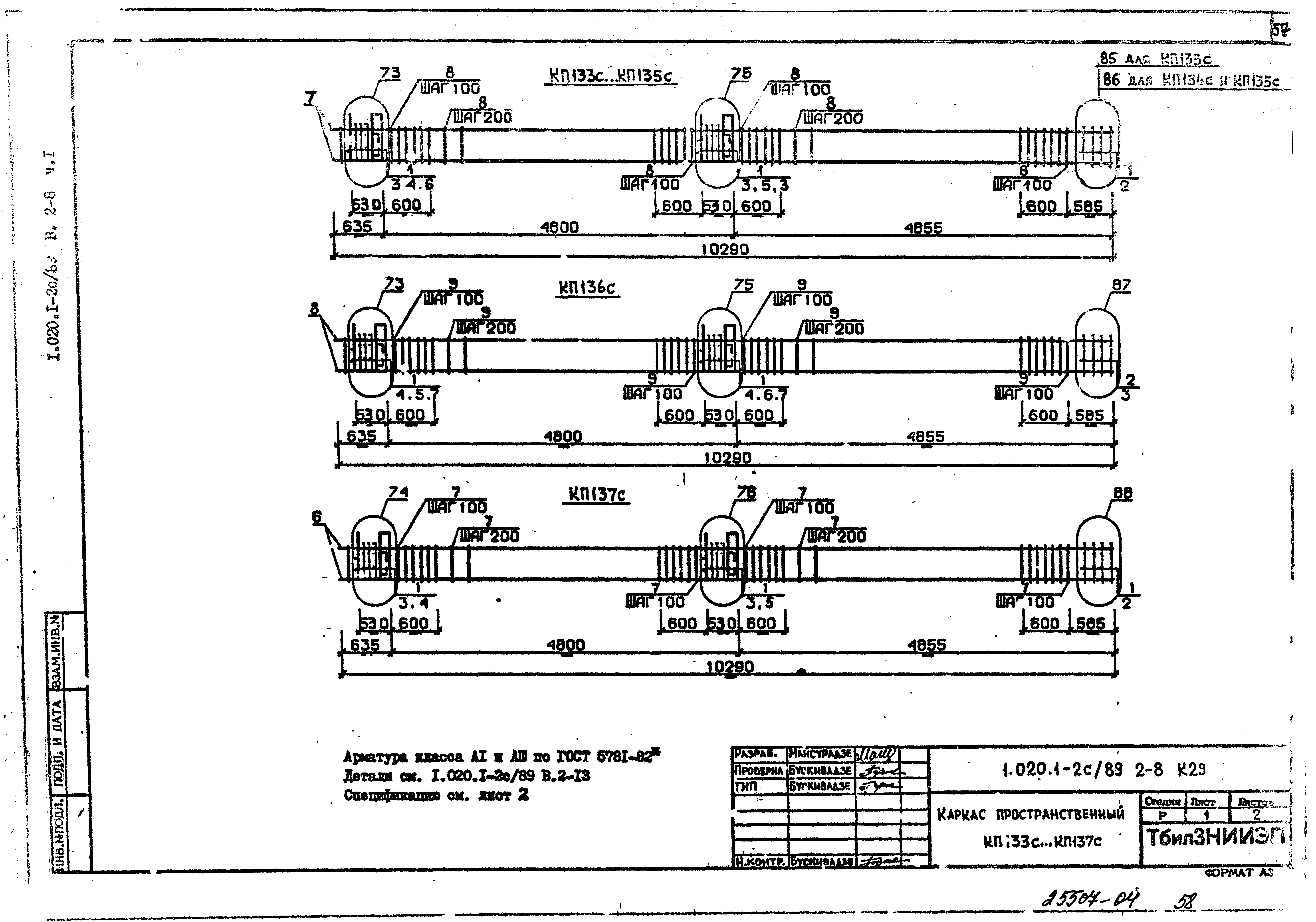 Скачать Серия 1.020.1-2с/89 Выпуск 2-8. Часть 1. Колонны сечением 400х400 мм для зданий с высотами этажей 4,8 и 4,8 (6,0) м. Пространственные каркасы. Рабочие чертежи для районов сейсмичностью 7, 8, 9 балловДата актуализации: 01.01.2021 Серия 1.020.1-2с/89