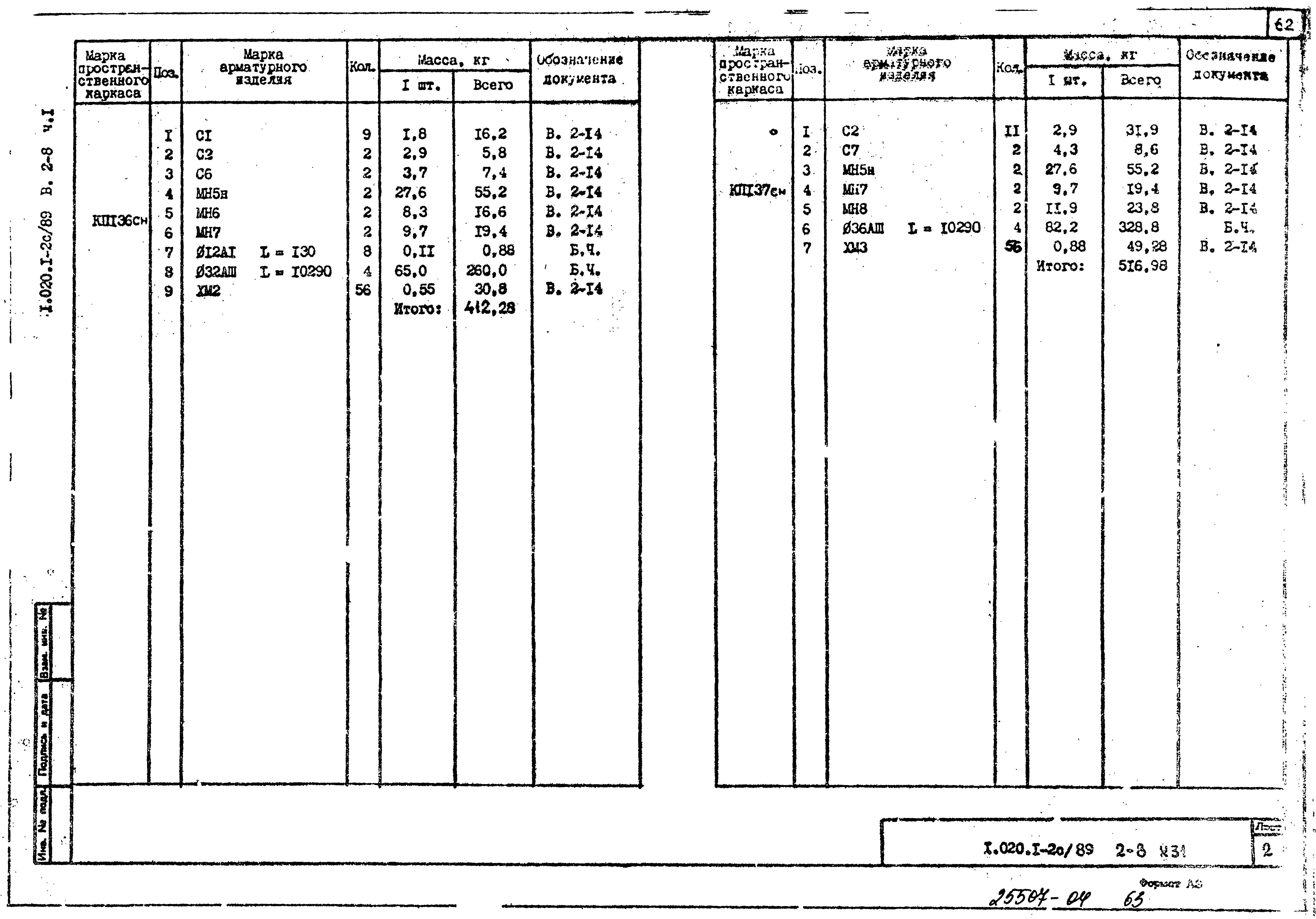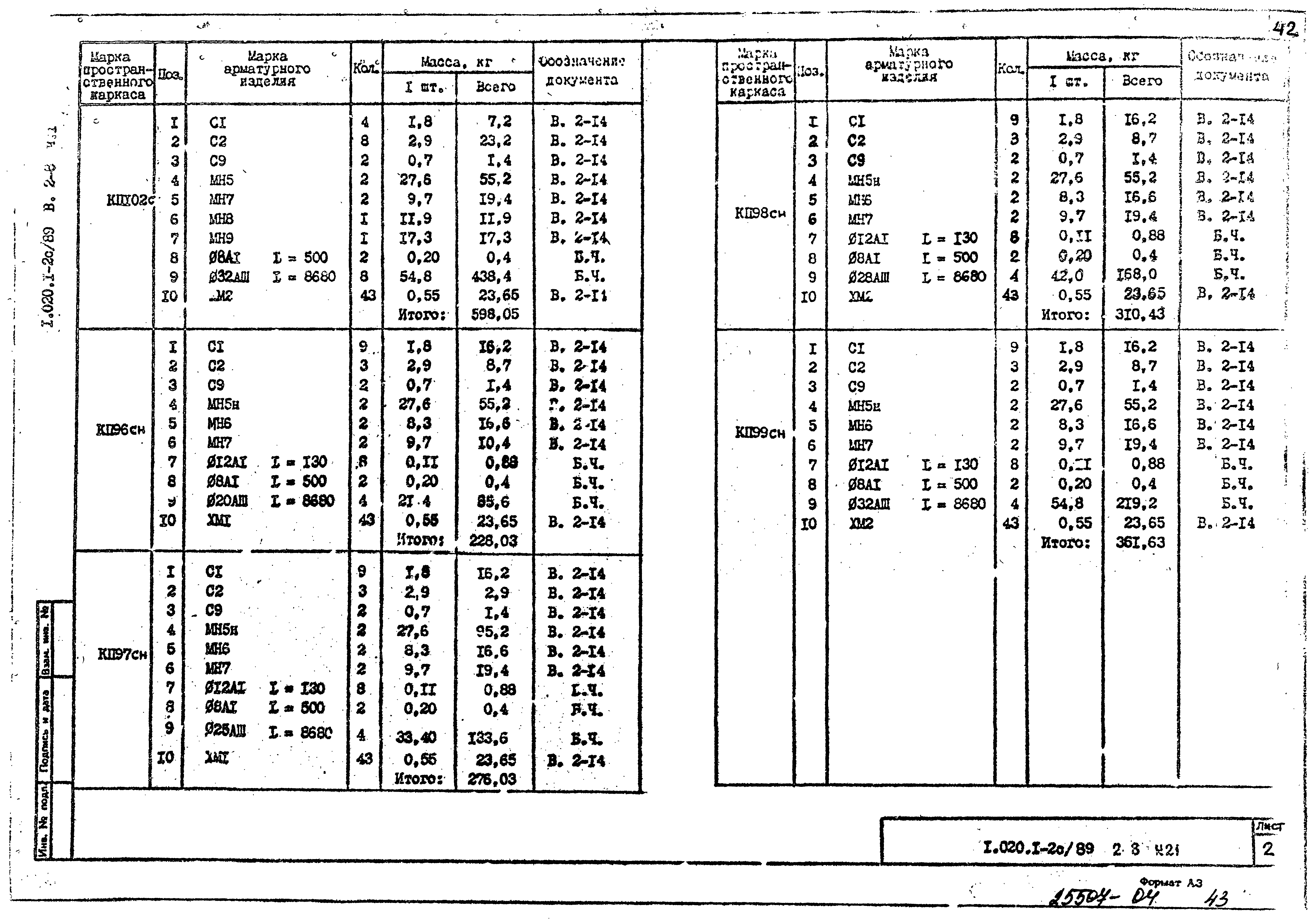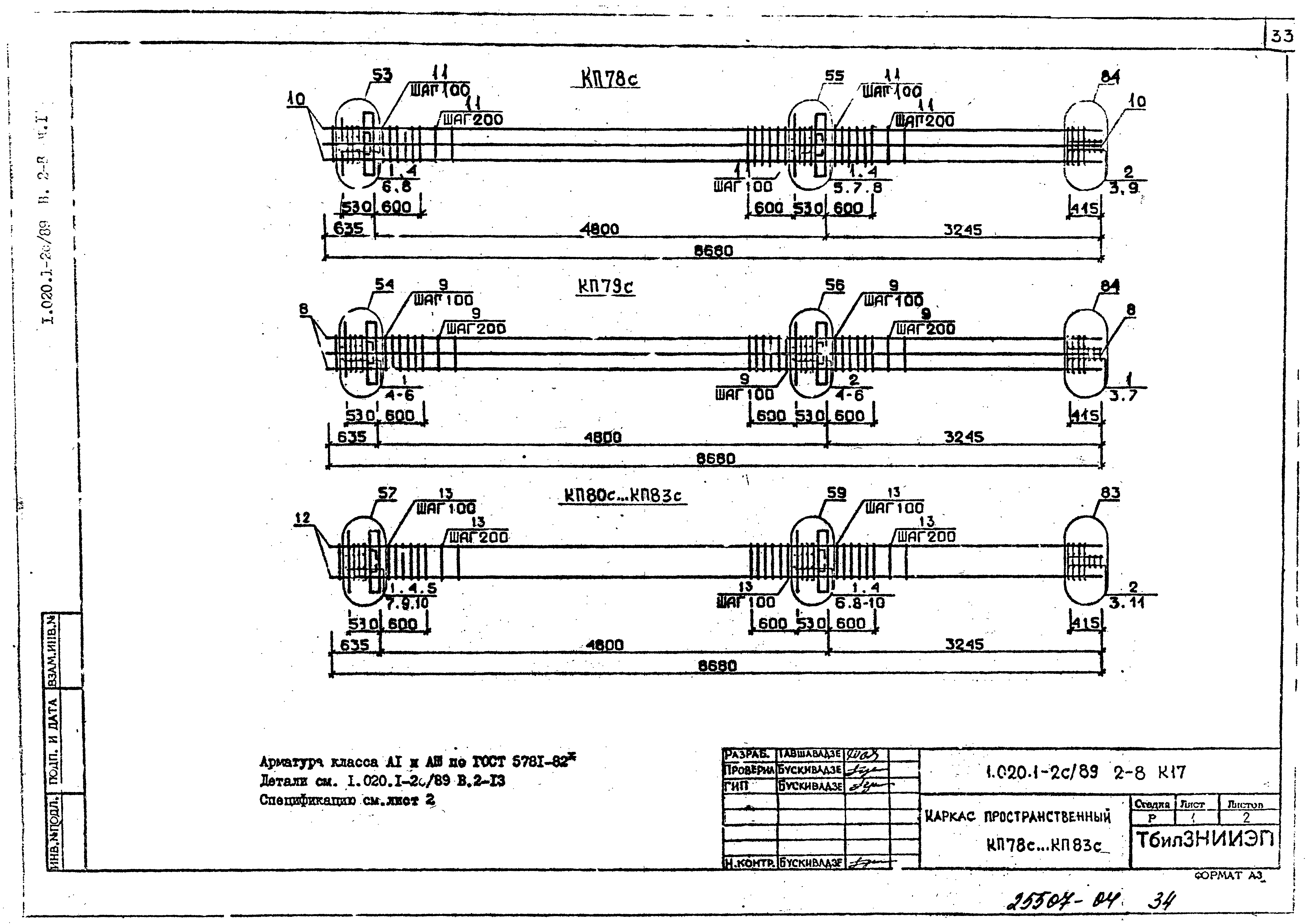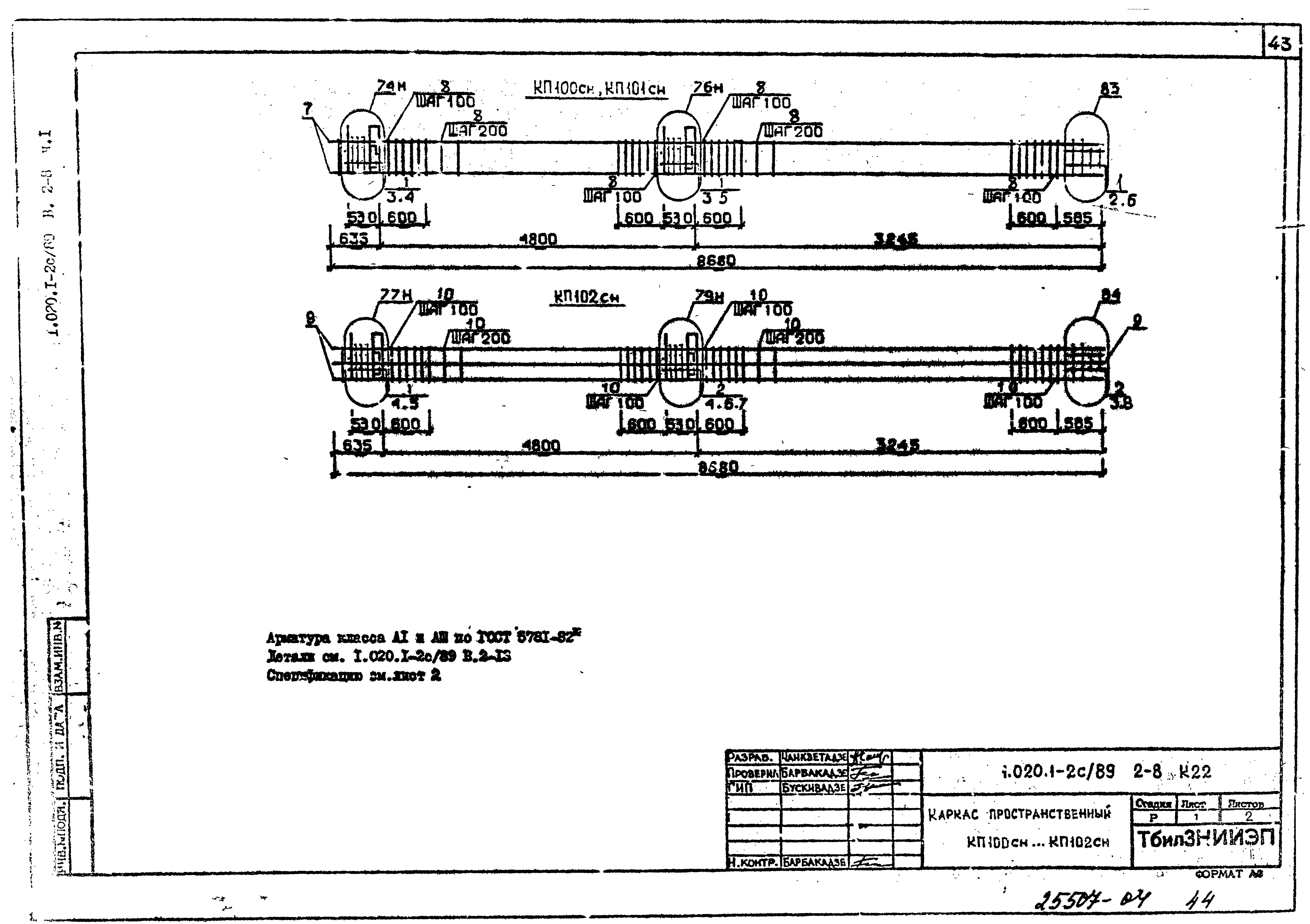 Скачать Серия 1.020.1-2с/89 Выпуск 2-8. Часть 1. Колонны сечением 400х400 мм для зданий с высотами этажей 4,8 и 4,8 (6,0) м. Пространственные каркасы. Рабочие чертежи для районов сейсмичностью 7, 8, 9 балловДата актуализации: 01.01.2021 Серия 1.020.1-2с/89