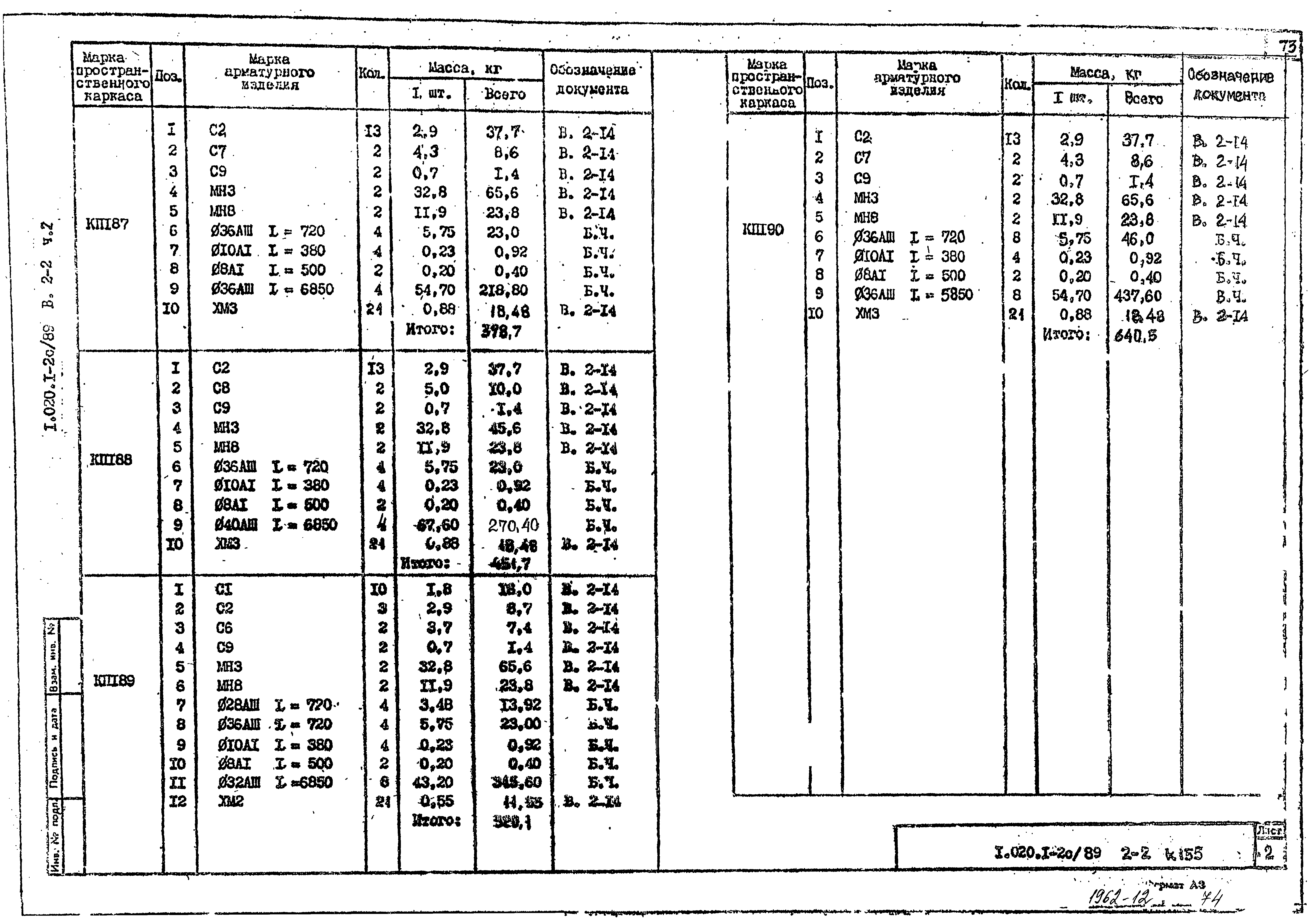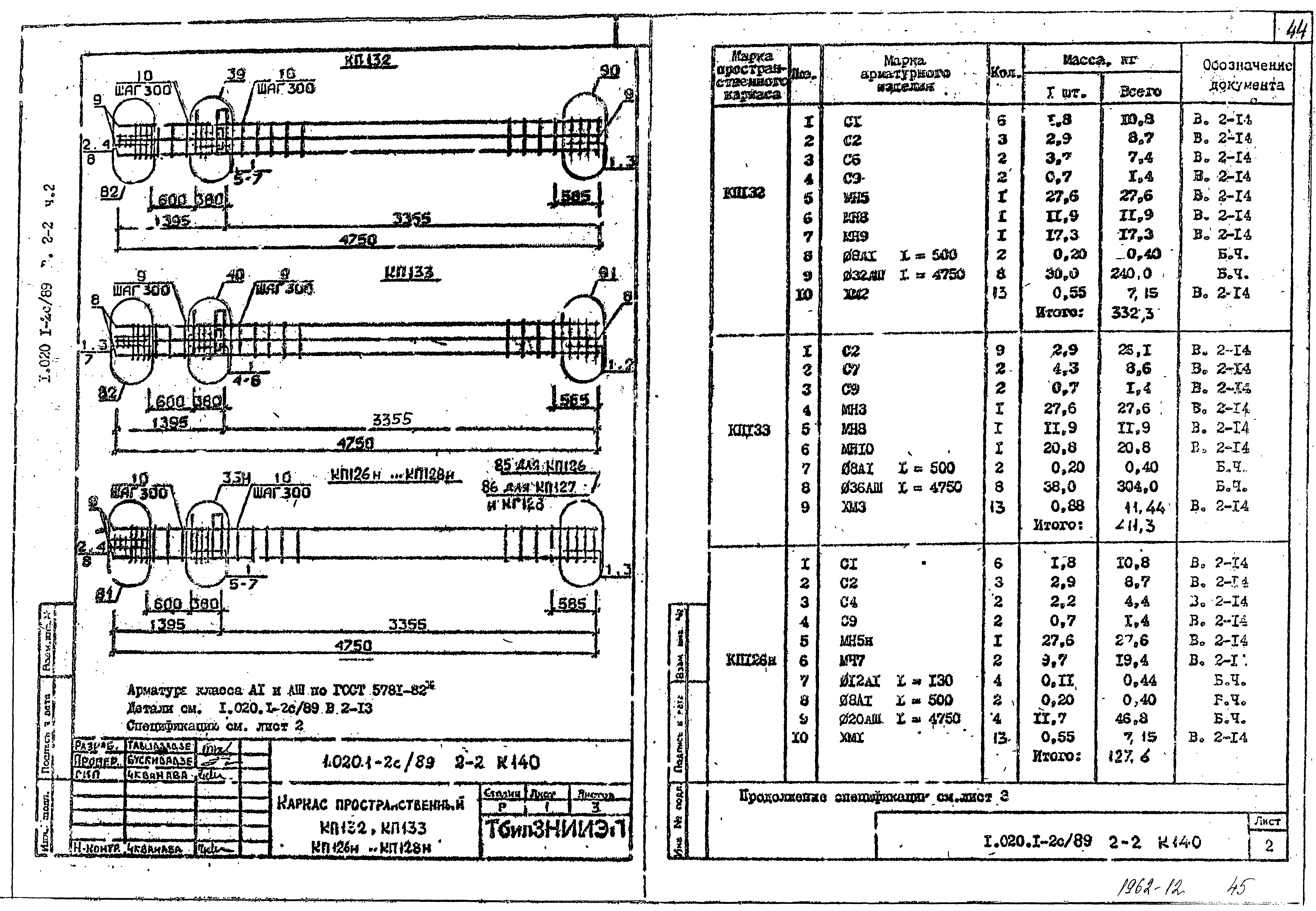 Скачать Серия 1.020.1-2с/89 Выпуск 2-2. Часть 2. Колонны сечением 400х400 мм для зданий с высотой этажа 3,3 м. Пространственные каркасы. Рабочие чертежи для несейсмических районовДата актуализации: 01.01.2021 Серия 1.020.1-2с/89