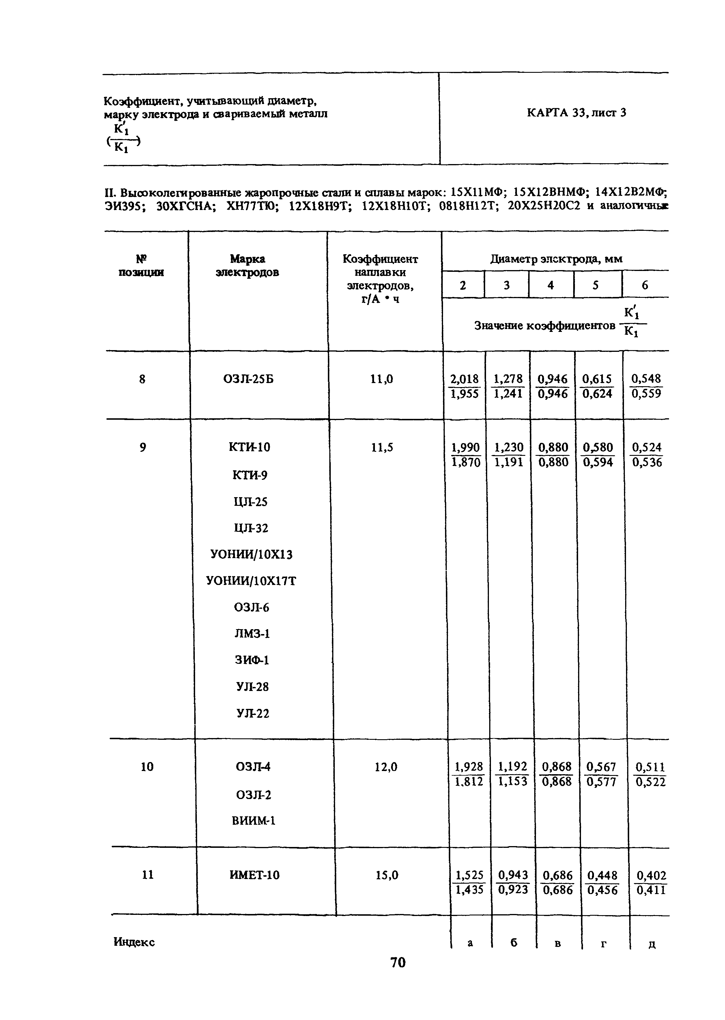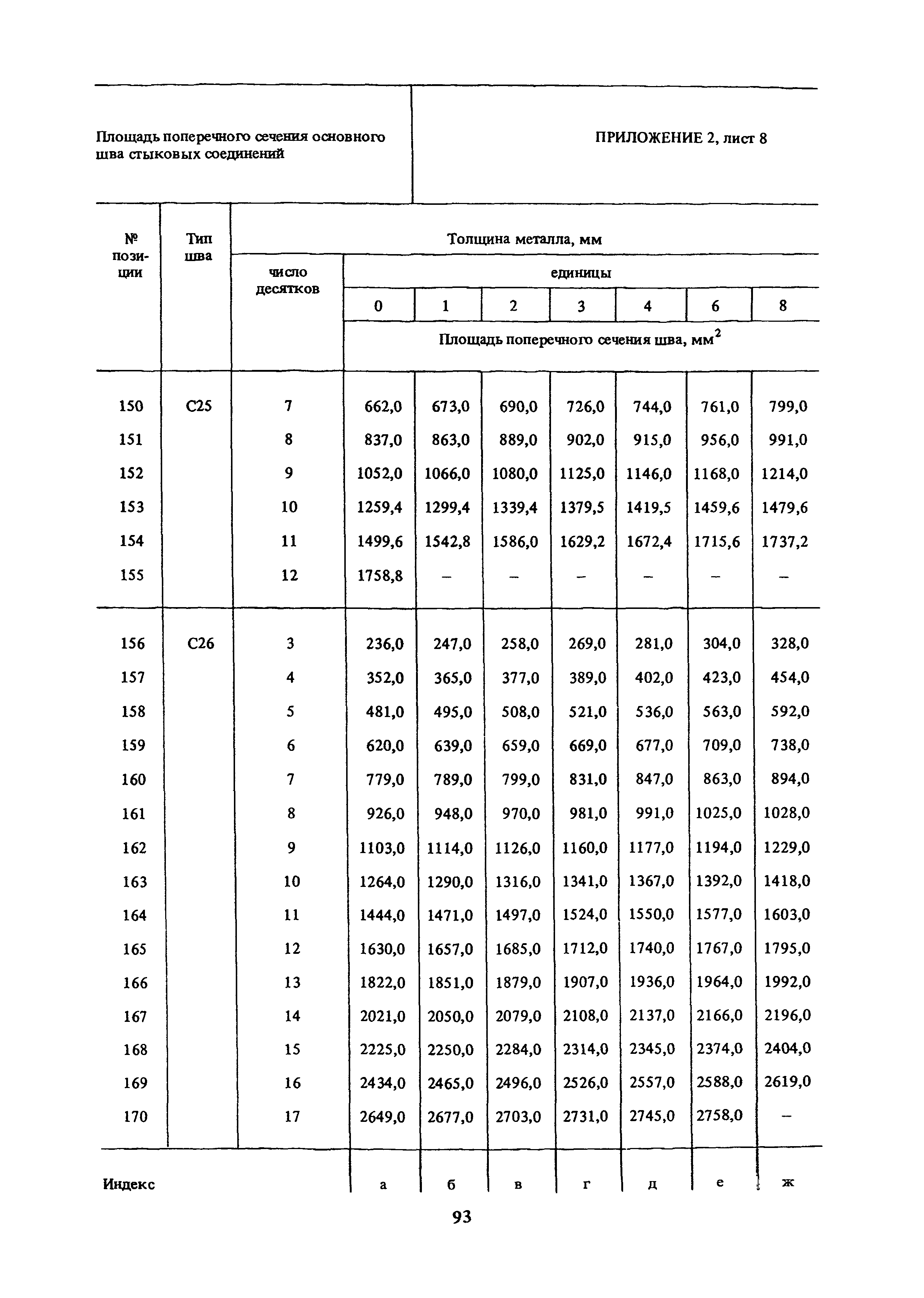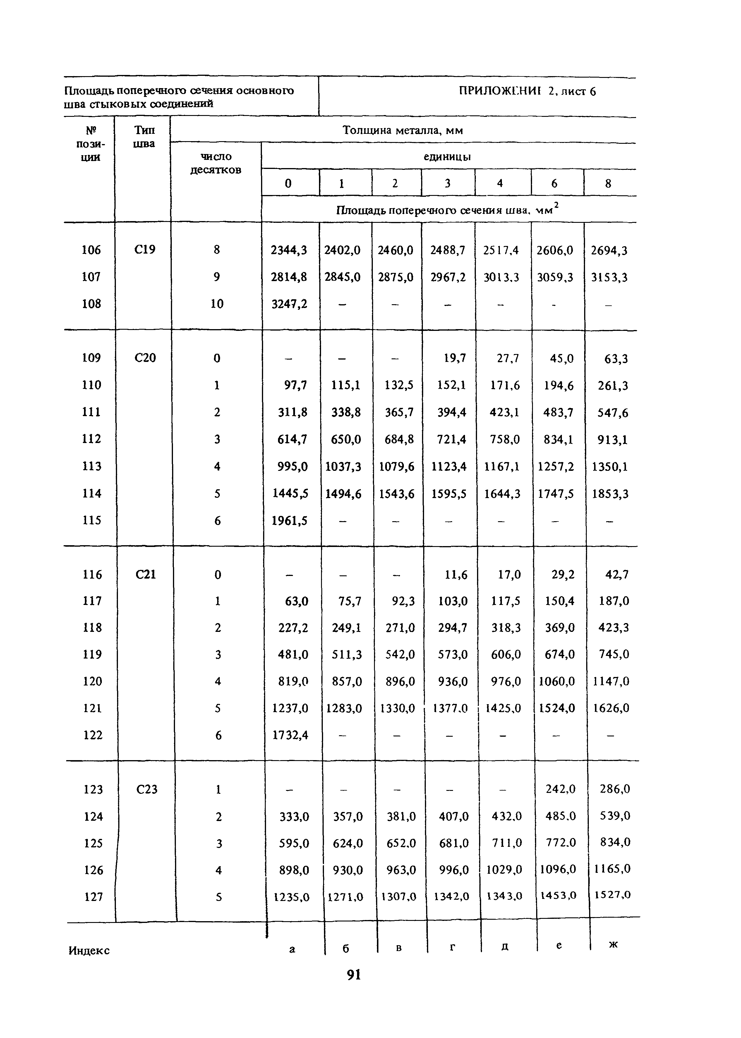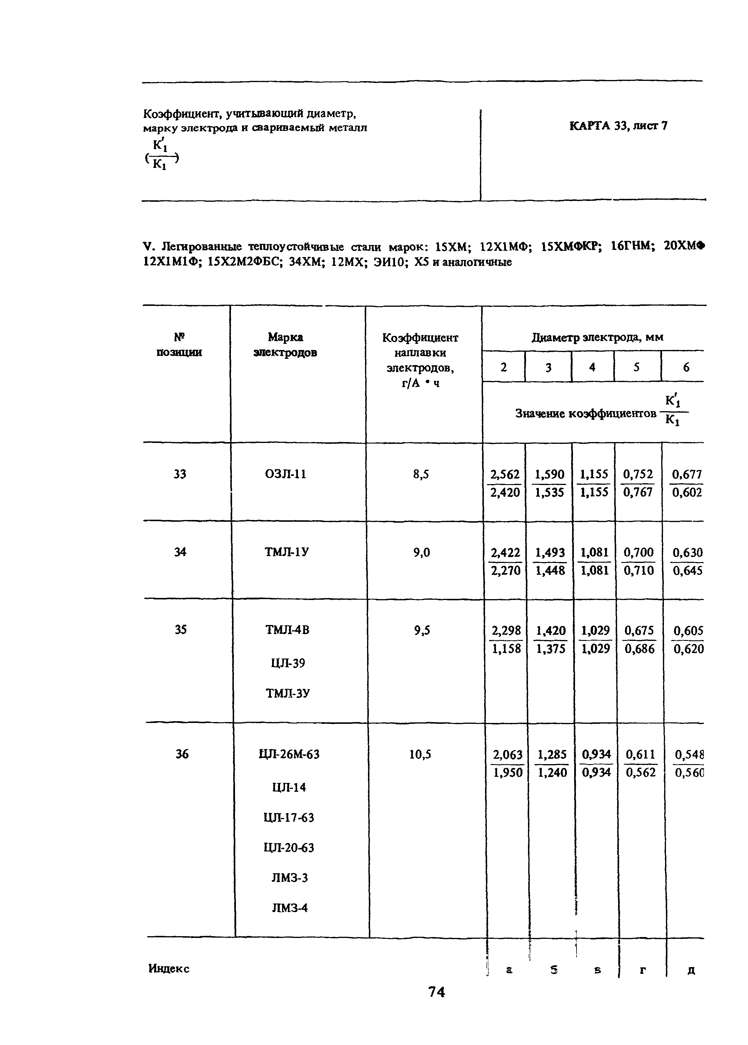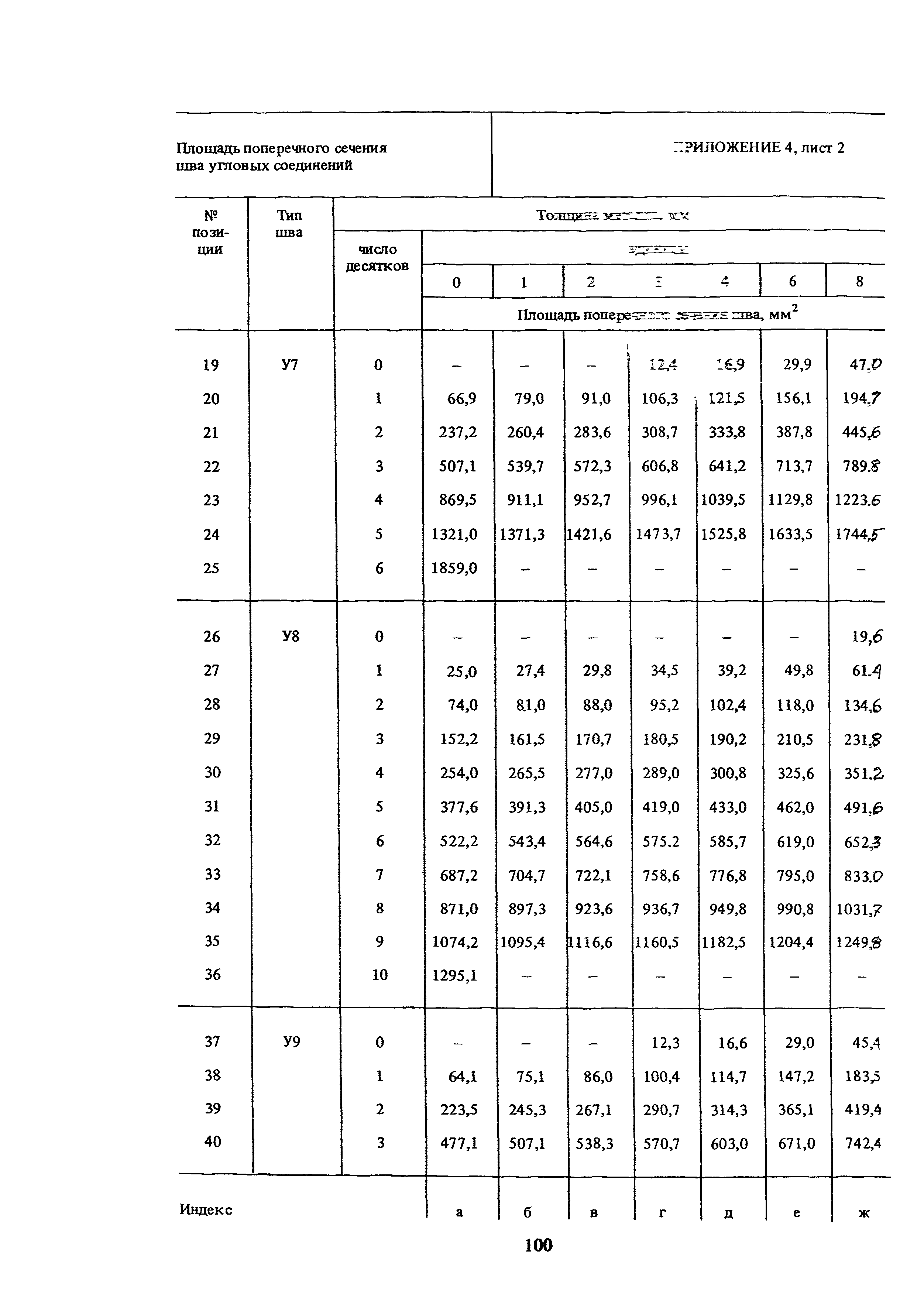 | Оглавление: | 1. Общая часть 2. Характеристика применяемого оборудования и технология работы 3. Организация труда 4. Нормативная часть 4.1. Неполное штучное время на 1 м сварного шва из листового и профильного проката 4.2. Неполное штучное время на сварку труб 4.3. Неполное штучное время на подварку корня шва 4.4. Вспомогательное время, зависящее от длины сварного шва, вошедшее в карты неполного штучного времени сварки (Твш) 4.5. Вспомогательное время, зависящее от длины свариваемого шва, не вошедшее в карты неполного штучного времени (Твш1) 4.6. Вспомогательное время, зависящее от изделия и типа обрудования (Тви) 4.7. Поправочные коэффициенты 4.8. Приложения Приложения 1. Расчетное значение силы тока в зависимости от толщины металла и диаметра электродов при сварке изделий Приложение 2. Площадь поперечного сечения основного шва стыковых соединений Приложение 3. Площадь поперечного сечения подварочного шва стыковых соединений Приложение 4. Площадь поперечного сечения шва угловых соединений Приложение 5. Площадь поперечного сечения подварочного шва угловых соединений Приложение 6. Площадь поперечного сечения шва тавровых соединений Приложение 7. Площадь поперечного сечения угловых, тавровых и нахлесточных соединений в зависимости от "Катета шва" Приложение 8. Площадь поперечного сечения шва первого и последующих проходов Приложение 9. Значение длины кольцевого стыка Приложение 10. Наименование, тип, вид шва и формулы расчета площади поперечного сечения швов |