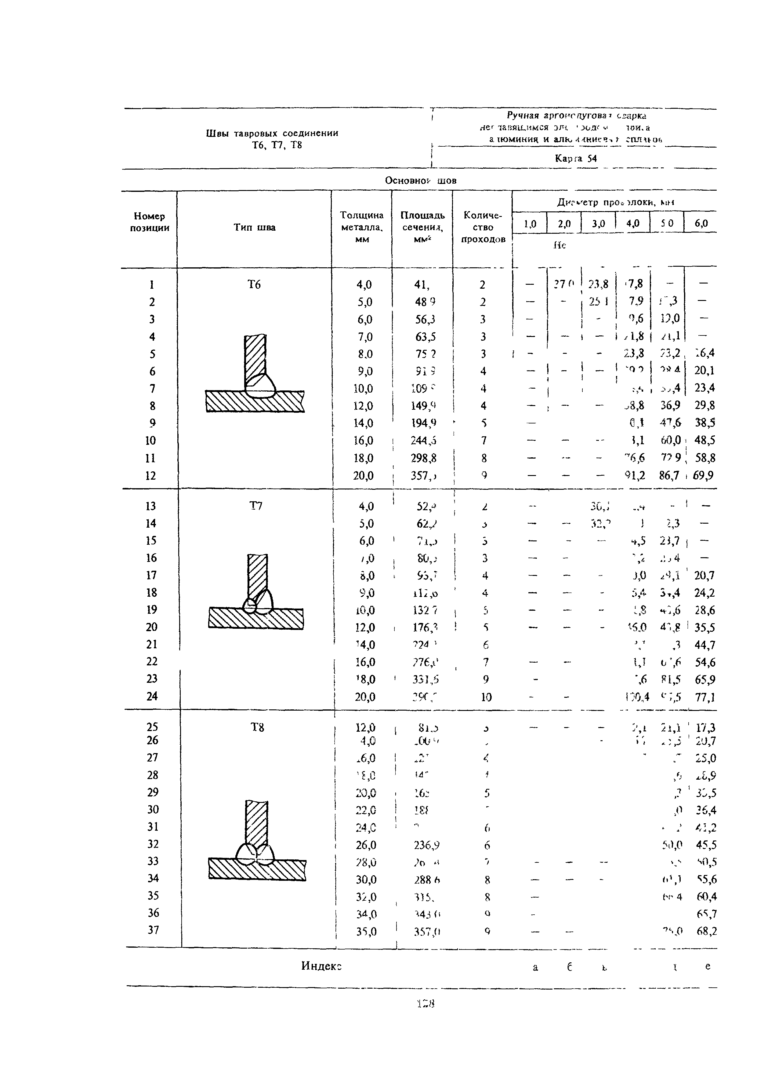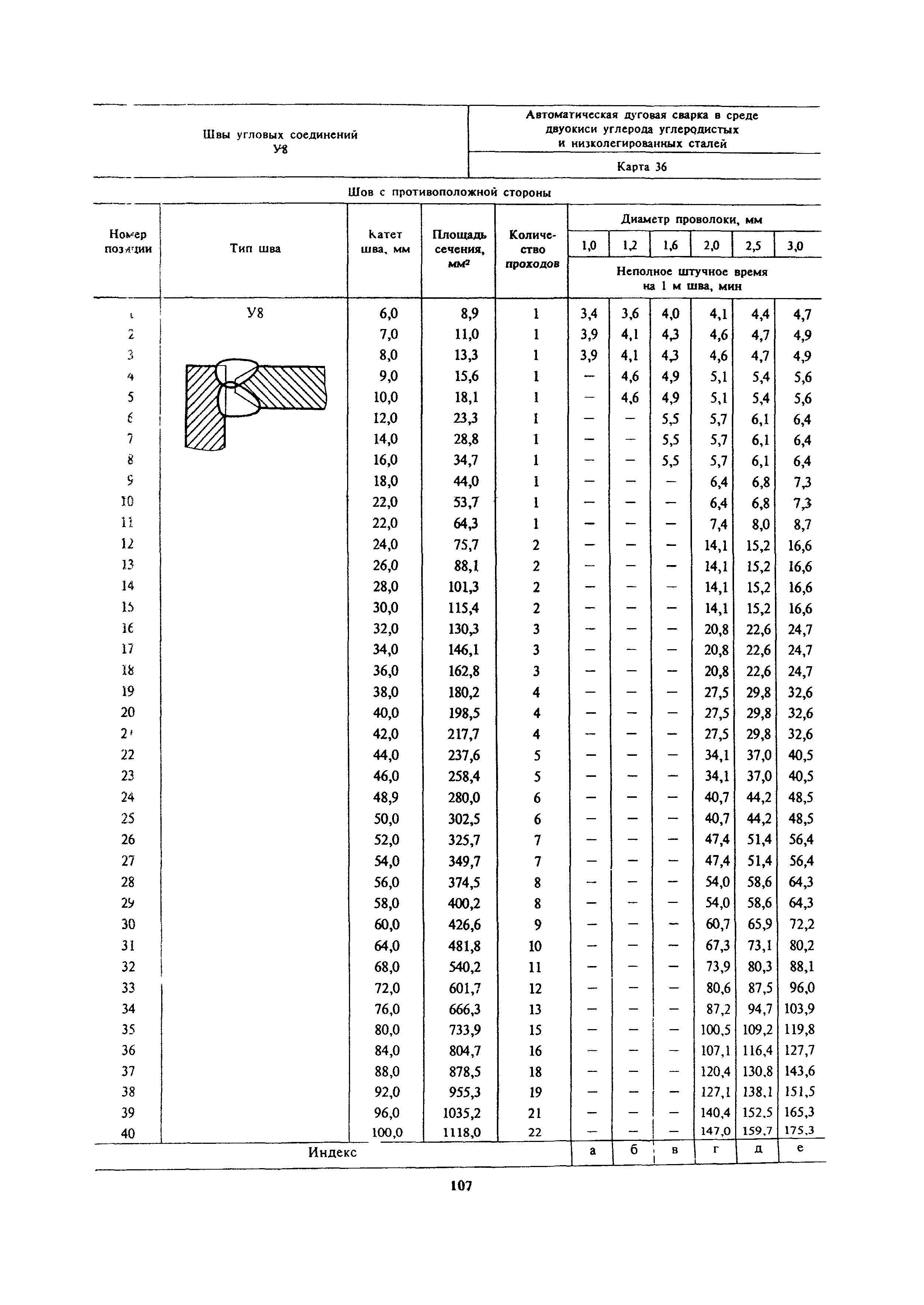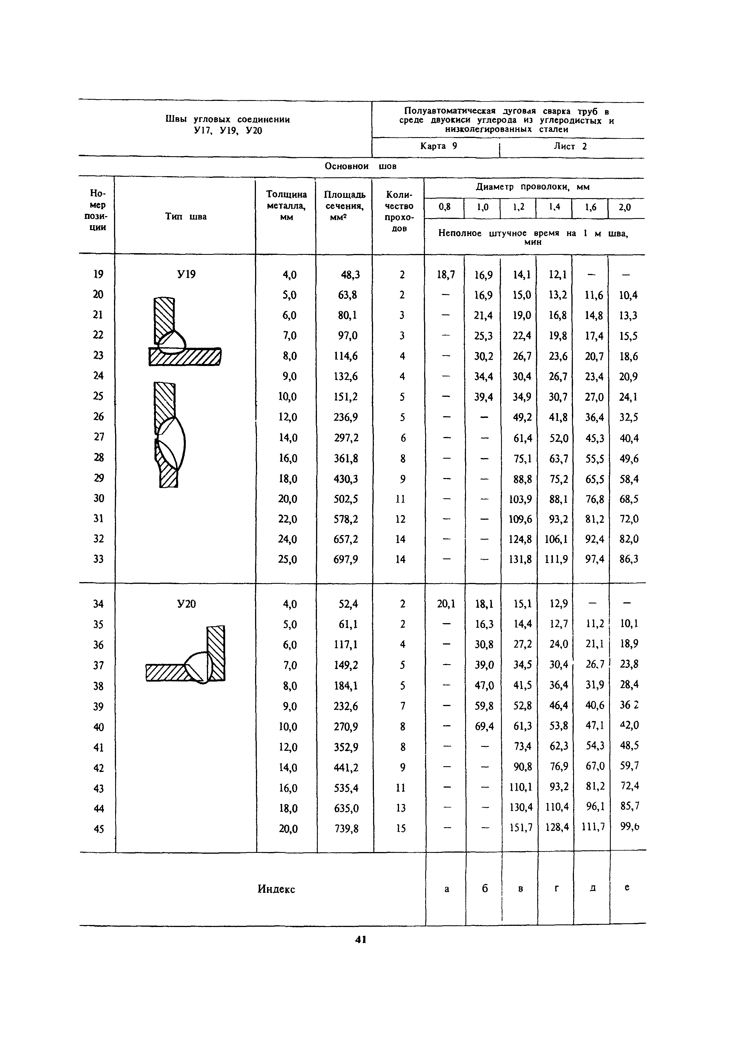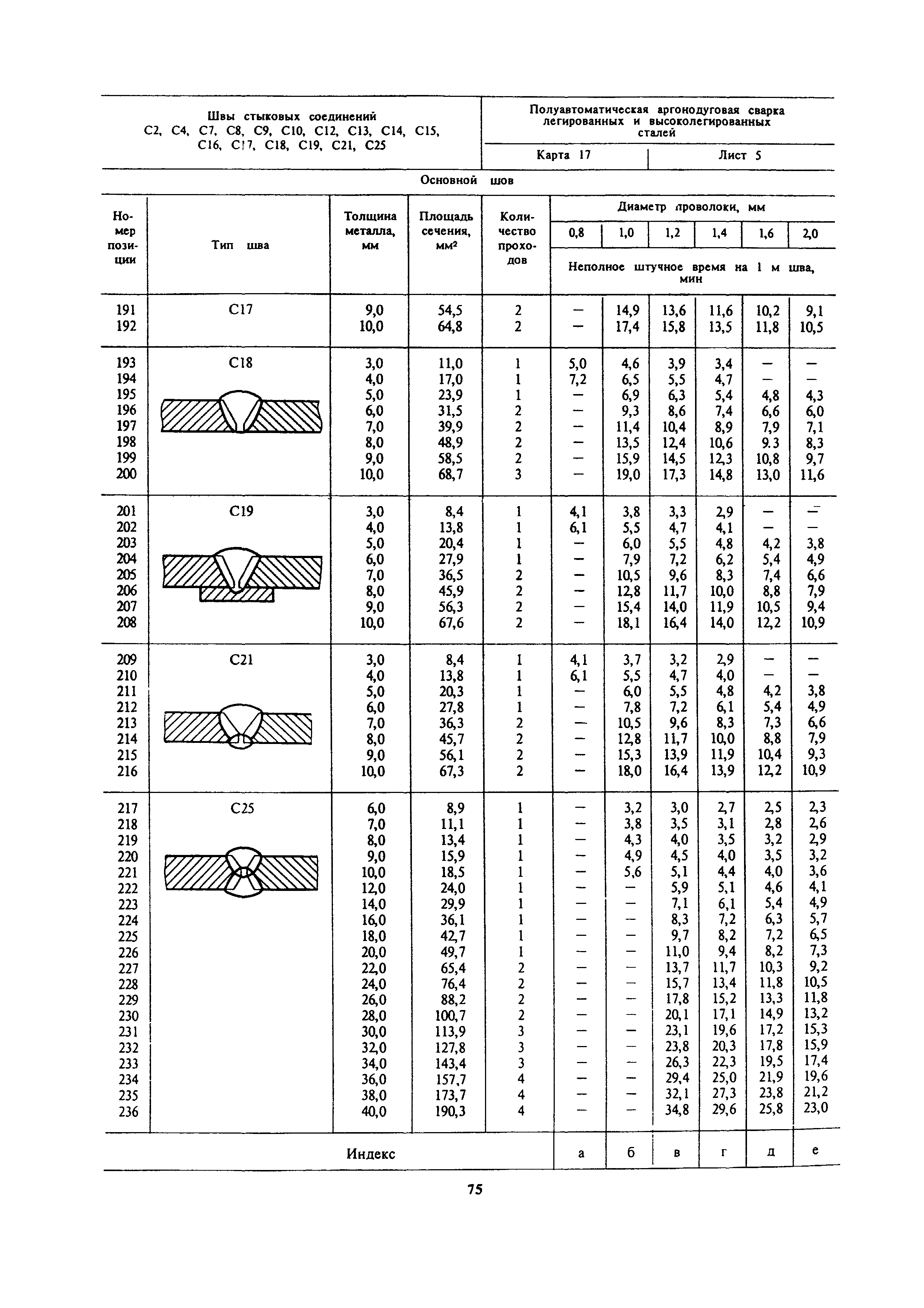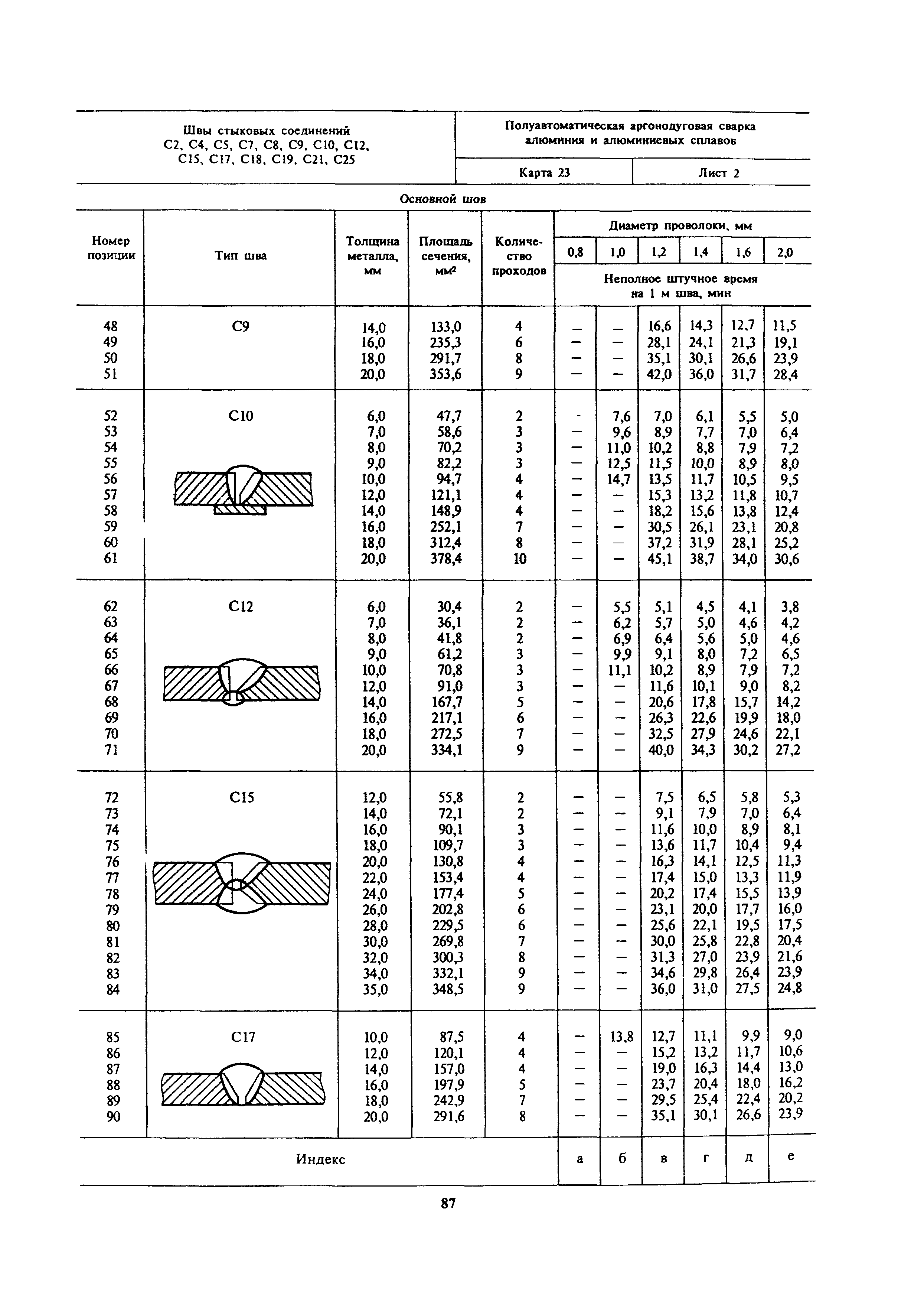 | Оглавление: | 1. Общая часть 2. Наименование оборудования и технология работы 3. Организация труда 4. Нормативная часть 4.1. Неполное штучное время на дуговую сварку 4.2. Вспомогательное время, связанное со сваркой шва. Автоматическая, полуавтоматическая и ручная дуговая сварка 4.3. Вспомогательное время, связанное с изделием и типом оборудования. Автоматическая, полуавтоматическая и ручная дуговая сварка 4.4. Поправочные коэффициенты к картам неполного штучного времени на измененные условия работы. Автоматическая, полуавтоматическая и ручная дуговая сварка 4.5. Приложения Приложения 1. Площадь поперечного сечения шва для расчета количества проходов сварки Приложение 2. Значение коэффициента наплавки металла Приложение 3. Значение коэффициента плотности наплавленного металла Приложение 4. Расчетное значение силы тока в зависимости от толщины металла и диаметра сварочной проволоки для полуавтоматической сварки стыков труб из меди и медно-никелевых сплавов Приложение 6. Расчетное значение скорости сварки в зависимости от диаметра сварочной проволоки и катета шва для автоматической дуговой сварки алюминия и алюминиевых сплавов плавящимся электродом Приложение 7. Расчетное значение скорости сварки в зависимости от диаметра сварочной проволоки и толщины металла при автоматической сварке Приложение 8. Расчетное значение скорости сварки в зависимости от диаметра присадочной проволоки и катета шва при автоматической аргонодуговой сварке алюминия и алюминиевых сплавов неплавящимся электродом Приложение 9. Расчетное значение скорости сварки в зависимости от диаметра присадочной проволоки и толщины металла при автоматической дуговой сварке алюминиевых сплавов неплавящимся электродом Приложение 10. Расчетное значение силы тока в зависимости от диаметра присадочной проволоки и толщины металла при ручной аргонодуговой сварке алюминия и алюминиевых сплавов неплавящимся электродом Приложение 11. Расчетное значение силы тока в зависимости от диаметра присадочной проволоки и толщины металла при ручной аргонодуговой сварке меди и медно-никелевых сплавов неплавящимся электродом Приложение 12. Расчетное значение силы тока в зависимости от диаметра присадочной проволоки и толщины металла при ручной аргонодуговой сварке легированных и высоколегированных сталей плавящимся электродом Приложение 13. Значение длины кольцевого стыка в зависимости от его диаметра Приложение 14. Наименование, индекс, вид шва и формулы расчета площади поперечного сечения швов |