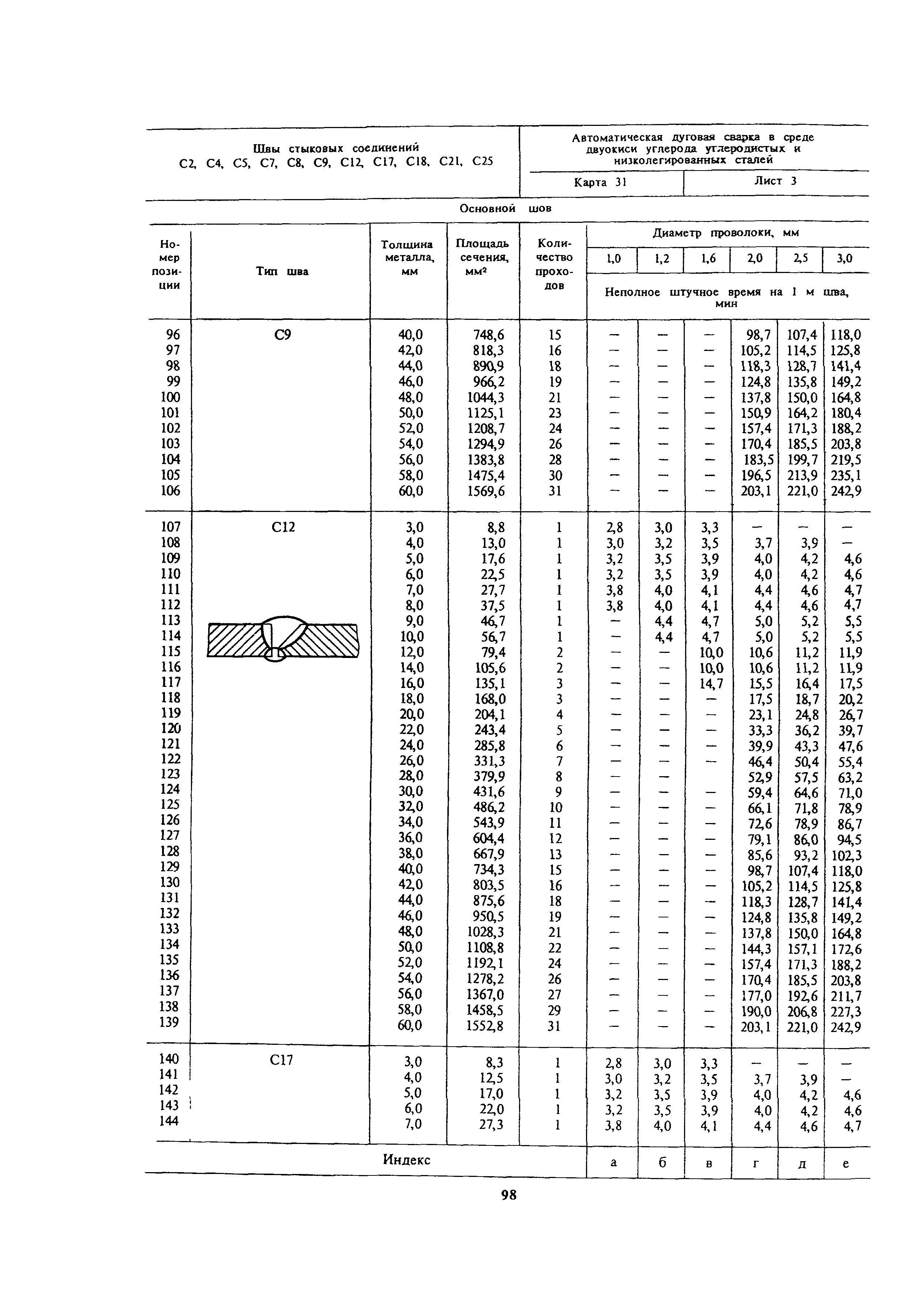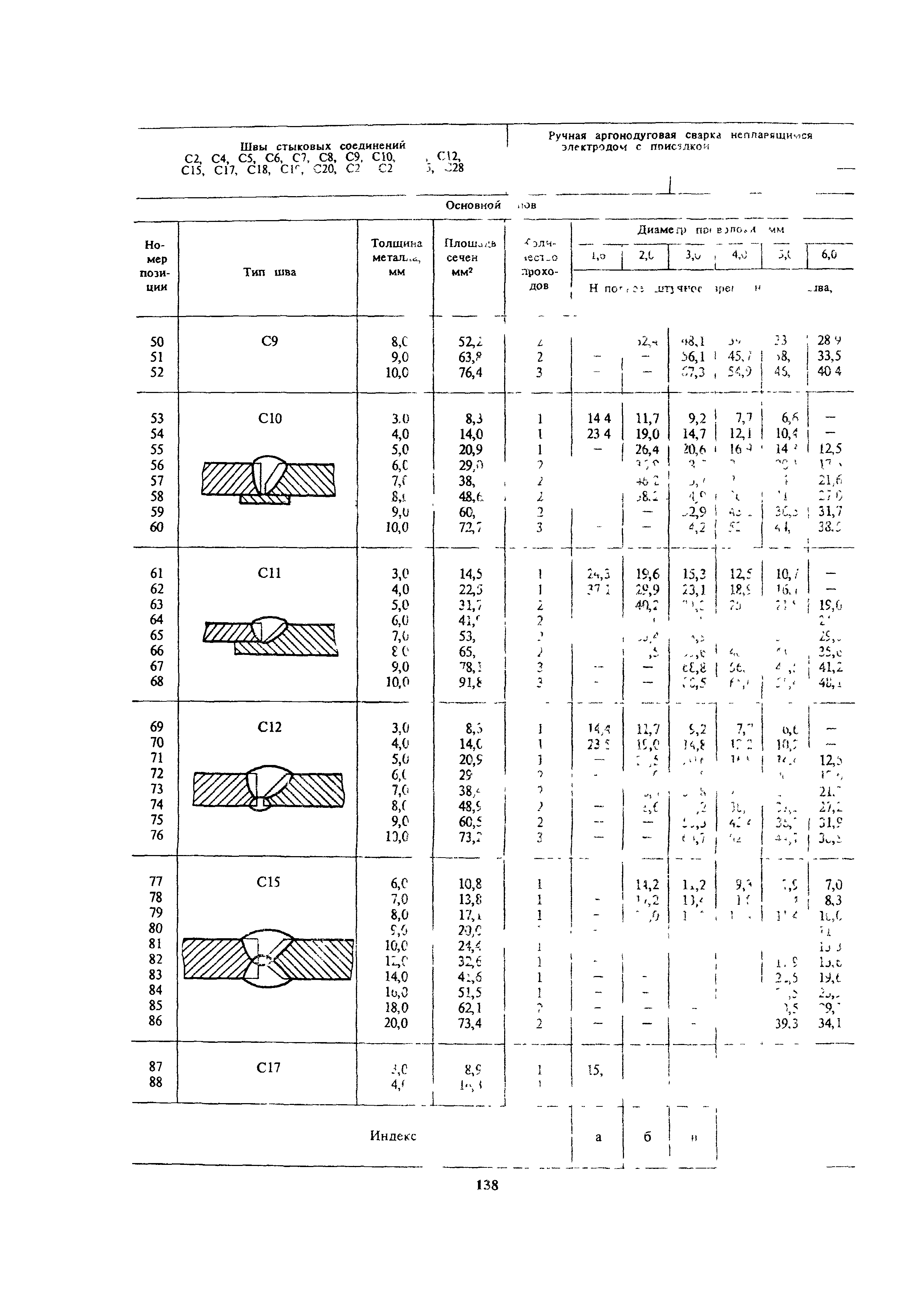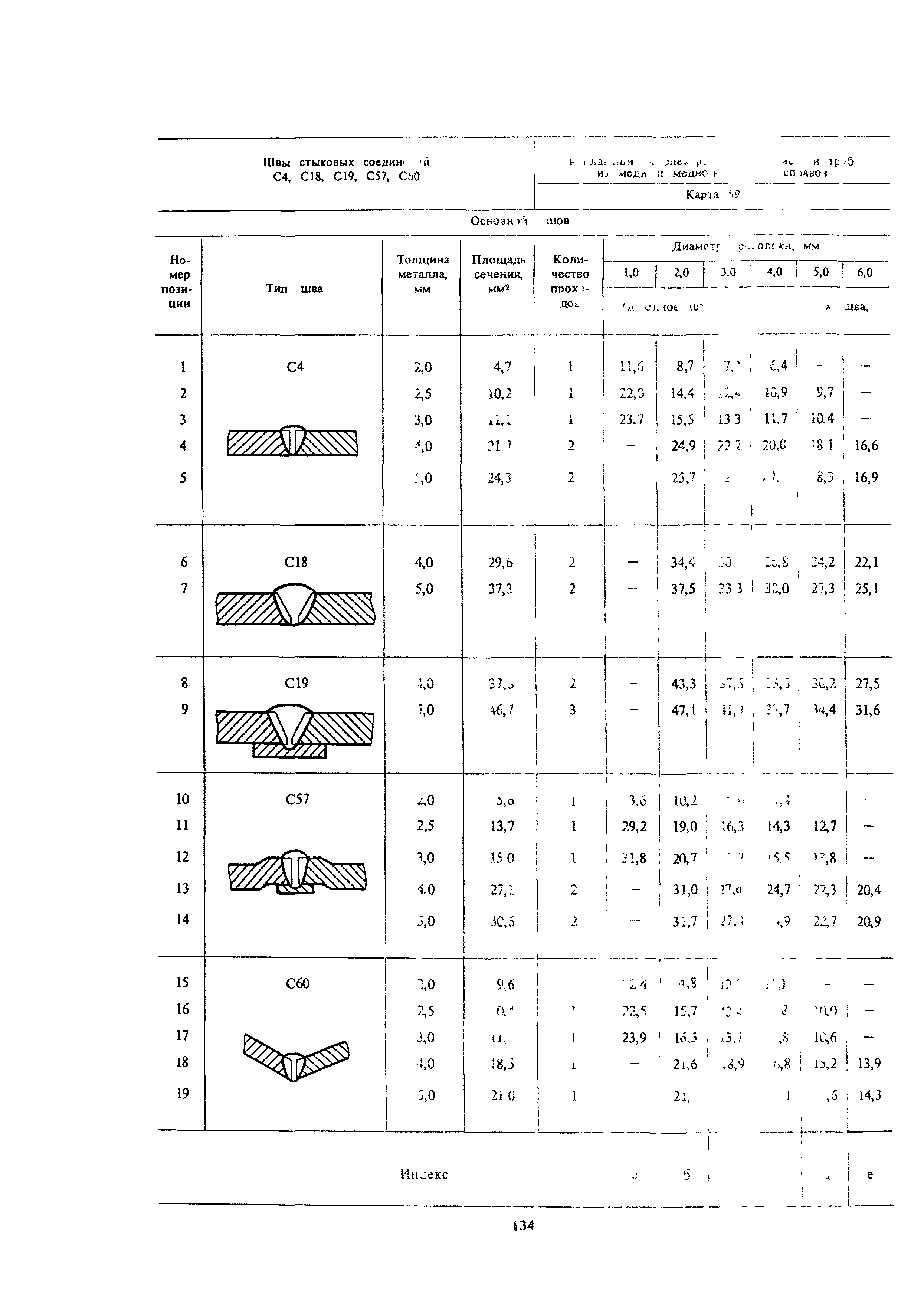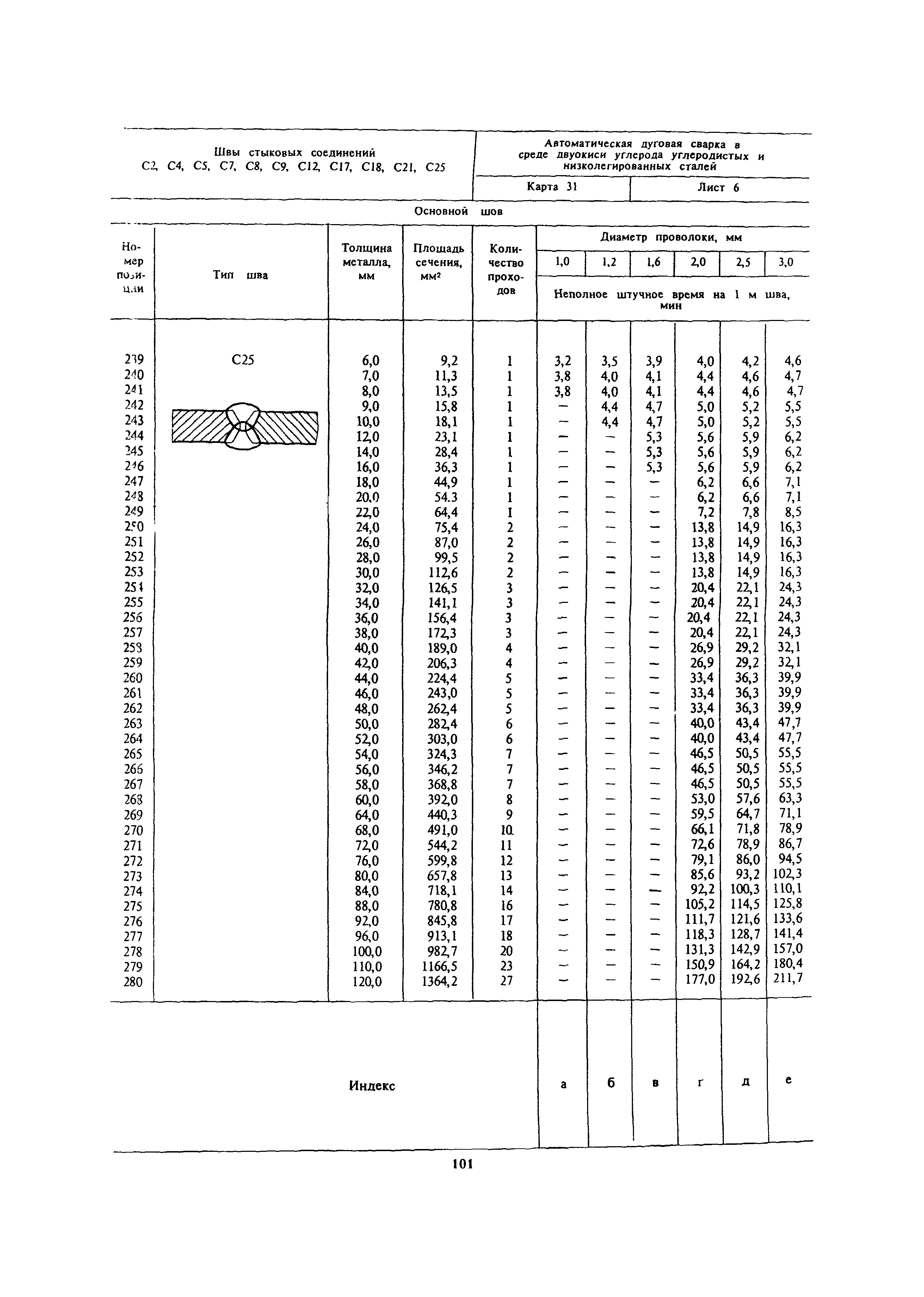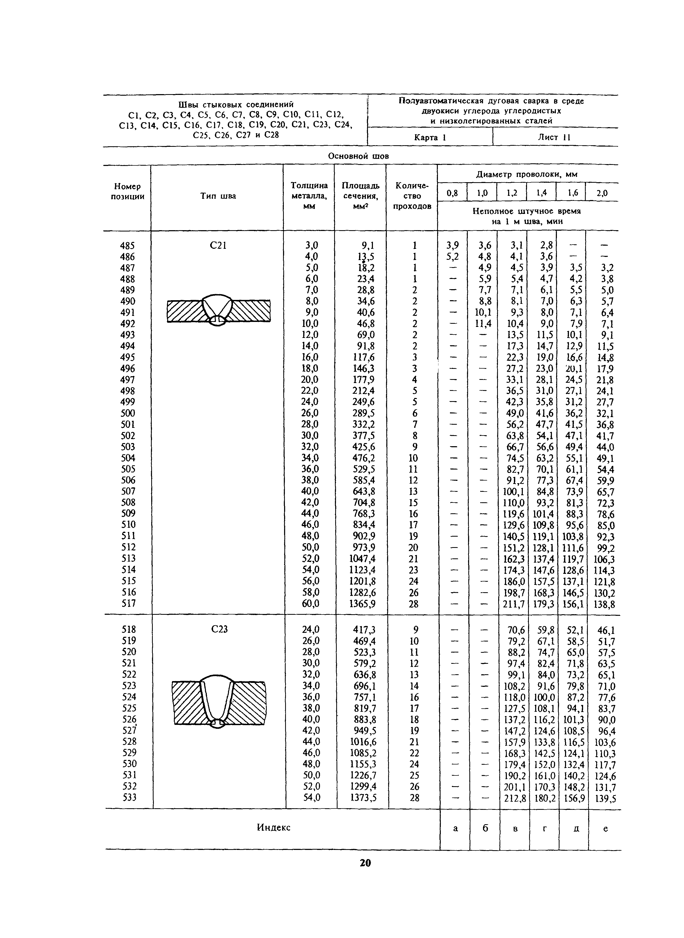 | Оглавление: | 1. Общая часть 2. Наименование оборудования и технология работы 3. Организация труда 4. Нормативная часть 4.1. Неполное штучное время на дуговую сварку 4.2. Вспомогательное время, связанное со сваркой шва. Автоматическая, полуавтоматическая и ручная дуговая сварка 4.3. Вспомогательное время, связанное с изделием и типом оборудования. Автоматическая, полуавтоматическая и ручная дуговая сварка 4.4. Поправочные коэффициенты к картам неполного штучного времени на измененные условия работы. Автоматическая, полуавтоматическая и ручная дуговая сварка 4.5. Приложения Приложения 1. Площадь поперечного сечения шва для расчета количества проходов сварки Приложение 2. Значение коэффициента наплавки металла Приложение 3. Значение коэффициента плотности наплавленного металла Приложение 4. Расчетное значение силы тока в зависимости от толщины металла и диаметра сварочной проволоки для полуавтоматической сварки стыков труб из меди и медно-никелевых сплавов Приложение 6. Расчетное значение скорости сварки в зависимости от диаметра сварочной проволоки и катета шва для автоматической дуговой сварки алюминия и алюминиевых сплавов плавящимся электродом Приложение 7. Расчетное значение скорости сварки в зависимости от диаметра сварочной проволоки и толщины металла при автоматической сварке Приложение 8. Расчетное значение скорости сварки в зависимости от диаметра присадочной проволоки и катета шва при автоматической аргонодуговой сварке алюминия и алюминиевых сплавов неплавящимся электродом Приложение 9. Расчетное значение скорости сварки в зависимости от диаметра присадочной проволоки и толщины металла при автоматической дуговой сварке алюминиевых сплавов неплавящимся электродом Приложение 10. Расчетное значение силы тока в зависимости от диаметра присадочной проволоки и толщины металла при ручной аргонодуговой сварке алюминия и алюминиевых сплавов неплавящимся электродом Приложение 11. Расчетное значение силы тока в зависимости от диаметра присадочной проволоки и толщины металла при ручной аргонодуговой сварке меди и медно-никелевых сплавов неплавящимся электродом Приложение 12. Расчетное значение силы тока в зависимости от диаметра присадочной проволоки и толщины металла при ручной аргонодуговой сварке легированных и высоколегированных сталей плавящимся электродом Приложение 13. Значение длины кольцевого стыка в зависимости от его диаметра Приложение 14. Наименование, индекс, вид шва и формулы расчета площади поперечного сечения швов |