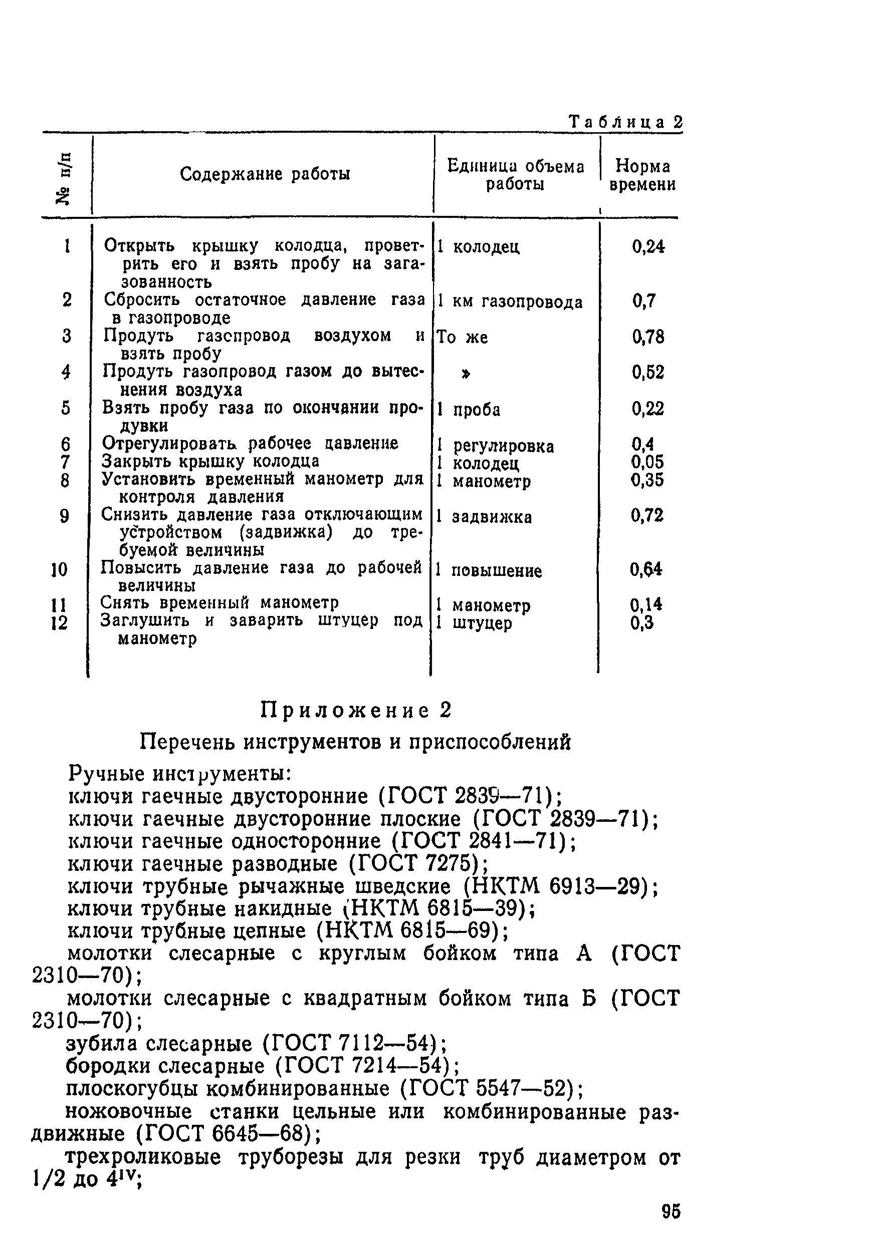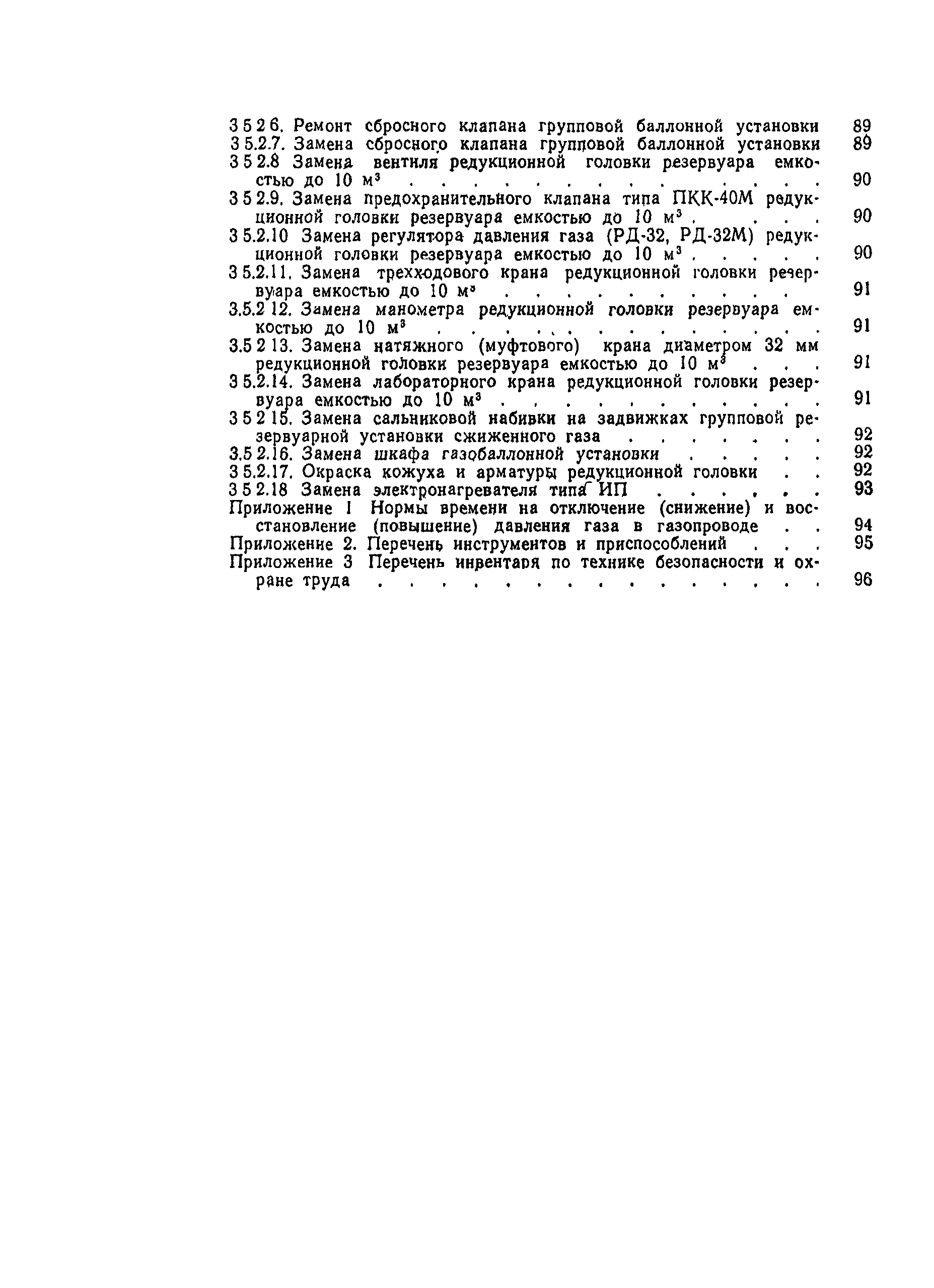 | Оглавление: | 1. Общая часть 2. Организация труда 3. Нормативная часть Приложение 1. Нормы времени на отключение (снижение) и восстановление (повышение) давления газа в газопроводе Приложение 2. Перечень инструментов и приспособлений Приложение 3. Перечень инвентаря по технике безопасности и охране труда |