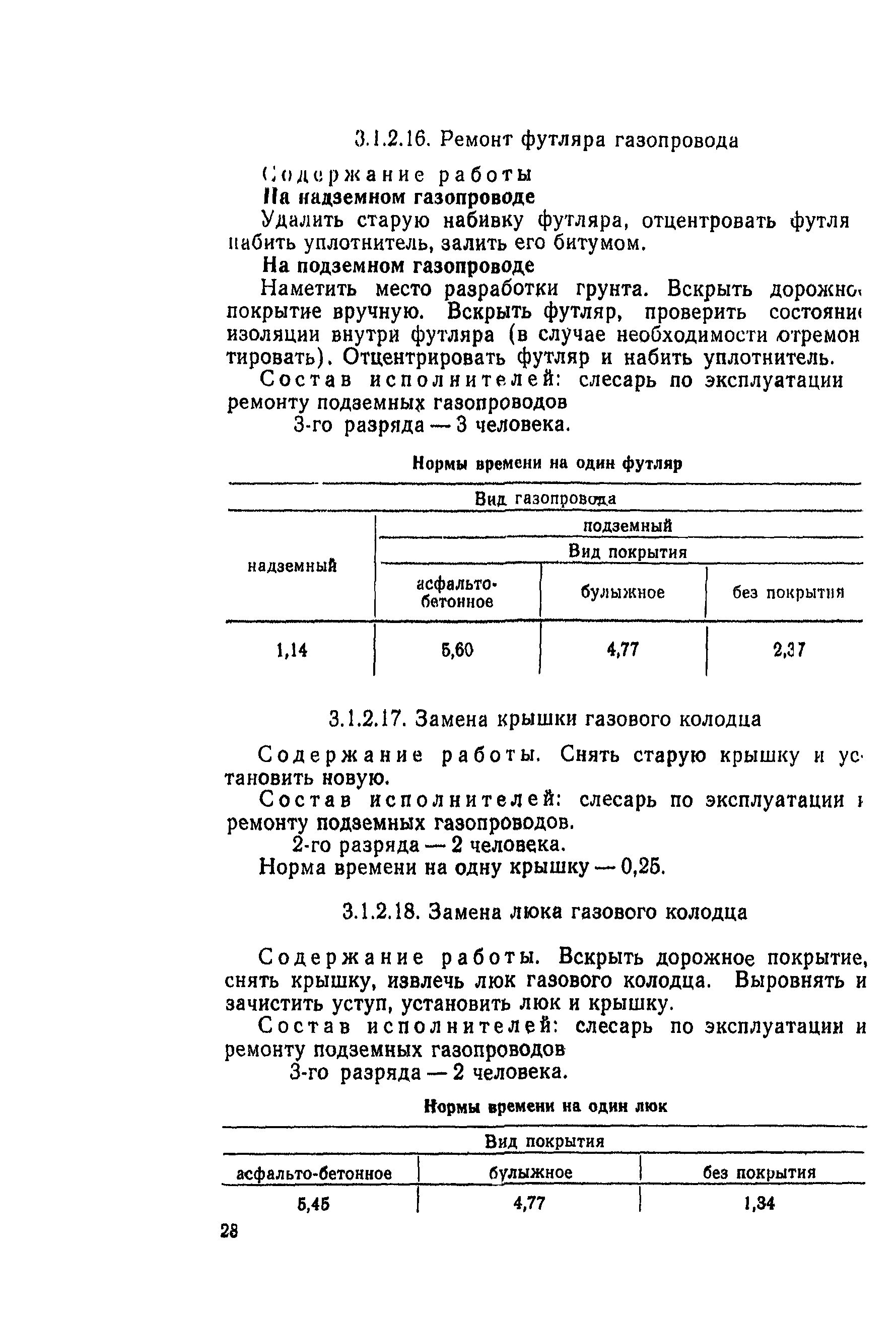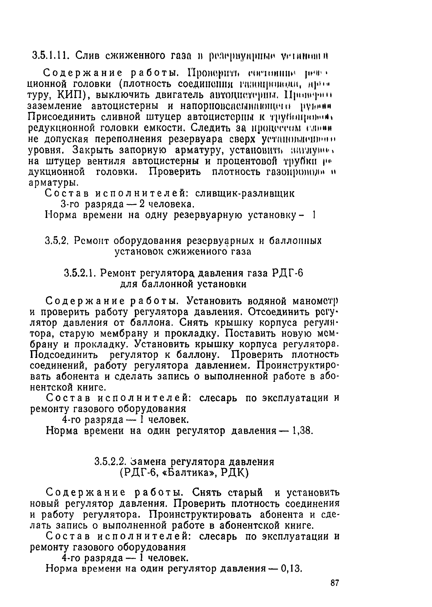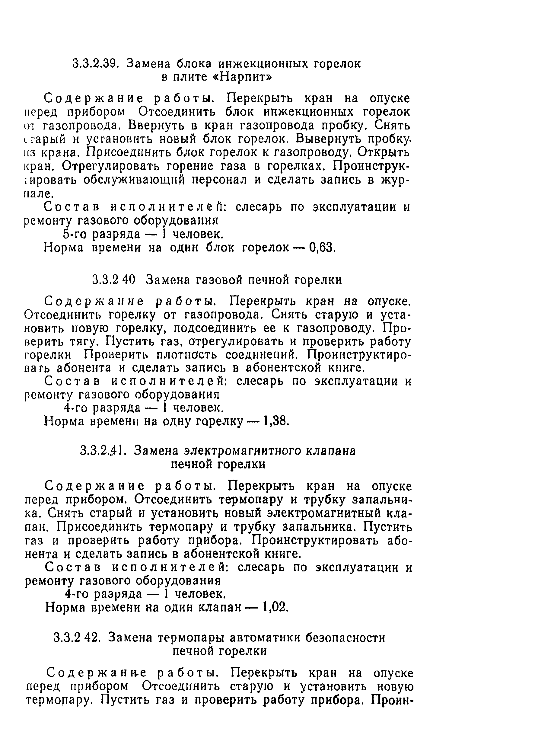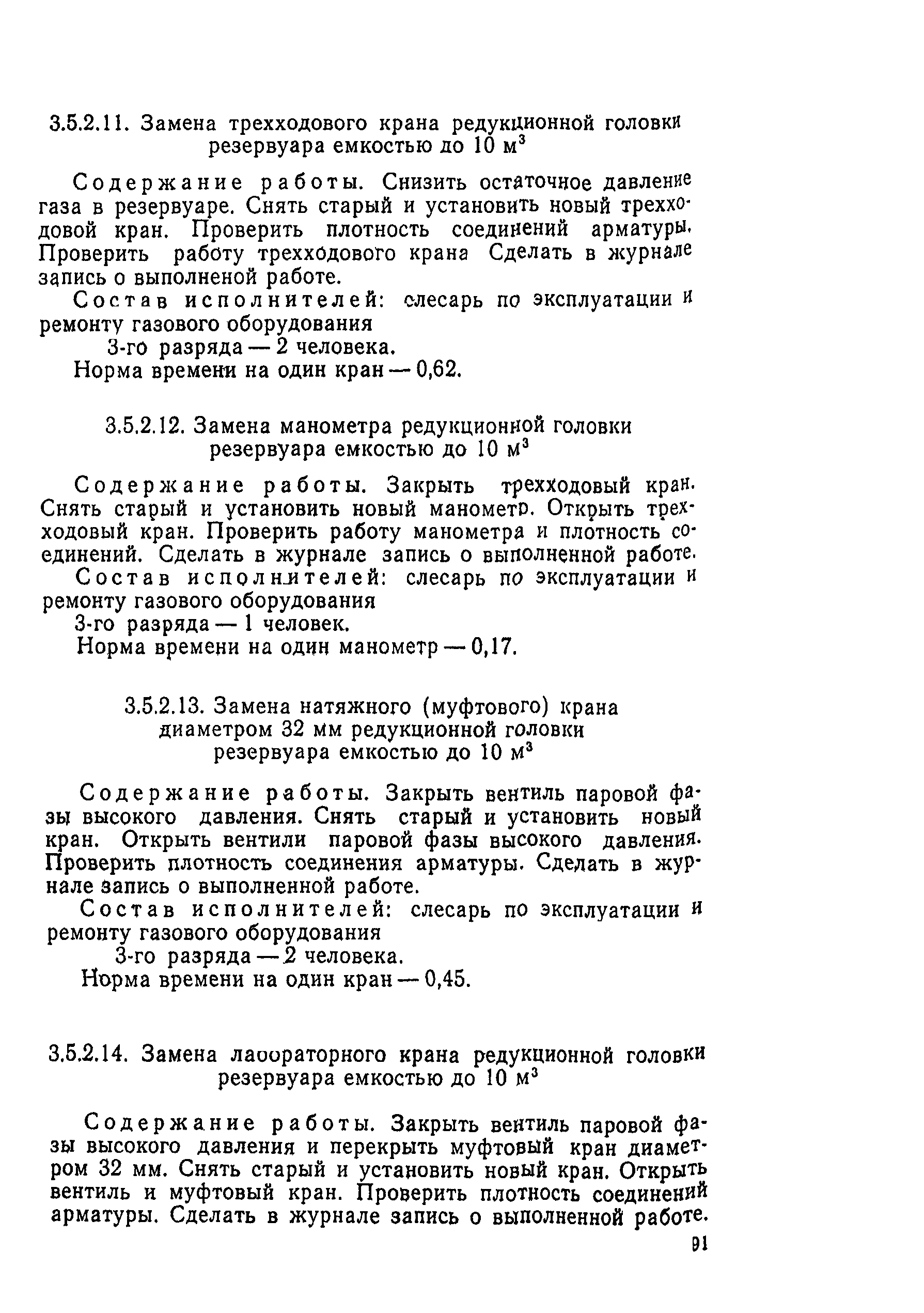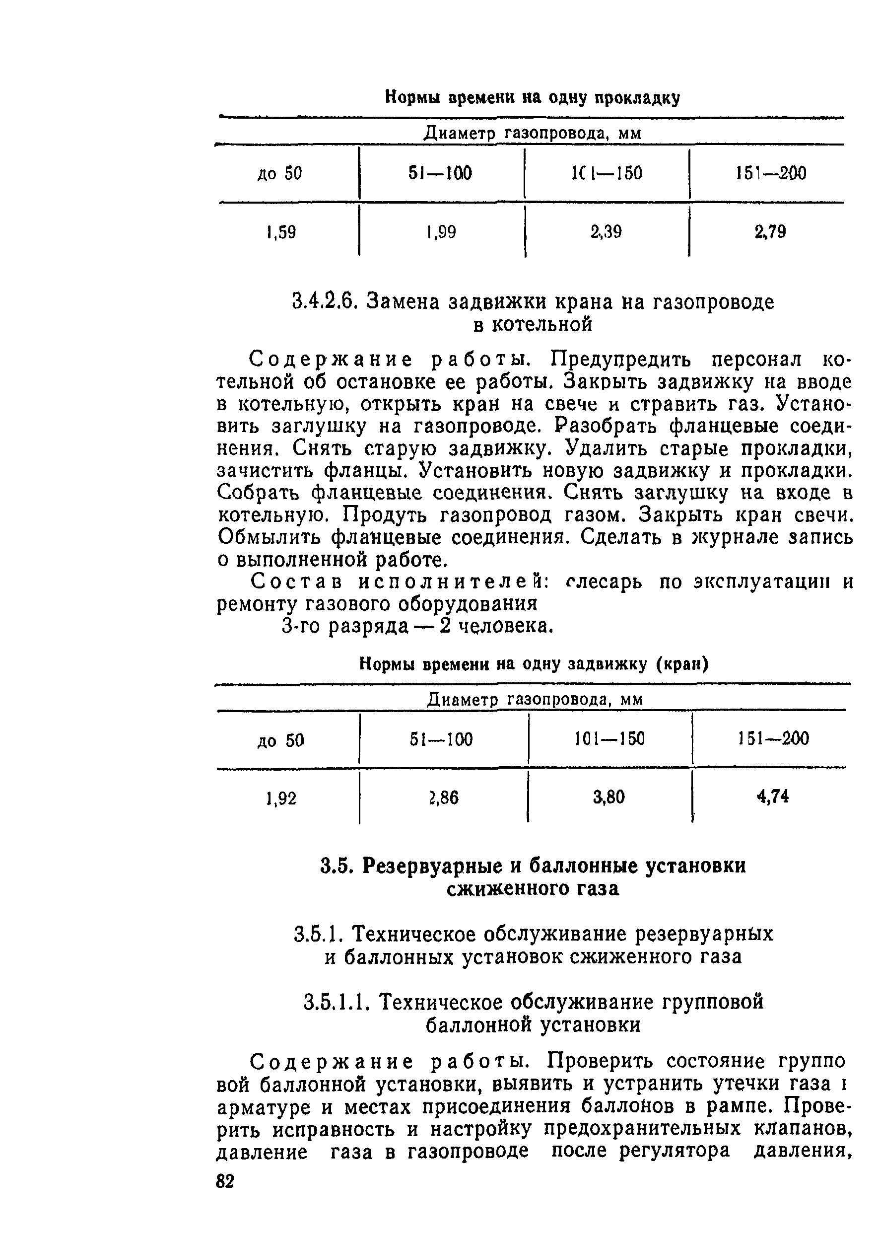 | Область применения: | Типовые нормы времени рекомендуются для нормирования труда рабочих, занятых выполнением работ по техническому обслуживанию и ремонту газопроводов, сооружений и газового оборудования |