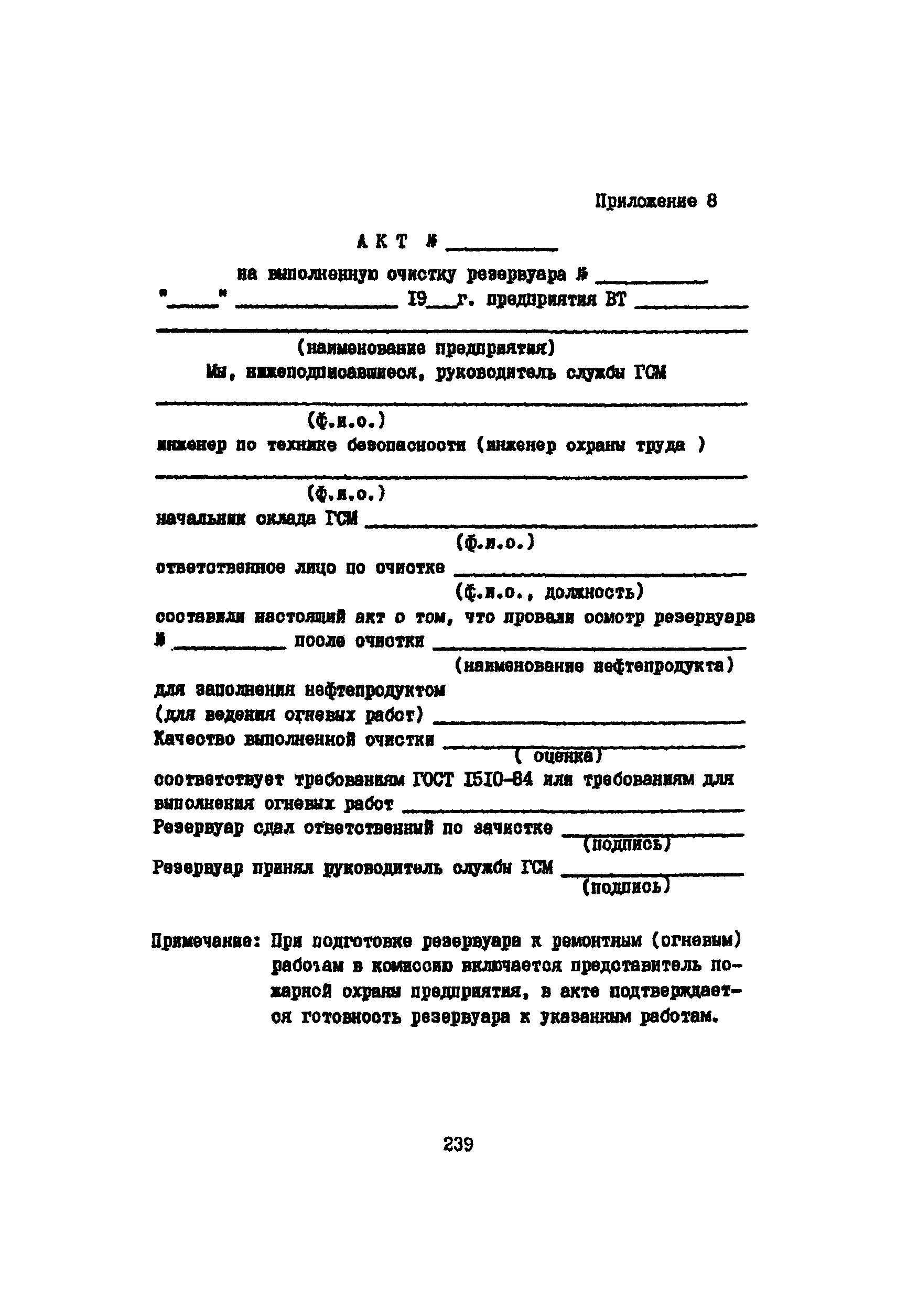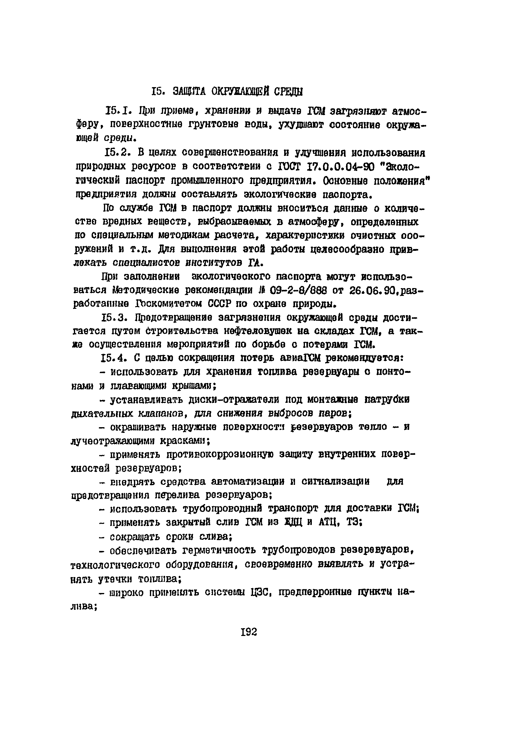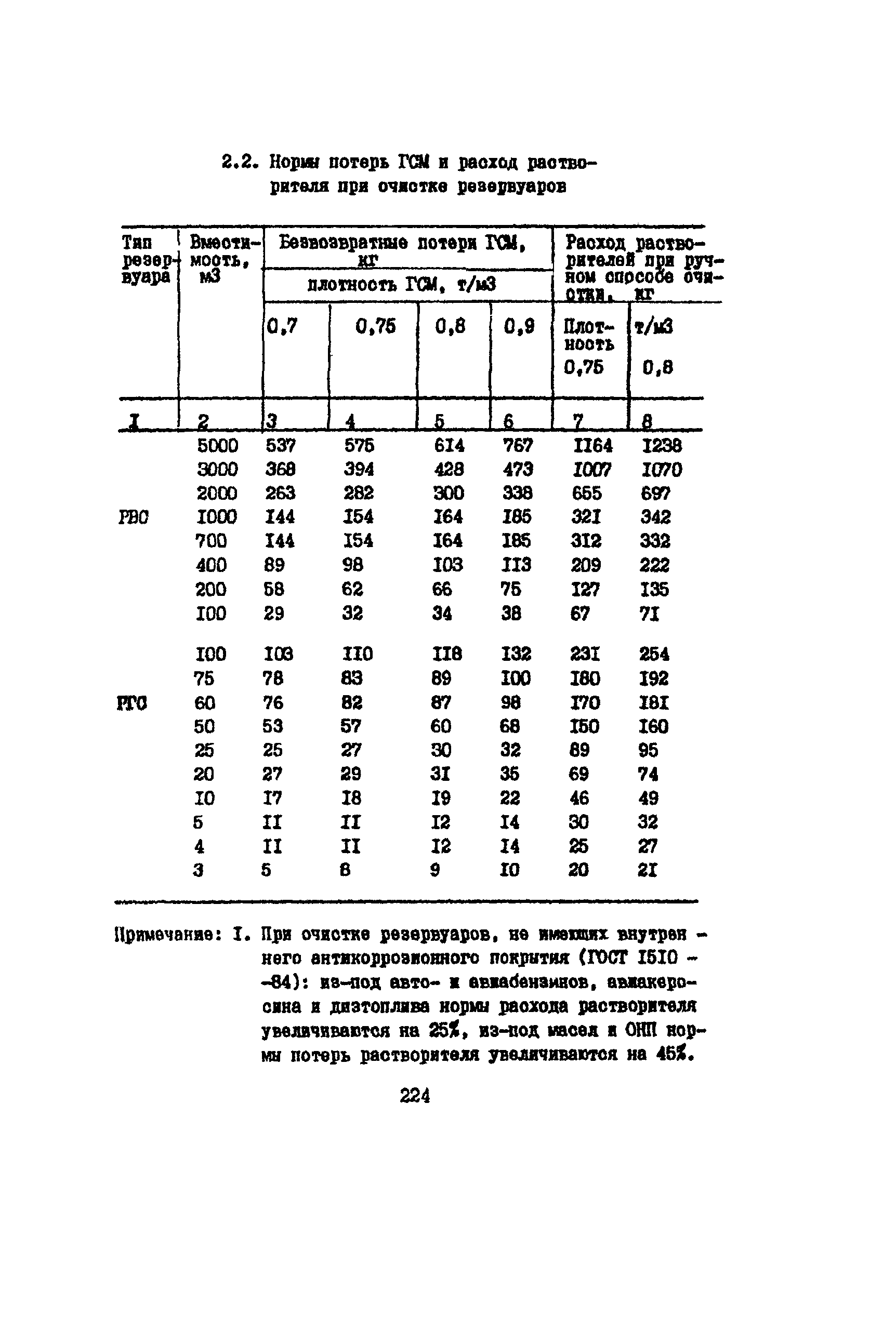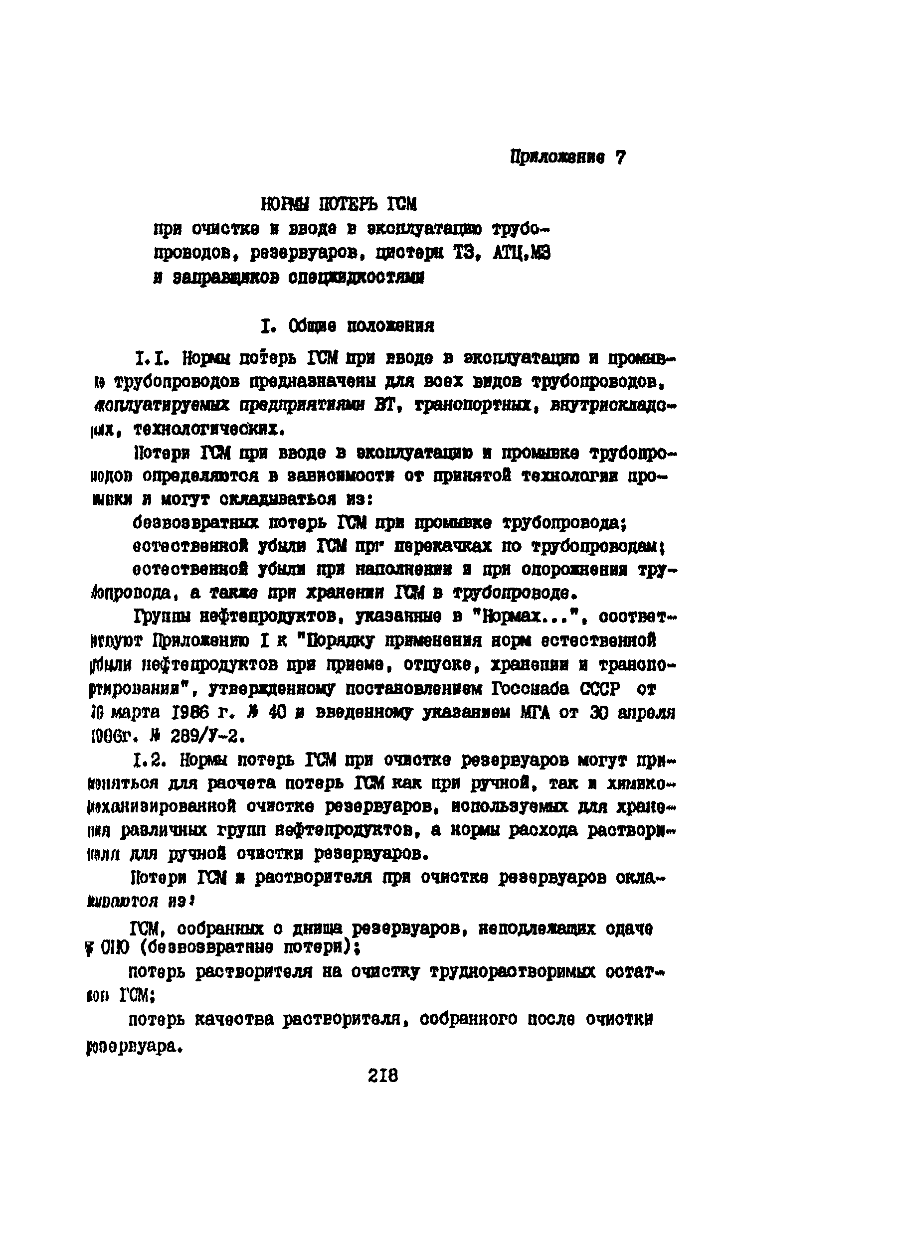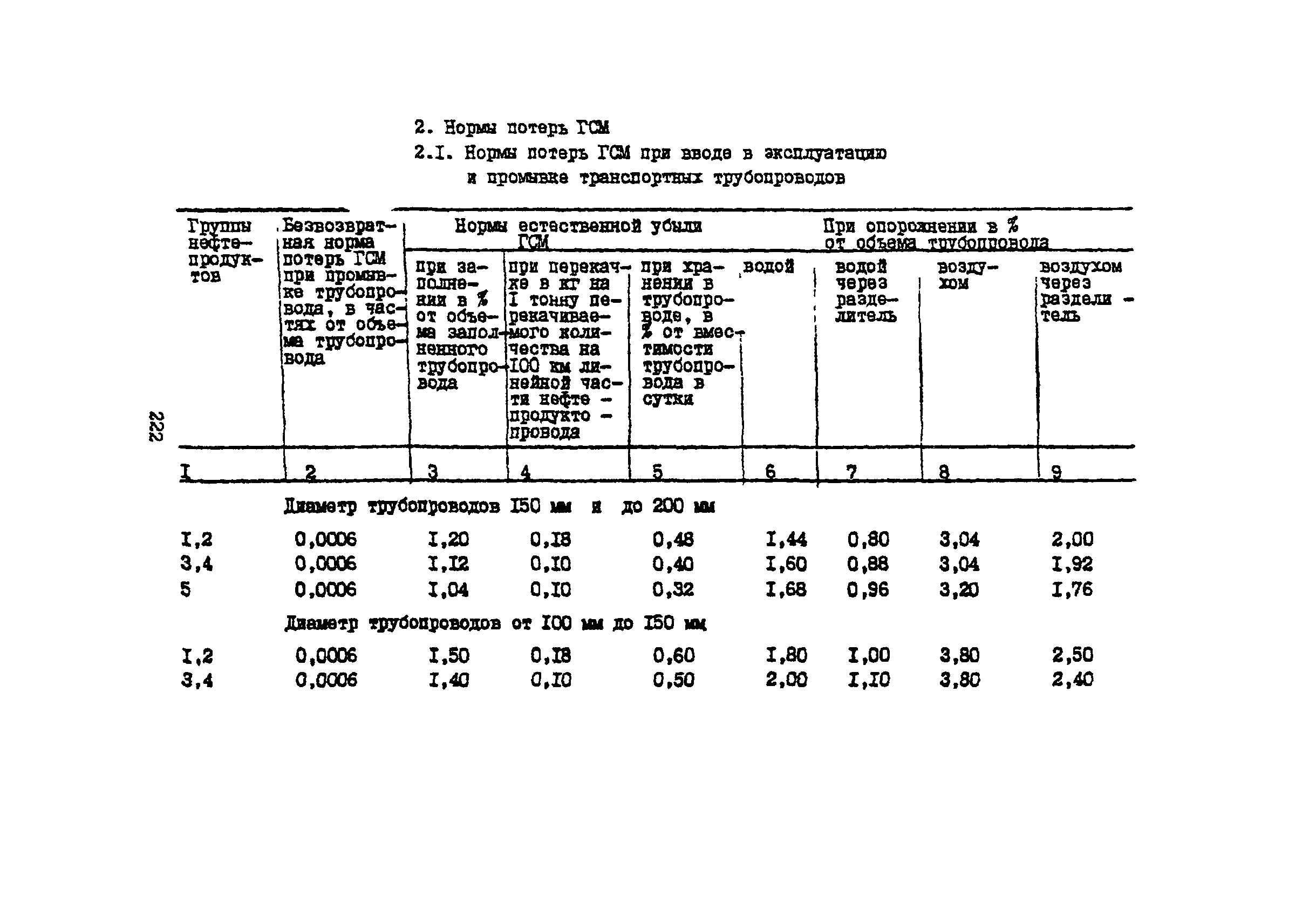 «Нормы потерь ГСМ при зачистке и вводе в эксплуатацию трубопроводов, резервуаров и цистерн» (1988 г.)