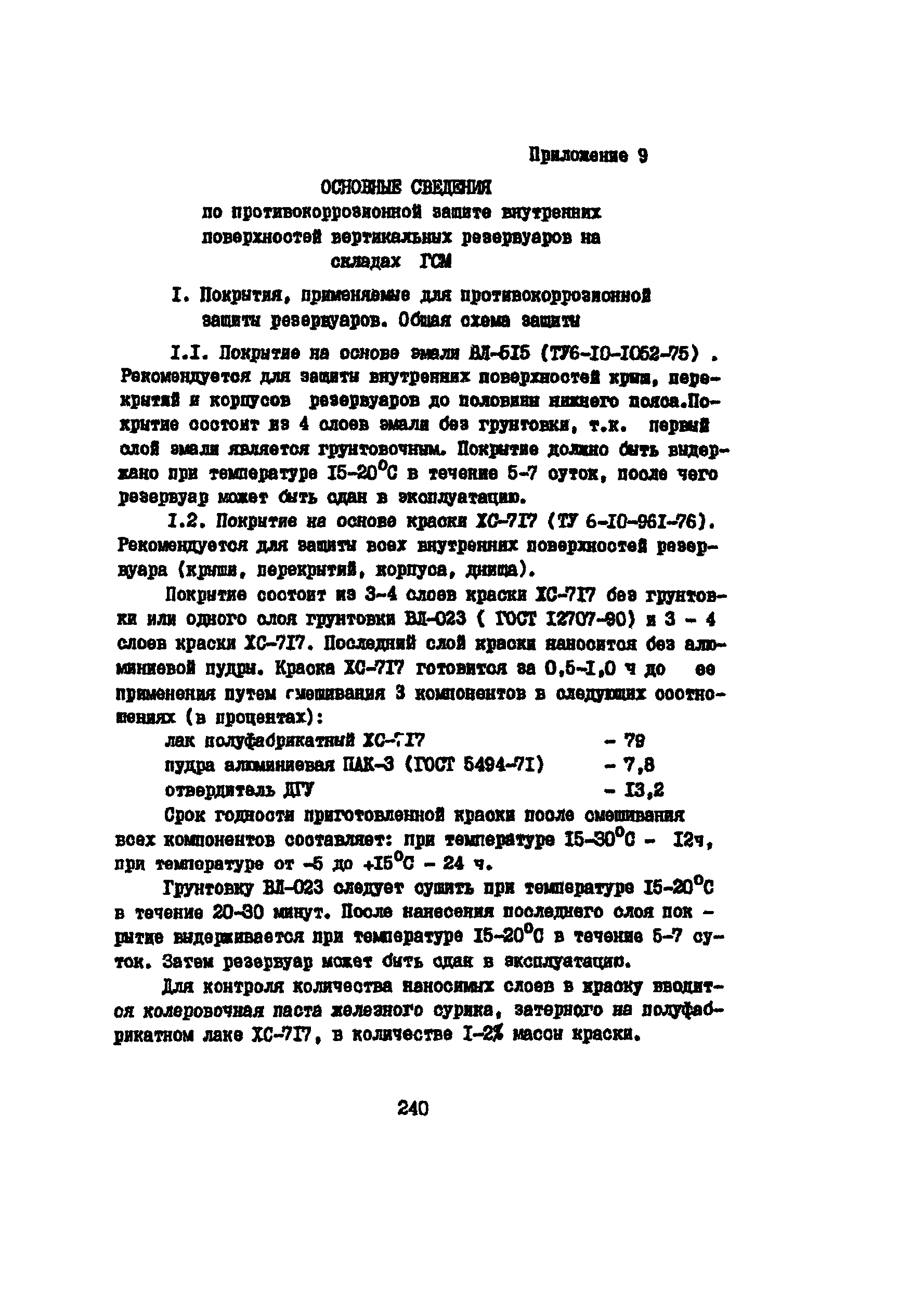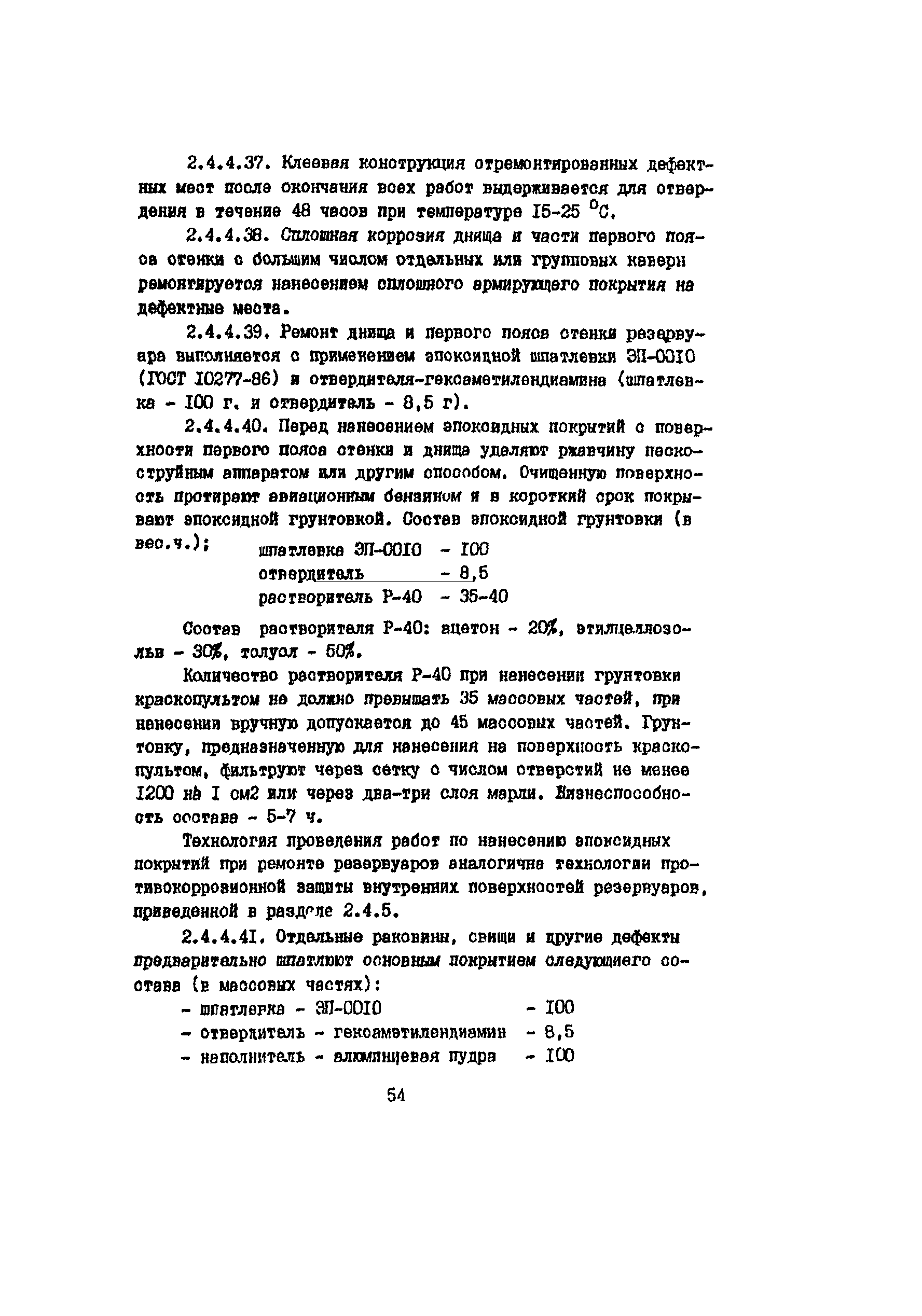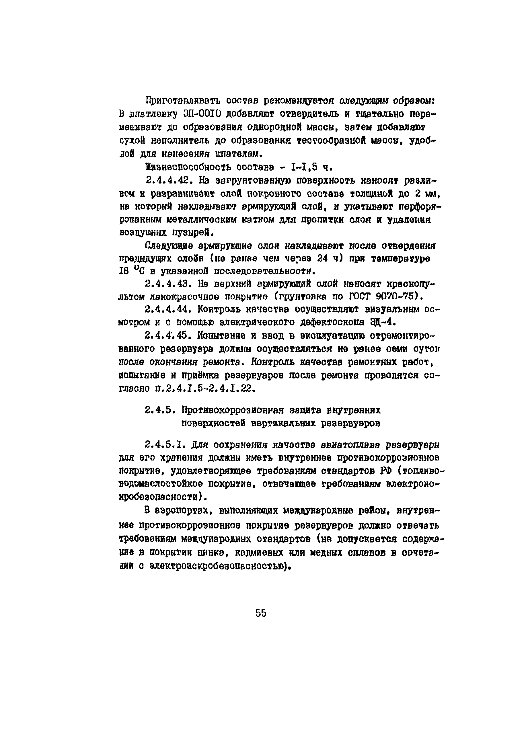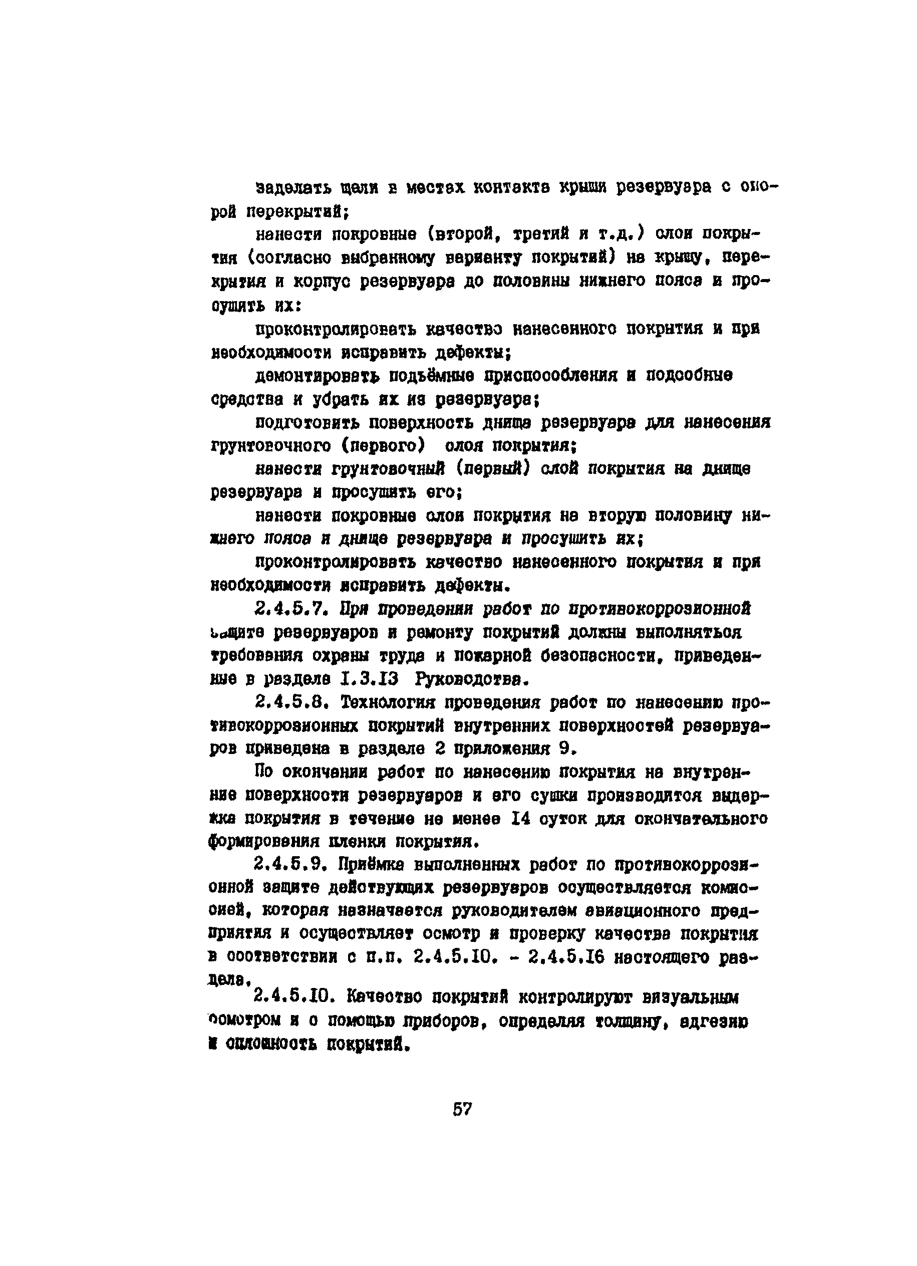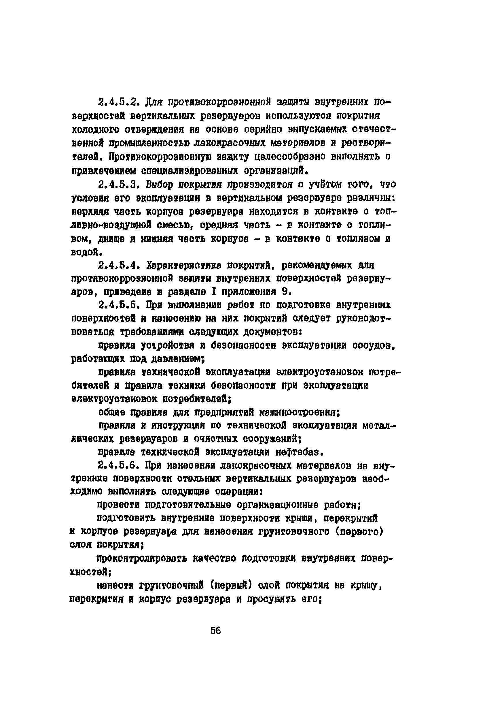 «Инструкция по противокоррозионной защите внутренних поверхностей вертикальных резервуаров» (1988 г.)