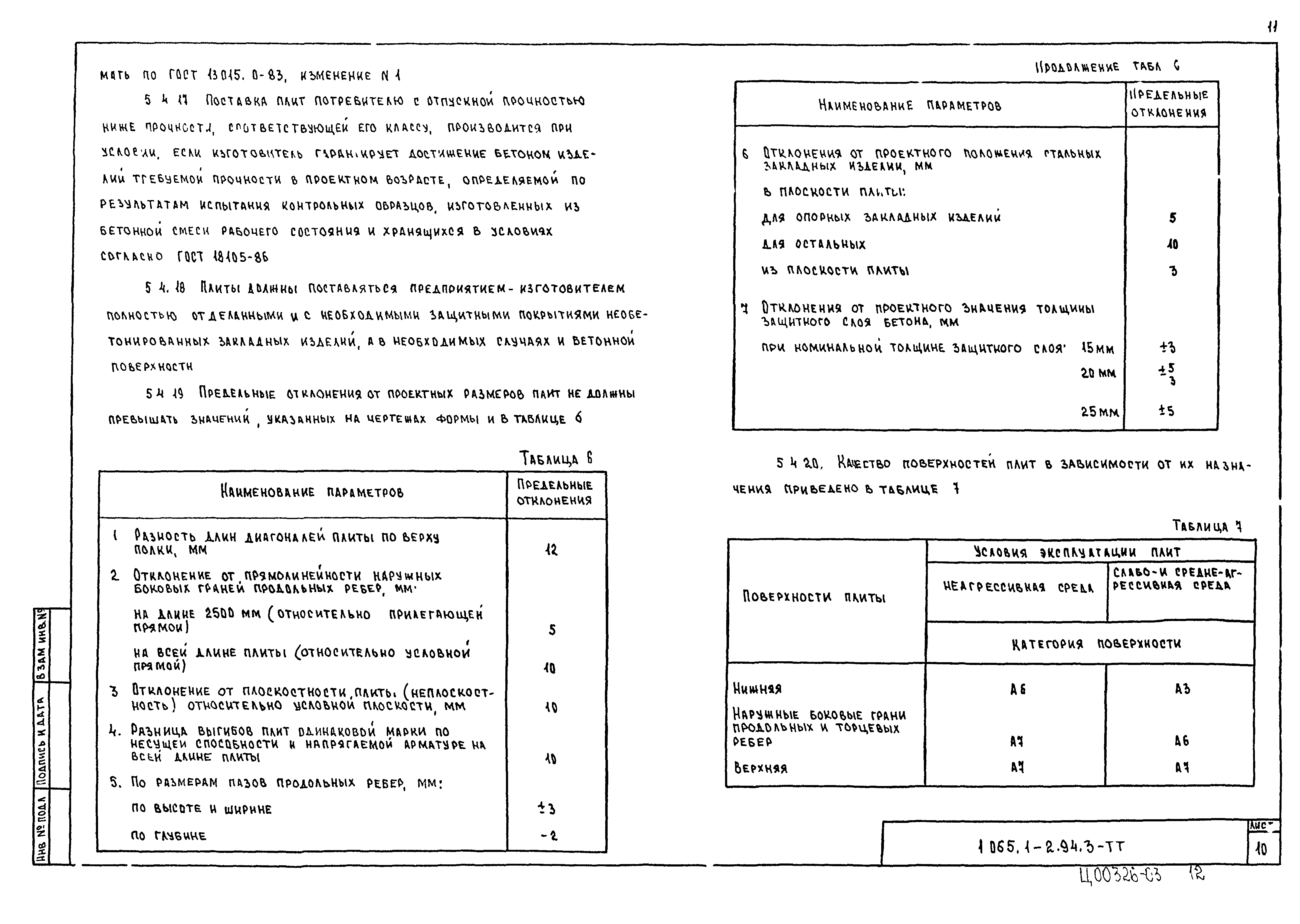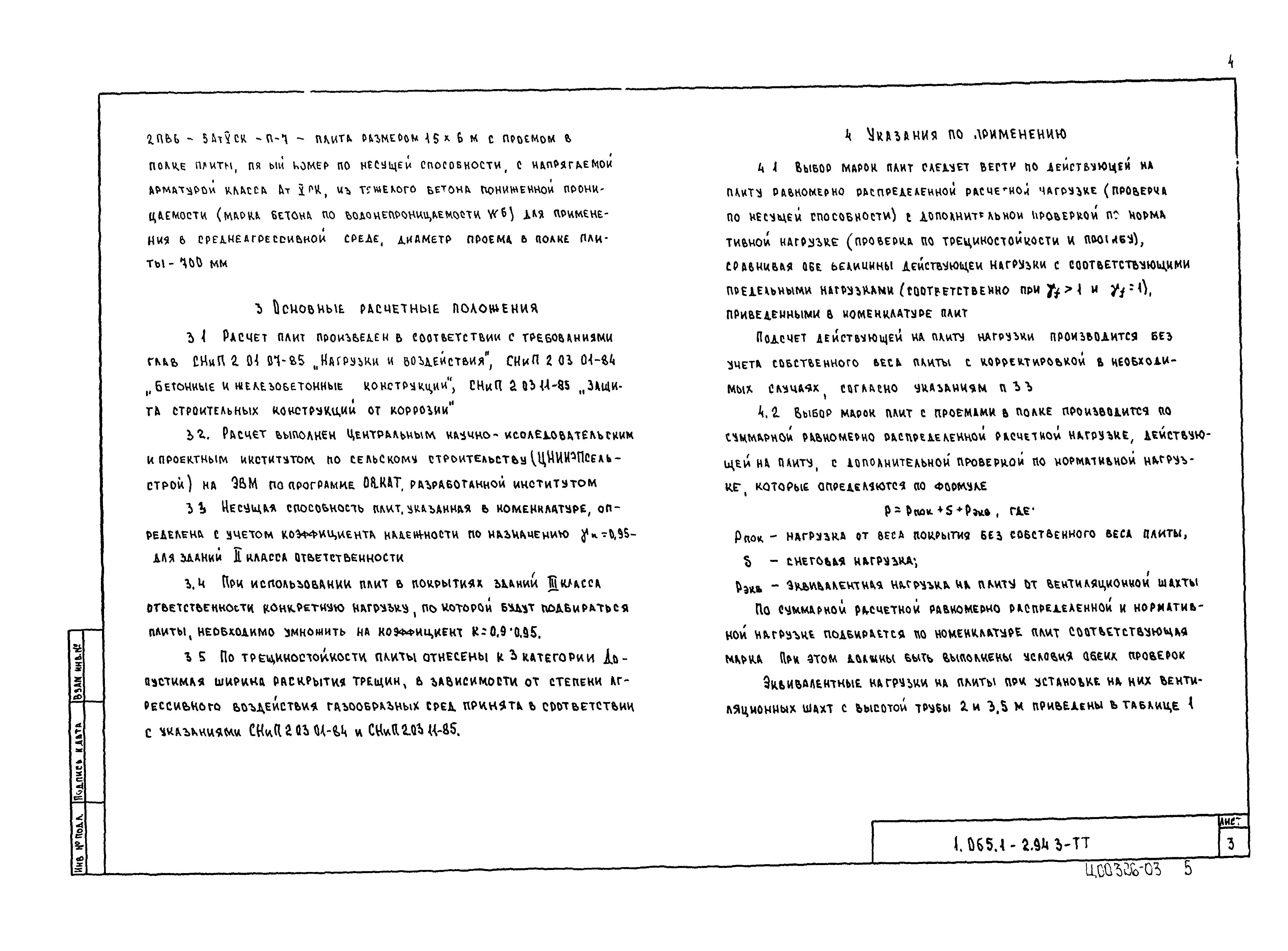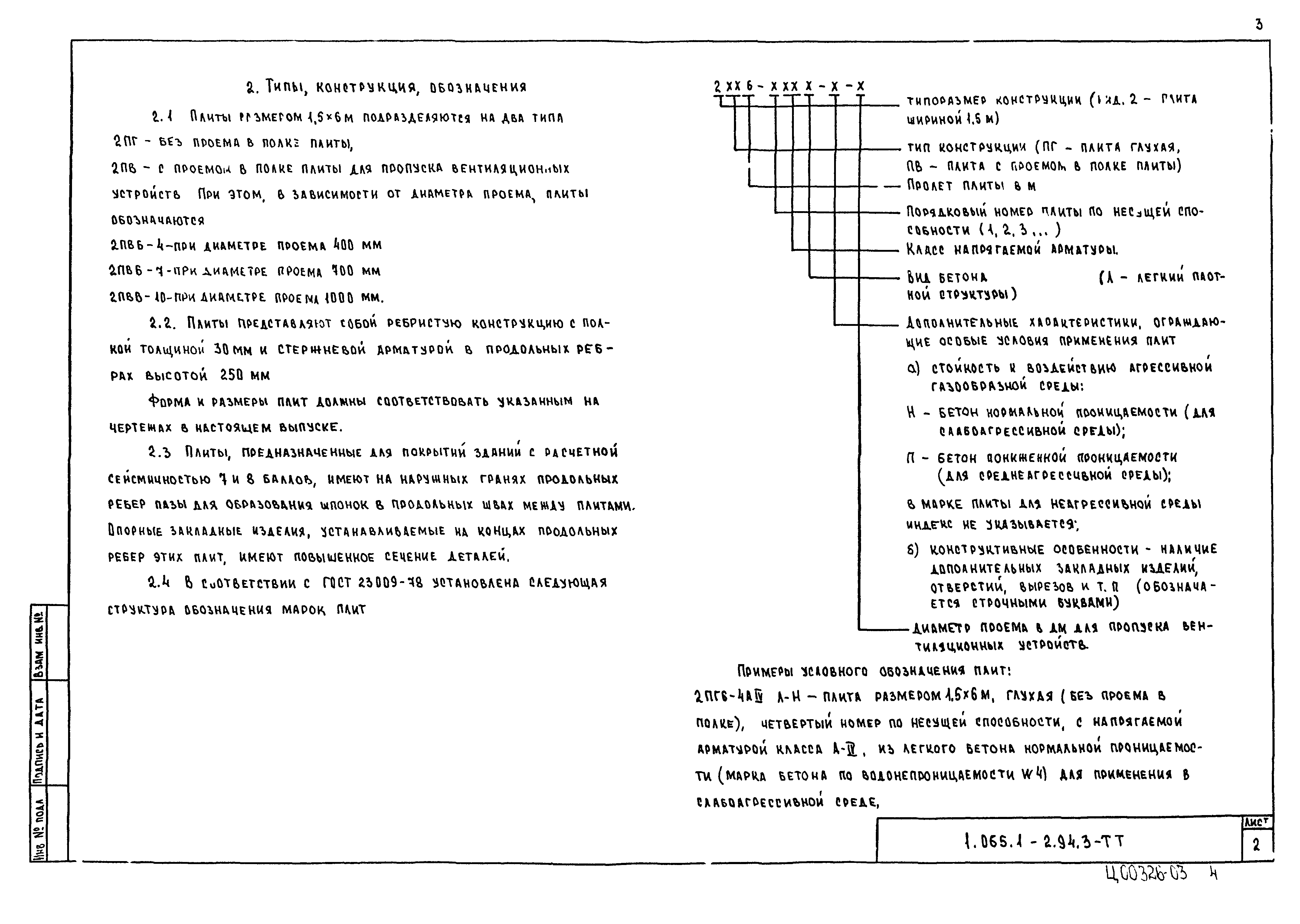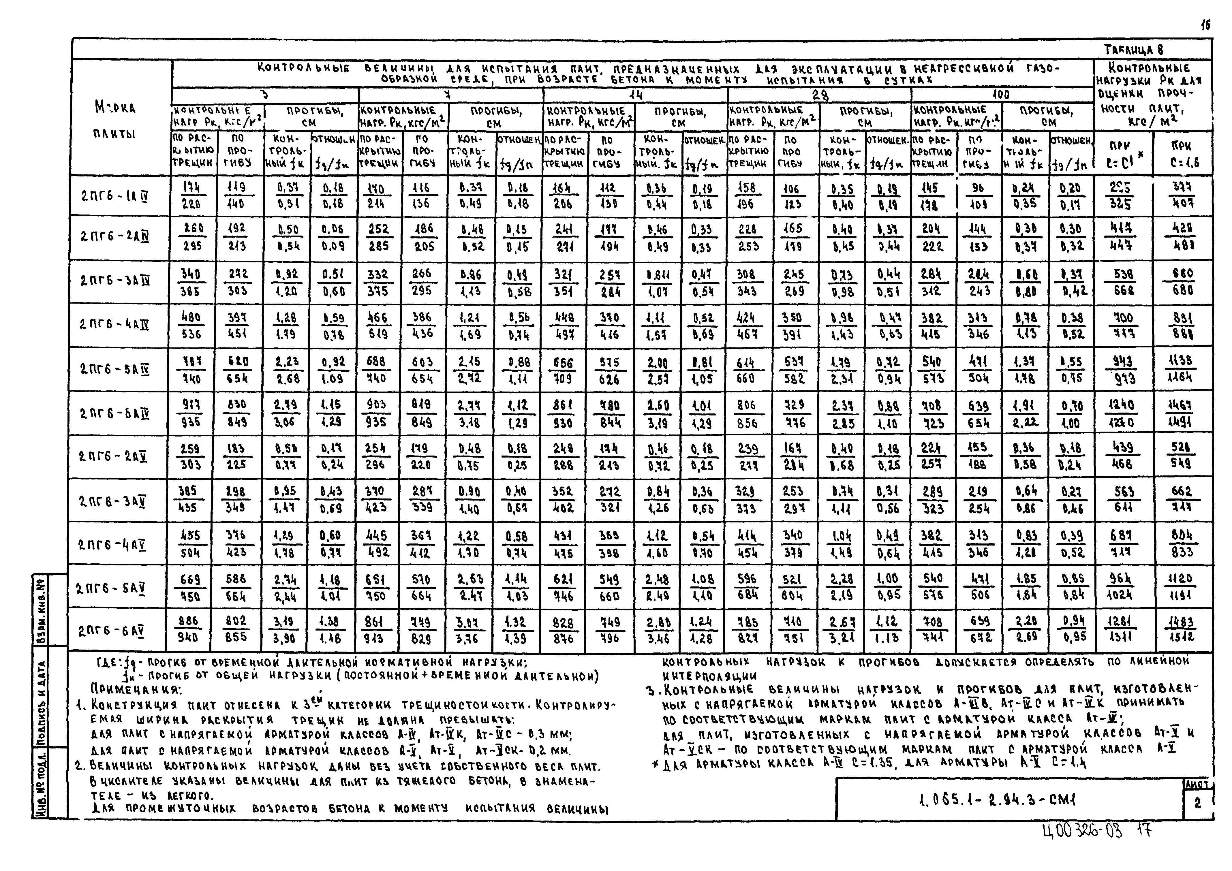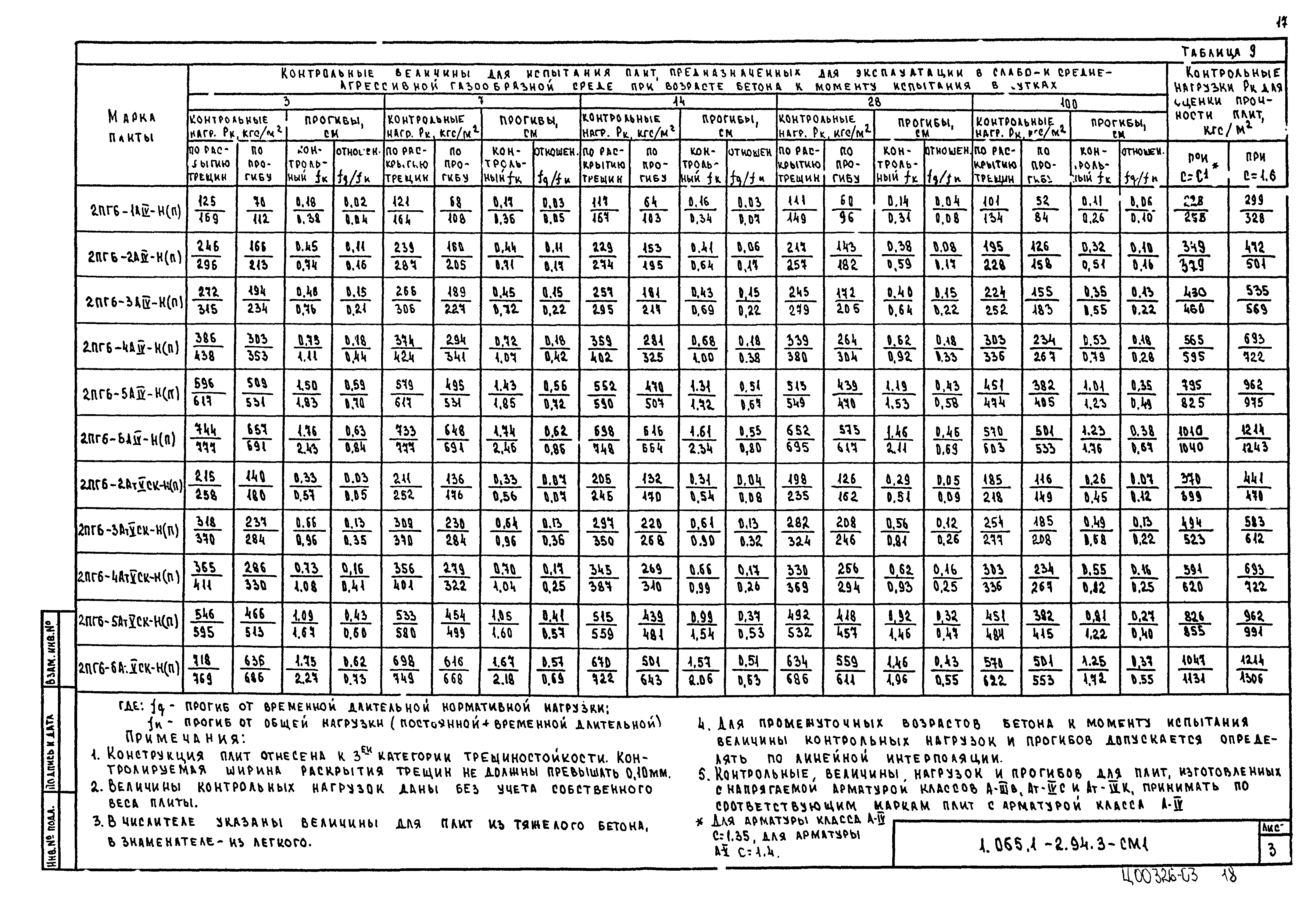| Оглавление: | 1.065.1-2.94.3-ТТ Технические требования 1.065.1-2.94.3-СМ1 Схемы контрольных испытаний плит 1.065.1-2.94.3-НИ Номенклатура плит типа 2ПГ и 2ПВ 1.065.1-2.94.3-1ФЧ Плита типа 2ПГ. Чертеж формы 1.065.1-2.94.3-1 Плита типа 2ПГ 1.065.1-2.94.3-2ФЧ Плита типа 2ПВ. Чертеж формы 1.065.1-2.94.3-2 Плита типа 2ПВ 1.065.1-2.94.3-3 Узлы анкеровки напрягаемой арматуры 1.065.1-2.94.3-СМ2 Пример плиты для сейсмических районов 1.065.1-2.94.3-СМ3 Пример расположения в плитах дополнительных закладных изделий 1.065.1-2.94.3-СМ4 Расположение в плите дополнительных закладных изделий 1.065.1-2.94.3-СМ5 Расположение закладных изделий в плите покрытия для приварки стержней монолитного участка 1.065.1-2.94.3-РС Ведомость расхода стали |