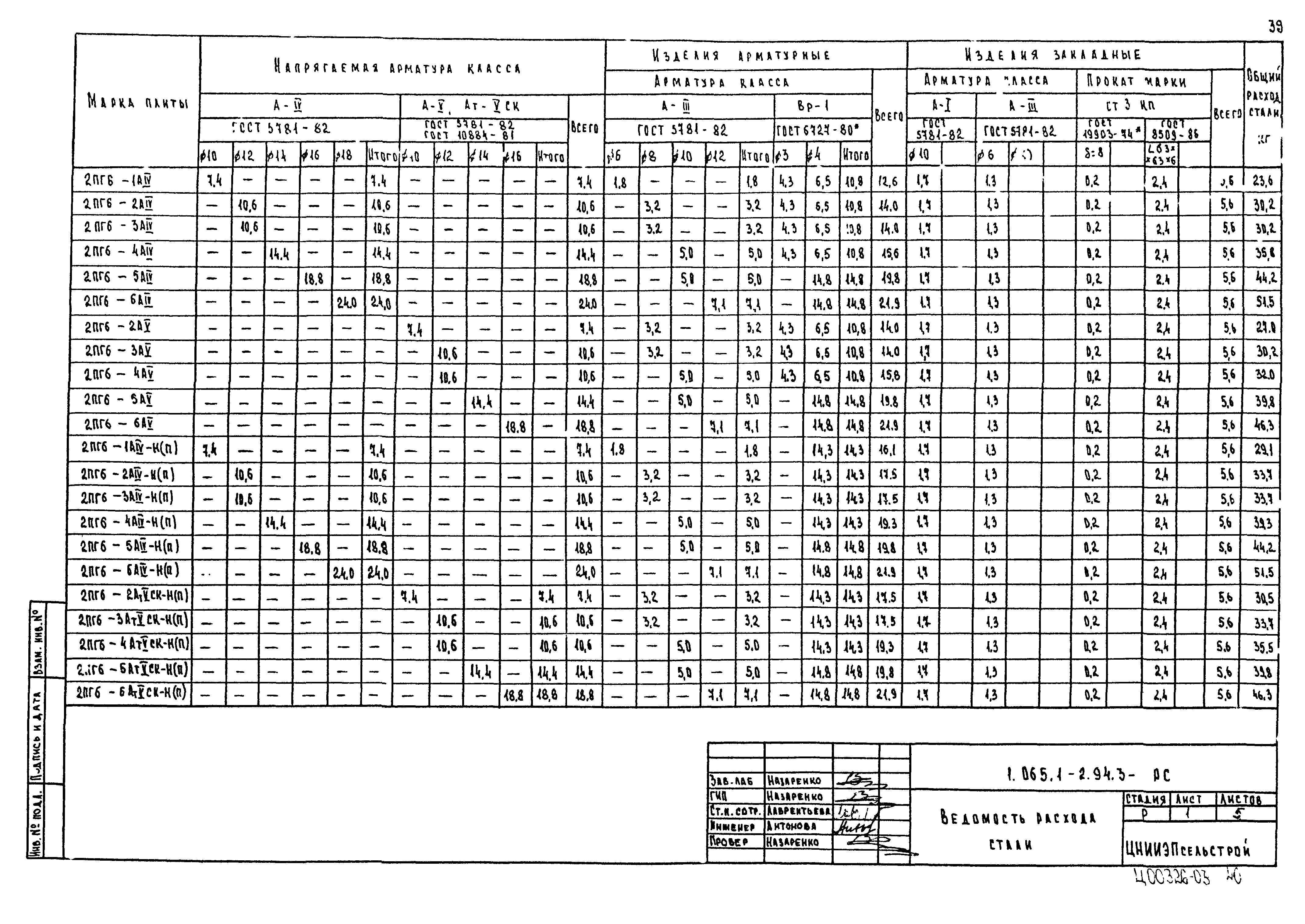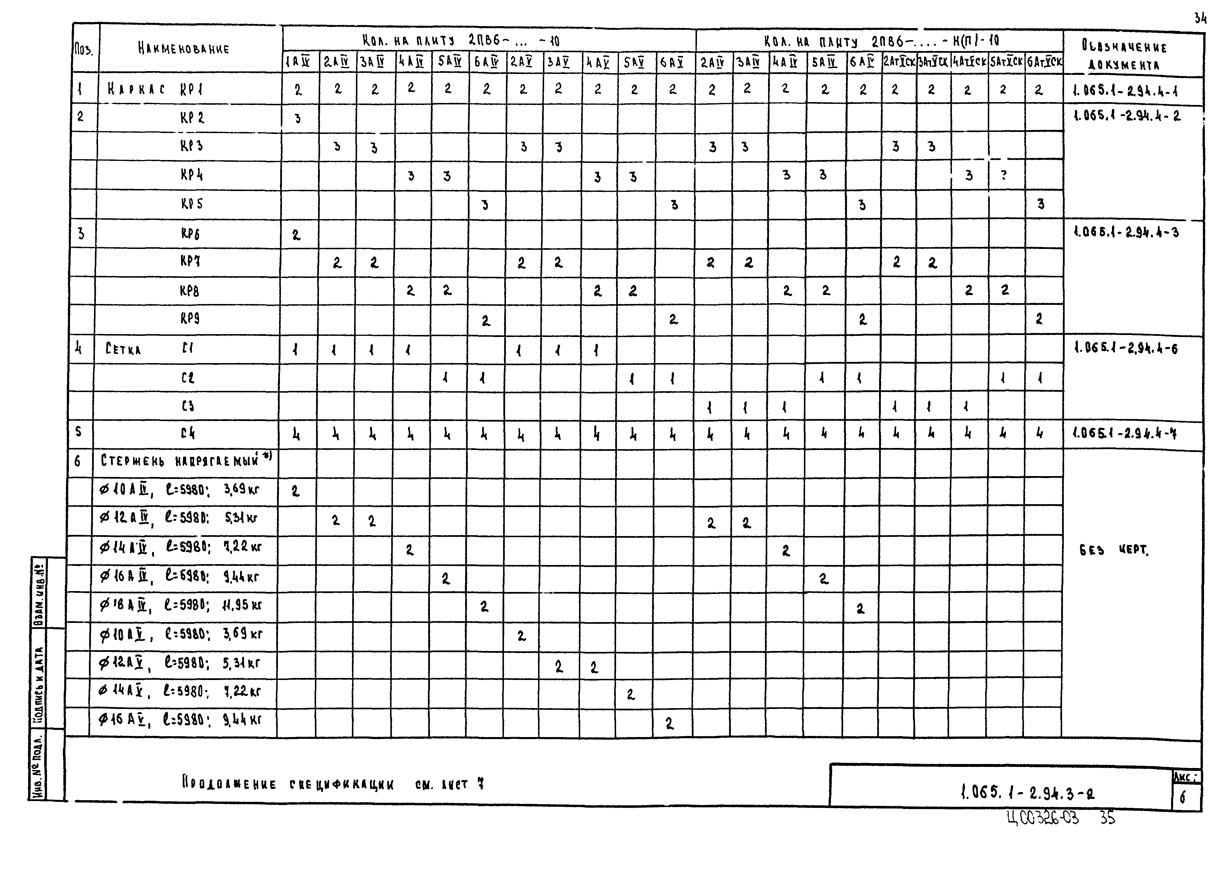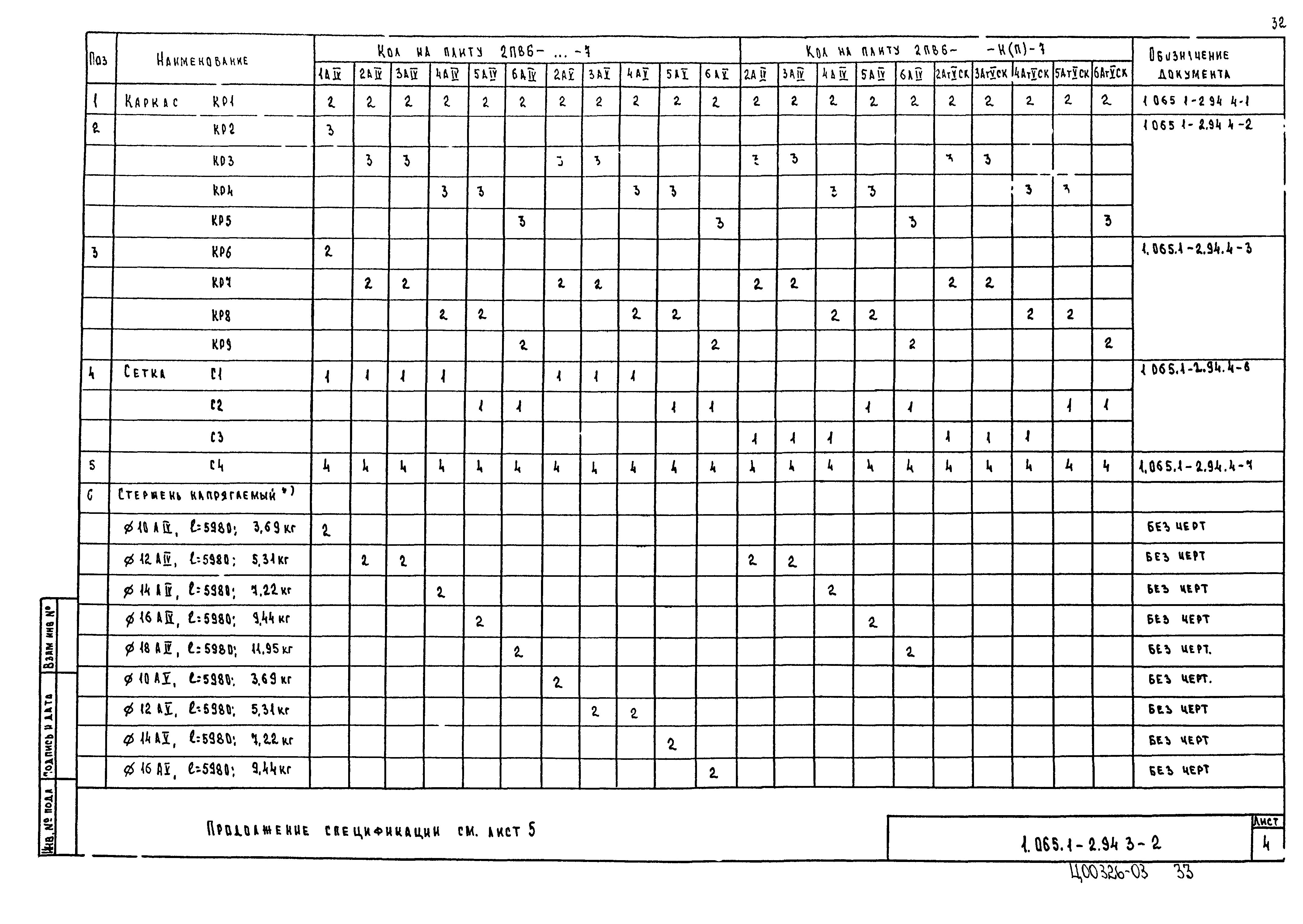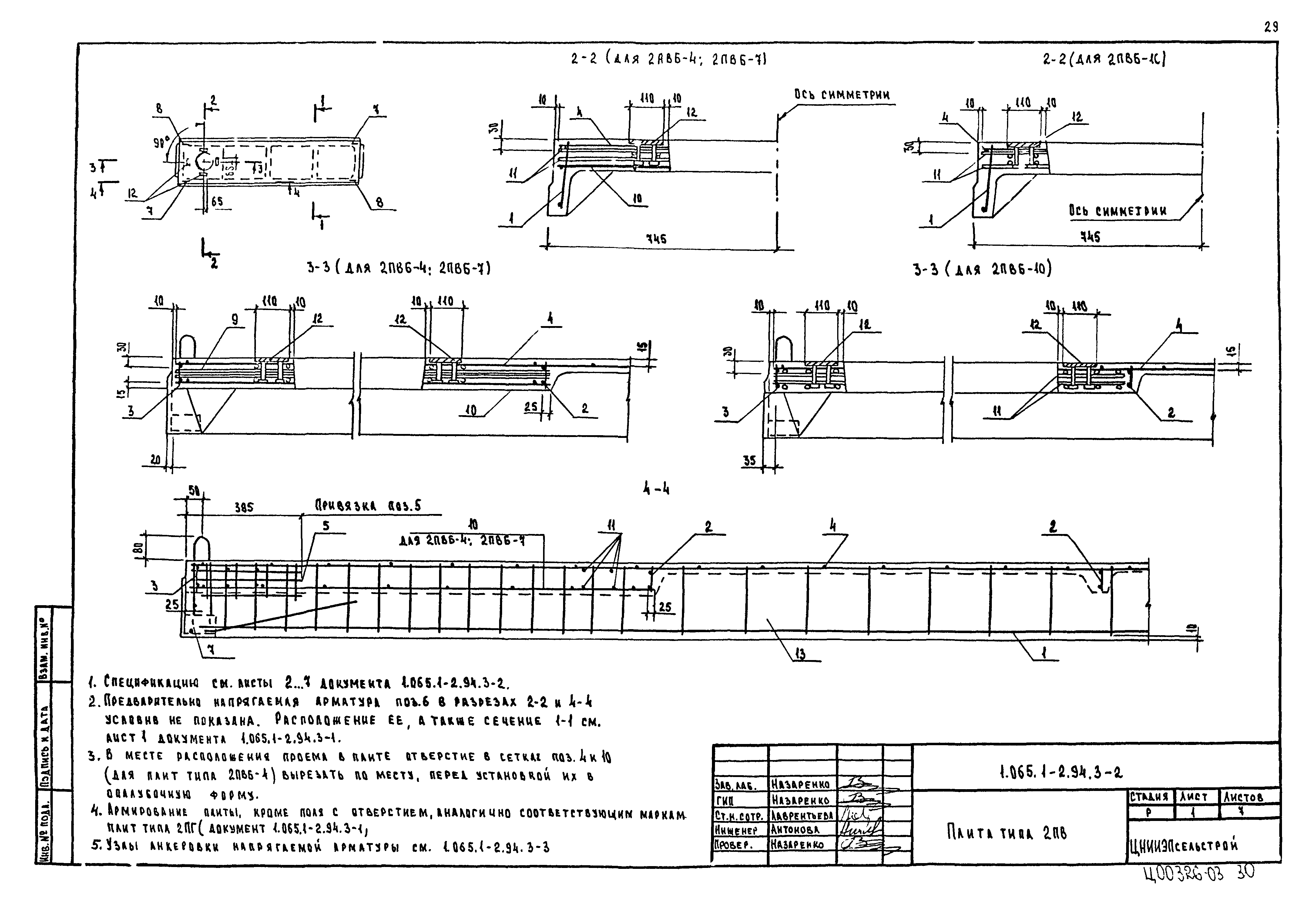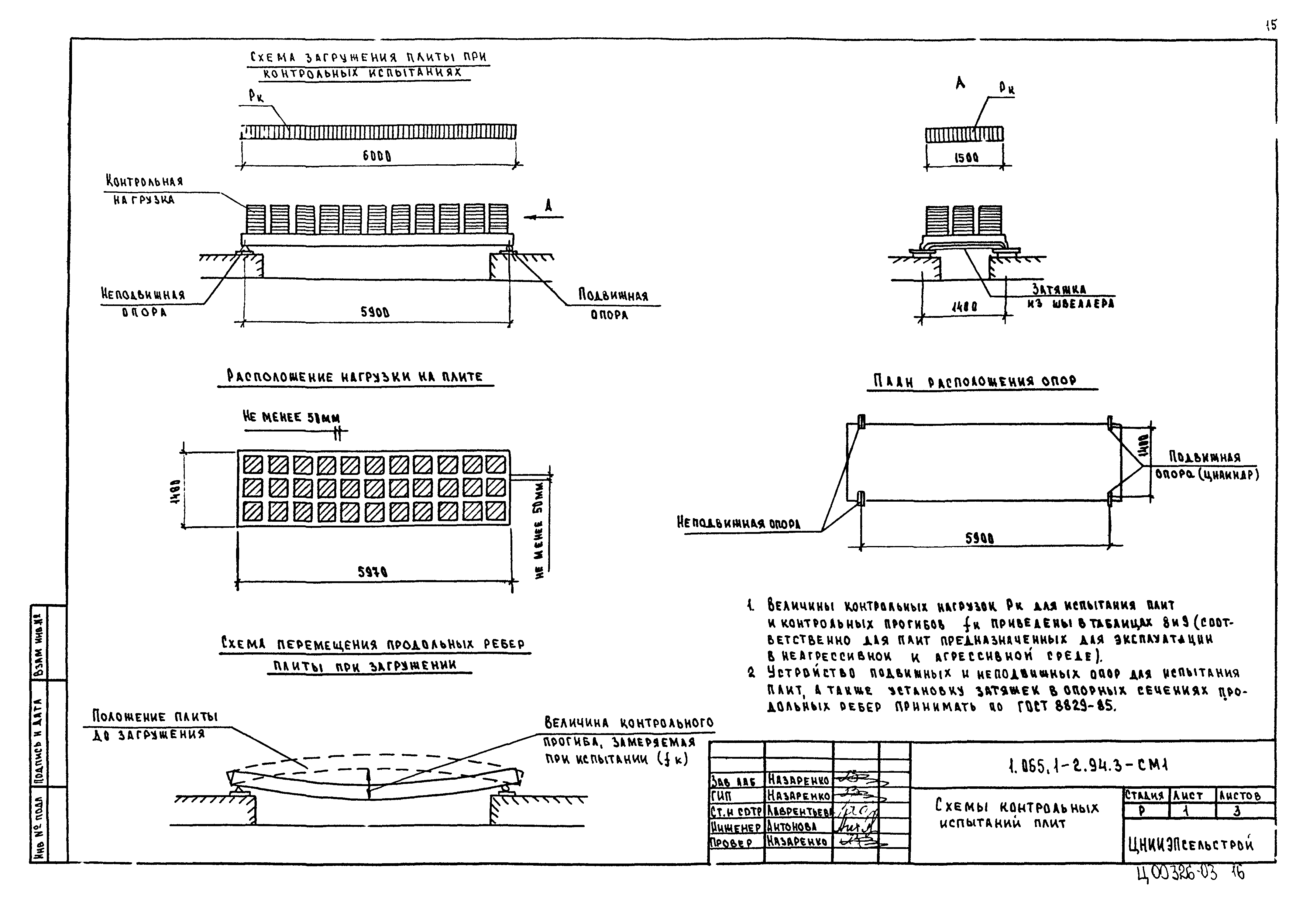 | Оглавление: | 1.065.1-2.94.3-ТТ Технические требования 1.065.1-2.94.3-СМ1 Схемы контрольных испытаний плит 1.065.1-2.94.3-НИ Номенклатура плит типа 2ПГ и 2ПВ 1.065.1-2.94.3-1ФЧ Плита типа 2ПГ. Чертеж формы 1.065.1-2.94.3-1 Плита типа 2ПГ 1.065.1-2.94.3-2ФЧ Плита типа 2ПВ. Чертеж формы 1.065.1-2.94.3-2 Плита типа 2ПВ 1.065.1-2.94.3-3 Узлы анкеровки напрягаемой арматуры 1.065.1-2.94.3-СМ2 Пример плиты для сейсмических районов 1.065.1-2.94.3-СМ3 Пример расположения в плитах дополнительных закладных изделий 1.065.1-2.94.3-СМ4 Расположение в плите дополнительных закладных изделий 1.065.1-2.94.3-СМ5 Расположение закладных изделий в плите покрытия для приварки стержней монолитного участка 1.065.1-2.94.3-РС Ведомость расхода стали |