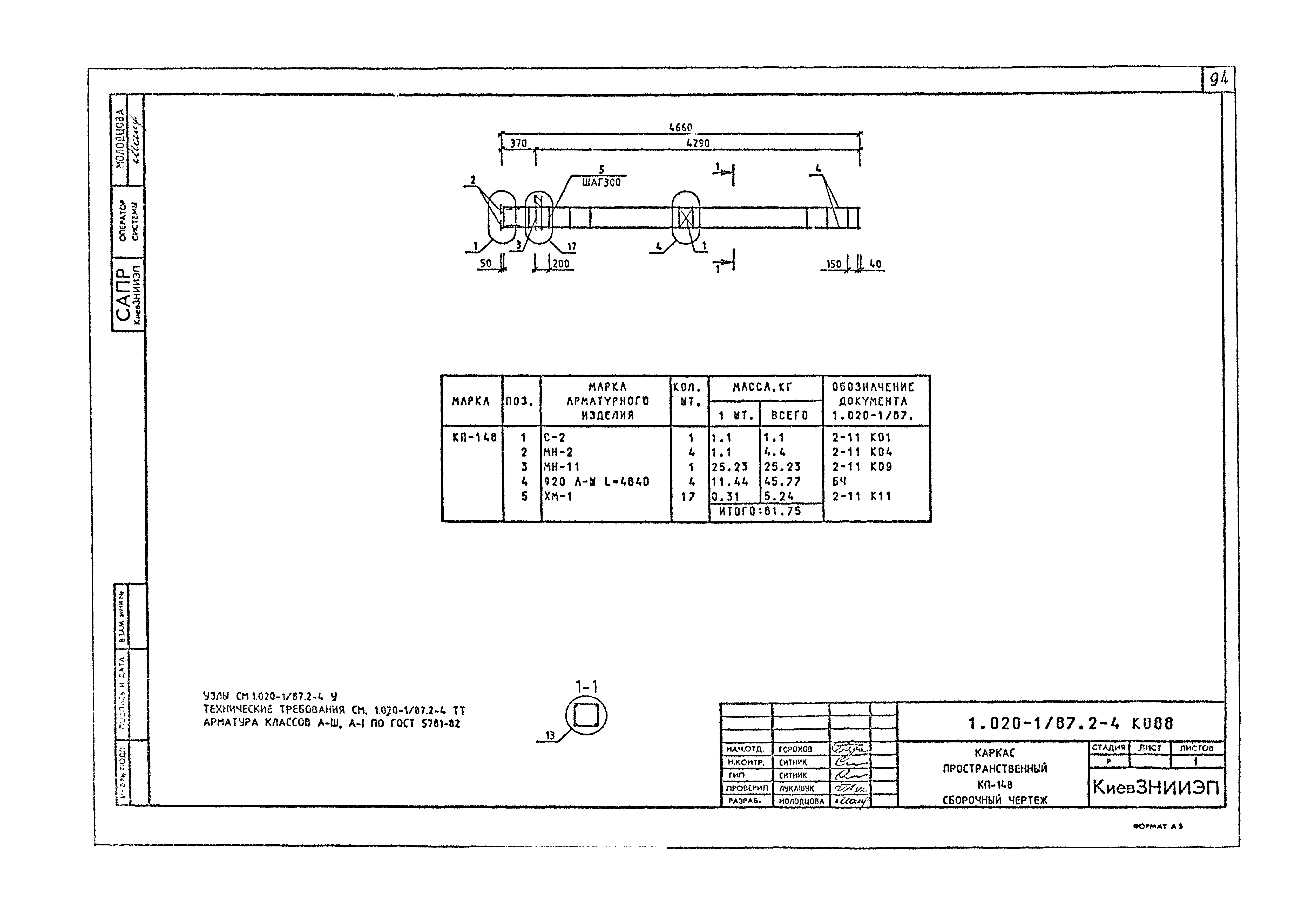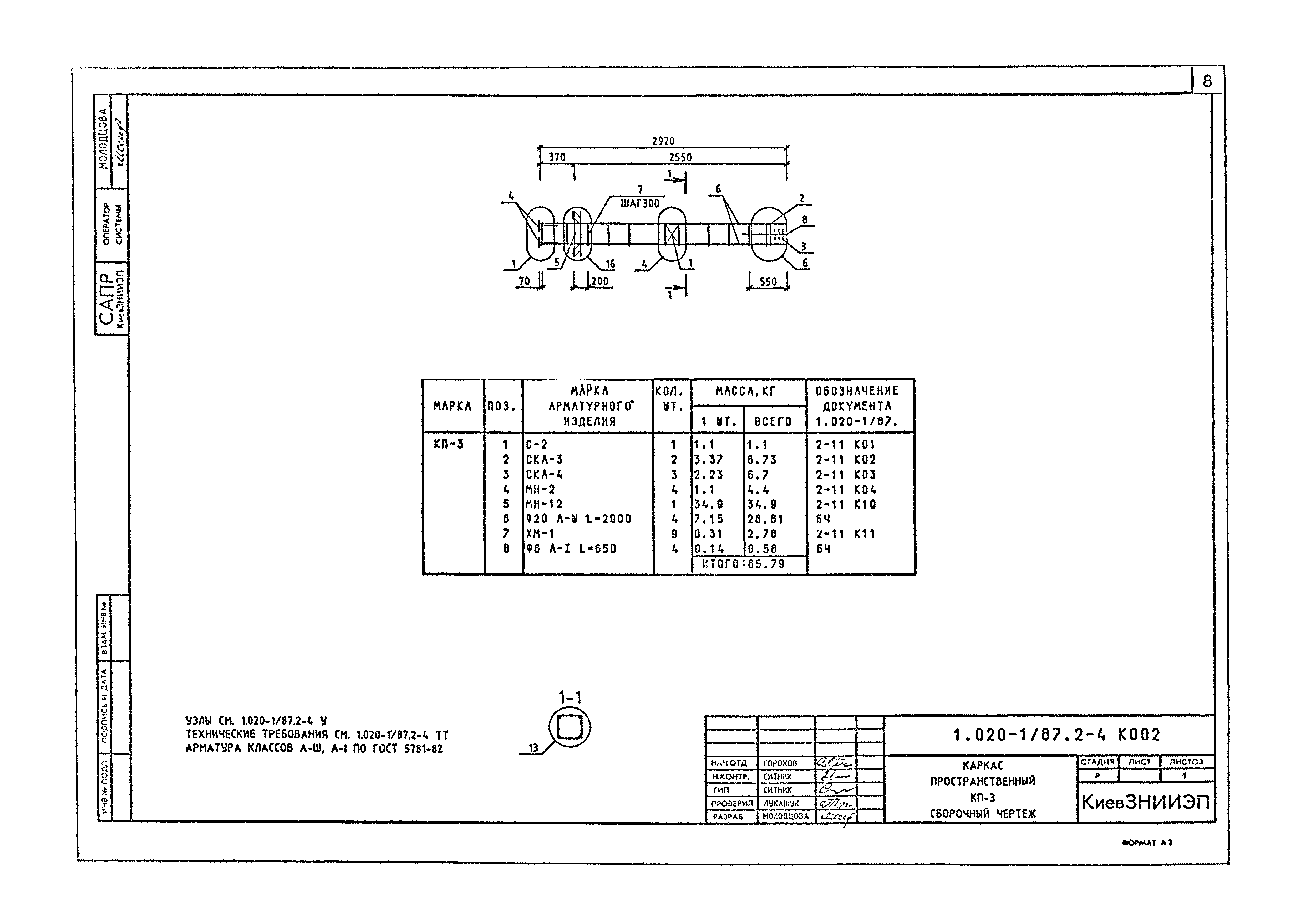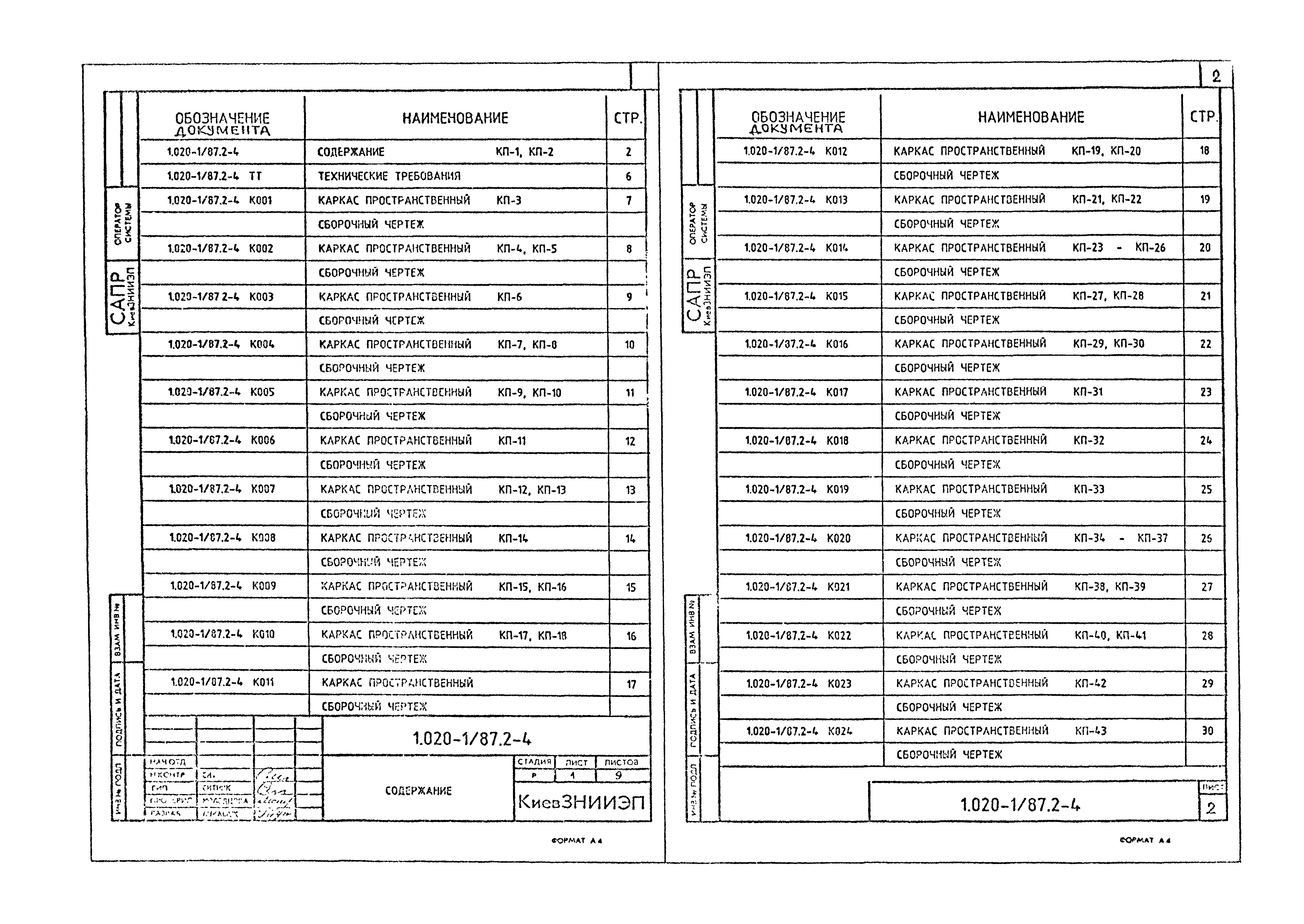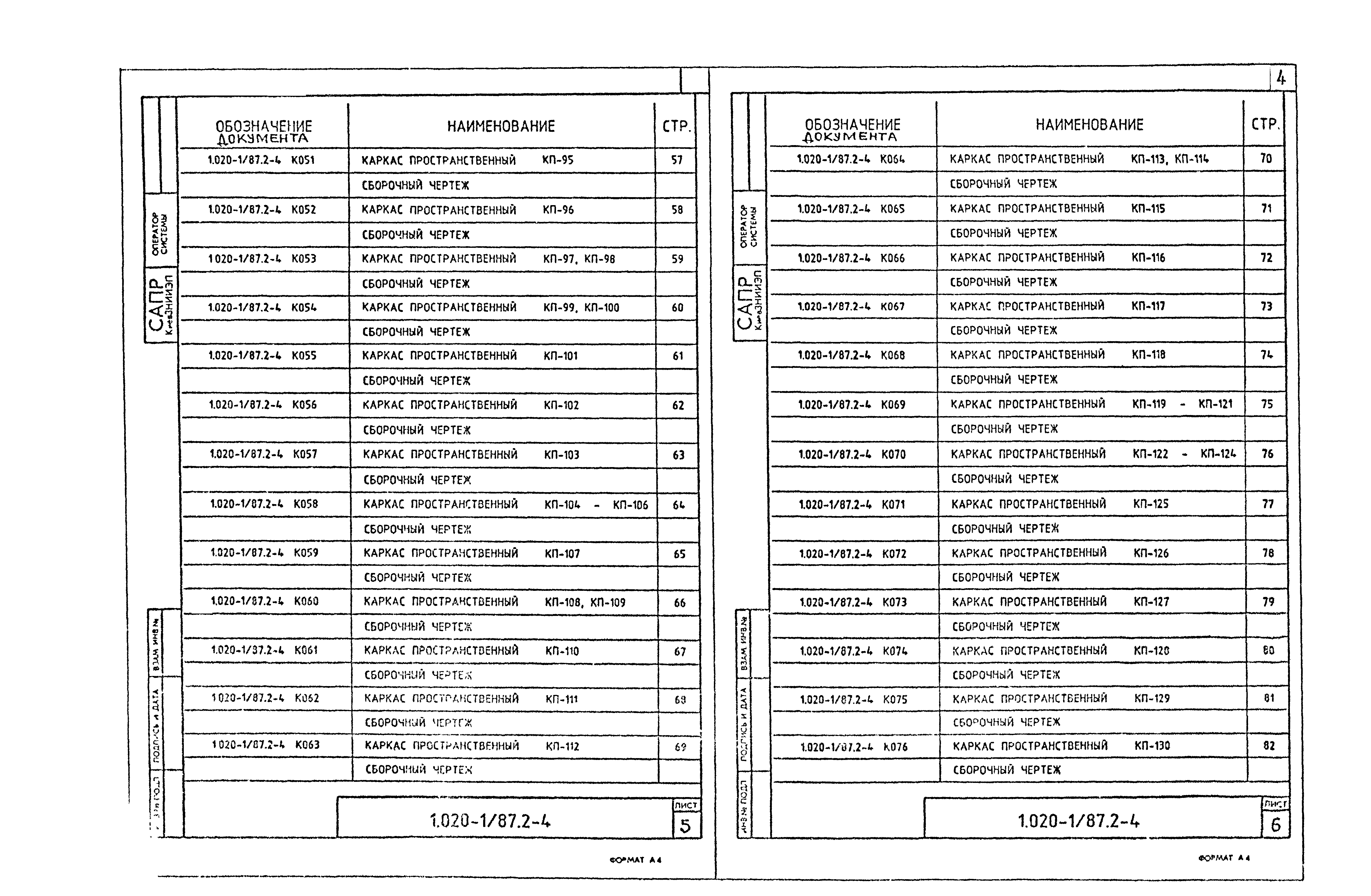 | Оглавление: | 1.020-1/87.2-4 ТТ Технические требования 1.020-1/87.2-4 К001 Каркас пространственный КП-1,КП-2. Сборочный чертеж 1.020-1/87.2-4 К002 Каркас пространственный КП-3. Сборочный чертеж 1.020-1/87.2-4 К003 Каркас пространственный КП-4,КП-5. Сборочный чертеж 1.020-1/87.2-4 К004 Каркас пространственный КП-6. Сборочный чертеж 1.020-1/87.2-4 К005 Каркас пространственный КП-7,КП-8. Сборочный чертеж 1.020-1/87.2-4 К006 Каркас пространственный КП-9,КП-10. Сборочный чертеж 1.020-1/87.2-4 К007 Каркас пространственный КП-11. Сборочный чертеж 1.020-1/87.2-4 К008 Каркас пространственный КП-12, КП-13. Сборочный чертеж 1.020-1/87.2-4 К009 Каркас пространственный КП-14. Сборочный чертеж 1.020-1/87.2-4 К010 Каркас пространственный КП-15,КП-16. Сборочный чертеж 1.020-1/87.2-4 К011 Каркас пространственный КП-17,КП-18. Сборочный чертеж 1.020-1/87.2-4 К012 Каркас пространственный КП-19,КП-20. Сборочный чертеж 1.020-1/87.2-4 К013 Каркас пространственный КП-21,КП-22. Сборочный чертеж 1.020-1/87.2-4 К014 Каркас пространственный КП-23 - КП-26. Сборочный чертеж 1.020-1/87.2-4 К015 Каркас пространственный КП-27,КП-28. Сборочный чертеж 1.020-1/87.2-4 К016 Каркас пространственный КП-29,КП-30. Сборочный чертеж 1.020-1/87.2-4 К017 Каркас пространственный КП-31. Сборочный чертеж 1.020-1/87.2-4 К018 Каркас пространственный КП-32. Сборочный чертеж 1.020-1/87.2-4 К019 Каркас пространственный КП-33. Сборочный чертеж 1.020-1/87.2-4 К020 Каркас пространственный КП-34 - КП-37. Сборочный чертеж 1.020-1/87.2-4 К021 Каркас пространственный КП-38,КП-39. Сборочный чертеж 1.020-1/87.2-4 К022 Каркас пространственный КП-40,КП-41. Сборочный чертеж 1.020-1/87.2-4 К023 Каркас пространственный КП-42. Сборочный чертеж 1.020-1/87.2-4 К024 Каркас пространственный КП-43. Сборочный чертеж 1.020-1/87.2-4 К025 Каркас пространственный КП-44. Сборочный чертеж 1.020-1/87.2-4 К026 Каркас пространственный КП-45,КП-46. Сборочный чертеж 1.020-1/87.2-4 К027 Каркас пространственный КП-47. Сборочный чертеж 1.020-1/87.2-4 К028 Каркас пространственный КП-48. Сборочный чертеж 1.020-1/87.2-4 К029 Каркас пространственный КП-49 - КП-52. Сборочный чертеж 1.020-1/87.2-4 К030 Каркас пространственный КП-53. Сборочный чертеж 1.020-1/87.2-4 К031 Каркас пространственный КП-54. Сборочный чертеж 1.020-1/87.2-4 К032 Каркас пространственный КП-55,КП-56. Сборочный чертеж 1.020-1/87.2-4 К033 Каркас пространственный КП-57 - КП-59. Сборочный чертеж 1.020-1/87.2-4 К034 Каркас пространственный КП-60,КП-61. Сборочный чертеж 1.020-1/87.2-4 К035 Каркас пространственный КП-62 - КП-65. Сборочный чертеж 1.020-1/87.2-4 К036 Каркас пространственный КП-66,КП-67. Сборочный чертеж 1.020-1/87.2-4 К037 Каркас пространственный КП-68,КП-69. Сборочный чертеж 1.020-1/87.2-4 К038 Каркас пространственный КП-70,КП-71. Сборочный чертеж 1.020-1/87.2-4 К039 Каркас пространственный КП-72,КП-73. Сборочный чертеж 1.020-1/87.2-4 К040 Каркас пространственный КП-74 - КП-76. Сборочный чертеж 1.020-1/87.2-4 К041 Каркас пространственный КП-77. Сборочный чертеж 1.020-1/87.2-4 К042 Каркас пространственный КП-78. Сборочный чертеж 1.020-1/87.2-4 К043 Каркас пространственный КП-79. Сборочный чертеж 1.020-1/87.2-4 К044 Каркас пространственный КП-80,КП-81. Сборочный чертеж 1.020-1/87.2-4 К045 Каркас пространственный КП-82 - КП-84. Сборочный чертеж 1.020-1/87.2-4 К046 Каркас пространственный КП-85,КП-86. Сборочный чертеж 1.020-1/87.2-4 К047 Каркас пространственный КП-87,КП-88. Сборочный чертеж 1.020-1/87.2-4 К048 Каркас пространственный КП-89,КП-90. Сборочный чертеж 1.020-1/87.2-4 К049 Каркас пространственный КП-91 - КП-93. Сборочный чертеж 1.020-1/87.2-4 К050 Каркас пространственный КП-94. Сборочный чертеж 1.020-1/87.2-4 К051 Каркас пространственный КП-95. Сборочный чертеж 1.020-1/87.2-4 К052 Каркас пространственный КП-96. Сборочный чертеж 1.020-1/87.2-4 К053 Карк