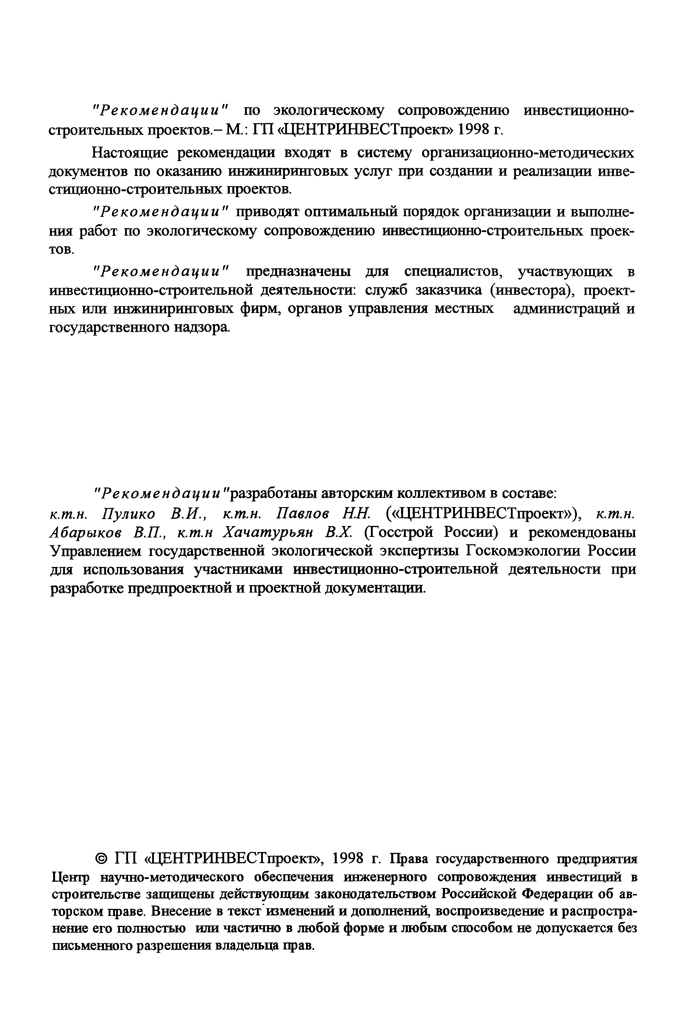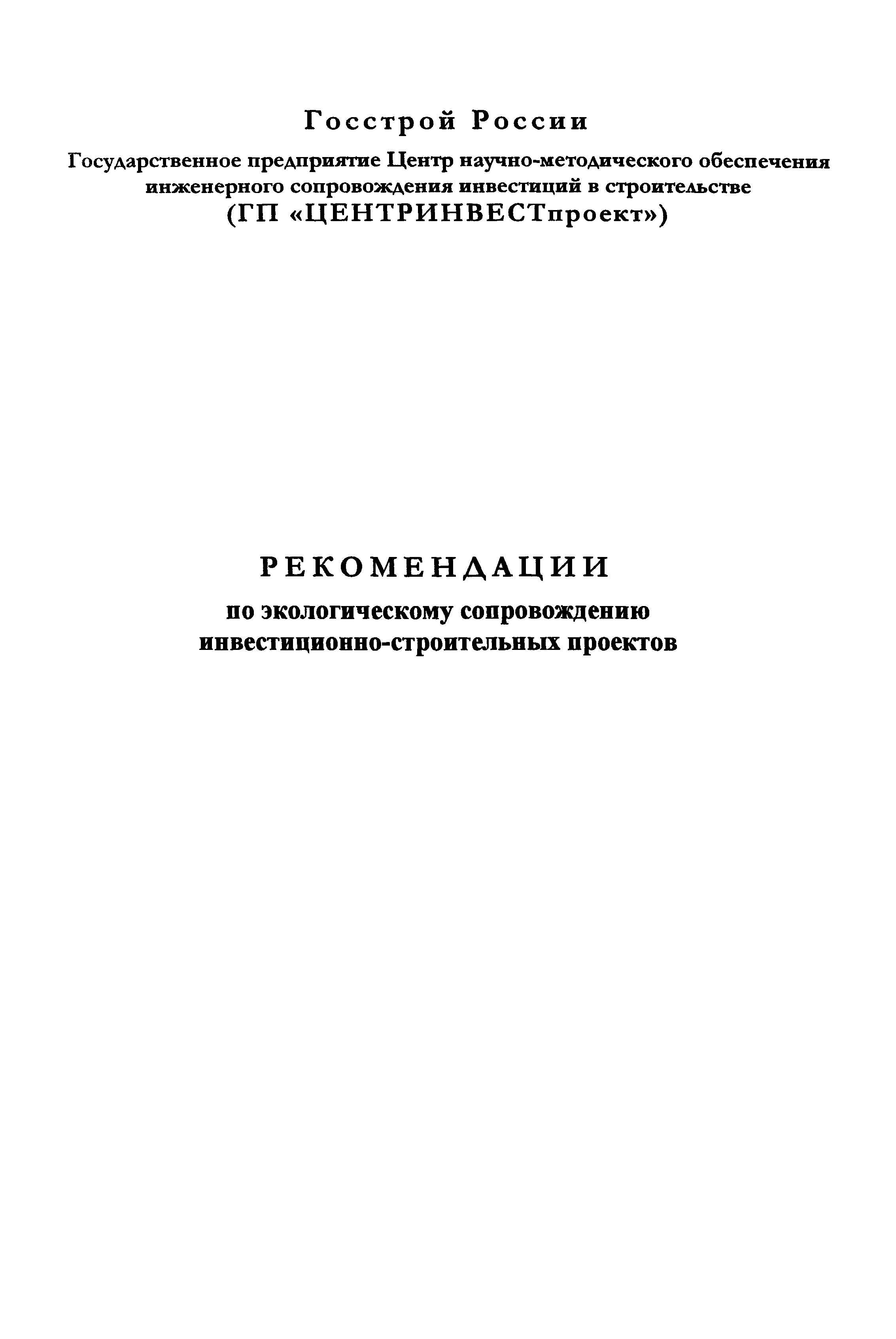 | Название рус.: | Рекомендации по экологическому сопровождению инвестиционно-строительных проектов |
