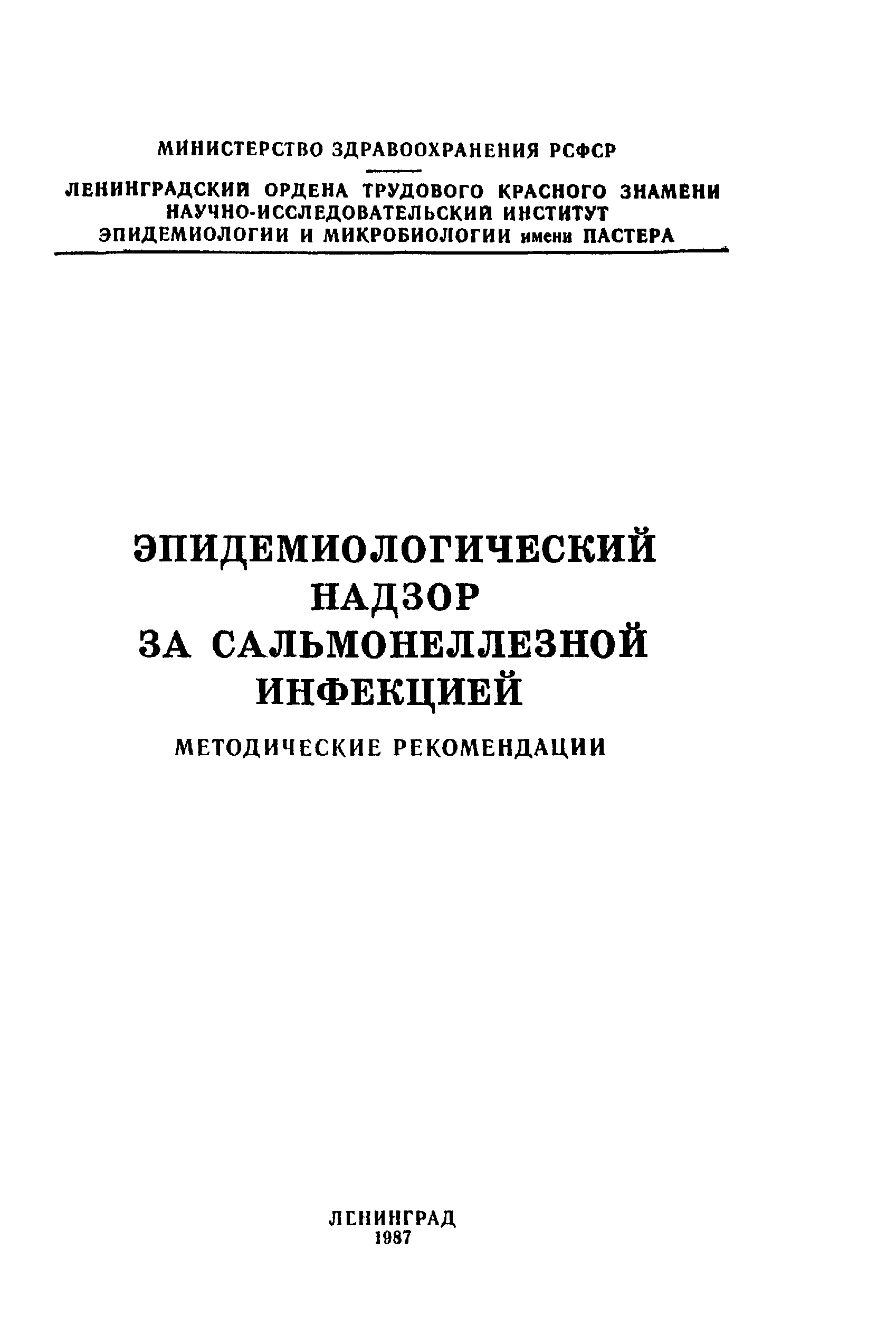 | Название рус.: | Эпидемиологический надзор за сальмонеллезной инфекцией. Методические рекомендации |
