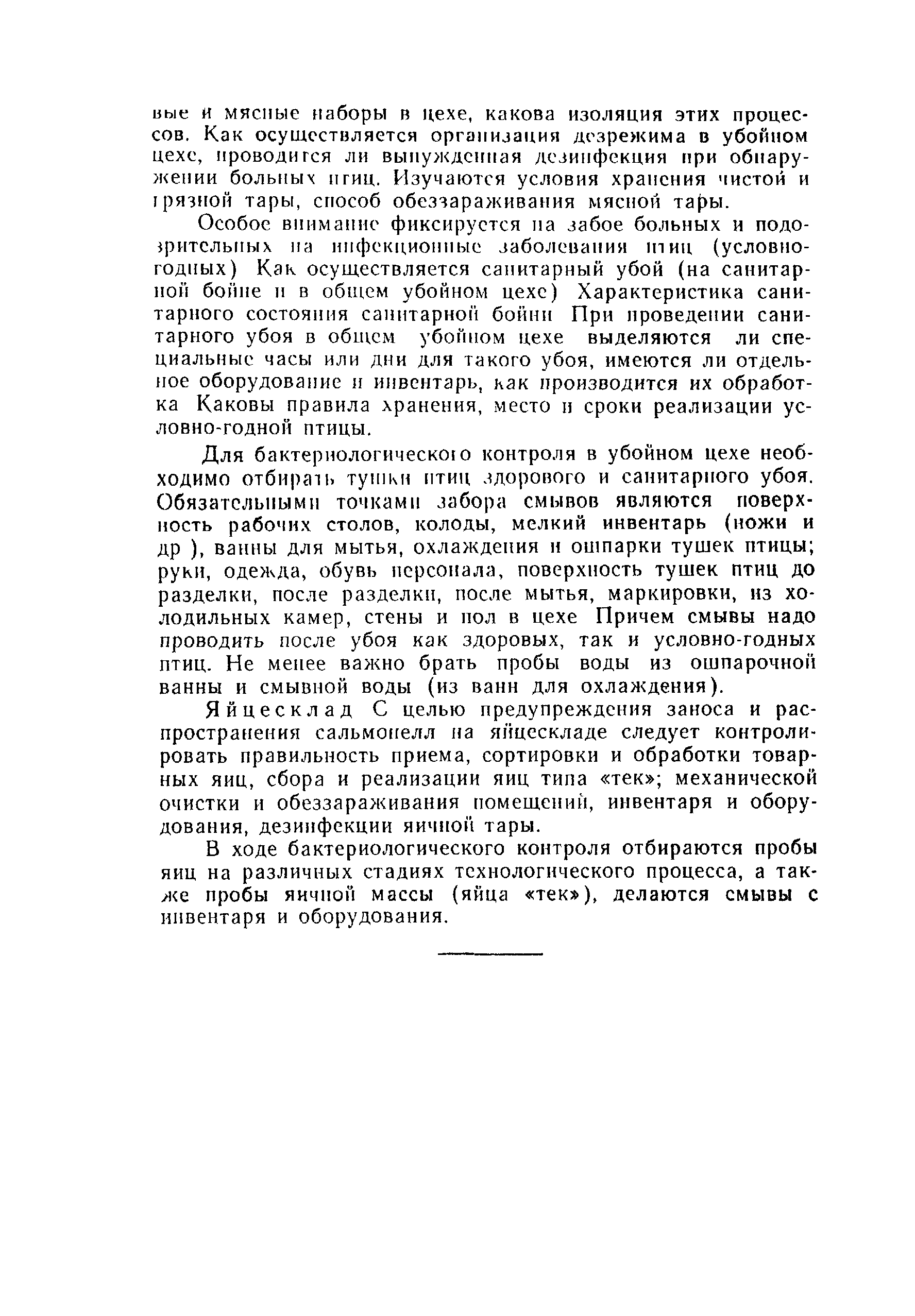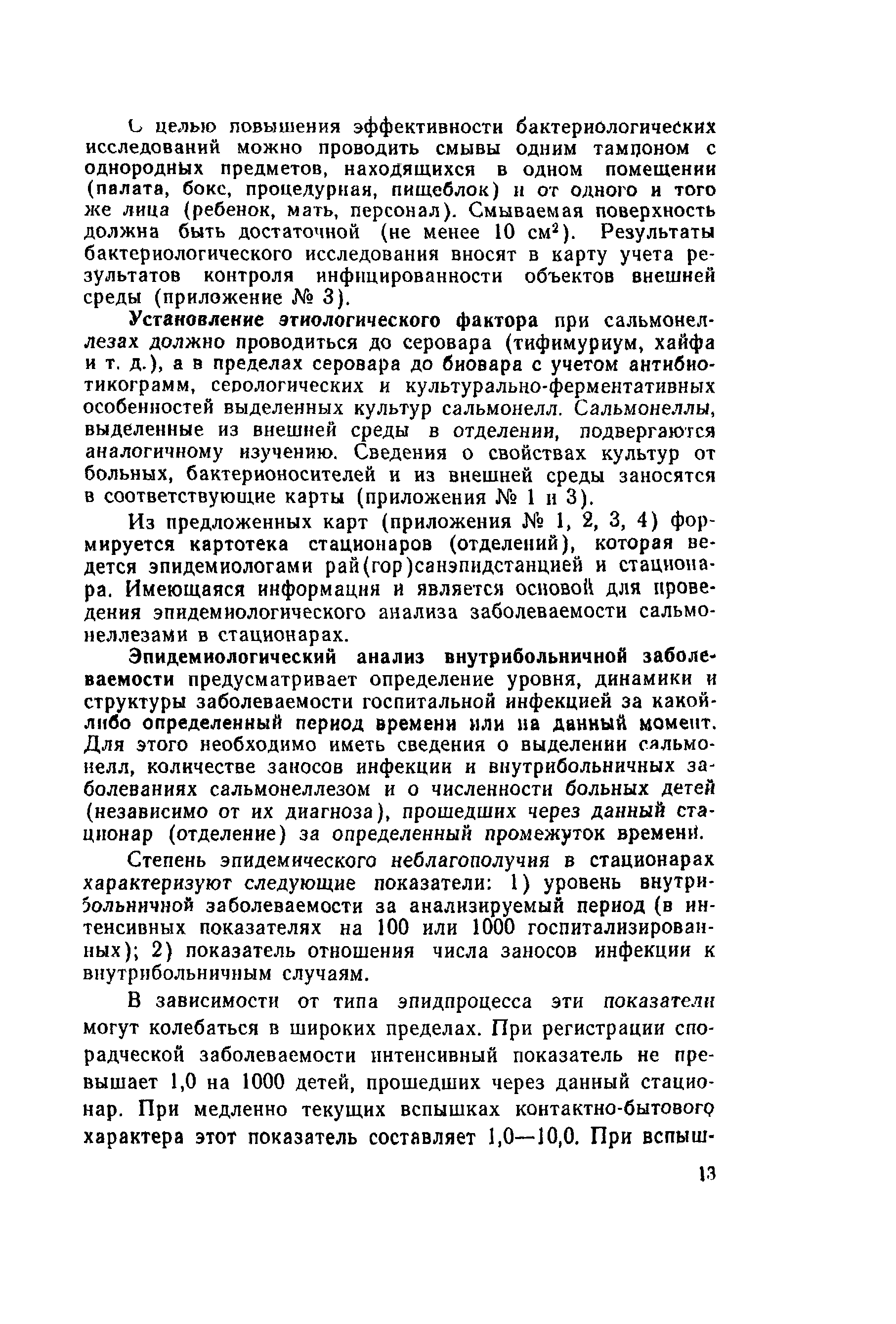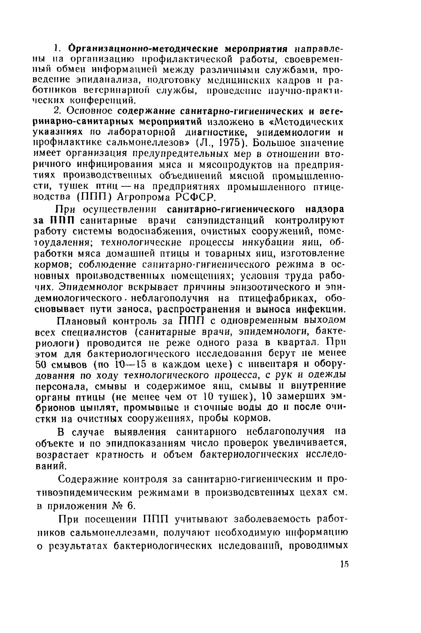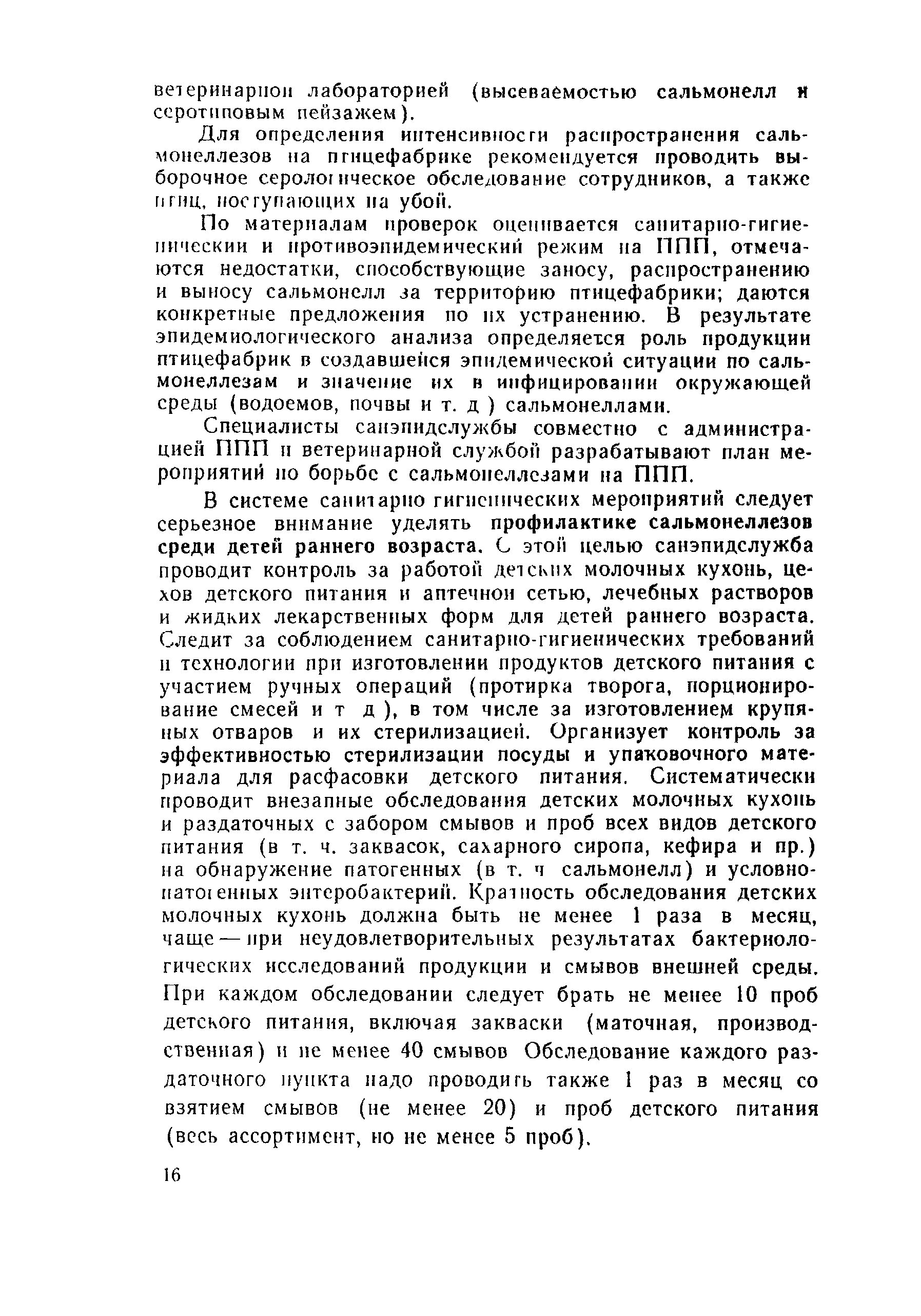 | Оглавление: | 1 Эпидемиологический надзор за сальмонеллезами и его содержание 2 Эпидемиологический надзор за сальмонеллезами в стационарах 3 Профилактика сальмонеллеза Приложение 1 Учет больных сальмонеллезом (детей, матерей, персонала), выявленных в отделении Приложение 2 Санитарно-гигиеническая характеристика отделения больницы для детей раннего возраста Приложение 3 Результаты лабораторного исследования окружающей среды Приложение 4 Результаты контроля активности дезсредств и качества дезинфекции в отделении Приложение 5 Методика реакции коаглютинации Приложение 6 Содержание контроля за санитарно-гигиеническим и противоэпидемическим режимами в основных производственных помещениях предприятий промышленного птицеводства |