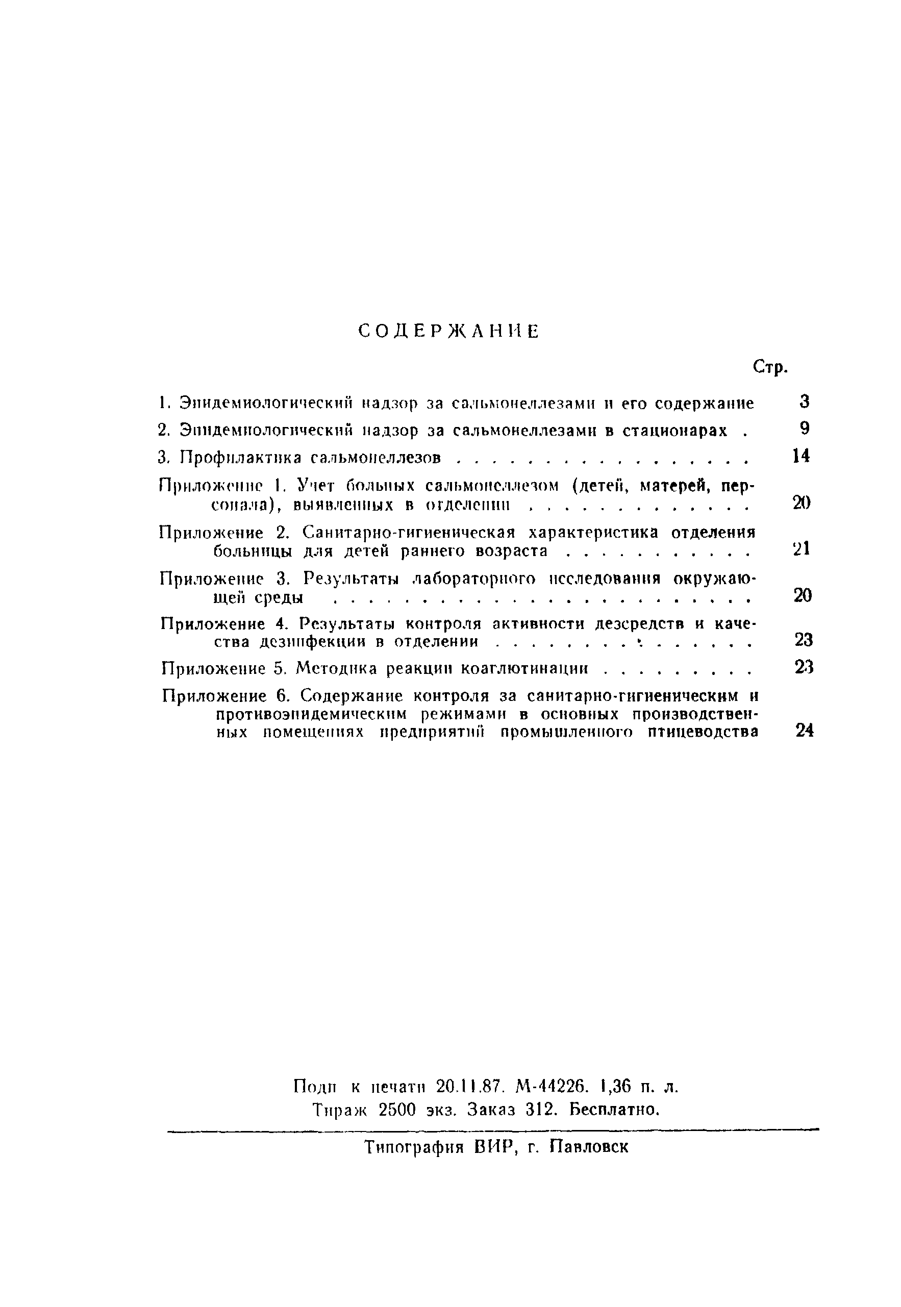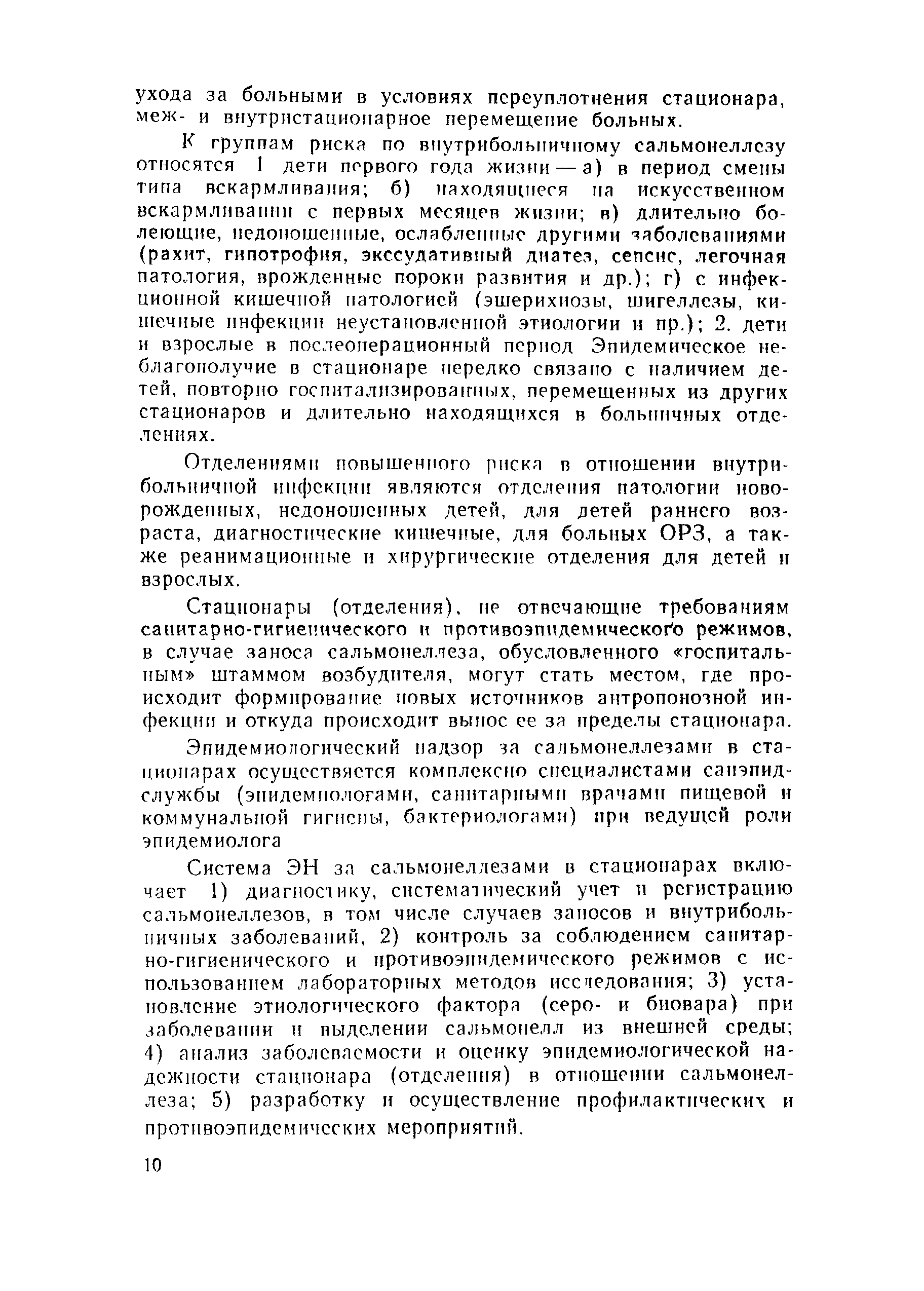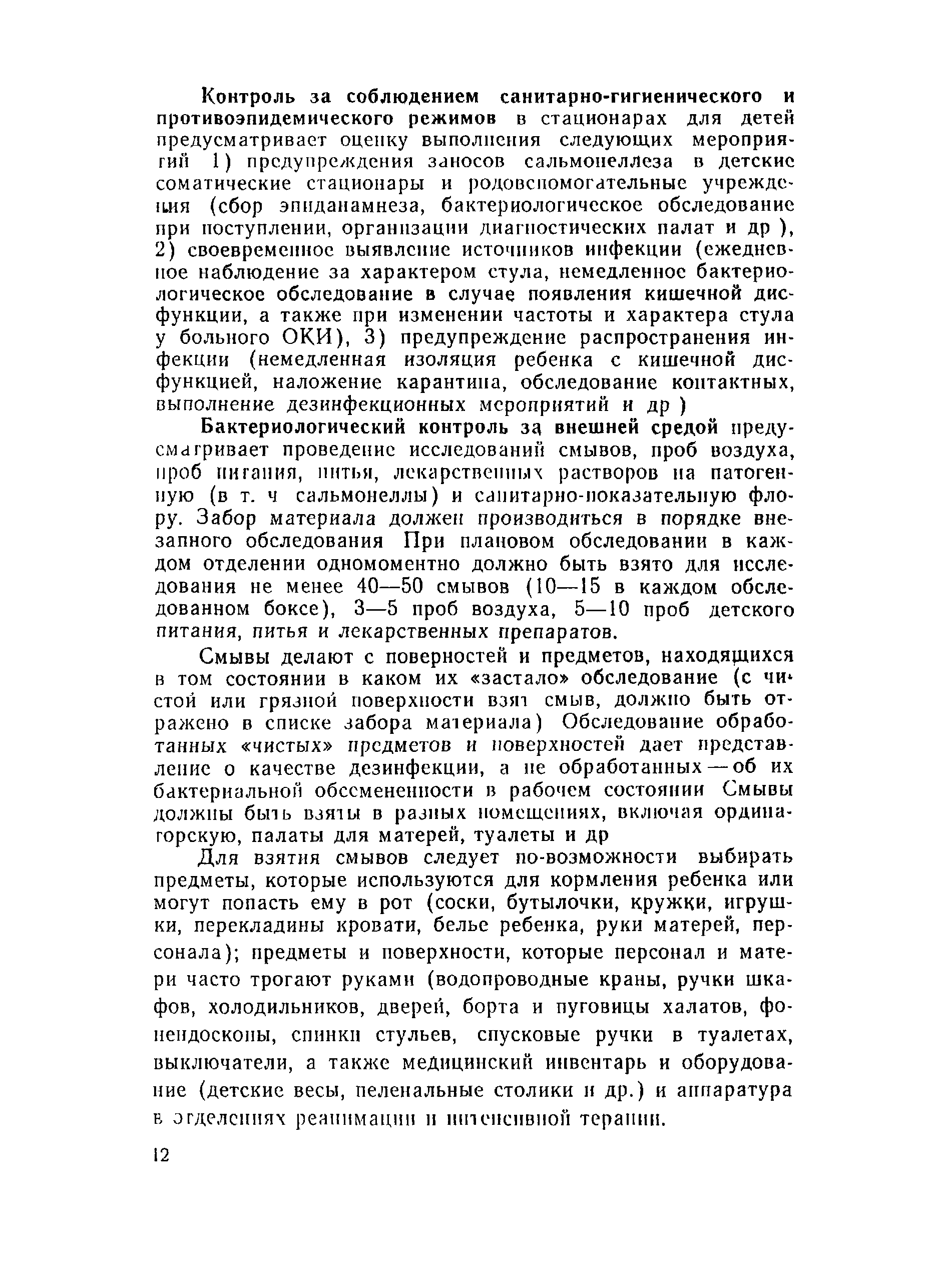 | Оглавление: | 1 Эпидемиологический надзор за сальмонеллезами и его содержание 2 Эпидемиологический надзор за сальмонеллезами в стационарах 3 Профилактика сальмонеллеза Приложение 1 Учет больных сальмонеллезом (детей, матерей, персонала), выявленных в отделении Приложение 2 Санитарно-гигиеническая характеристика отделения больницы для детей раннего возраста Приложение 3 Результаты лабораторного исследования окружающей среды Приложение 4 Результаты контроля активности дезсредств и качества дезинфекции в отделении Приложение 5 Методика реакции коаглютинации Приложение 6 Содержание контроля за санитарно-гигиеническим и противоэпидемическим режимами в основных производственных помещениях предприятий промышленного птицеводства |