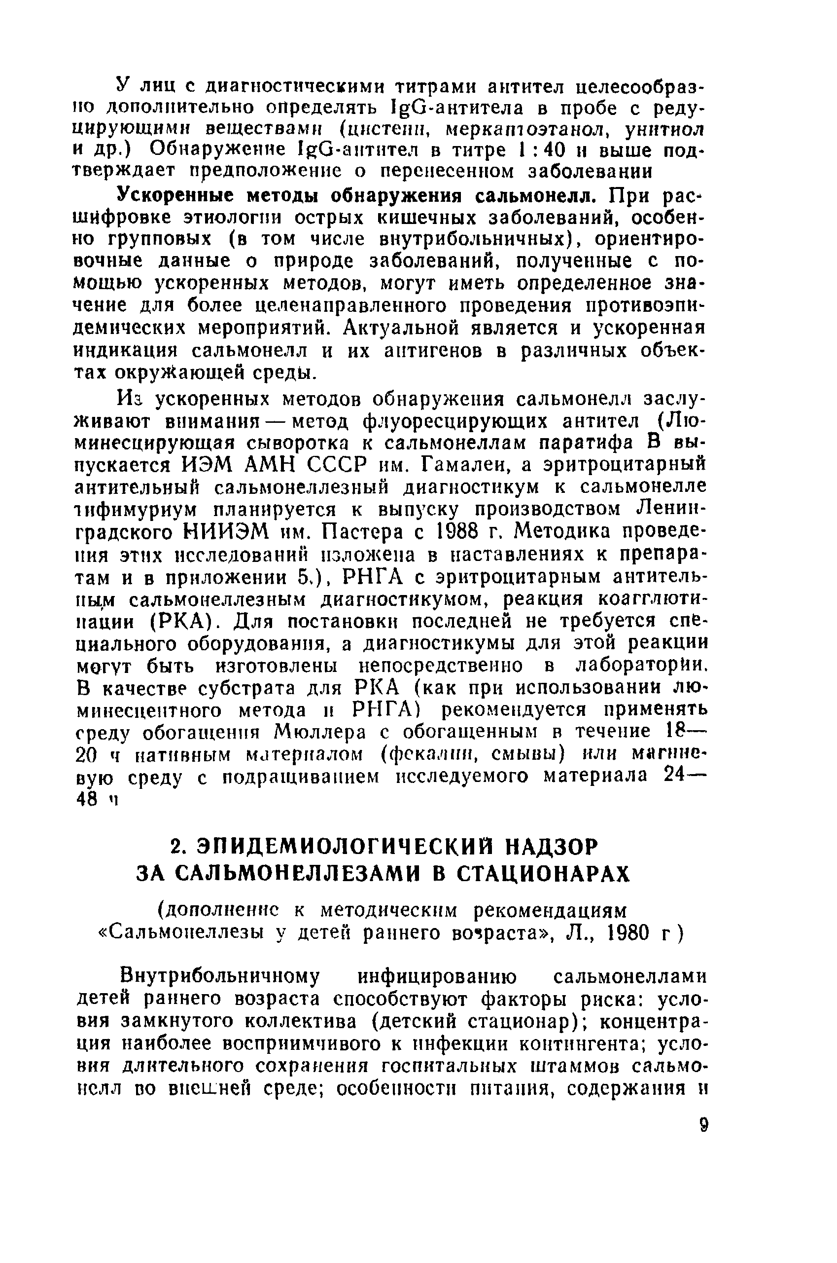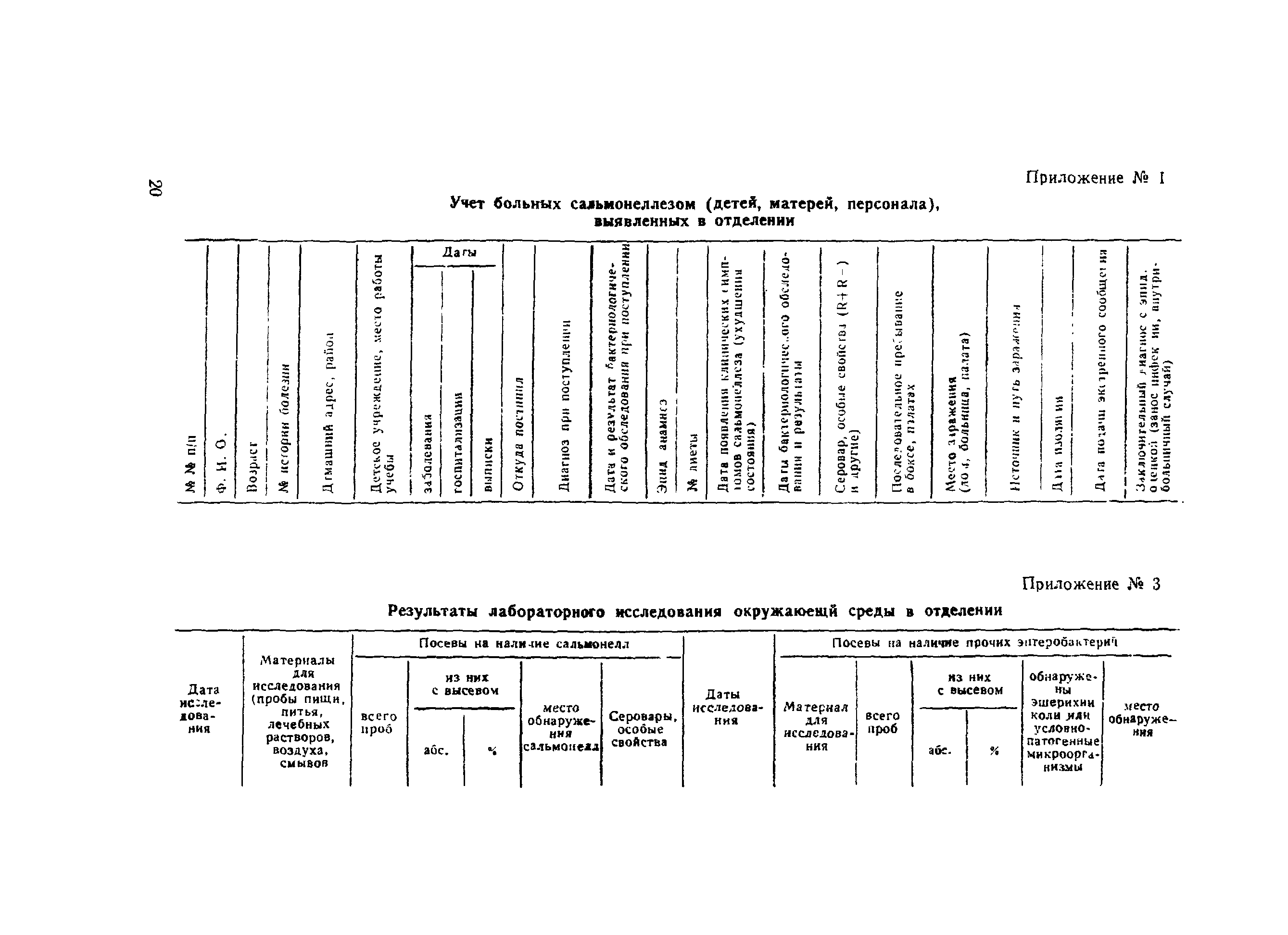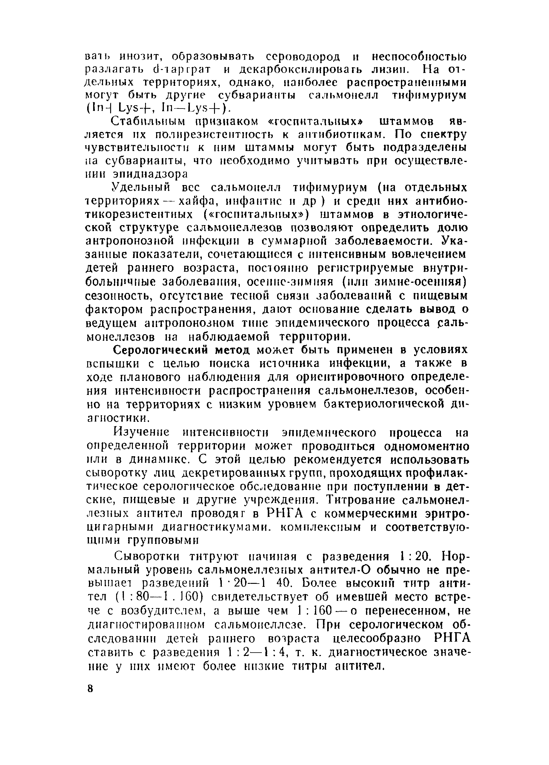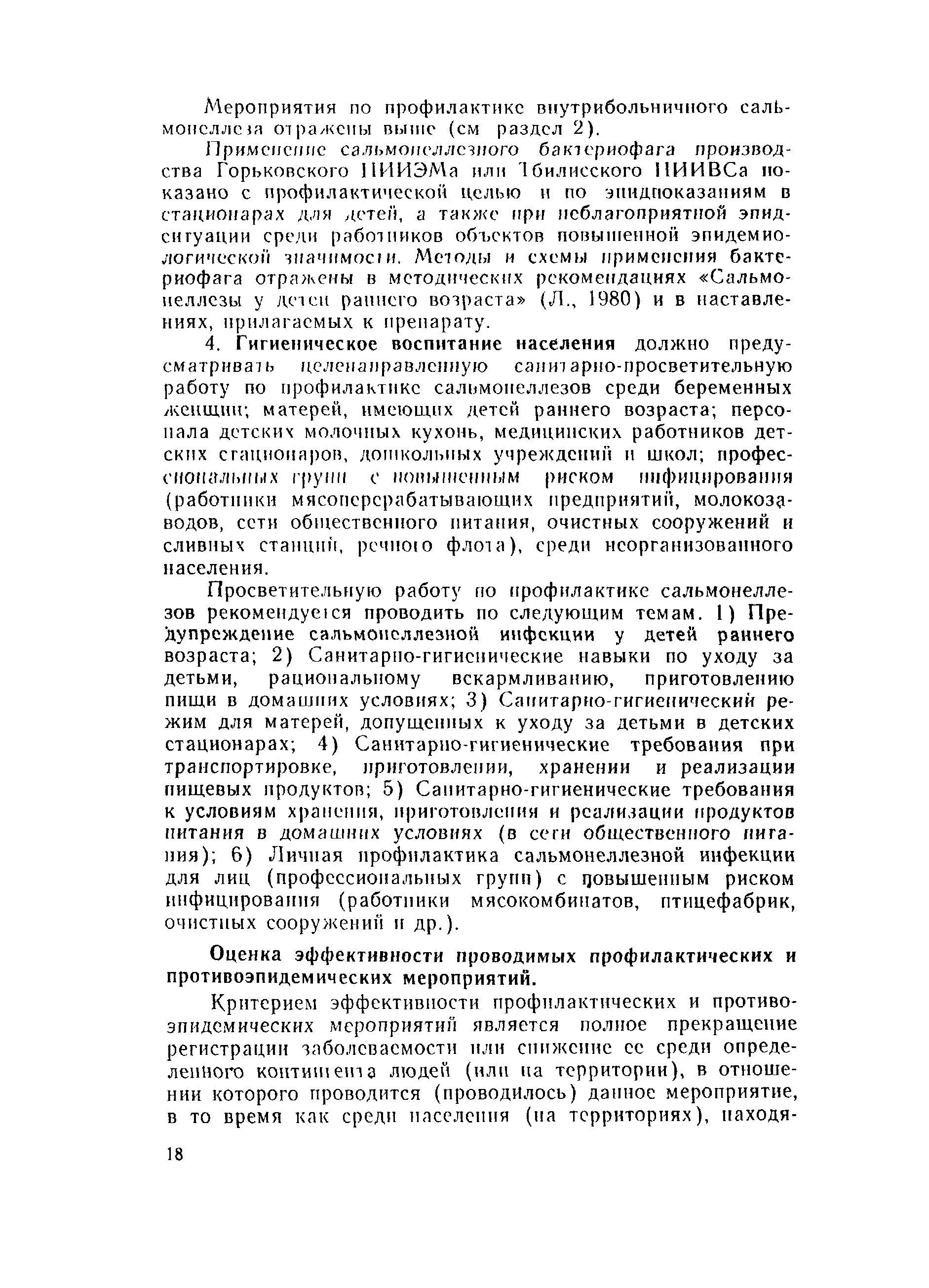 | Оглавление: | 1 Эпидемиологический надзор за сальмонеллезами и его содержание 2 Эпидемиологический надзор за сальмонеллезами в стационарах 3 Профилактика сальмонеллеза Приложение 1 Учет больных сальмонеллезом (детей, матерей, персонала), выявленных в отделении Приложение 2 Санитарно-гигиеническая характеристика отделения больницы для детей раннего возраста Приложение 3 Результаты лабораторного исследования окружающей среды Приложение 4 Результаты контроля активности дезсредств и качества дезинфекции в отделении Приложение 5 Методика реакции коаглютинации Приложение 6 Содержание контроля за санитарно-гигиеническим и противоэпидемическим режимами в основных производственных помещениях предприятий промышленного птицеводства |