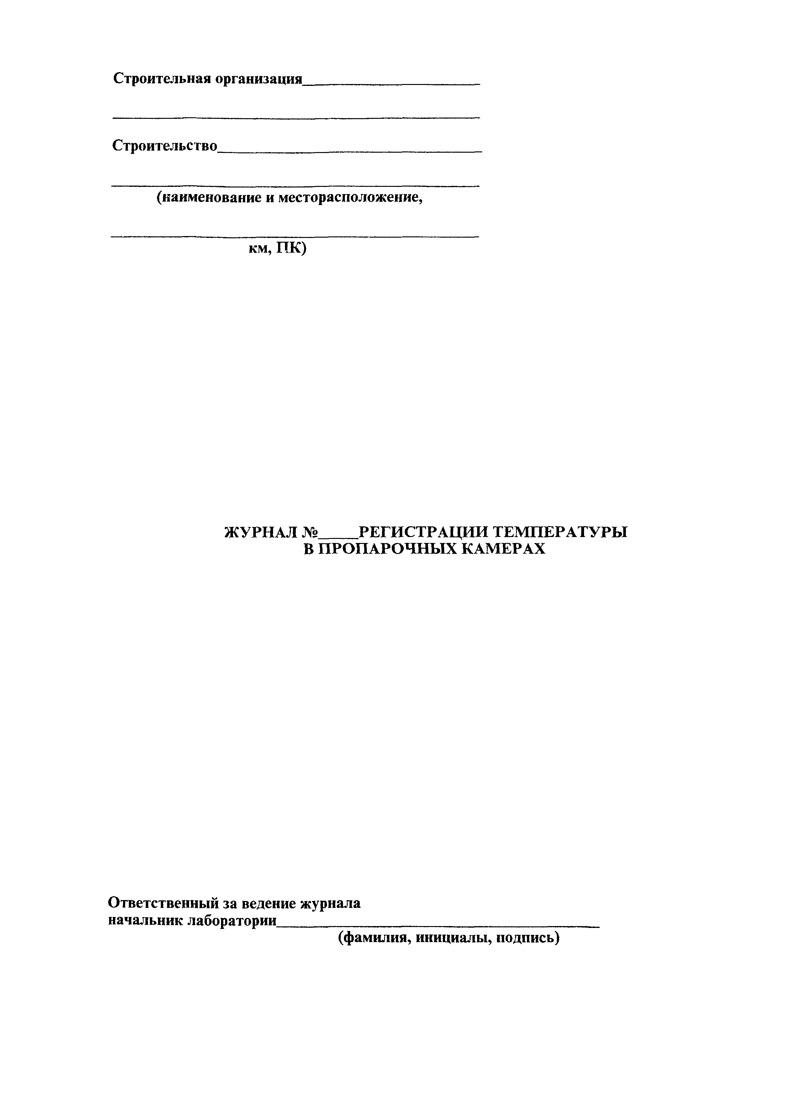 Журнал регистрации температуры в пропарочных камерах| Статус: | действует | | Название рус.: | Журнал регистрации температуры в пропарочных камерах | | Дата добавления в базу: | 01.09.2013 | | Дата актуализации: | 01.01.2021 |