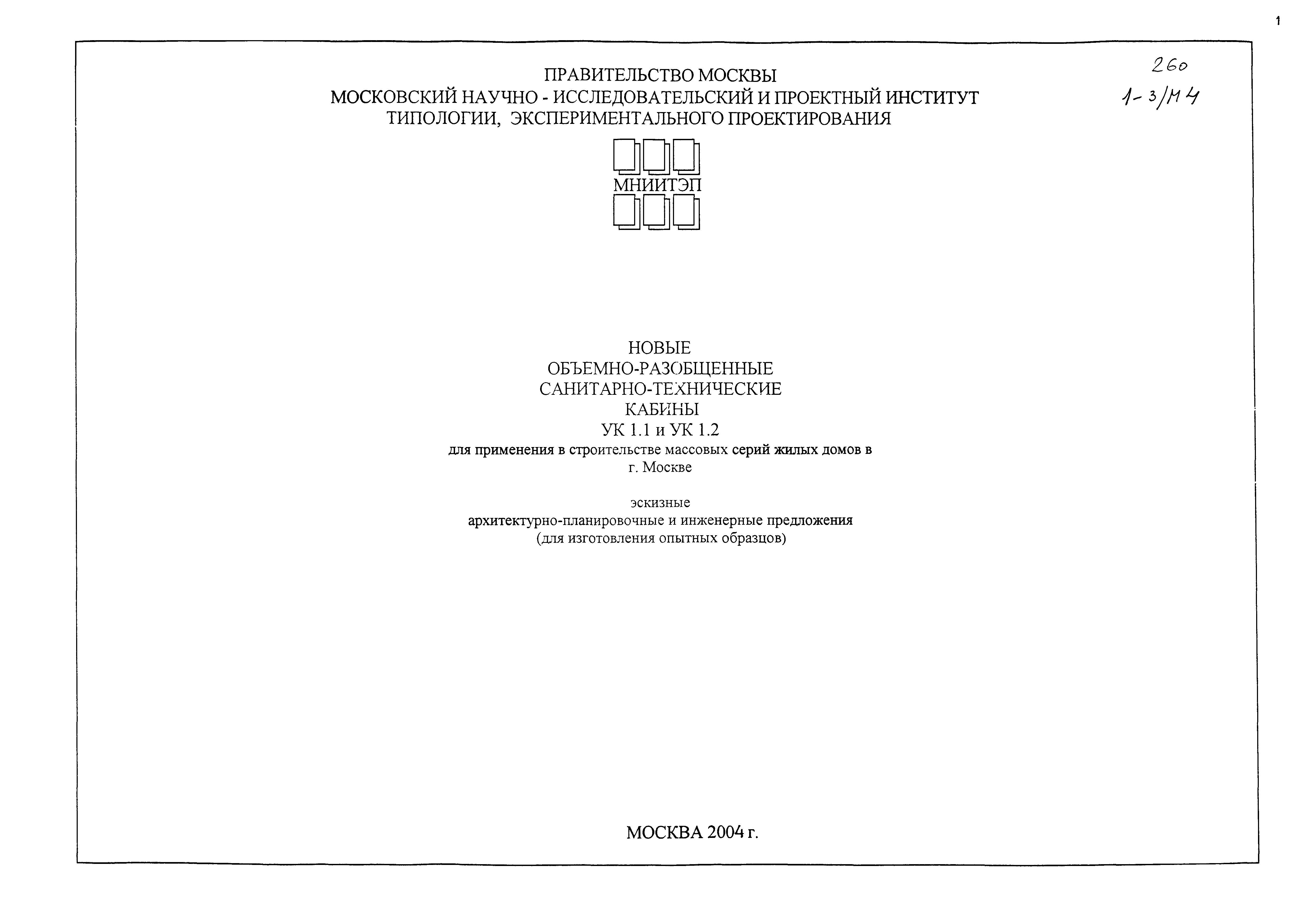 | Название рус.: | Новые объемно-разобщенные санитарно-технические кабины УК 1.1 и УК 1.2 для применения в строительстве массовых серий жилых домов в г. Москве. Эскизные архитектурно-планировочные и инженерные предложения (для изготовления опытных образцов) |