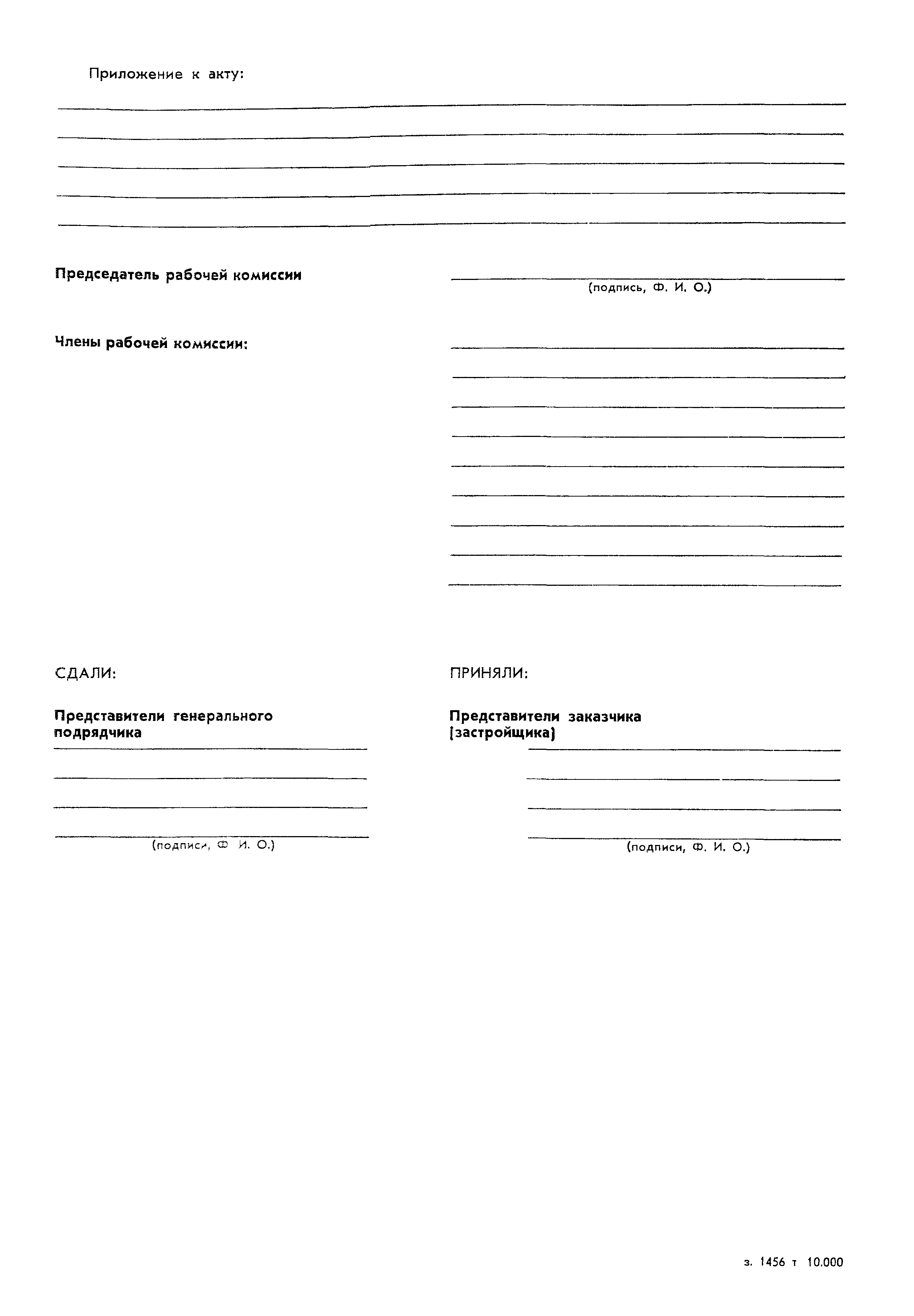 Акт рабочей комиссии о готовности законченного строительством объекта для предъявления государственной приемочной комиссии| Статус: | справочные материалы, мп, тпр | | Название рус.: | Акт рабочей комиссии о готовности законченного строительством объекта для предъявления государственной приемочной комиссии | | Дата добавления в базу: | 01.09.2013 | | Дата актуализации: | 01.01.2021 | | Нормативные ссылки: | |