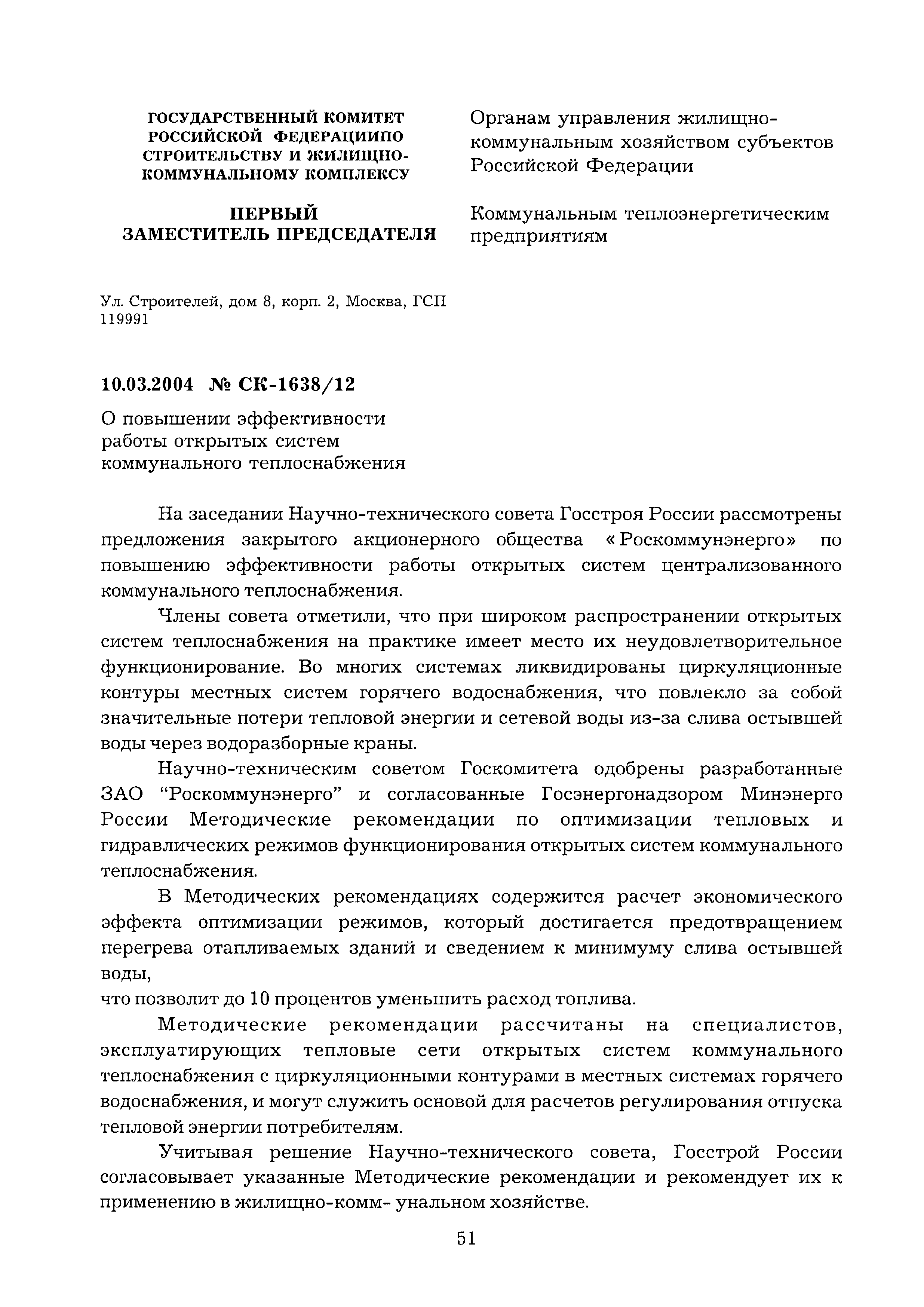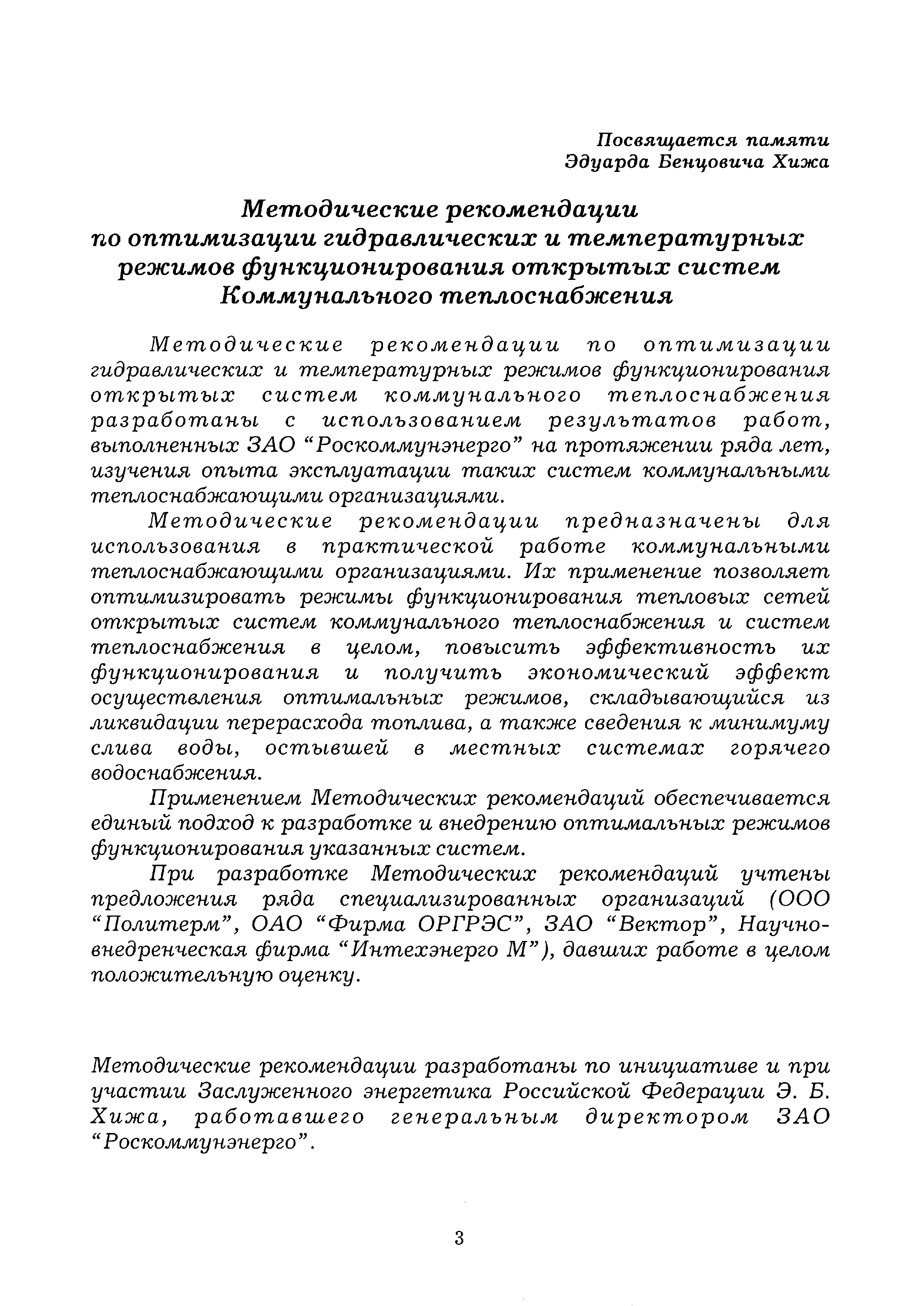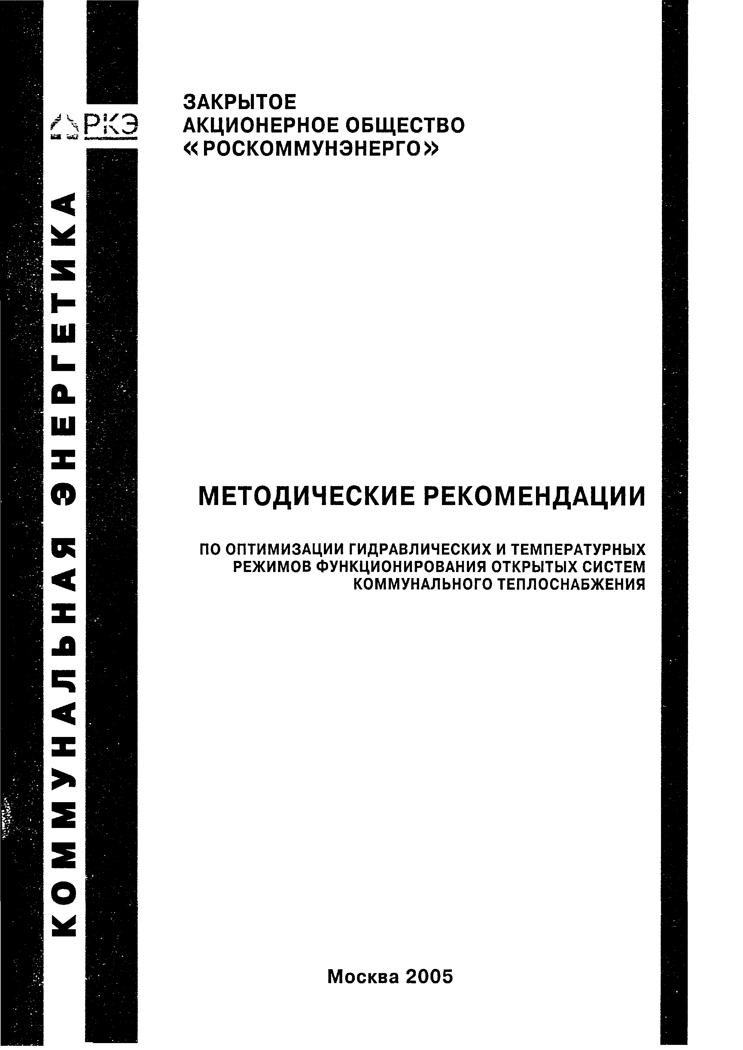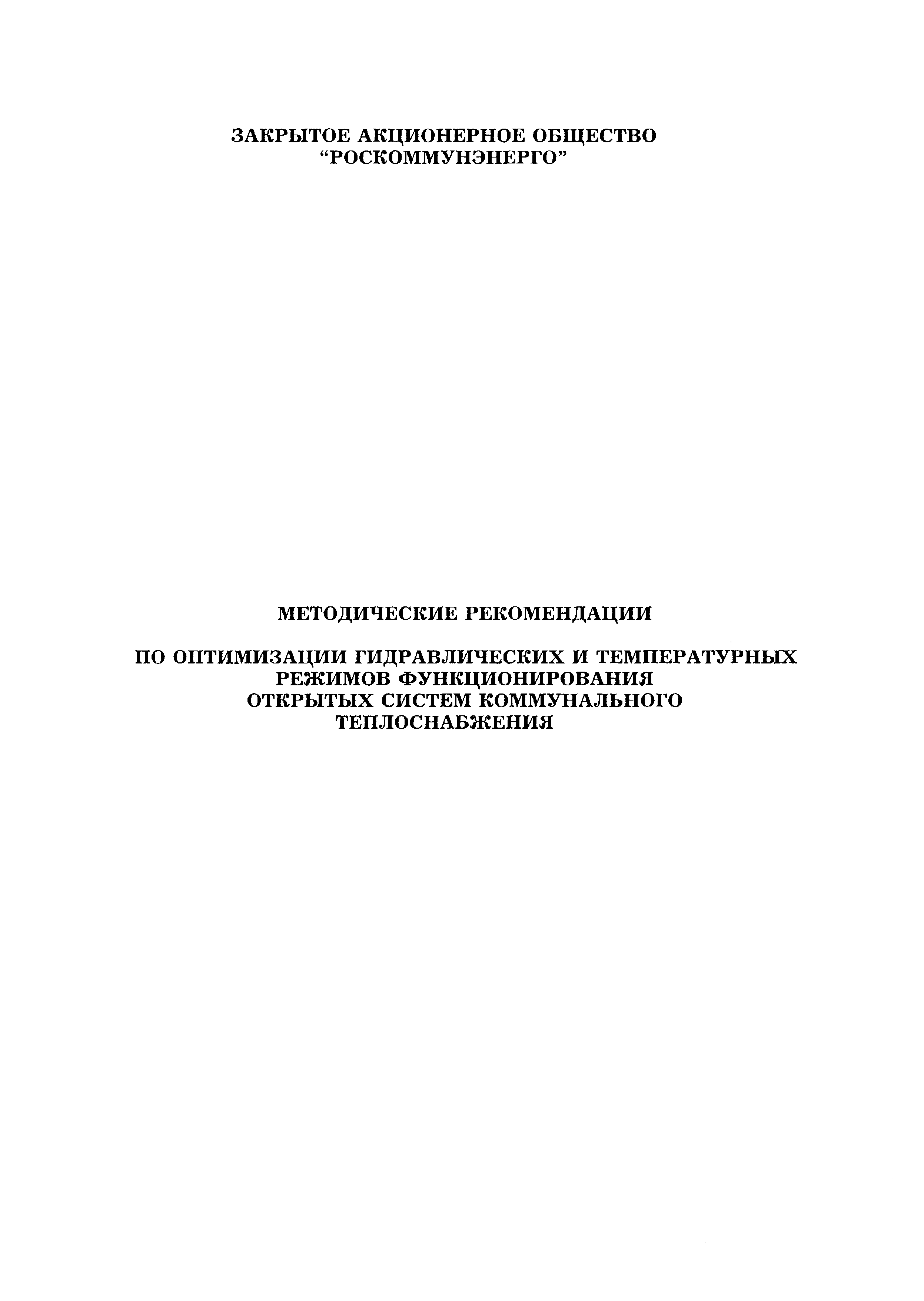 | Название рус.: | Методические рекомендации по оптимизации гидравлических и температурных режимов функционирования открытых систем коммунального теплоснабжения |