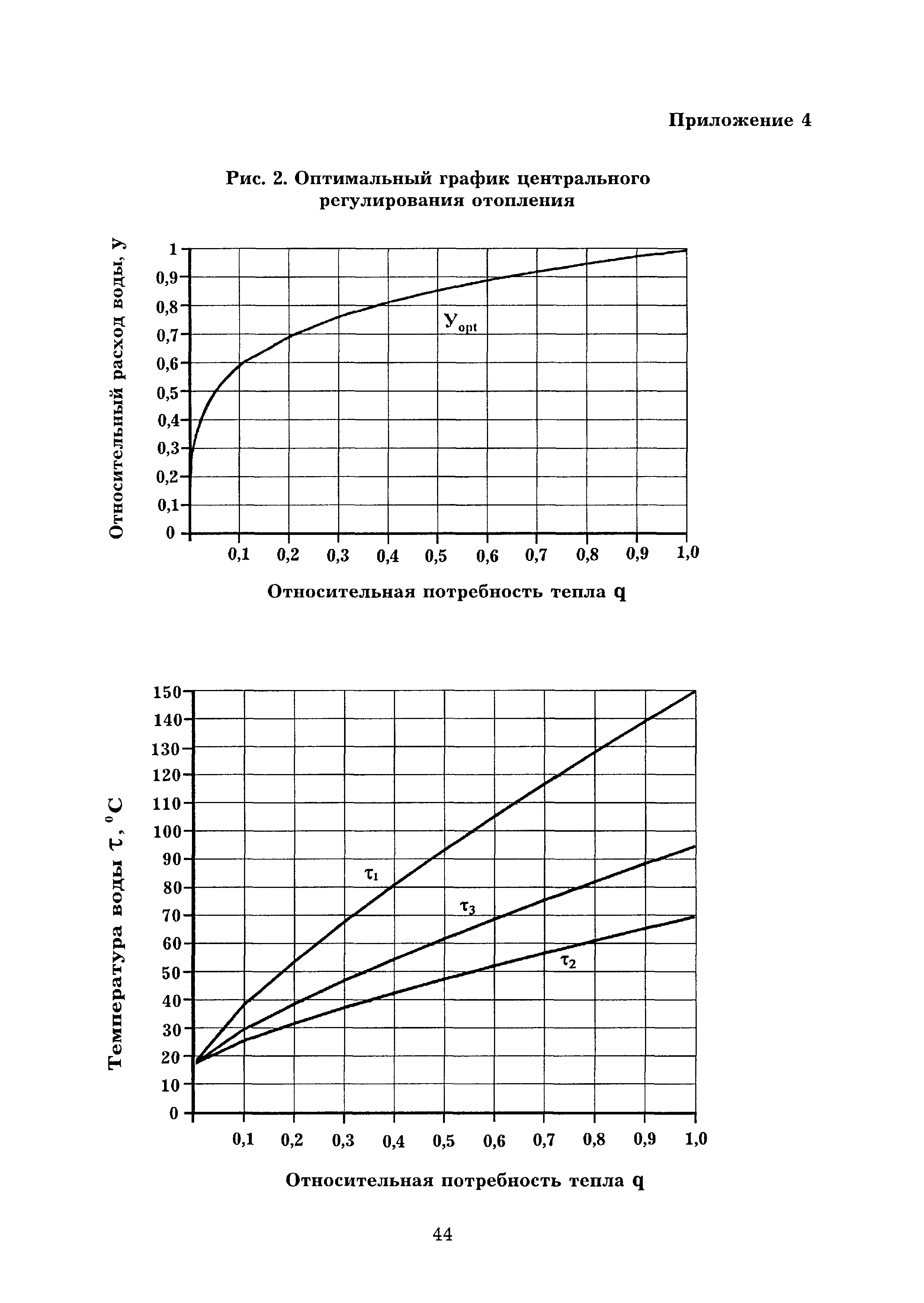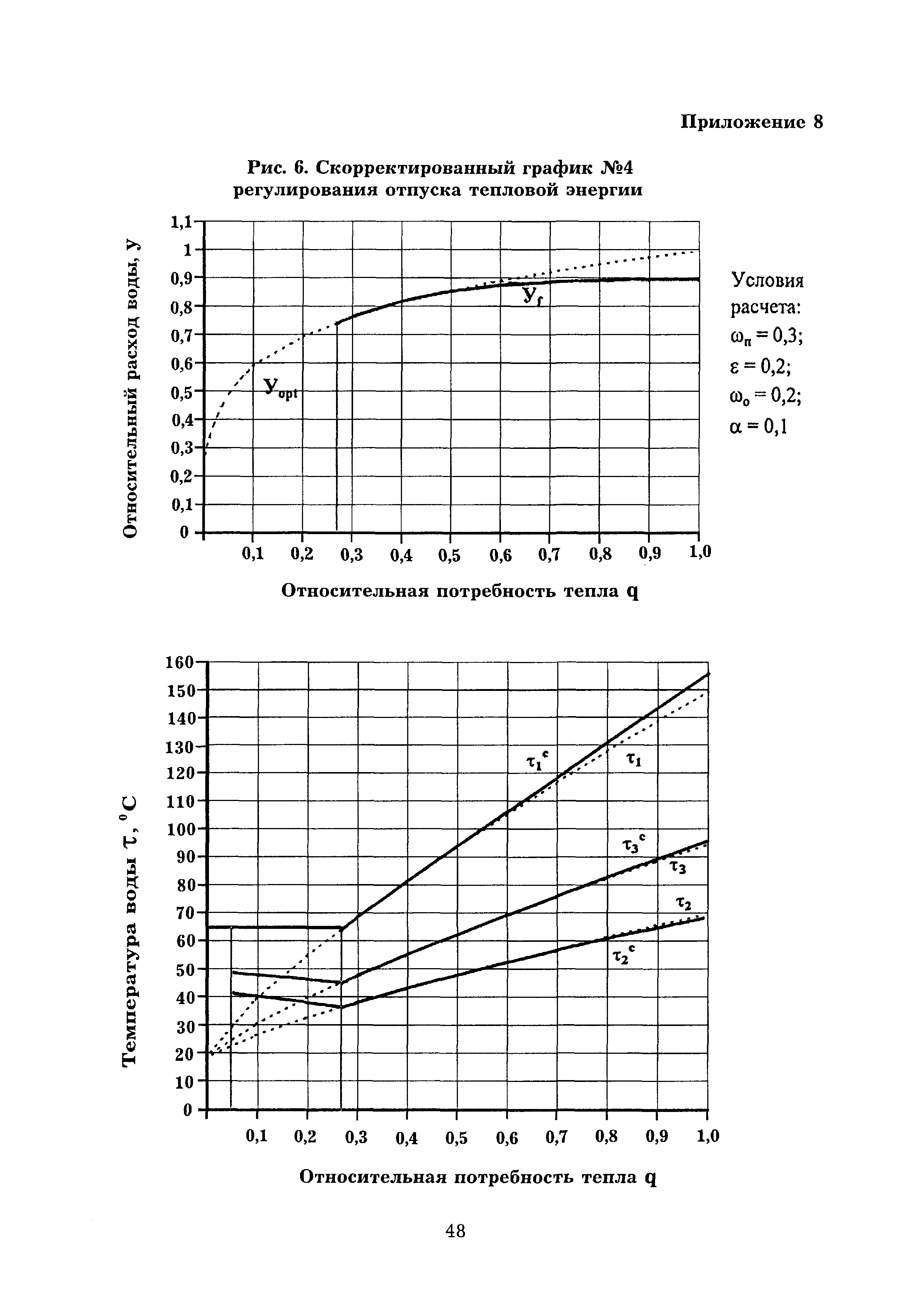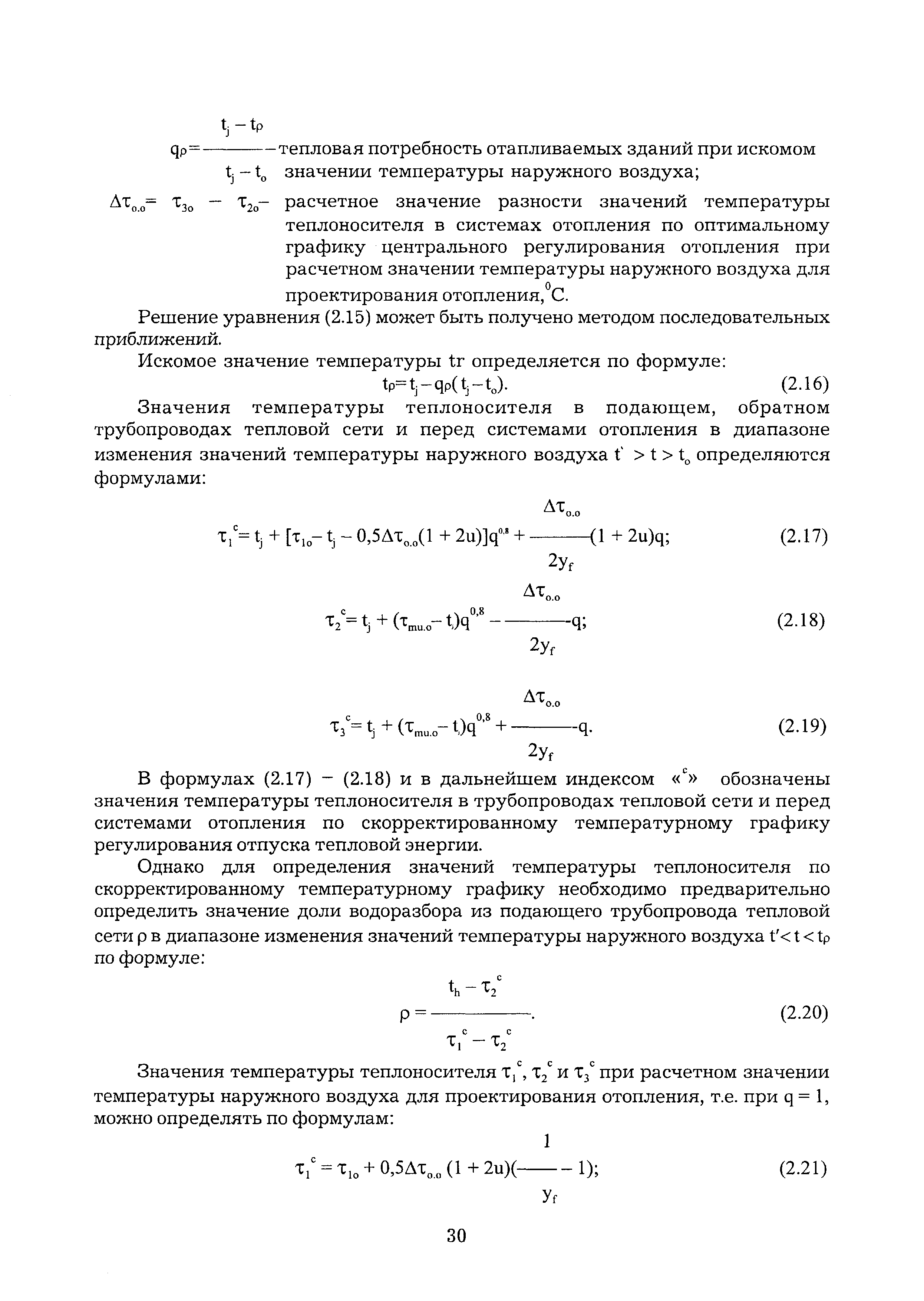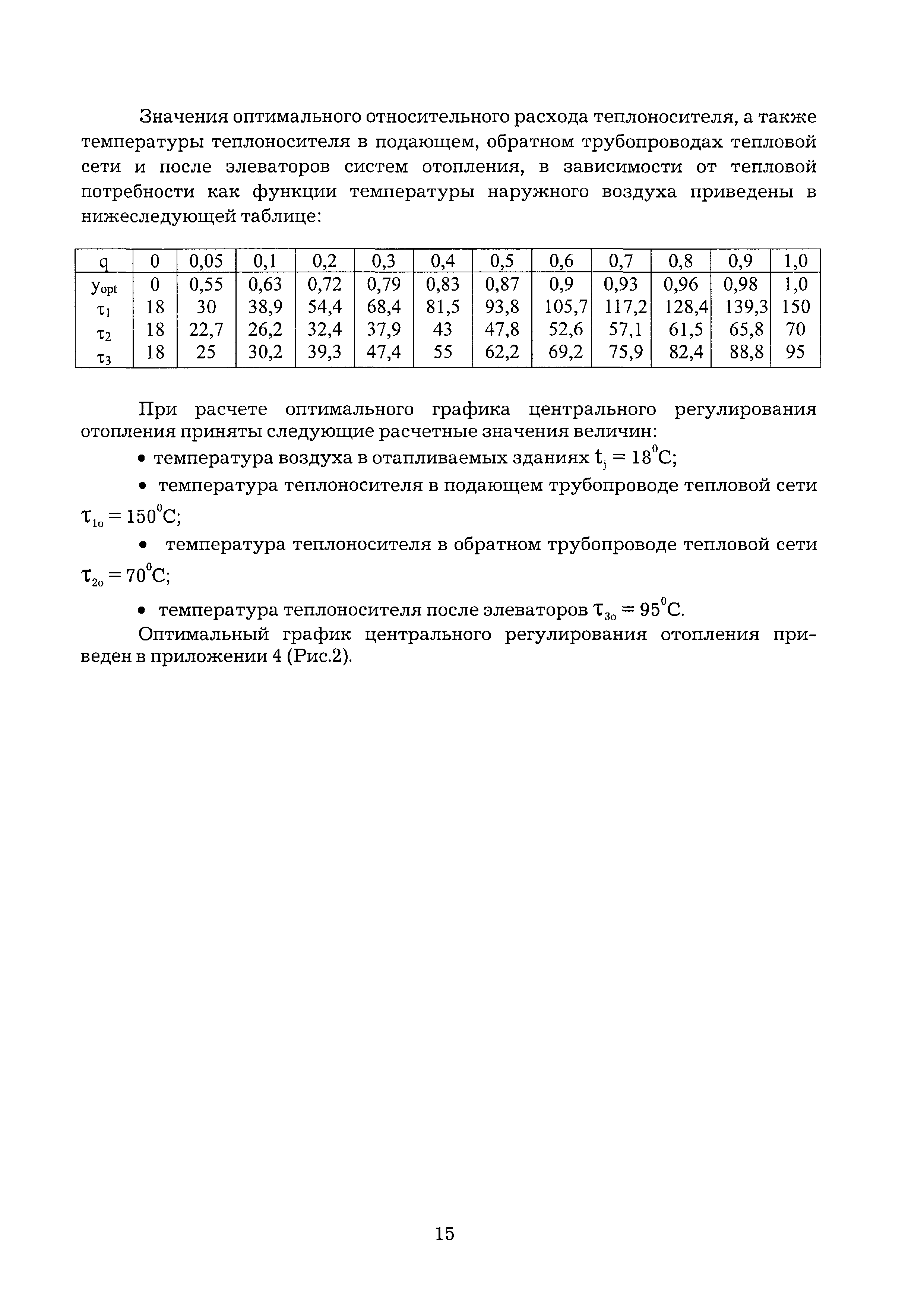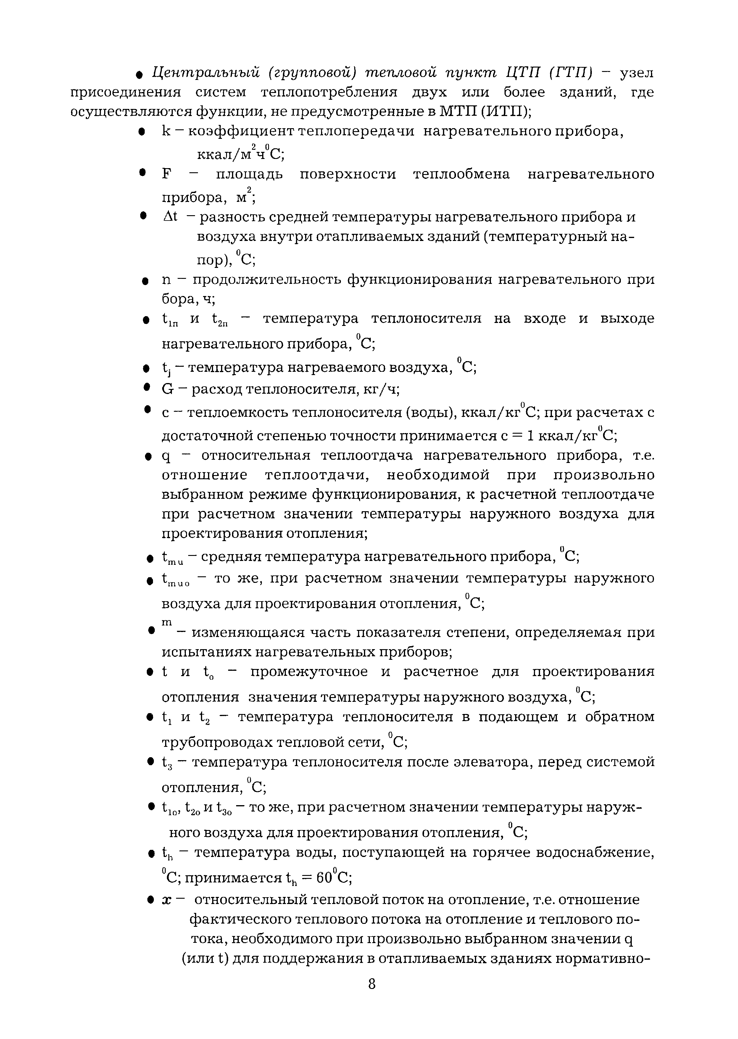 | Оглавление: | Введение 1 Теоретические основы оптимального режима функционирования тепловой сети открытой системы теплоснабжения 1.1 Оптимальный график центрального регулирования отопления 1.2 Оптимальный график центрального регулирования отпуска тепловой энергии в открытой системе теплоснабжения с циркуляционными контурами в местных системах горячего водоснабжения 1.3 Определение расчетного расхода теплоносителя для разработки оптимального гидравлического режима функционирования тепловой сети при скорректированном температурном графике регулирования отпуска тепловой энергии 1.4 Определение расчетного расхода теплоносителя для выбора диаметра магистральных трубопроводов тепловой сети открытой системы теплоснабжения 1.5 Экономический эффект осуществления оптимального режима функционирования тепловой сети открытой системы теплоснабжения 2 Оптимизация эксплуатационного режима функционирования тепловой сети открытой системы теплоснабжения 2.1 Разработка оптимального режима функционирования тепловой сети 2.2 Обеспечение функционирования систем теплопотребления Приложение 1 Перечень нормативно-технических документов, ссылки на которые имеются в тексте Рекомендаций Приложение 2 Пример расчета оптимального графика центрального регулирования отпуска тепловой энергии Приложение 3 Рис. 1 - Принципиальная схема местного теплового пункта с водоразбором непосредственно из трубопроводов тепловой сети Приложение 4 Рис. 2 - Оптимальный график центрального регулирования отопления Приложение 5 - 8. Рис. 3 - 6 - Скорректированные графики регулирования отпуска тепловой энергии при различных показателях гидравлической устойчивости тепловых сетей Приложение 9 Рис. 7 - Скорректированный график регулирования отпуска тепловой энергии (к примеру расчета) |