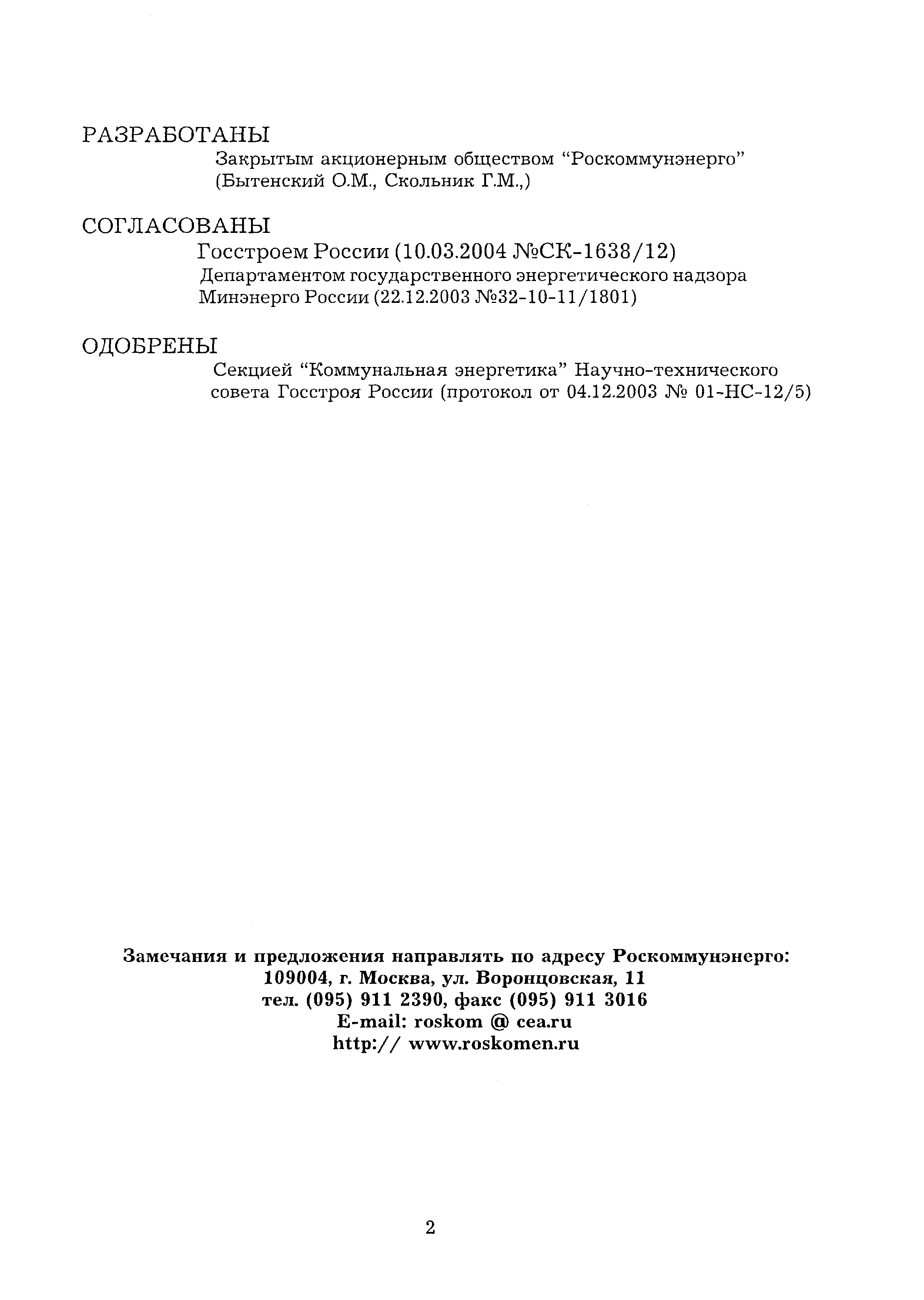 | Утверждён: | 10.03.2004 ЗАО Роскоммунэнерго