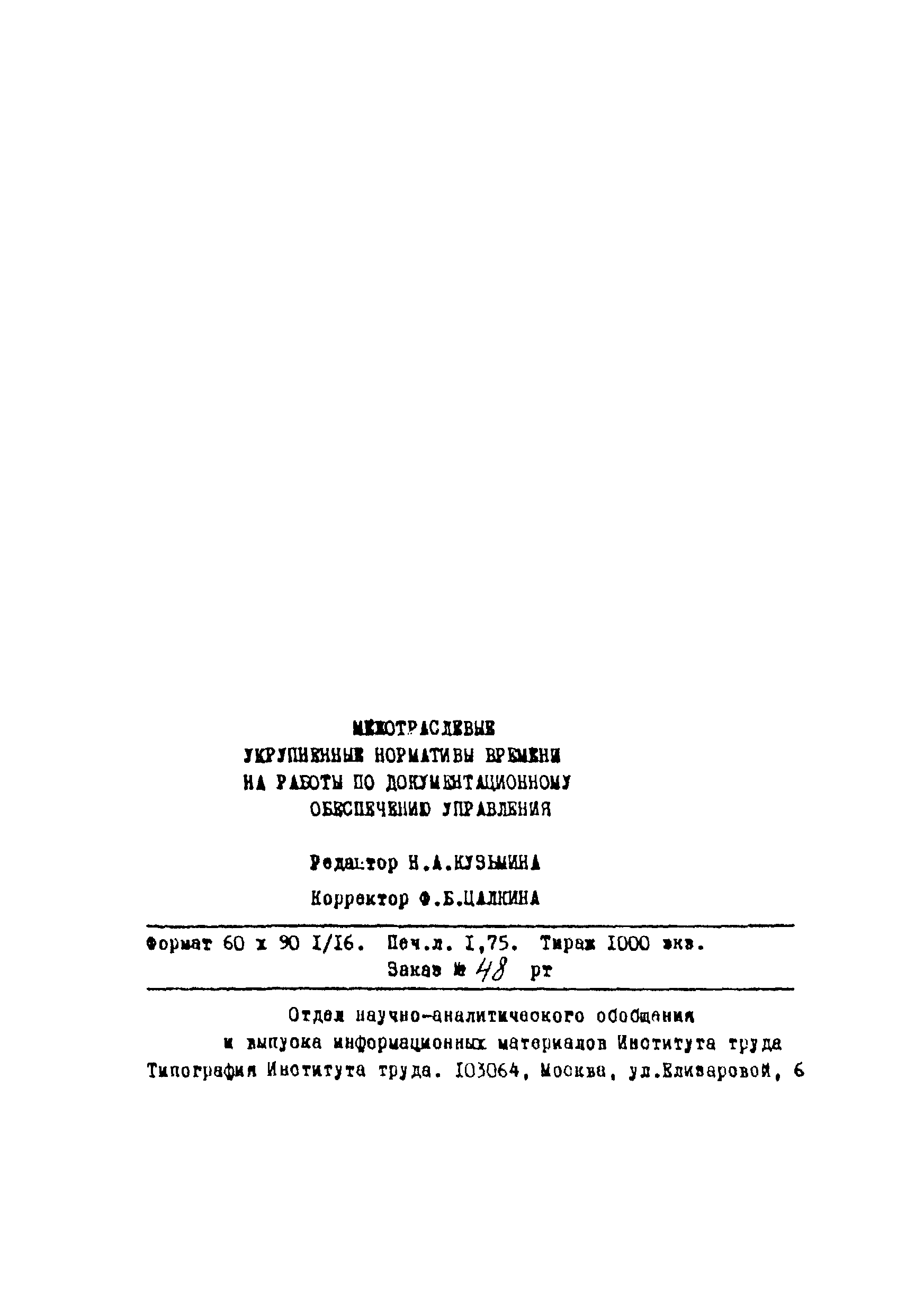 | Название рус.: | Межотраслевые укрупненные нормативы времени на работы по документационному обеспечению управления |