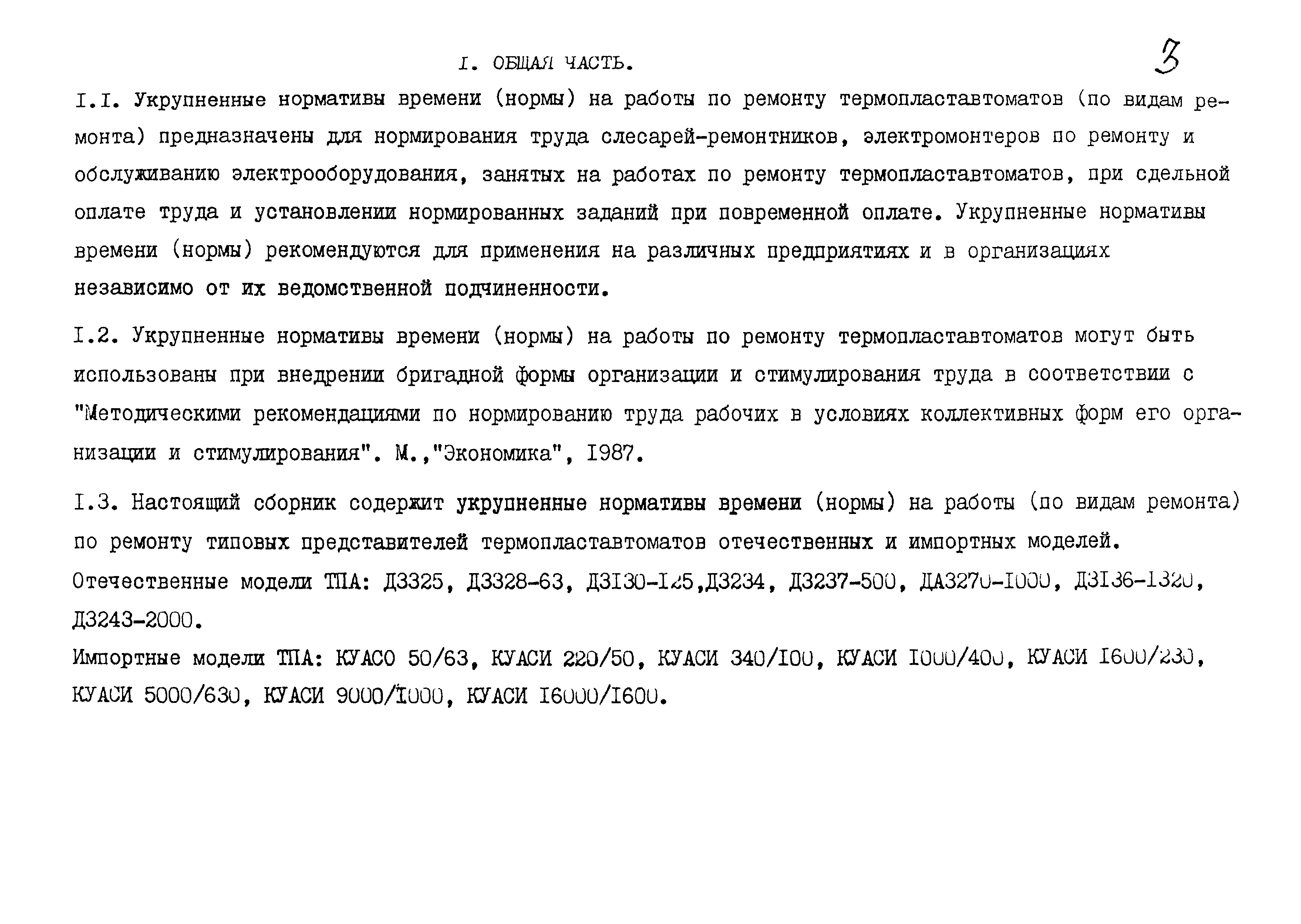 Укрупненные нормативы времени (нормы) на работы по ремонту термопластавтоматов (по видам ремонта)| Статус: | действует | | Название рус.: | Укрупненные нормативы времени (нормы) на работы по ремонту термопластавтоматов (по видам ремонта) | | Дата добавления в базу: | 01.09.2013 | | Дата актуализации: | 01.01.2021 | | Область применения: | Нормы предназначены для нормирования труда слесарей-ремонтников, электромонтеров по ремонту и обслуживанию электрооборудования, занятых на работах по ремонту термопластавтоматов, при сдельной оплате труда и установлении нормированных заданий при повременной оплате. | | Оглавление: | Общая часть Организация труда Организация рабочего места Характеристика оборудования, приспособлений и инструмента, применяемых при ремонте термопластавтоматов Нормативная часть | | Разработан: | ГПКТИ Станкосервис Центральное бюро нормативов по труду Минтруда России