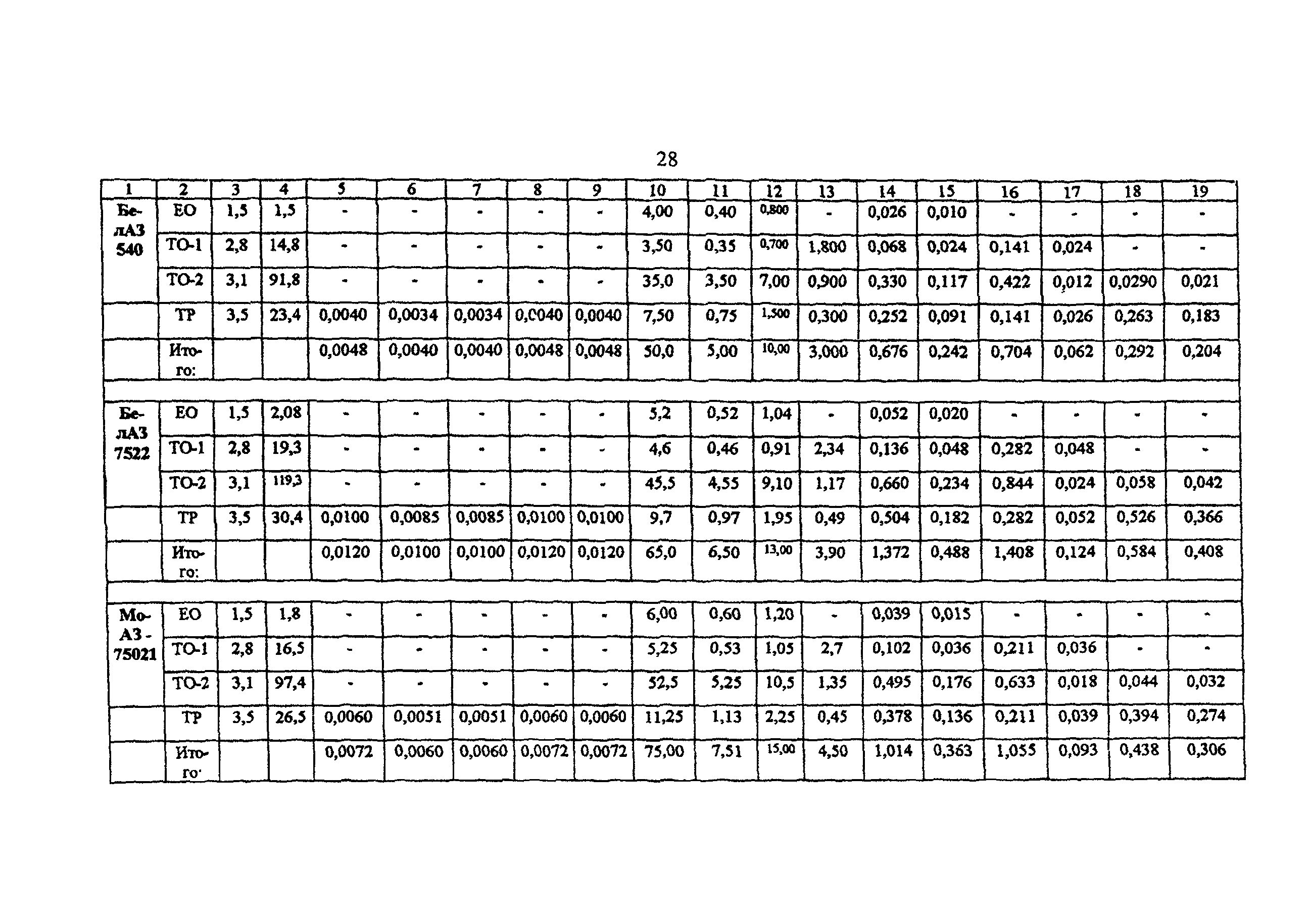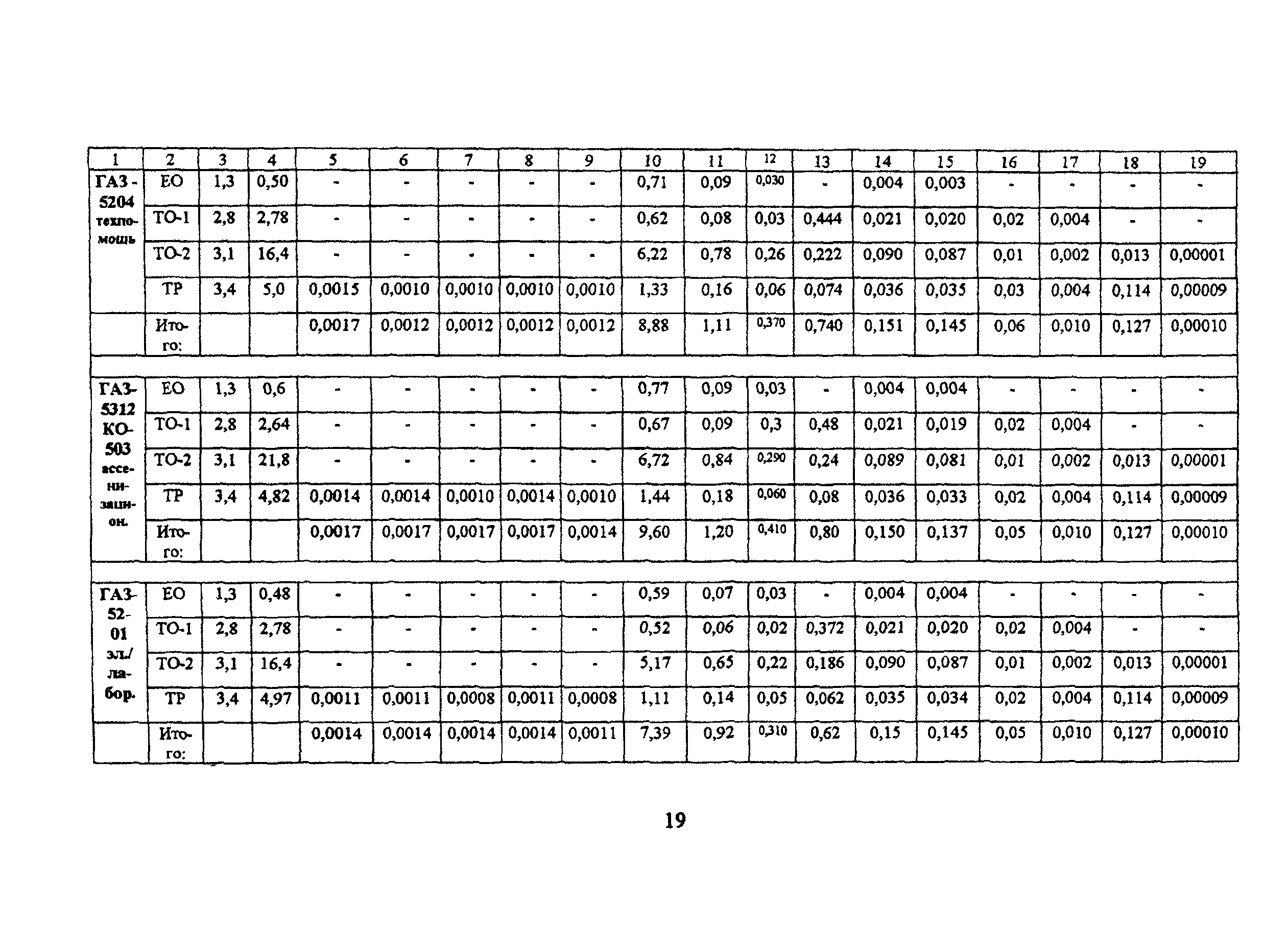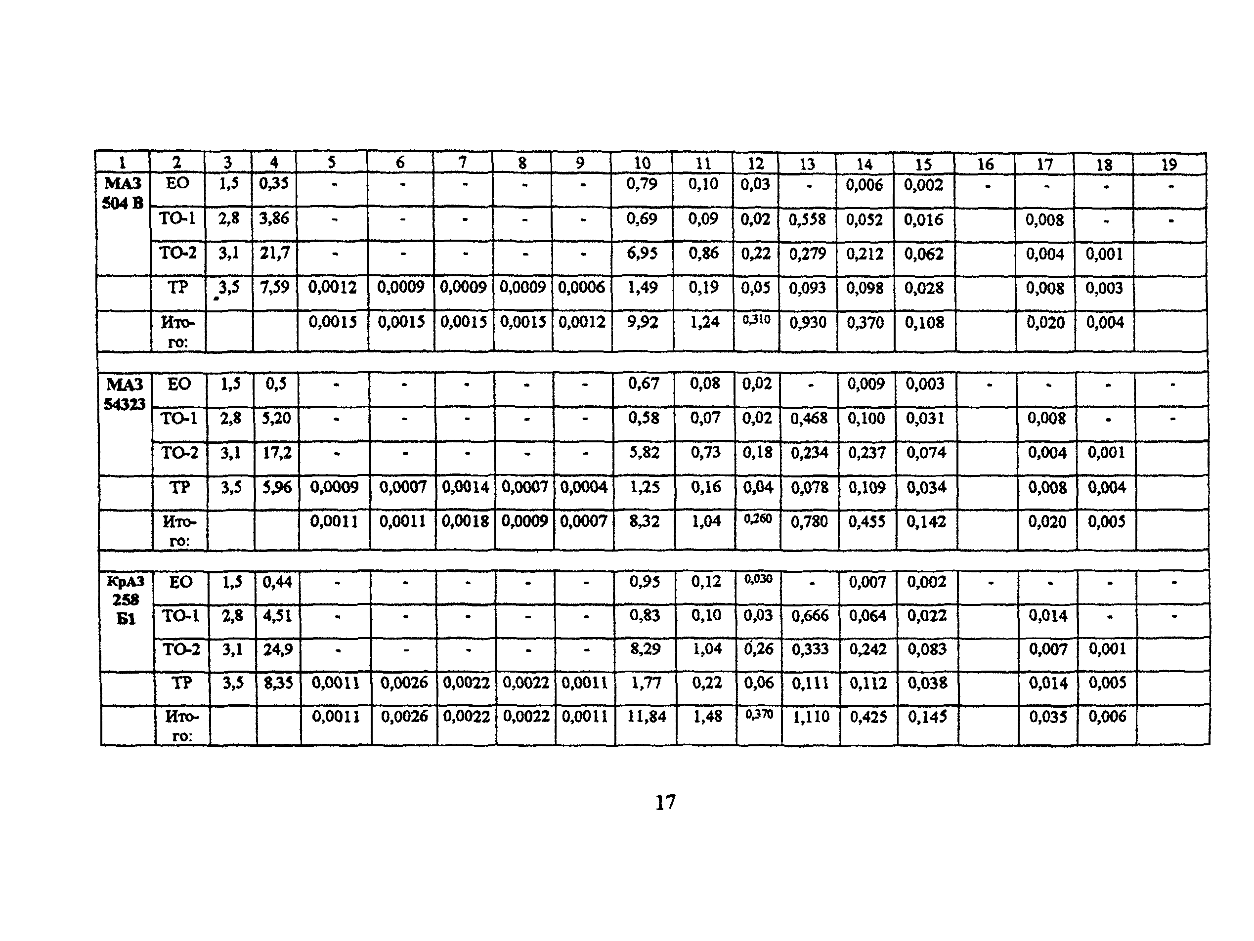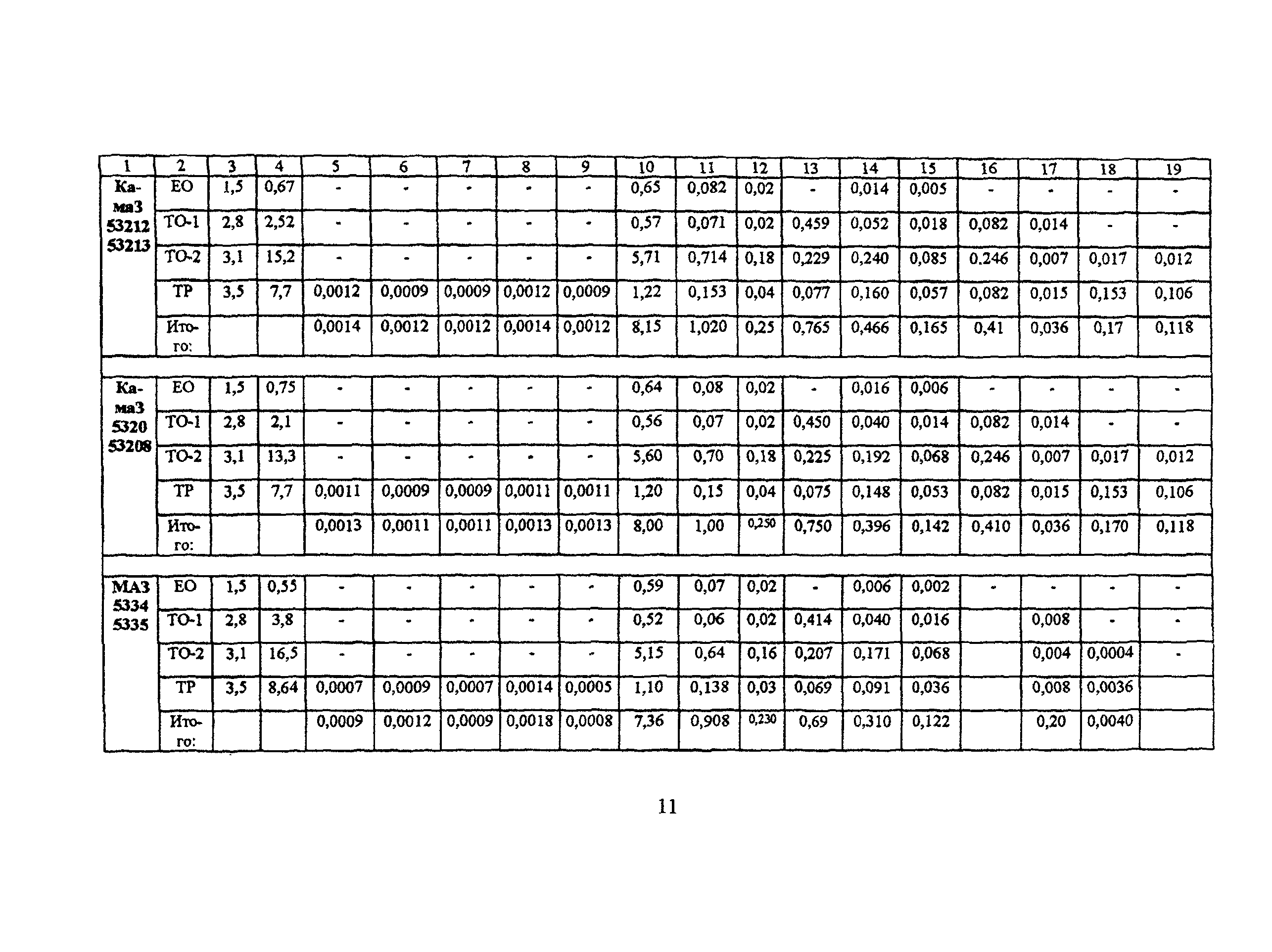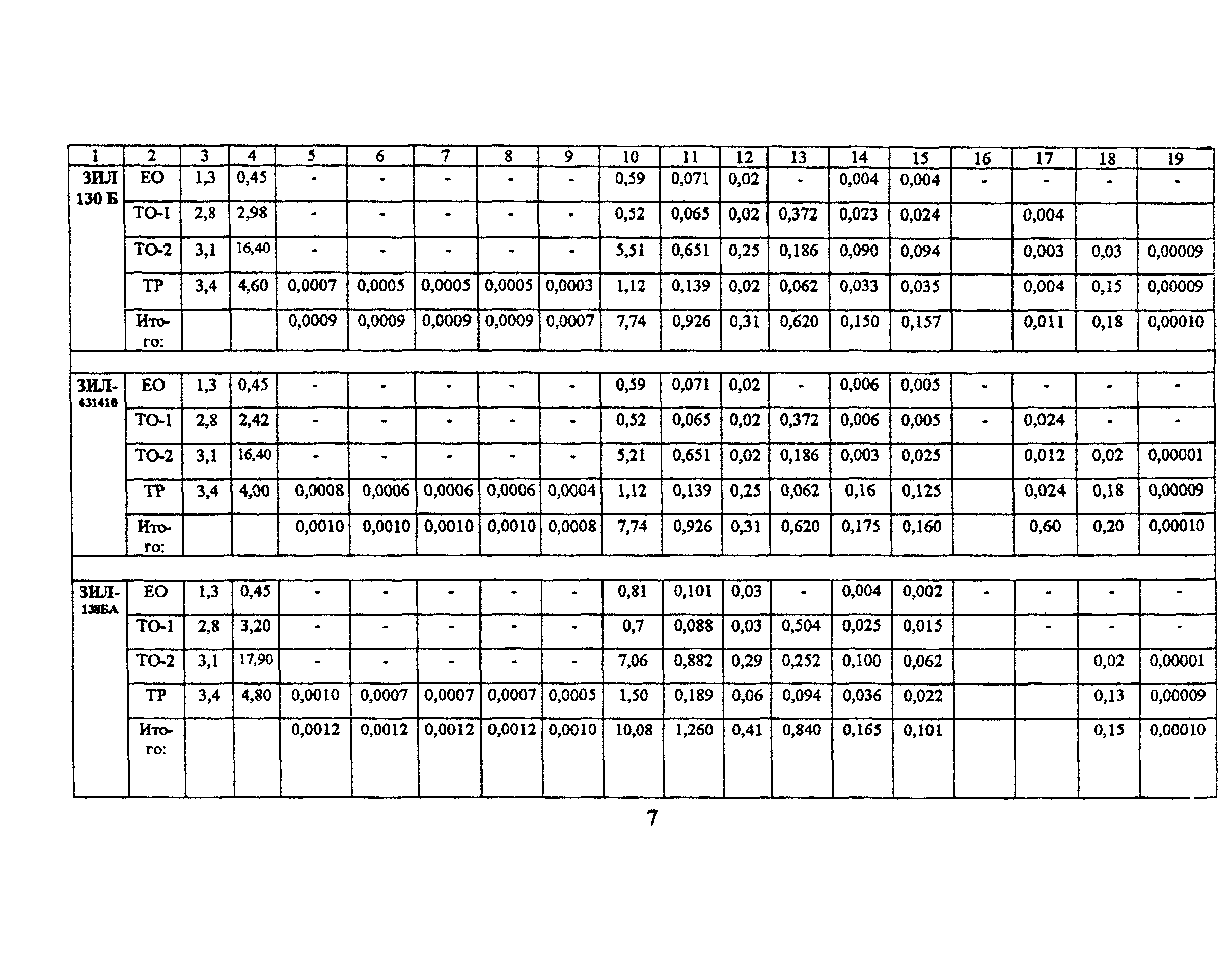 Нормы расхода материалов и запасных частей на техническое обслуживание и текущий ремонт автомобилей| Статус: | действует | | Название рус.: | Нормы расхода материалов и запасных частей на техническое обслуживание и текущий ремонт автомобилей | | Дата добавления в базу: | 01.09.2013 | | Дата актуализации: | 01.01.2021 | | Область применения: | Нормы расхода установлены в натуральном выражении на 1000 км пробега по видам технического воздействия (ЕО, ТО-1, ТО-2, ТР). | | Разработан: | Центроргтрудавтотранс